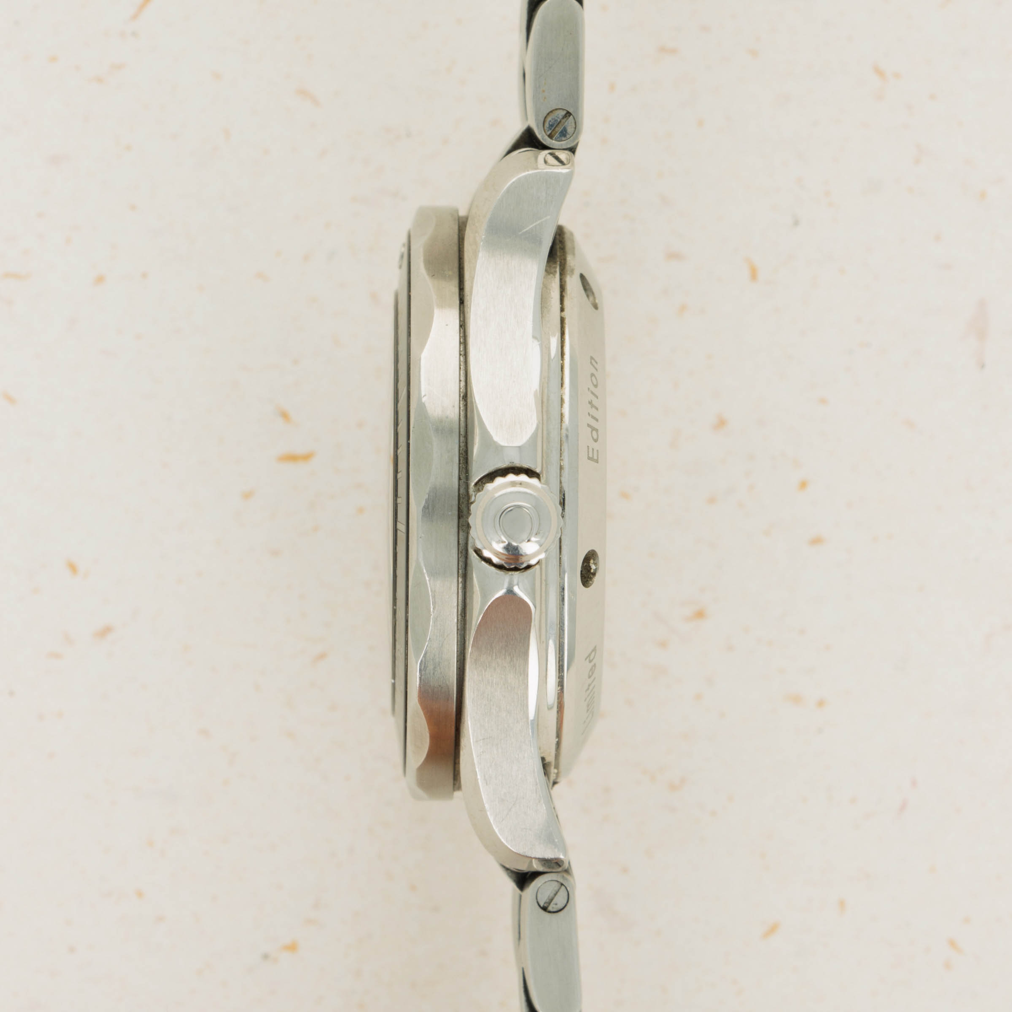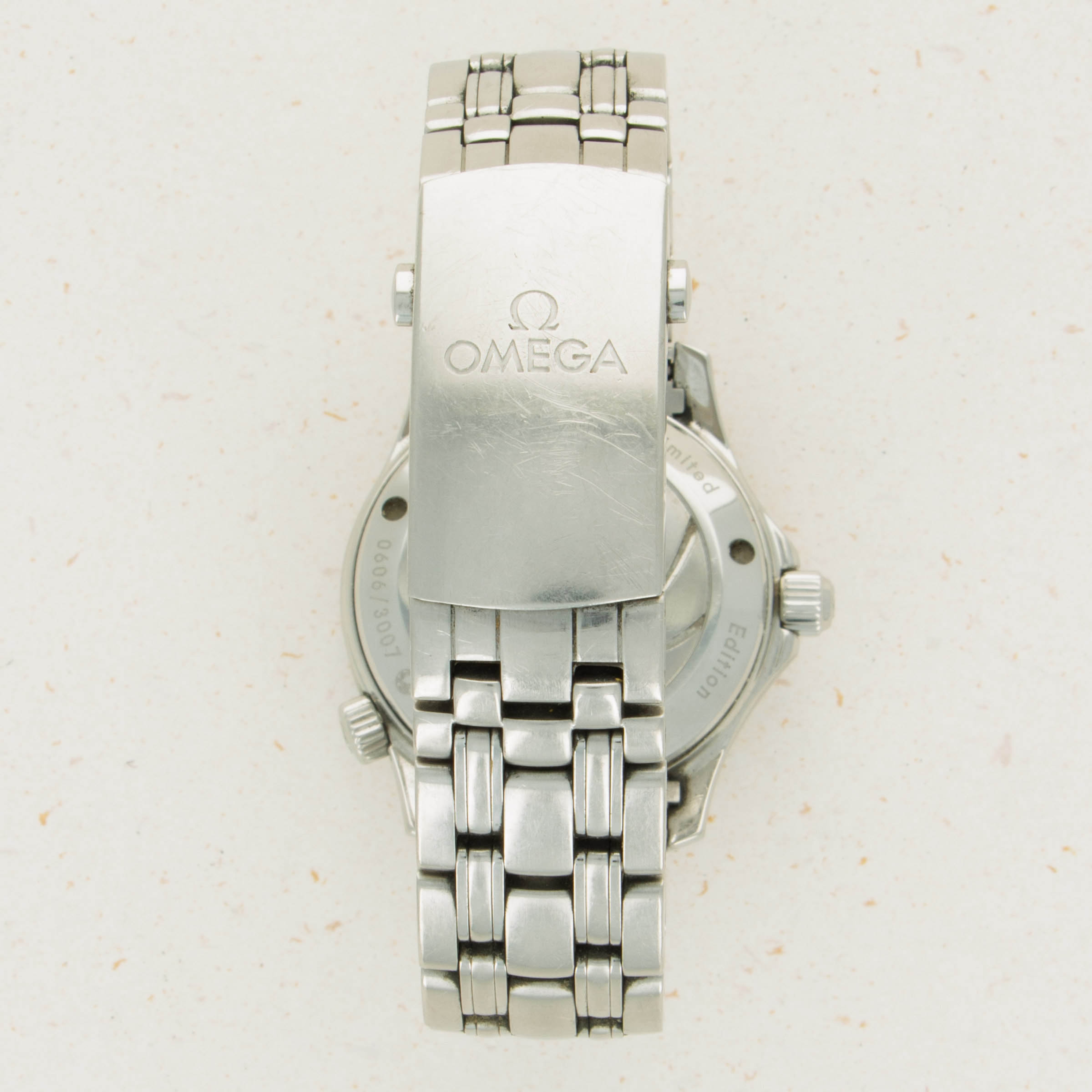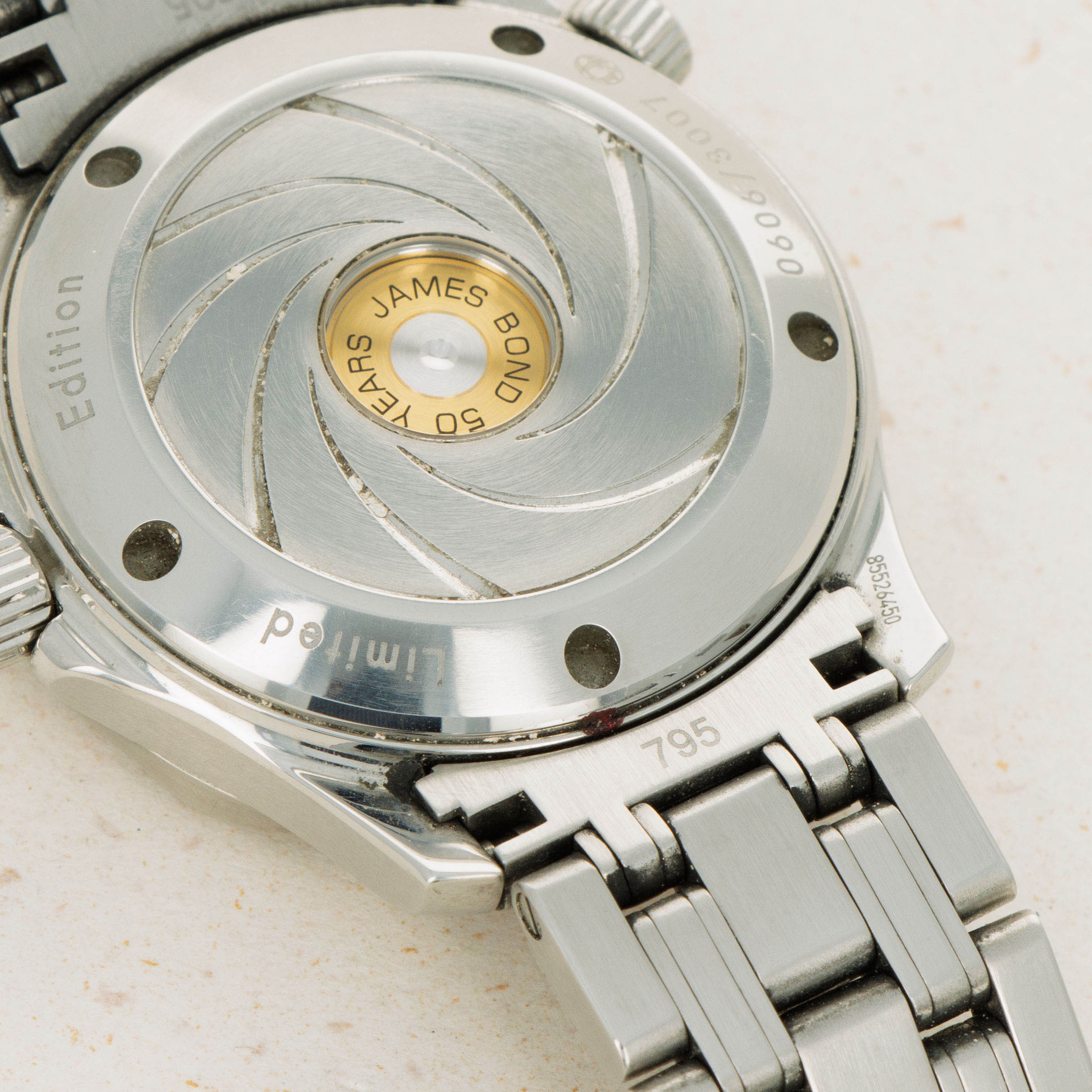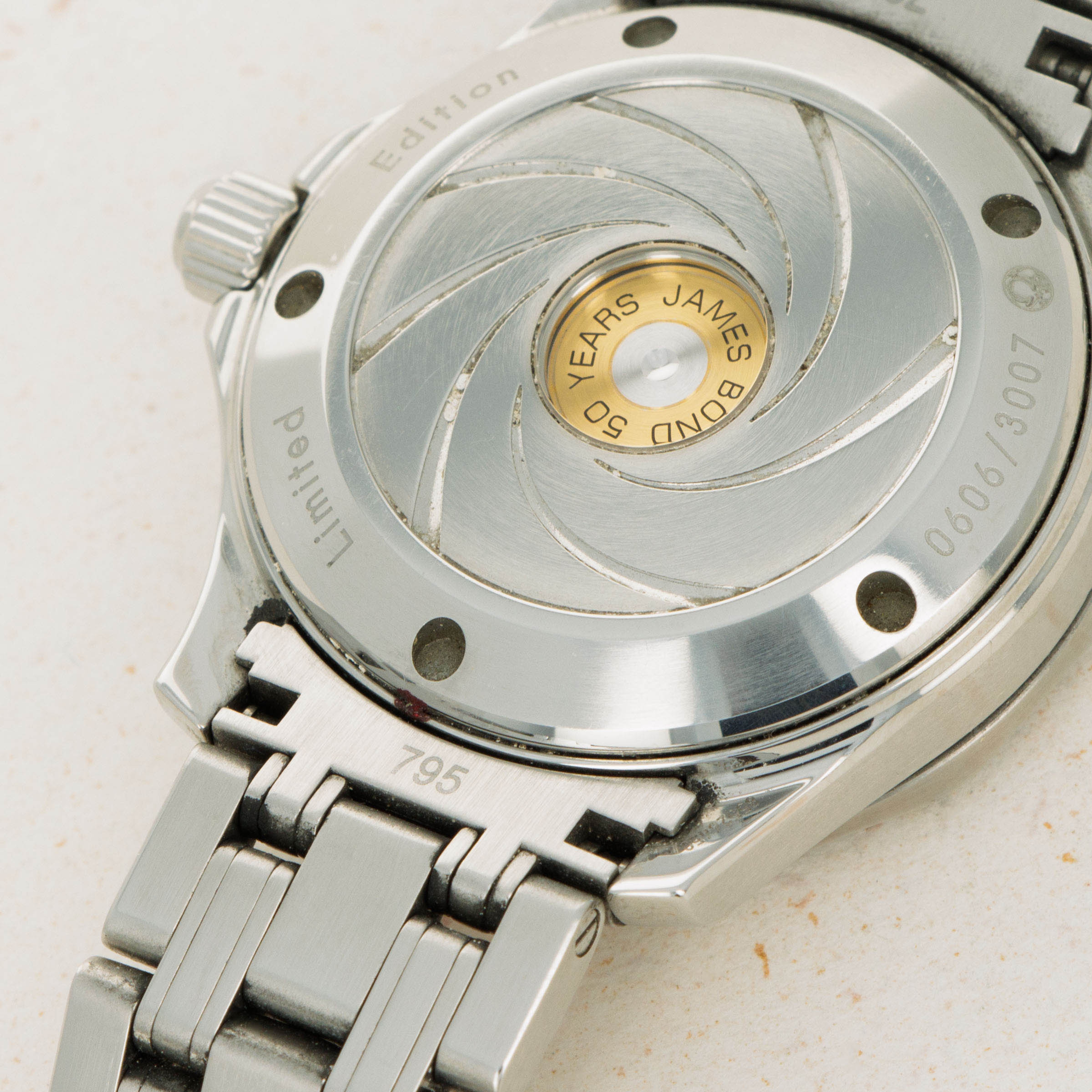 In keeping with James Bond's iconic imagery, this limited edition variant boasts a gun barrel design on its caseback that surrounds the rear of a bullet that is inscribed with "James Bond 50 Years' to ensure there is no confusion as to its inspiration.