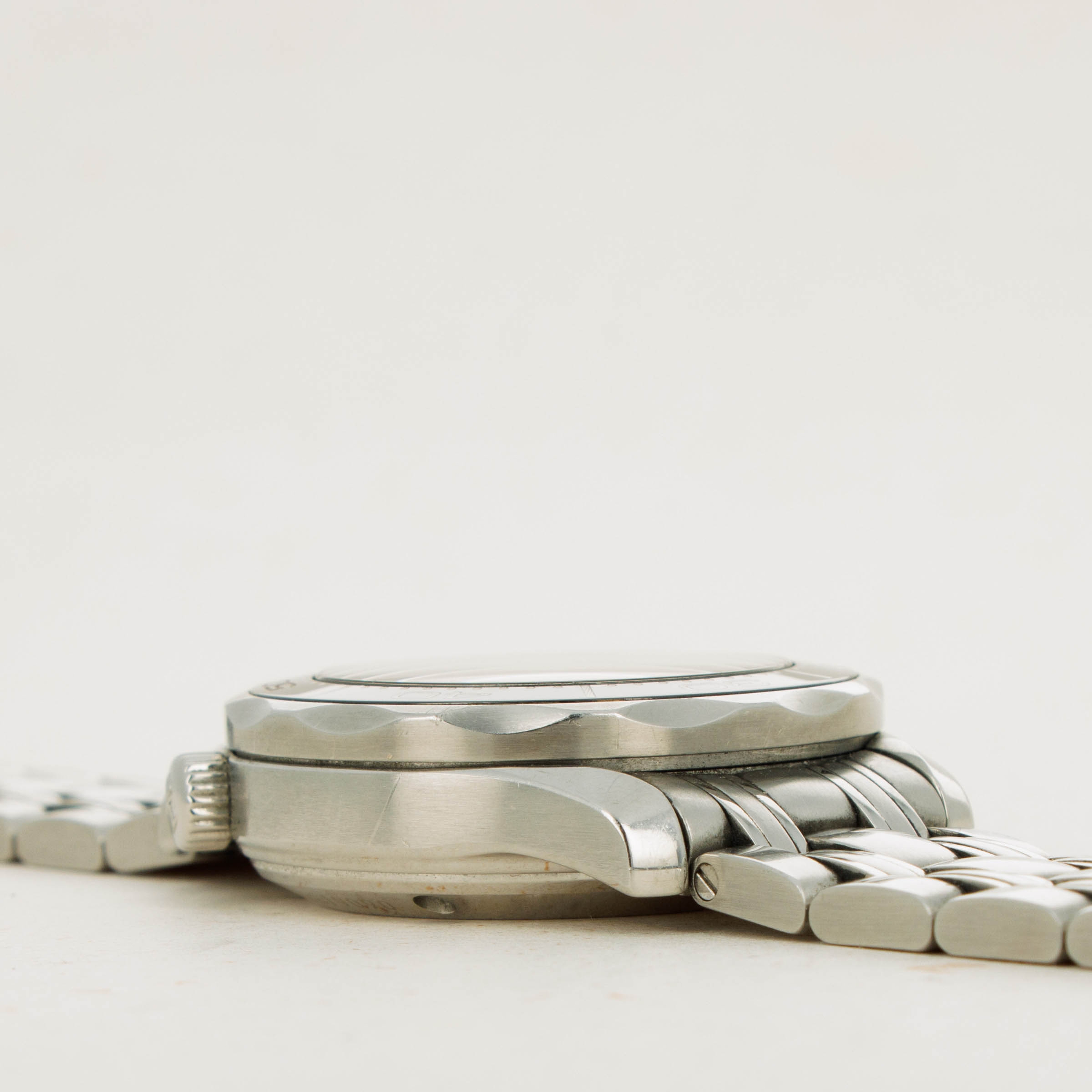 Watch is in very good overall condition. Case shows moderate signs of wear, including scratches visible along the bracelet and case. There is some debris trapped between the case and bracelet end pieces. Dial in near-mint condition with no signs of degredation or wear. Bracelet has 13 full, 2 half links - 5 of which are removable. There are two additional links included on the side of the watch.