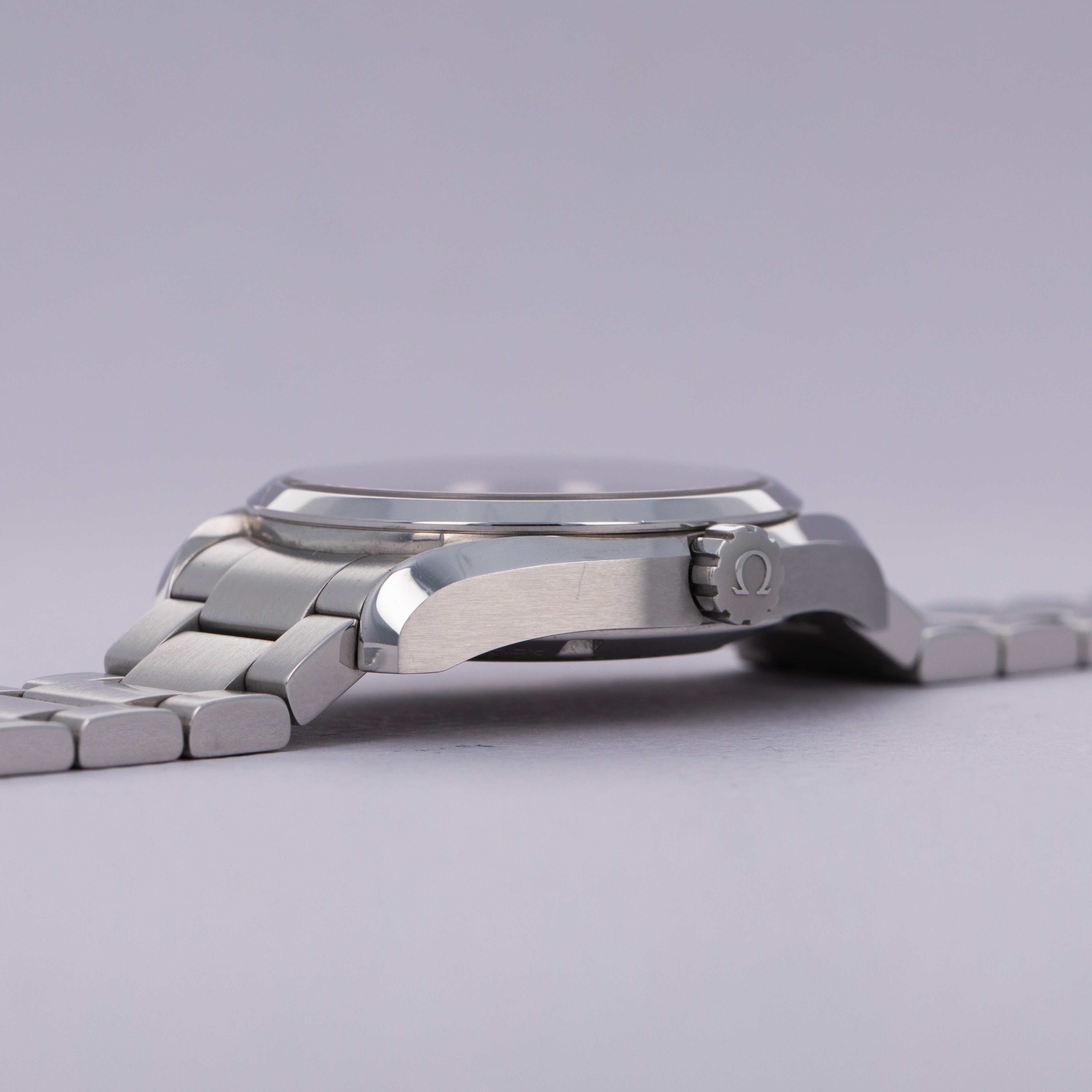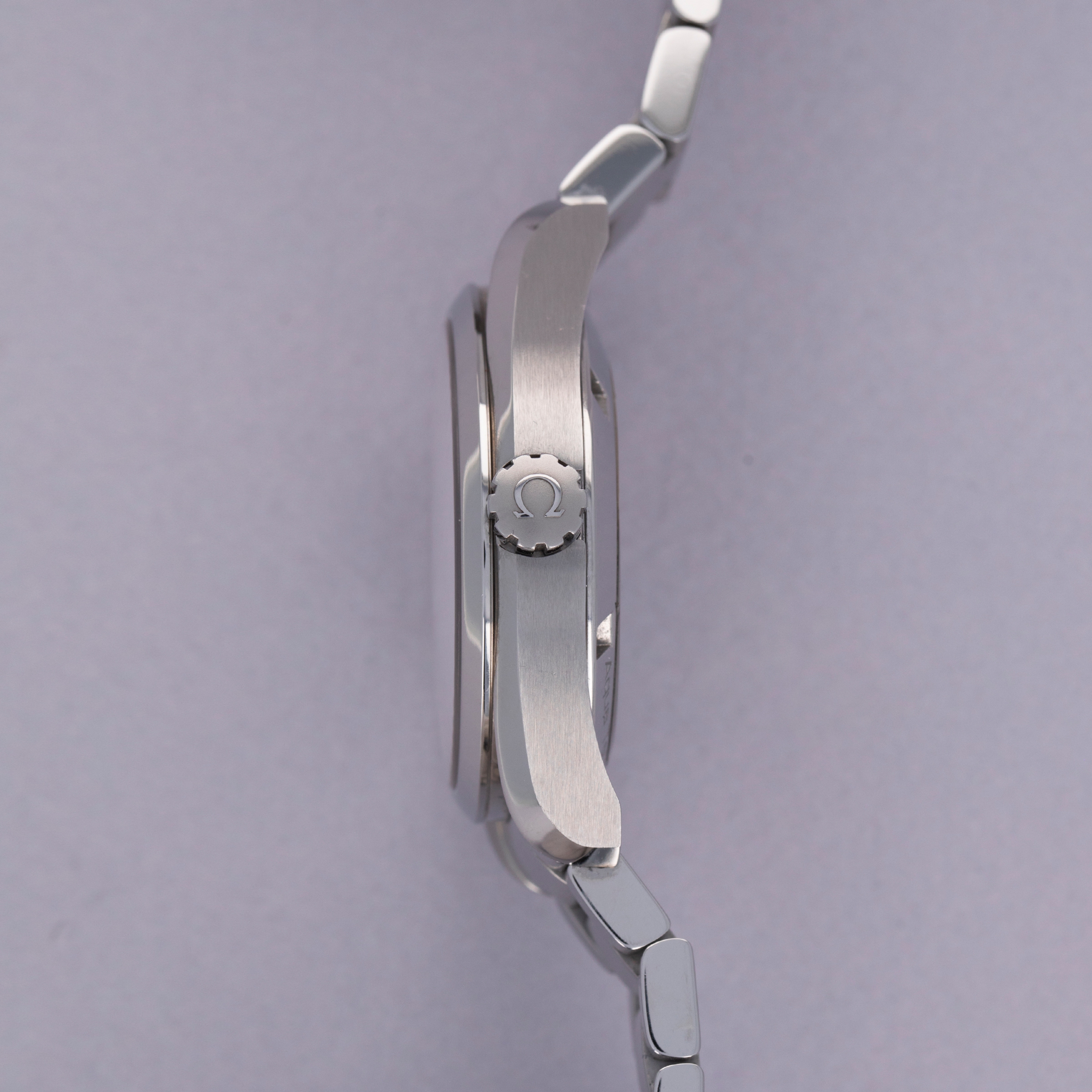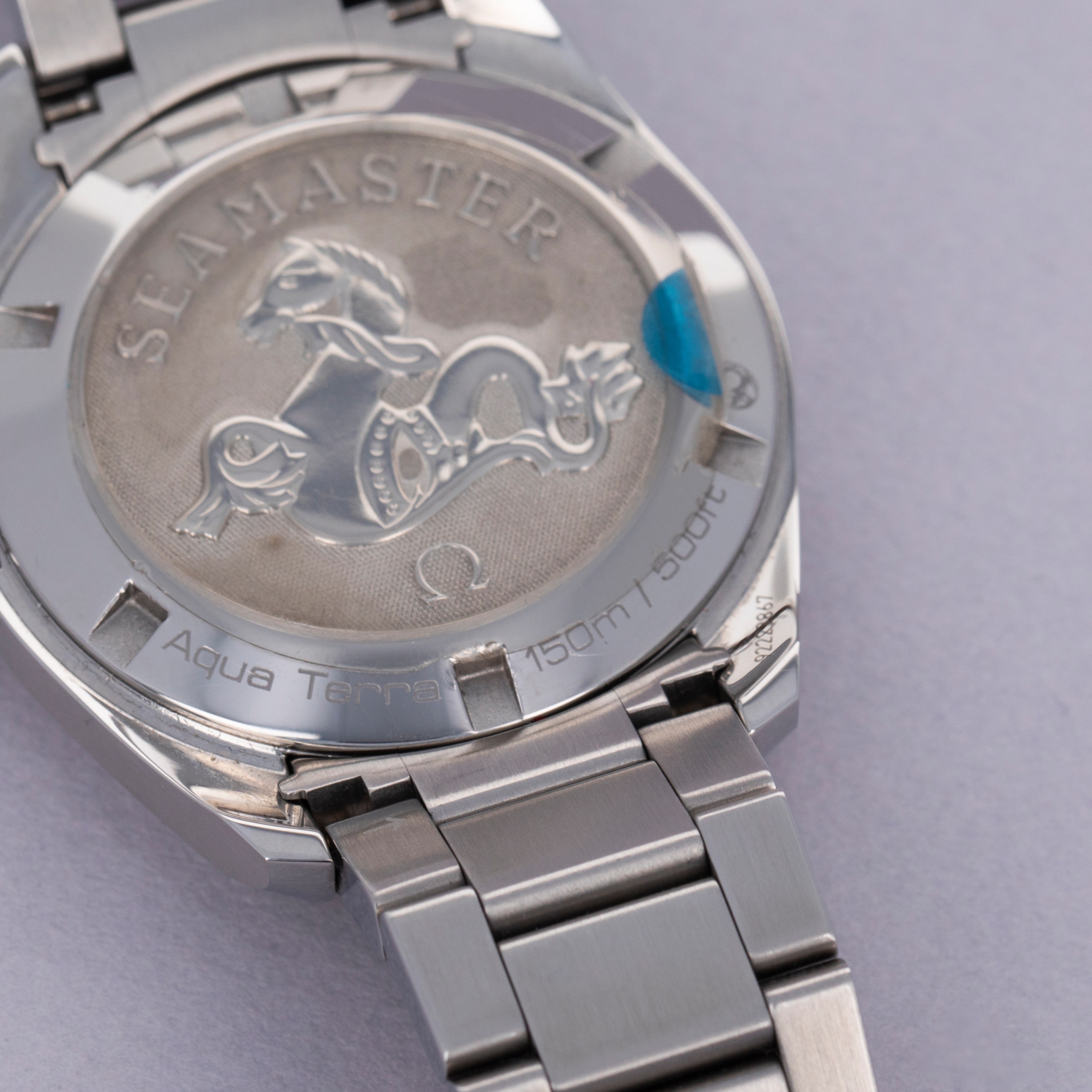 Boasting the Royal Jordanian emblem at 12 o'clock on its black pinstripe dial, this Aqua Terra's status as a royal gift is immediately obvious.