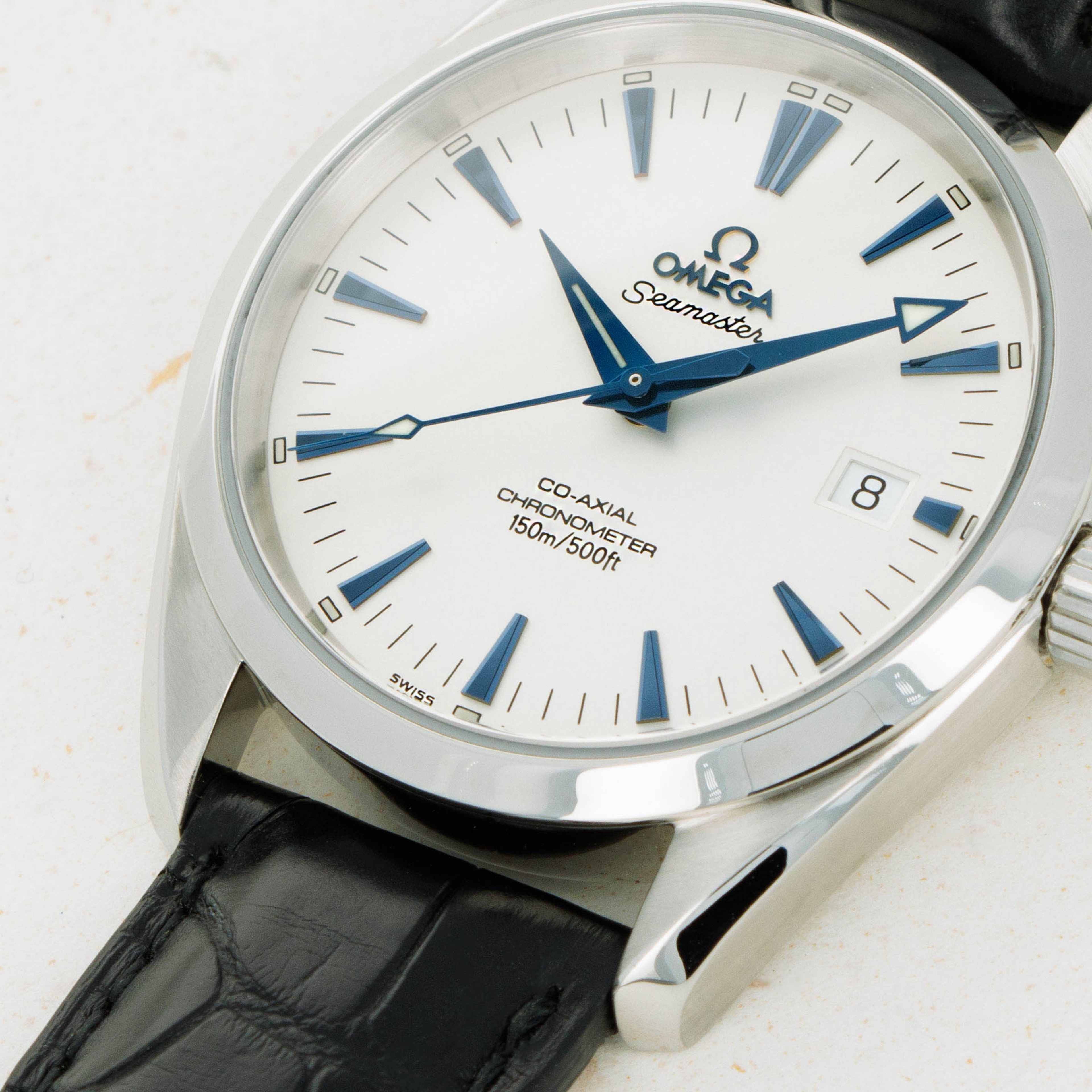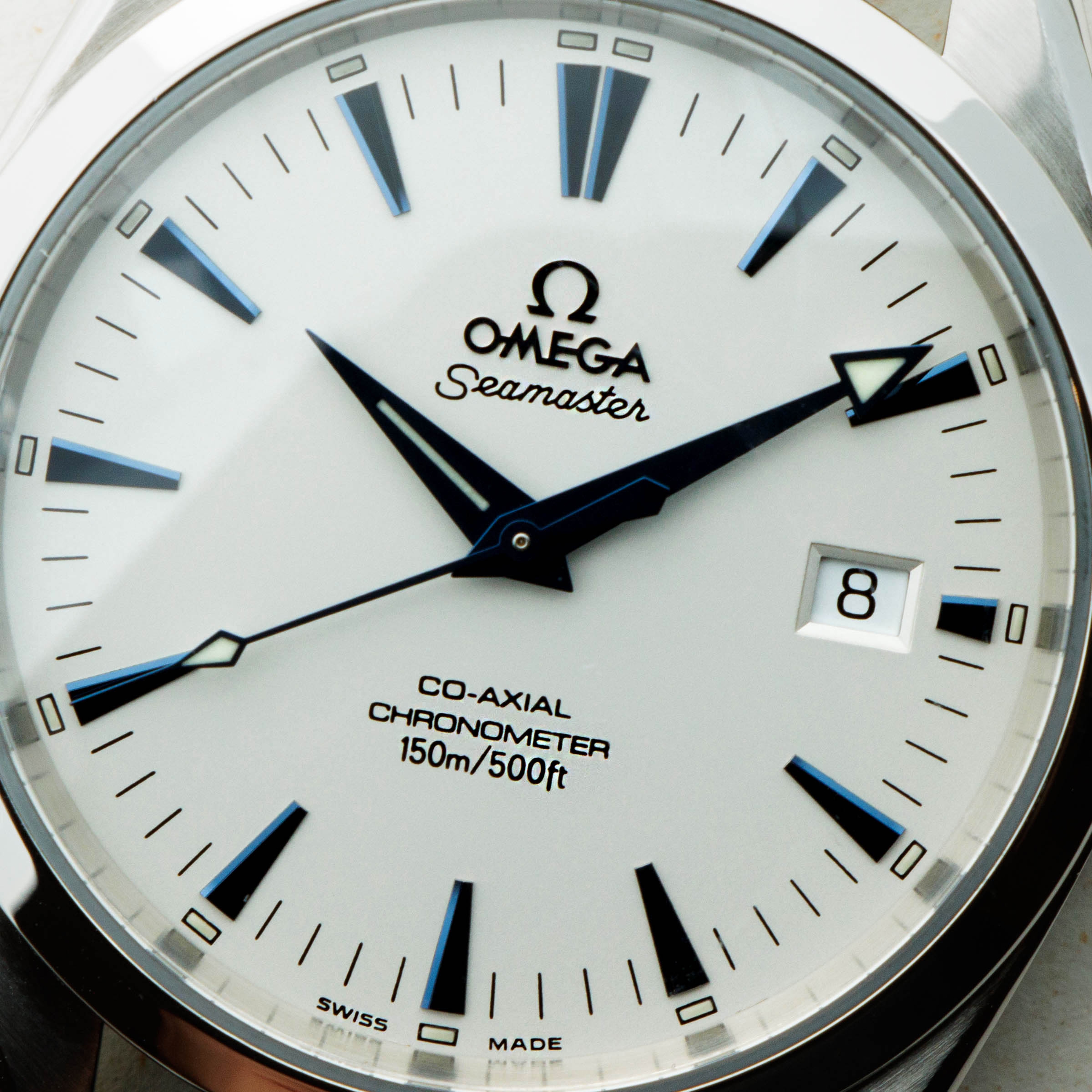 While their dive watches and chronographs are typically the first of Omega’s watches that come to mind, Omega’s history as a watchmaker is incredibly diverse with large ranges of dress watches offered alongside those tool watches. First launched in 2002 as an expansion of Omega’s Seamaster 120 collection, the Seamaster Aqua Terra collection was created as a means to speak to the brand’s classical DNA while appealing to the Seamaster’s rugged dive watch design. As a result, the Aqua Terra features a hybrid design that is incredibly versatile. Often cased in stainless steel, the Aqua Terra features a slightly more traditional design language with fixed smooth bezels, decorated dials and a date function. However, in a bid to speak to the Seamaster’s heritage, the Aqua Terra also features 150m of water resistance, much like the ref. 2803.33.37 that we have here. Added to the collection in 2003, the ref. 2803.33.37 is powered by Omega’s automatic Co-Axial cal. 2500 movement, which is far more efficient than traditional lever escapements. With its crisp white dial and blued steel hands and hour markers, the ref. 2803.33.37 is a visually striking watch deserving of the industry shaking Co-Axial movement that resides within its 39.2mm stainless steel case.