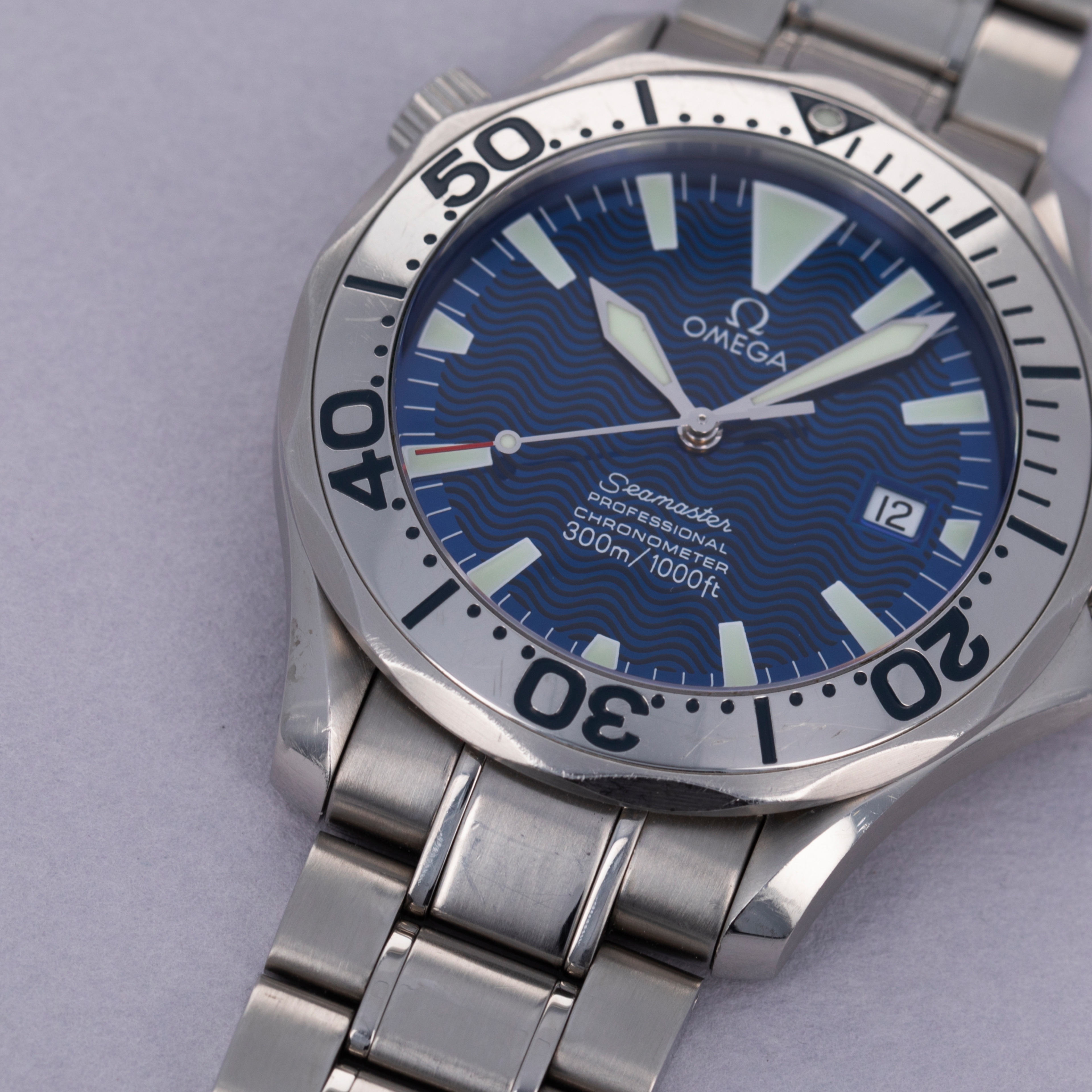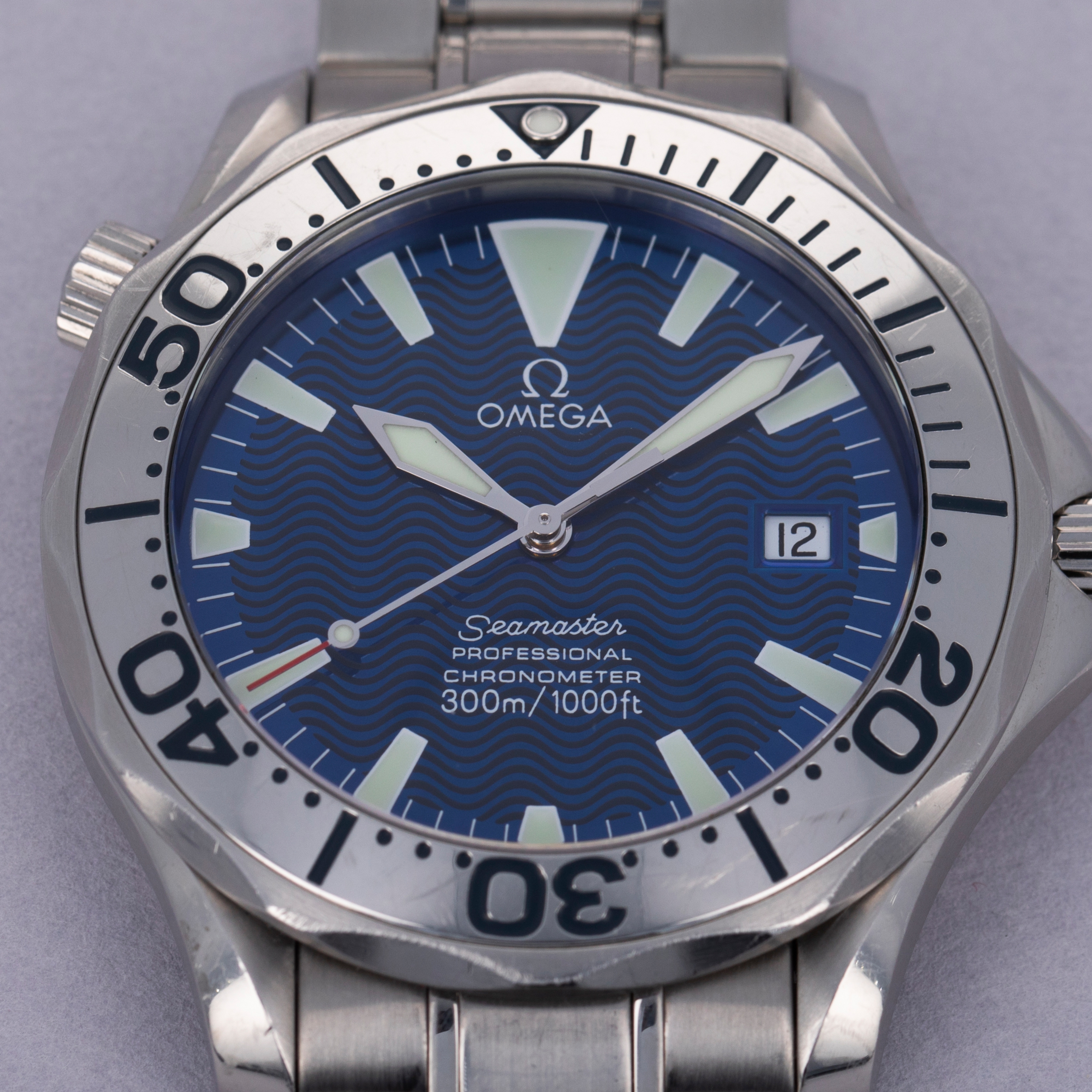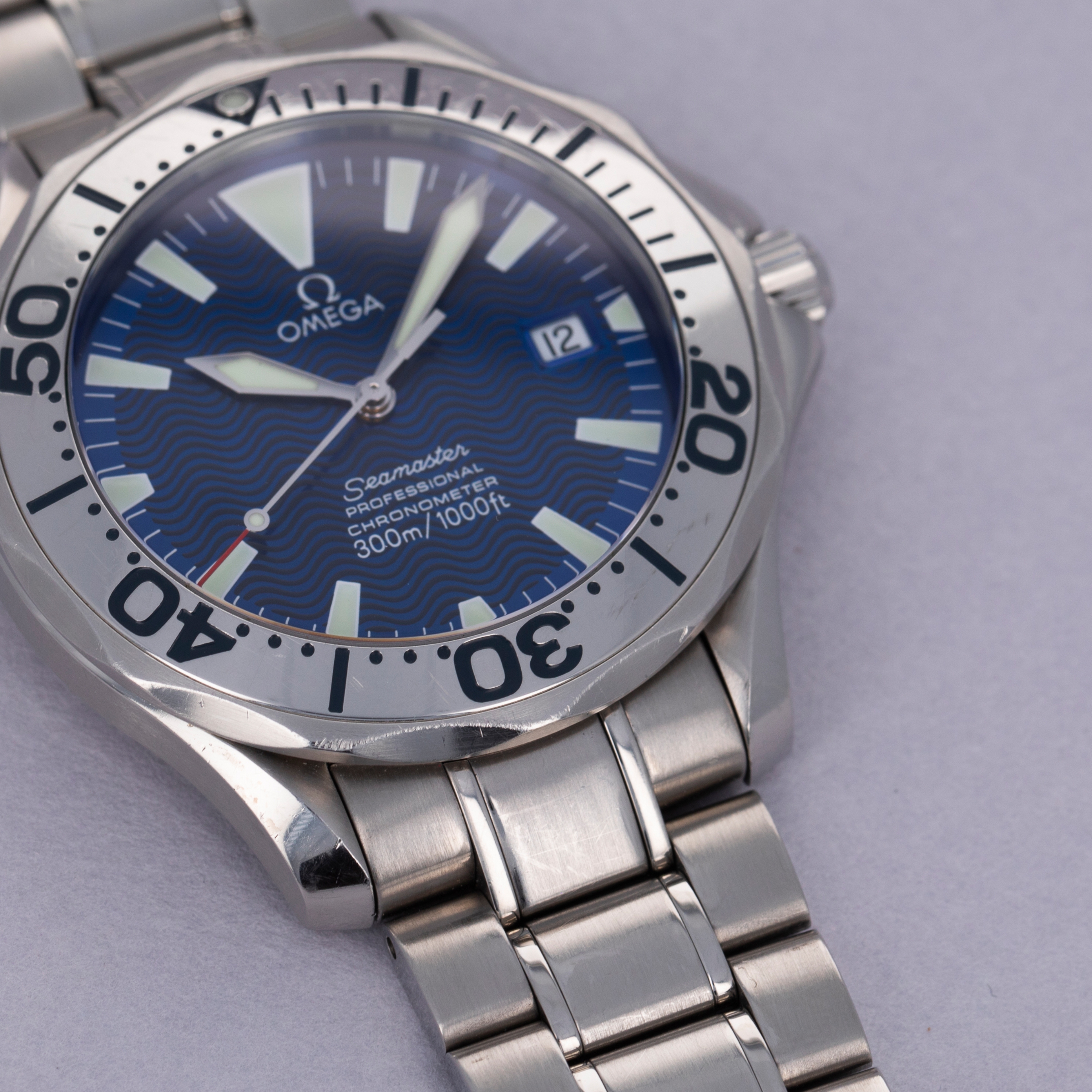 Initially released in 1948 and based on watches used by airmen in WWII, the Omega Seamaster has become one of Omega’s best-known collections. Initially, a dress-style watch with thick lugs, the Seamaster was designed to promote daily wear while remaining functional for use in water with 62.5 meters of water resistance. However, the modern Seamaster that we know and love today was born nine years later, in 1957. This was when the Seamaster 300 was released after Omega was inspired to upgrade the Seamaster after they had 50 Seamaster cases with rubber O-ring gaskets tested in 1955, which led them to work with new materials and push their boundaries. As a result, they created the Seamaster 300, which featured a heavily luminescent dial and handset, a rotating bezel, a thick domed hesalite crystal, and double crown seals. Interestingly, while named the Seamaster 300, the watch was originally only rated for 200m of water resistance, with Omega insisting the watch could outperform the testing equipment. Either way, the Seamaster lived on as James Bond's watch of choice and now enjoys the privileged position in today’s market as one of the most iconic dive watches ever released. Offered here we have the Seamaster ref. 2257.80.00, a limited edition release of 150 pieces that was created specifically for the UK’s Royal Navy with a commemorative caseback sporting the Royal Navy’s emblem. Boasting a bright electric blue dial with a wave pattern, large bright luminous hour markers, sword-shaped hands, and a steel bezel, the ref. 2257.80.00 offers the foundation of the Seamaster’s aesthetic within a unique and rare package.