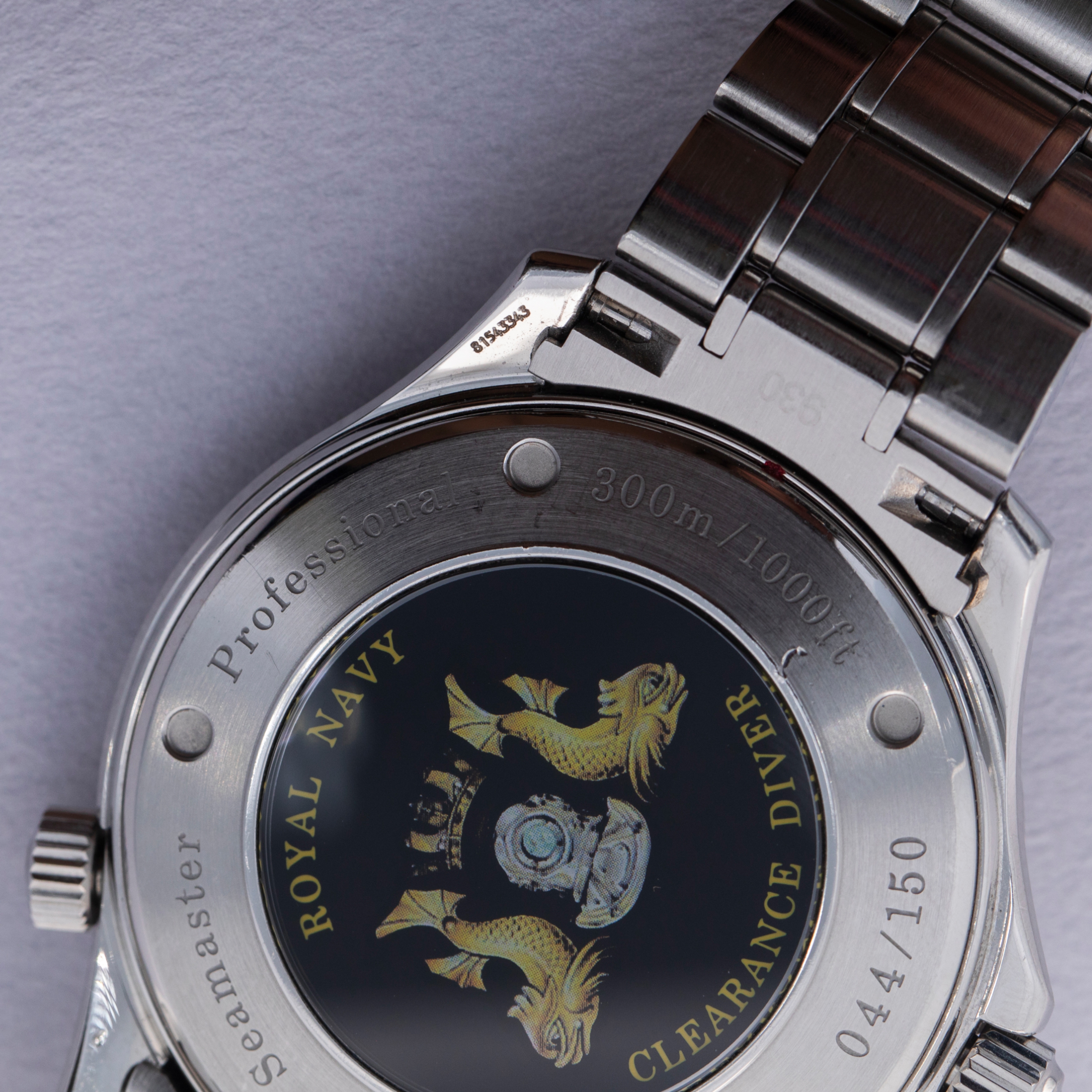 Boasting a commemorative caseback with the Royal Navy Clearance Team's emblem, the ref. 2257.8 was offered as a limited edition release of 150 pieces for the UK Royal Navy's bomb disposal team.