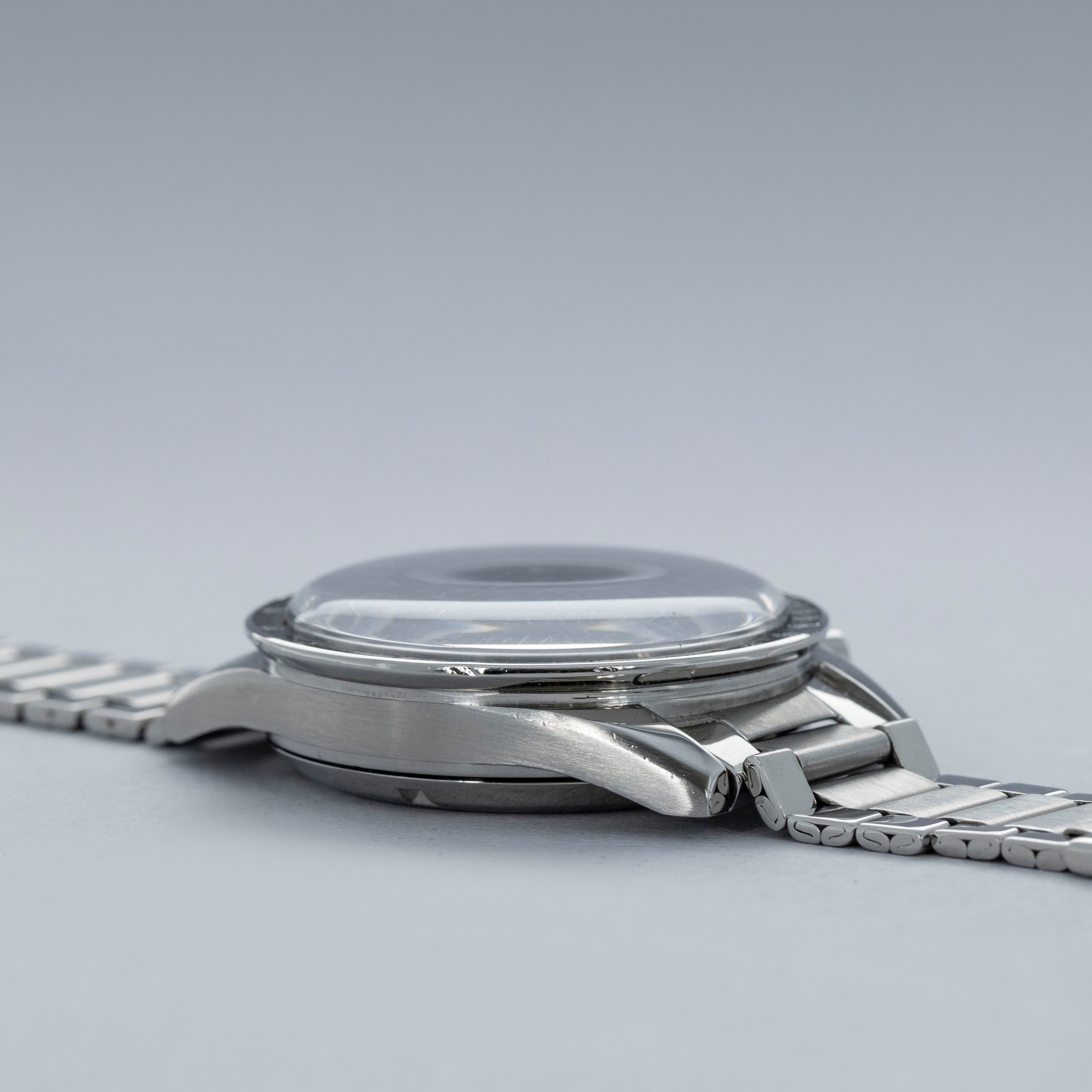 Watch is in overall very good condition. The steel case shows surface scratches and marks as expected of a watch of this vintage. The case back shows wear to the engraving along with nicks and scratches. The bezel remains excellent, with some marks visible on the black insert. The dial is a later “Professional” signed dial. It shows light surface marks and the lume has degraded and discolored. The central hour and minute hands have missing lume with some loss of white paint, while the chronograph hands show surface scratches. It is fitted with a 7912 steel bracelet showing surface scratches and moderate play between the links. The bracelet is fitted with 22 links and fits approximately an 8” wrist.