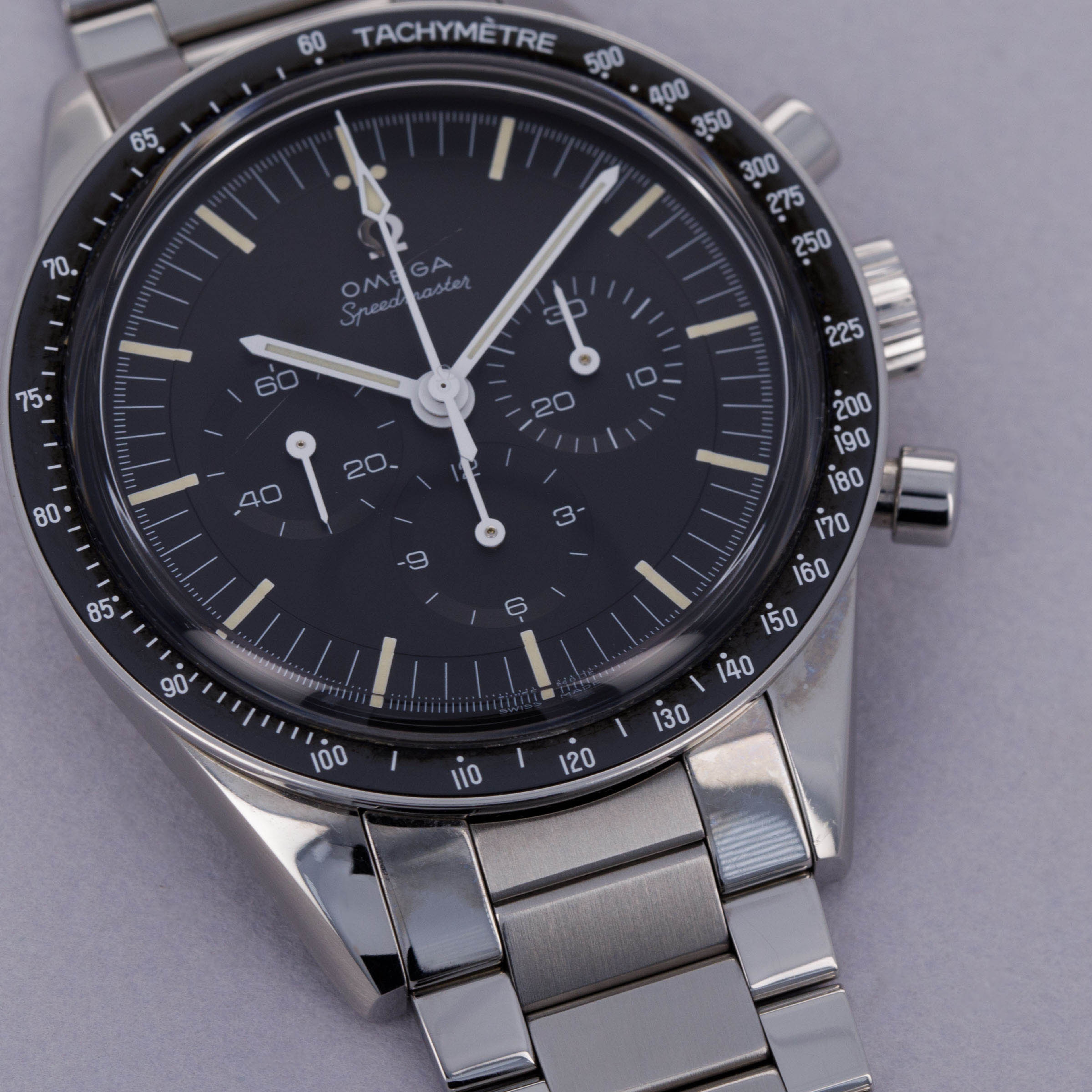 The last Speedmaster to use straight lugs, only 39.7mm instead of the Speedmaster Professional's 42mm case and offered on a flat link bracelet, the Ed White Speedmaster has a unique presence on the wrist when compared to other Speedmaster's.