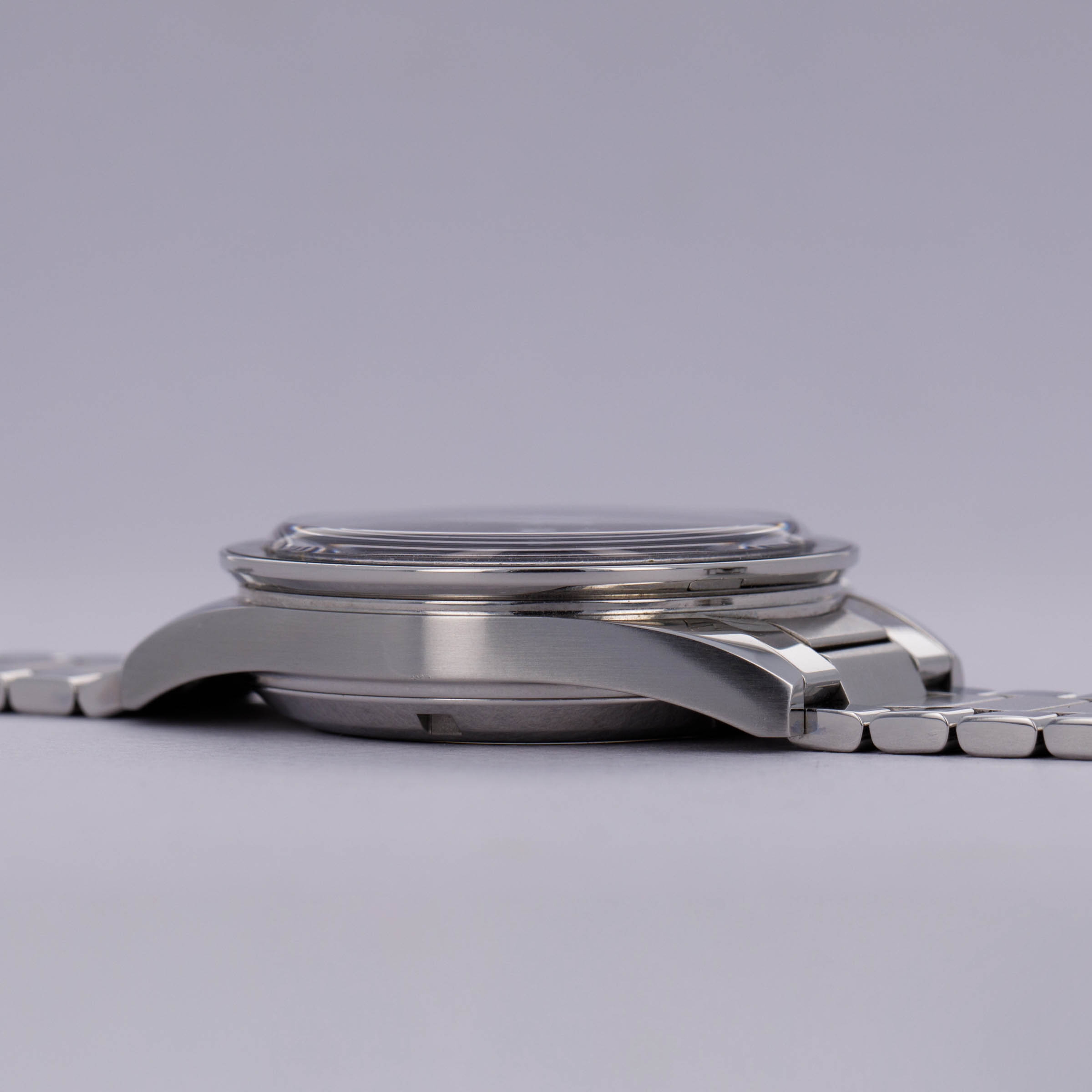 Watch is in near-mint overall condition. The watch show some fine hairlines and marks, visible primarily on the polished surfaces of the lugs and bracelet links. The watch is sized currently for a 6 1/2" wrist, and the removed links are included with the watch.