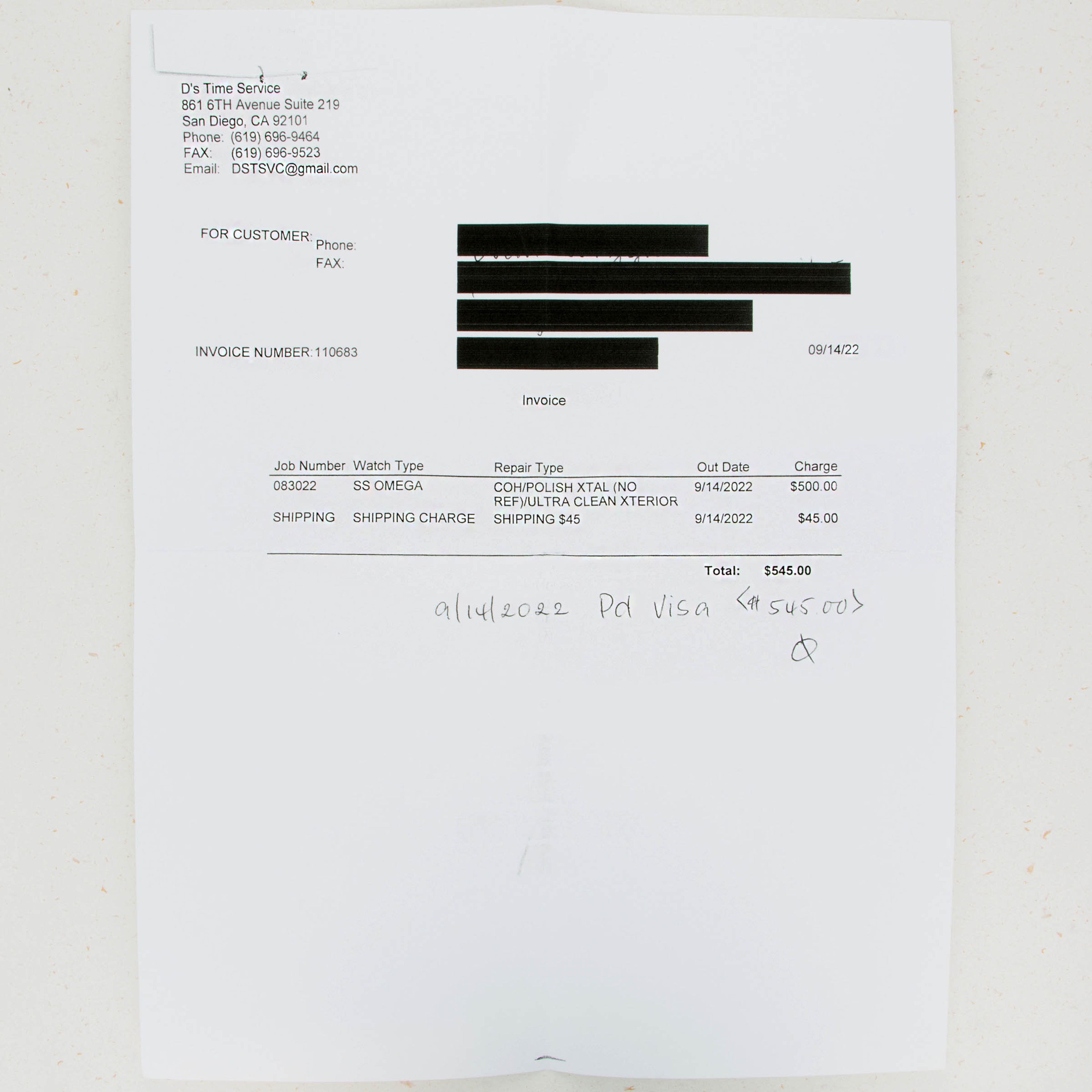 Watch, box, papers and booklets