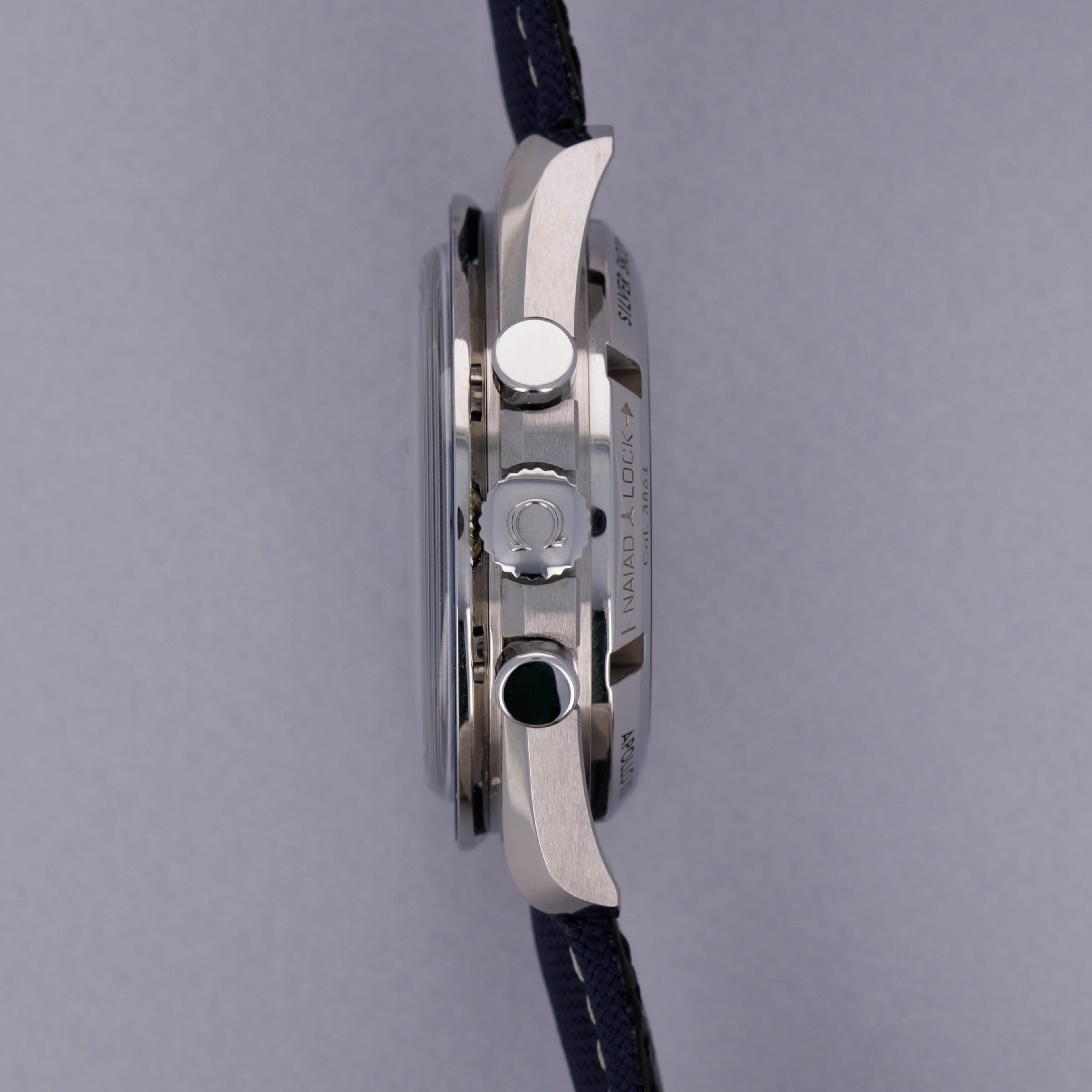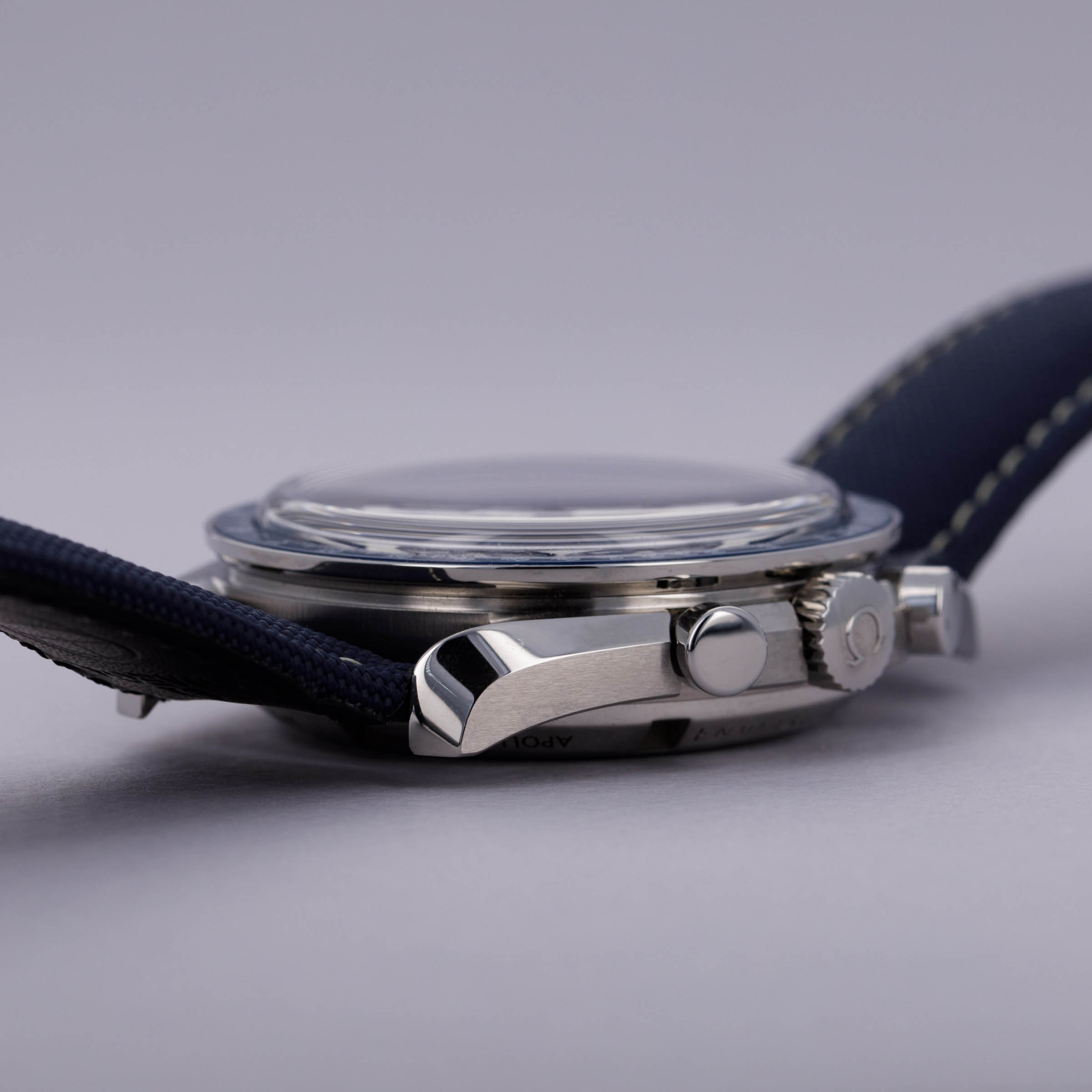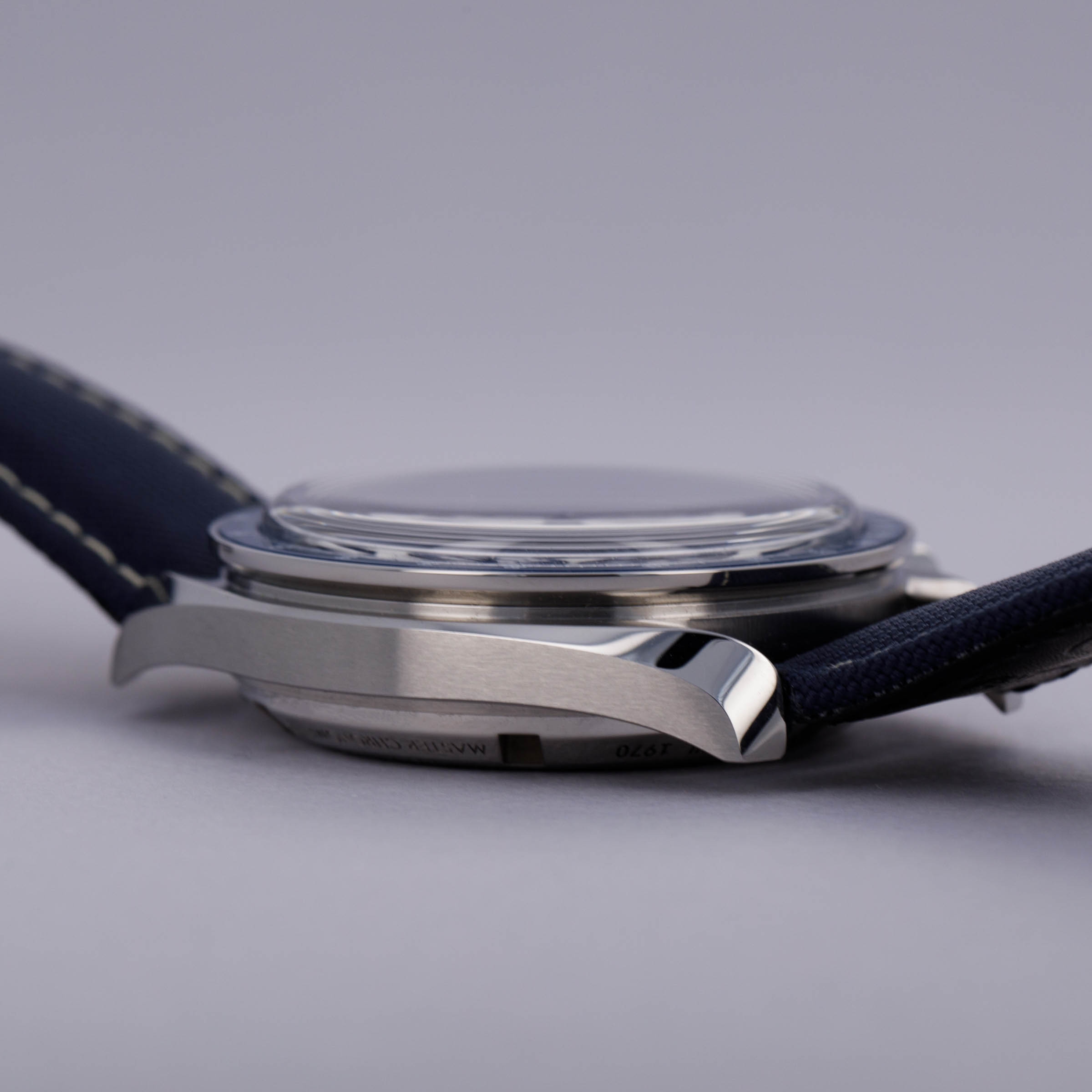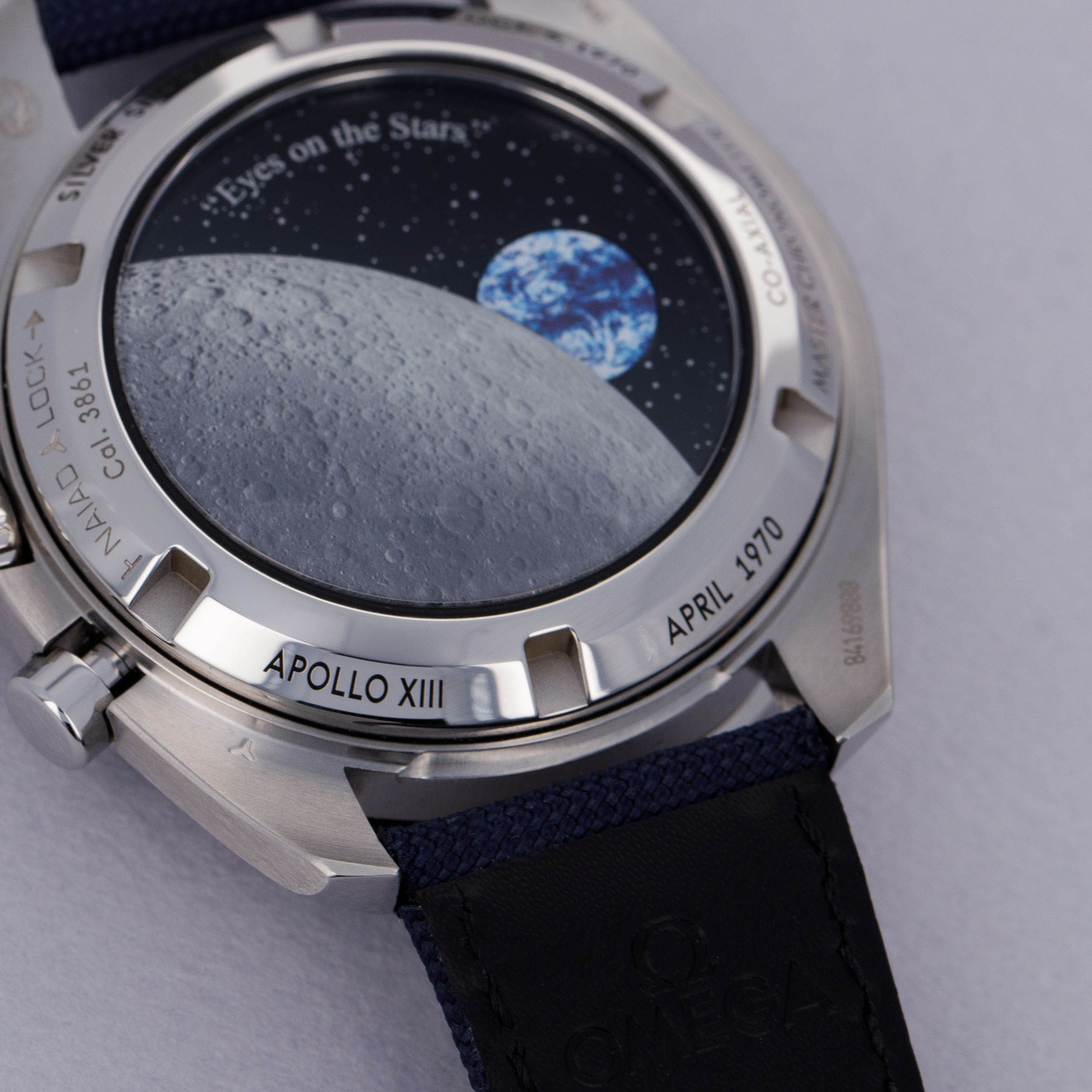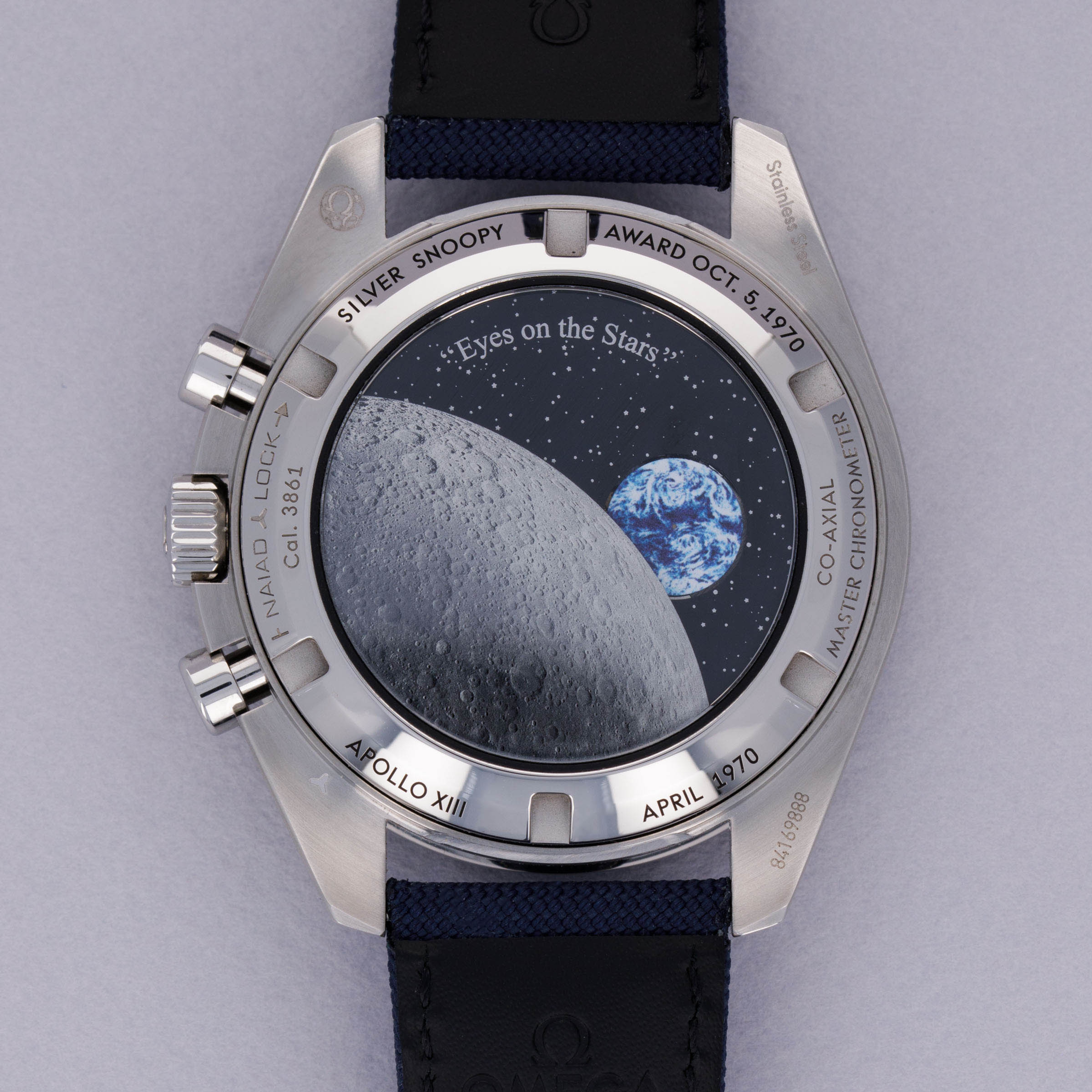 Following Omega’s contribution in the safe return of the “successful failure” Apollo 13 mission (after the mission had to be aborted), NASA awarded Omega with their Snoopy Award on the 5th of October, 1970. This was for their exceptional contribution to the success of what would have otherwise been a tragedy should the crew not have had their Speedmasters with them to time their re-entry into Earth’s orbit. To celebrate this honor, Omega released the “Blue Snoopy” Speedmaster ref. 3578.51.00 in 2003, again in 2015 and most recently in 2020 for the 50th anniversary. Paying homage to the illustrious award, this latest release boasts a depiction of Snoopy in its 9 o'clock subdial and is perhaps the most visually distinctive of the three-anniversary models. With a white dial made of silver, just like the award, the hands, indices create a stark contrast to the dial via their blue PVD coating. Continuing with this blue theme, the subdials and bezel are also the same blue colour, as is the nylon fabric strap. While the watch looks stunning from the front, the real surprise is with the caseback where it features a depiction of the Moon, Earth, and a white Command and Service Module (CSM) with Snoopy riding along inside. Looking to take this caseback to the next level, Omega created a 'magic hand' which allows Snoopy's CSM to move when the chronograph is engaged. Travelling around the far side of the Moon, Omega makes a direct reference to the trip the Apollo 13 astronauts were forced to take all those years ago. In addition to this, the Earth itself spins once per minute as it is connected to the seconds hand subdial completing what is a unique and ingenious tribute to the most critical event a Speedmaster has ever been used in.