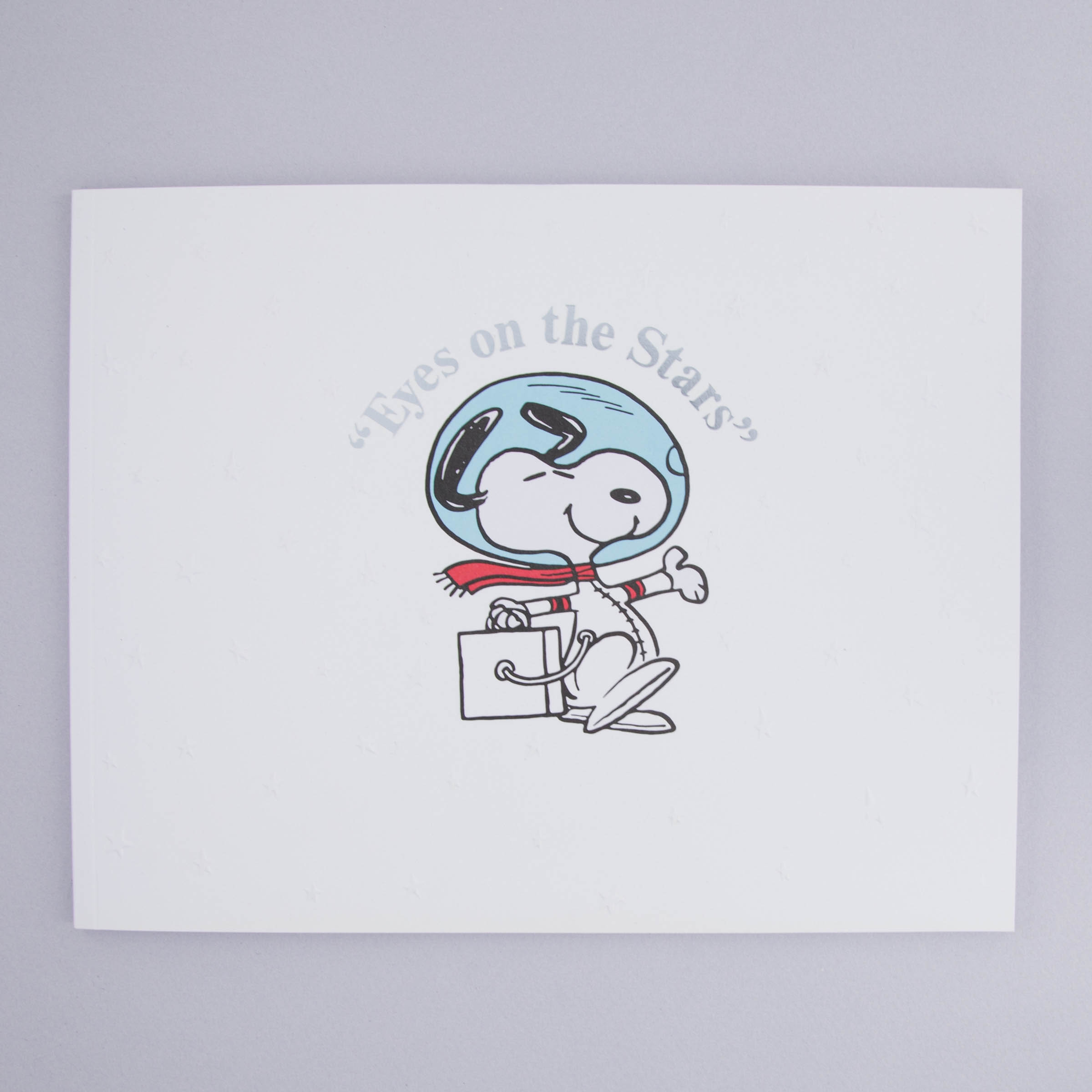Featuring a depiction of the Moon and Earth, the Snoopy's party trick is the white Command and Service Module (CSM) with Snoopy riding along inside that appears from behind the Moon when the chronograph is engaged.