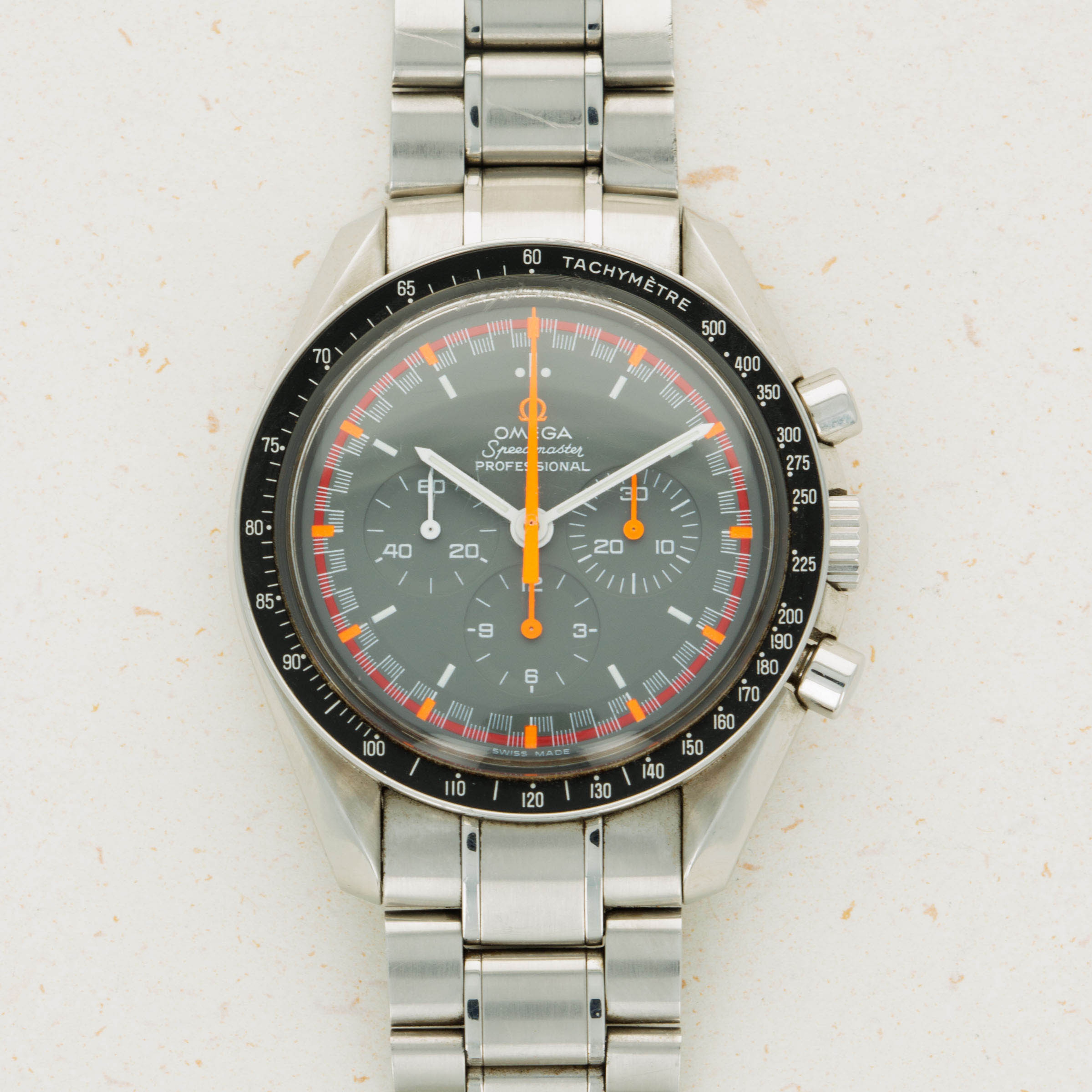 Famed as the watch that was first worn on the moon during the Apollo moon landings, the Omega Speedmaster has long been known as one of watchmaking's most iconic timepieces. However, while its claim to fame is legendary, it was not originally conceived as a watch for space. Instead, it was a watch designed for race car drivers, hence its name. Launched in 2004 as a Japan-only edition of 2004 pieces, the ref. 3570.40 that we have here is a racing dial variant of the Speedmaster that swaps the Moonwatch's typically refined monochromatic dial for a dial with a little more personality. Based on the 1968 racing dial Speedmaster, the ref. 3570.40 features a manual-winding movement, orange chronograph hands, and a red dial periphery with red five-minute markers that embody the colorful spirit of the 1960s that improve legibility. Linked to the Speedmaster's lesser-known heritage, the ref. 3570.40 is a wonderfully unique watch that will certainly be a fantastic addition to a Speedy fan's collection.