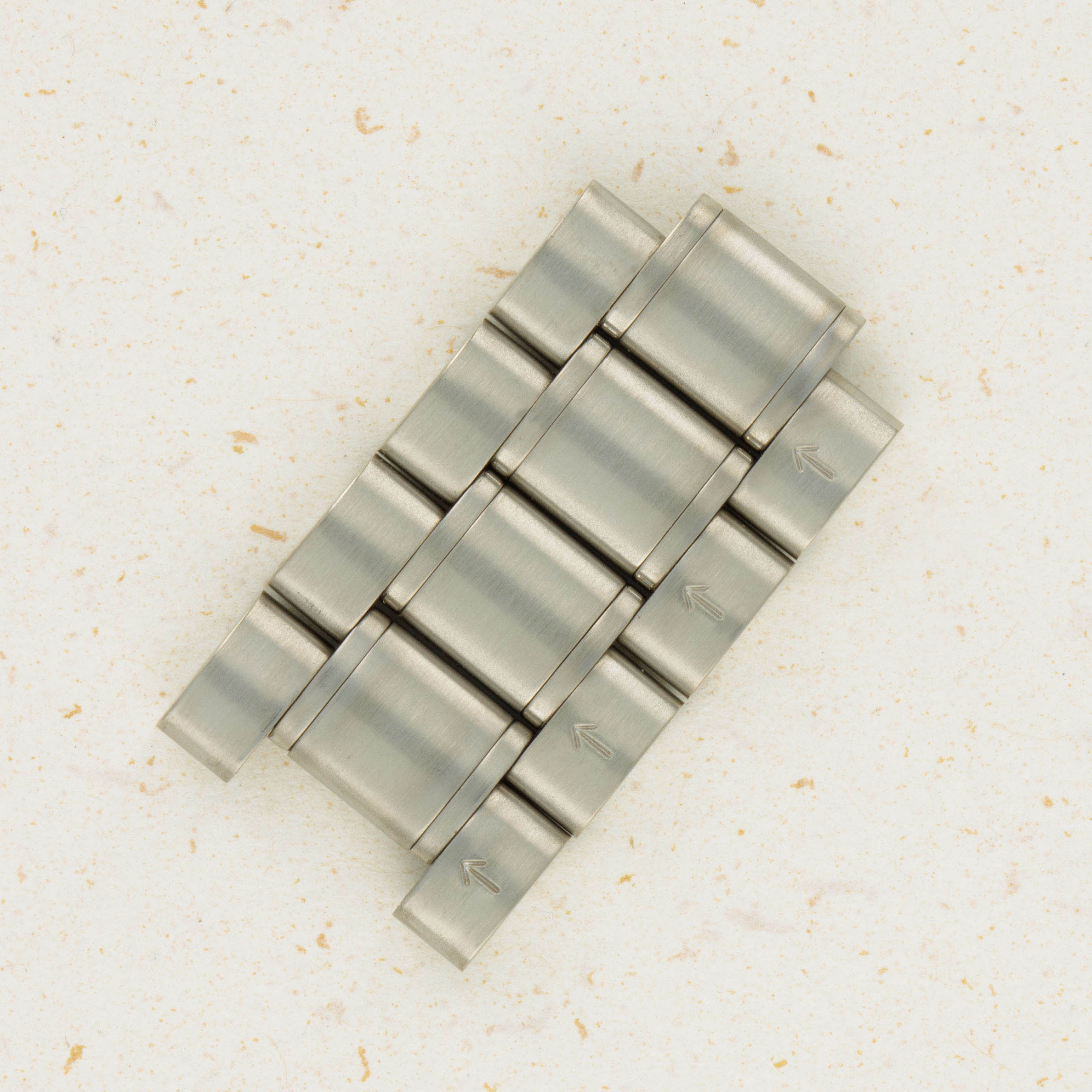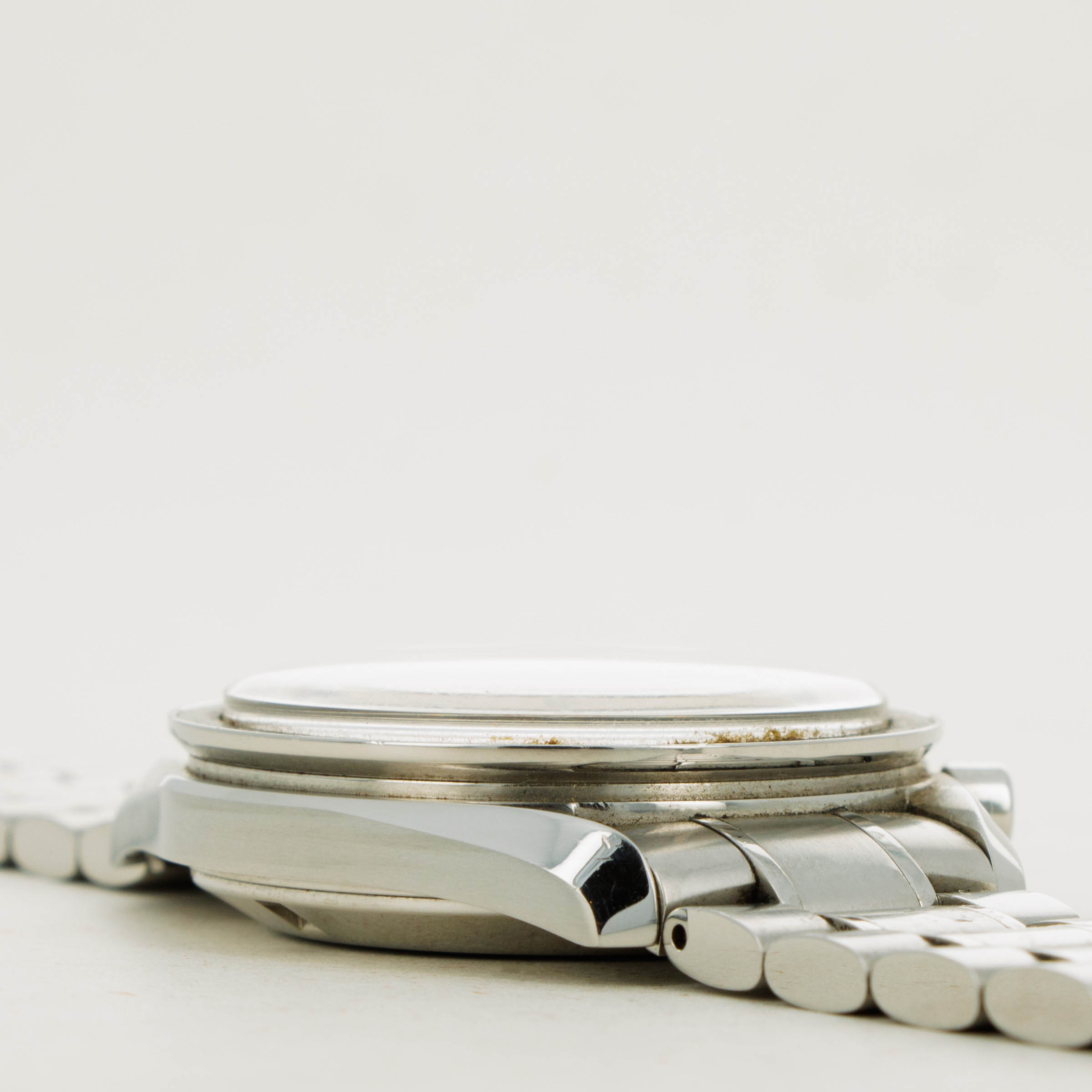 Watch is in excellent overall condition. Case exhibits sharp and crisp edges and minimal surface wear or marks. Enameling in caseback is fully intact and numbers are fully legible. The dial is in near mint condition with little to no wear. The hesalite crystal has scratches as shown in the images. Bracelet has 14 links with 4 removable, as well as 4 extra links on the side. There is minimal stretch.