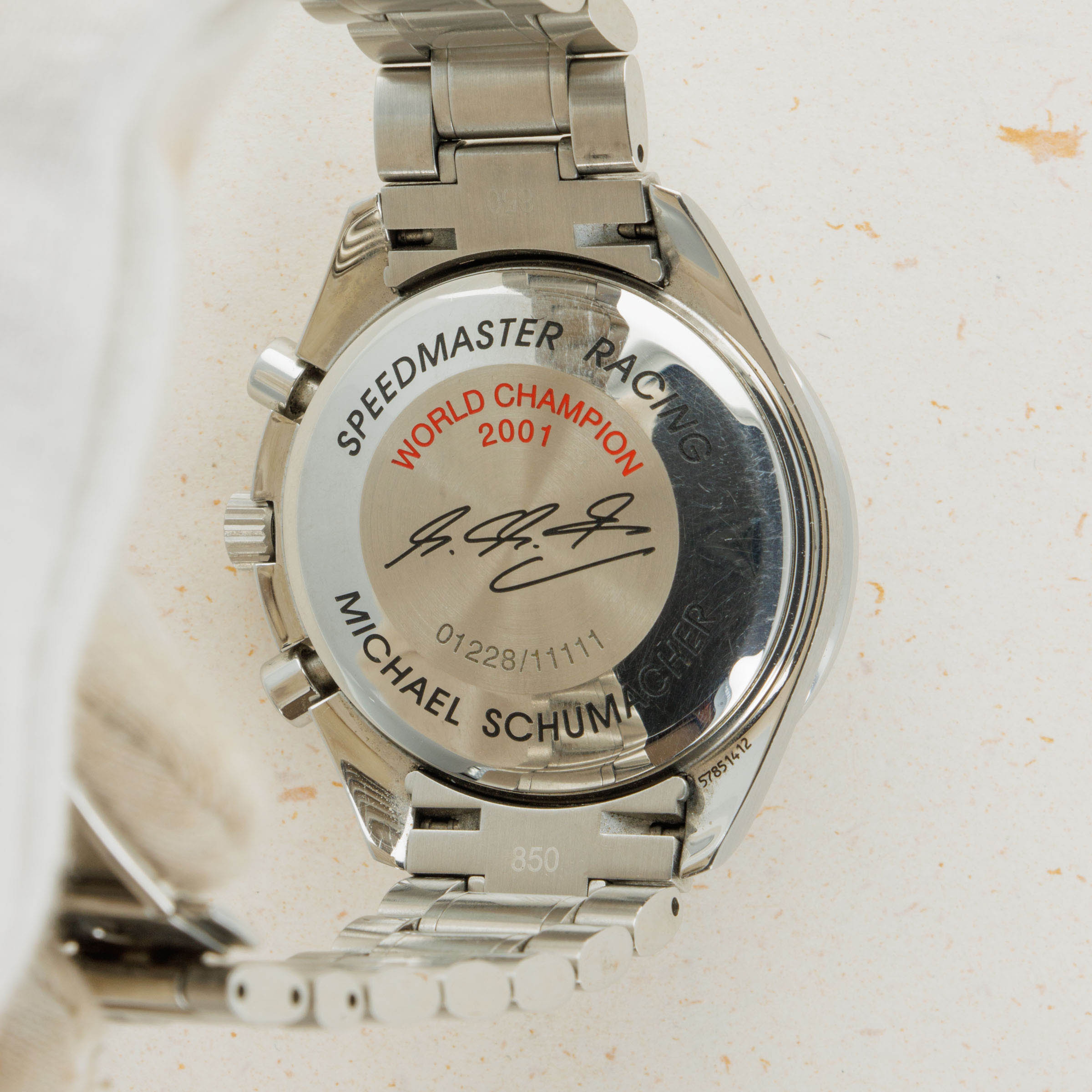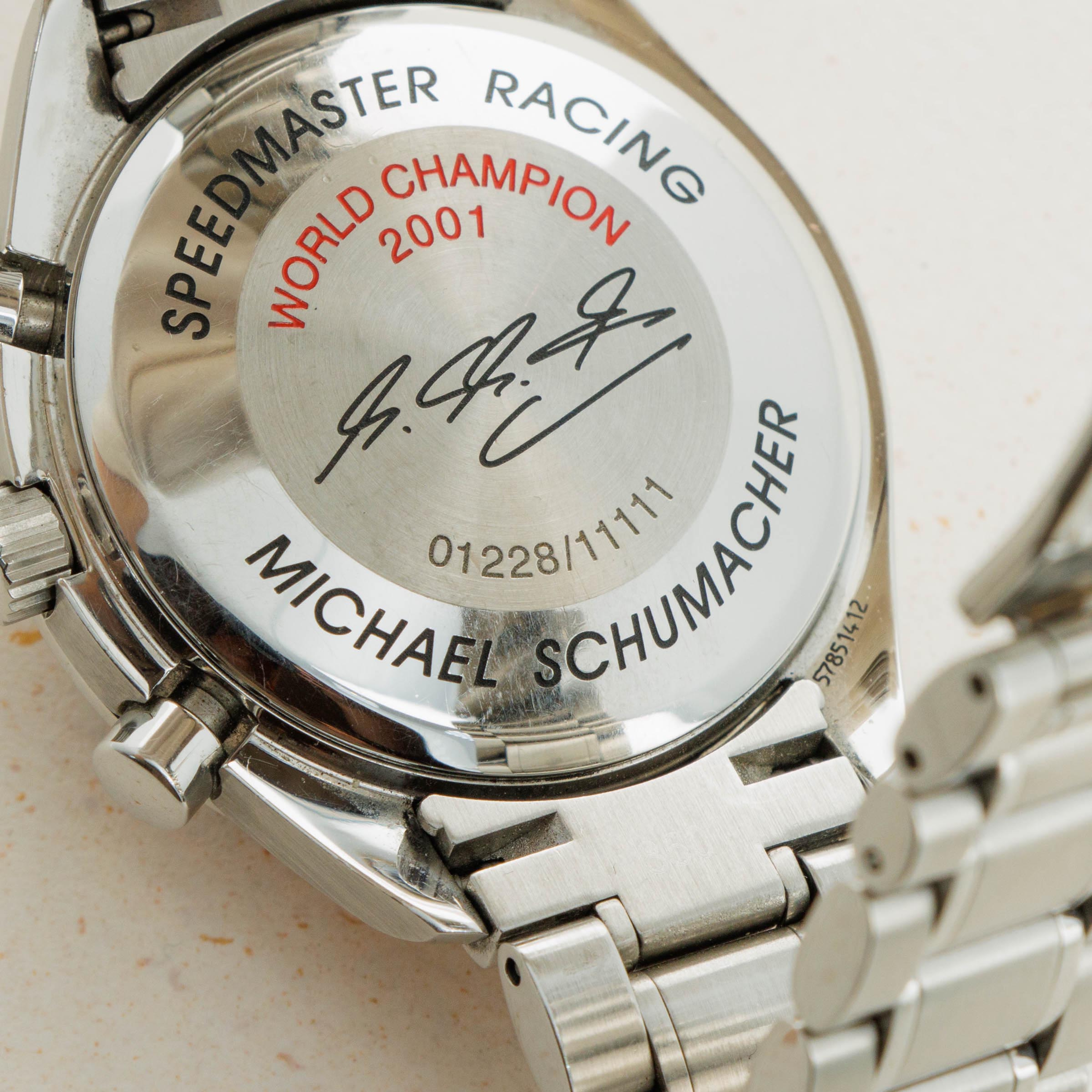 Individually numbered and bearing Michael's F1 World Champion status and his signature, this caseback is a far cry from the caseback generally found on the Speedmaster Racing.
