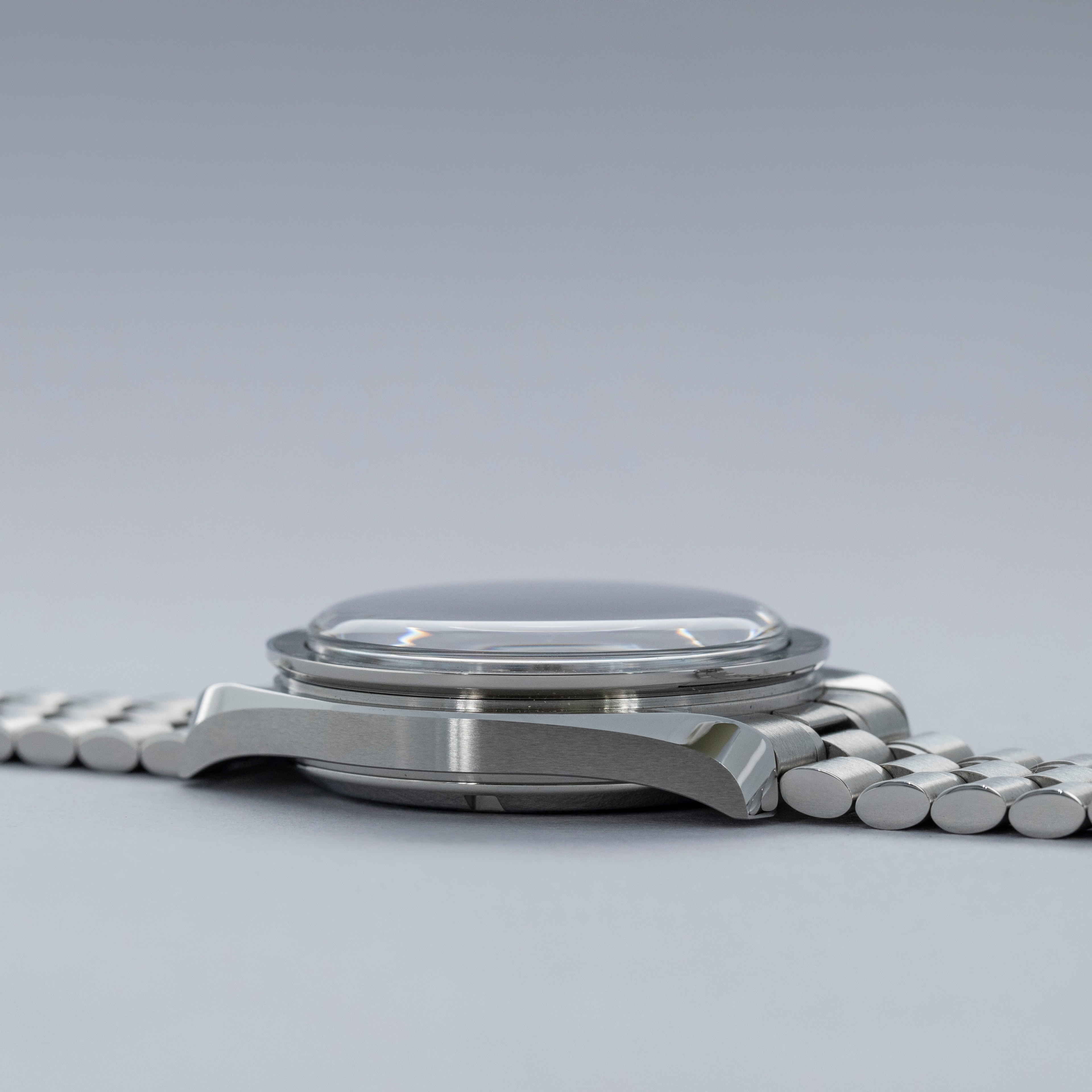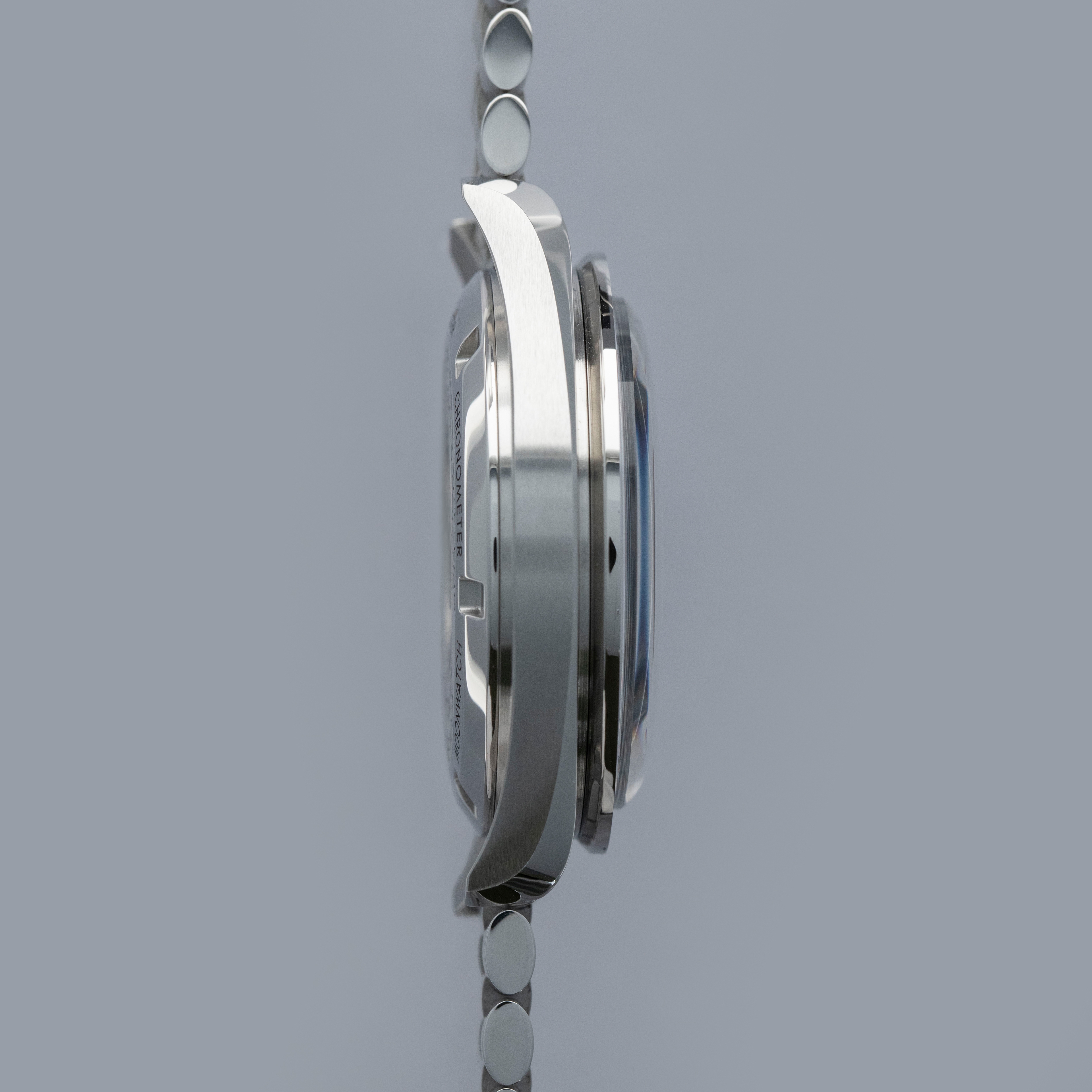 Watch is in overall like-new condition. The case shows only light signs of wear or handling. The bracelet is fitted with 21 links, 7 of which are removable, and fits approximately a 7” wrist. Additionally, there are 5 links included. Comes complete with box and papers.