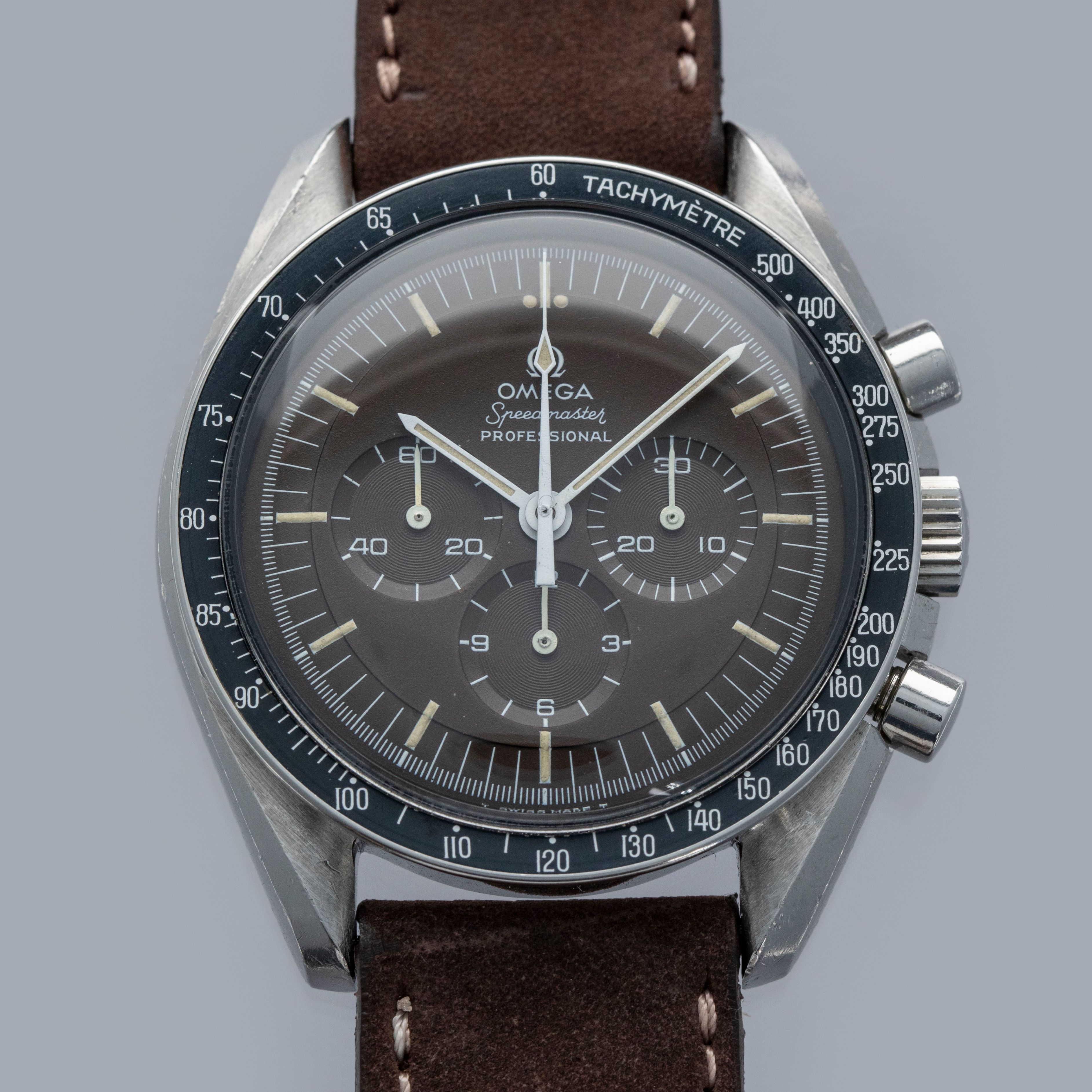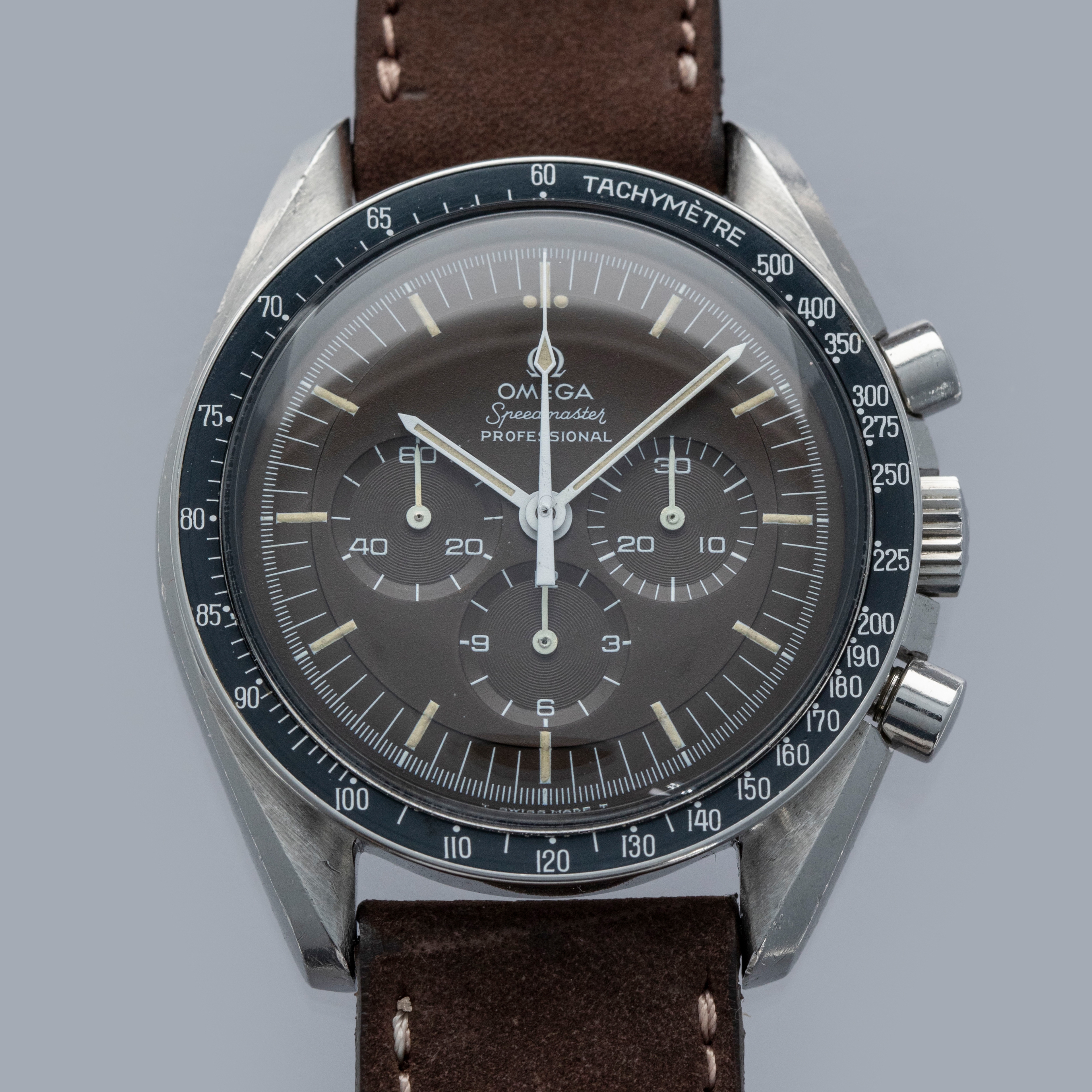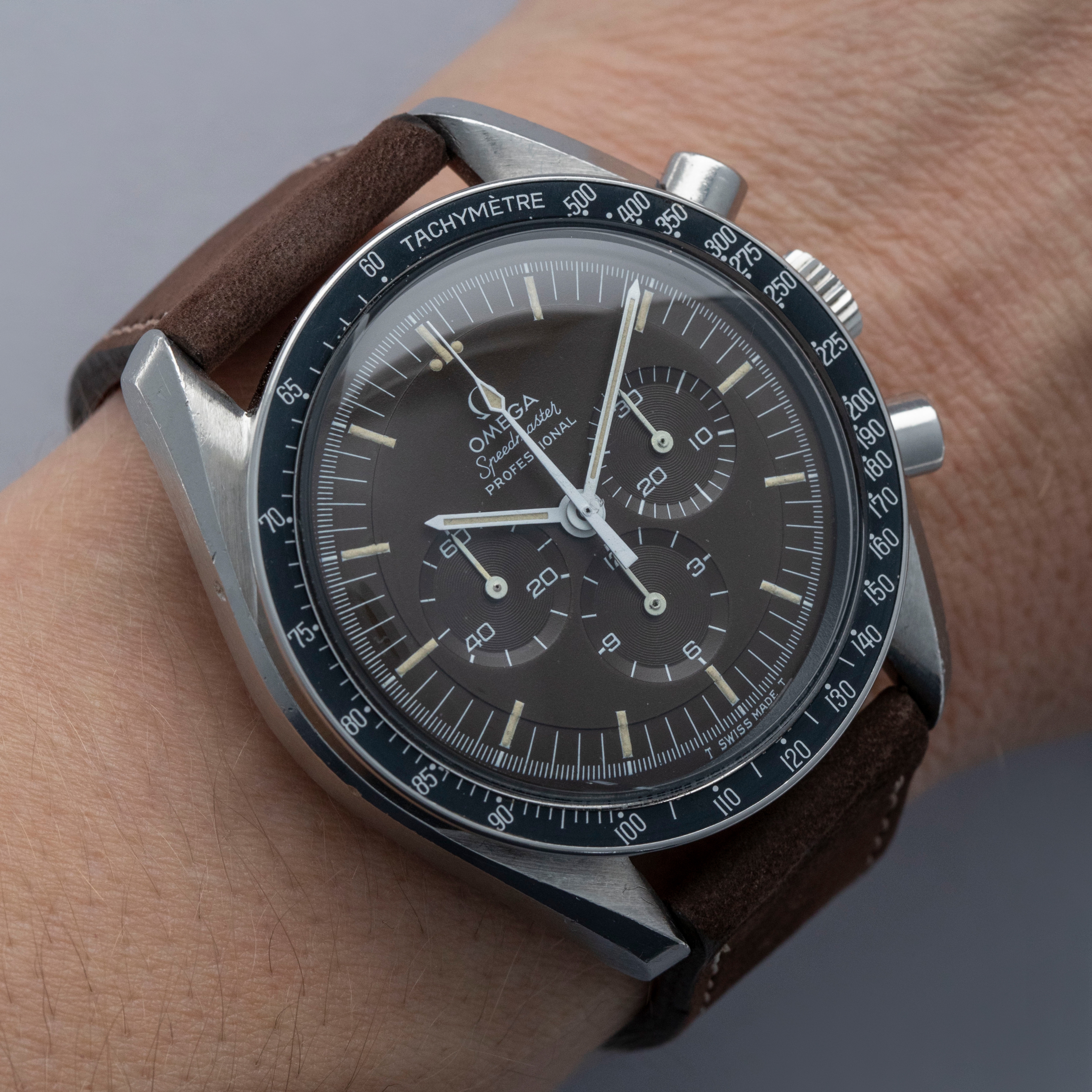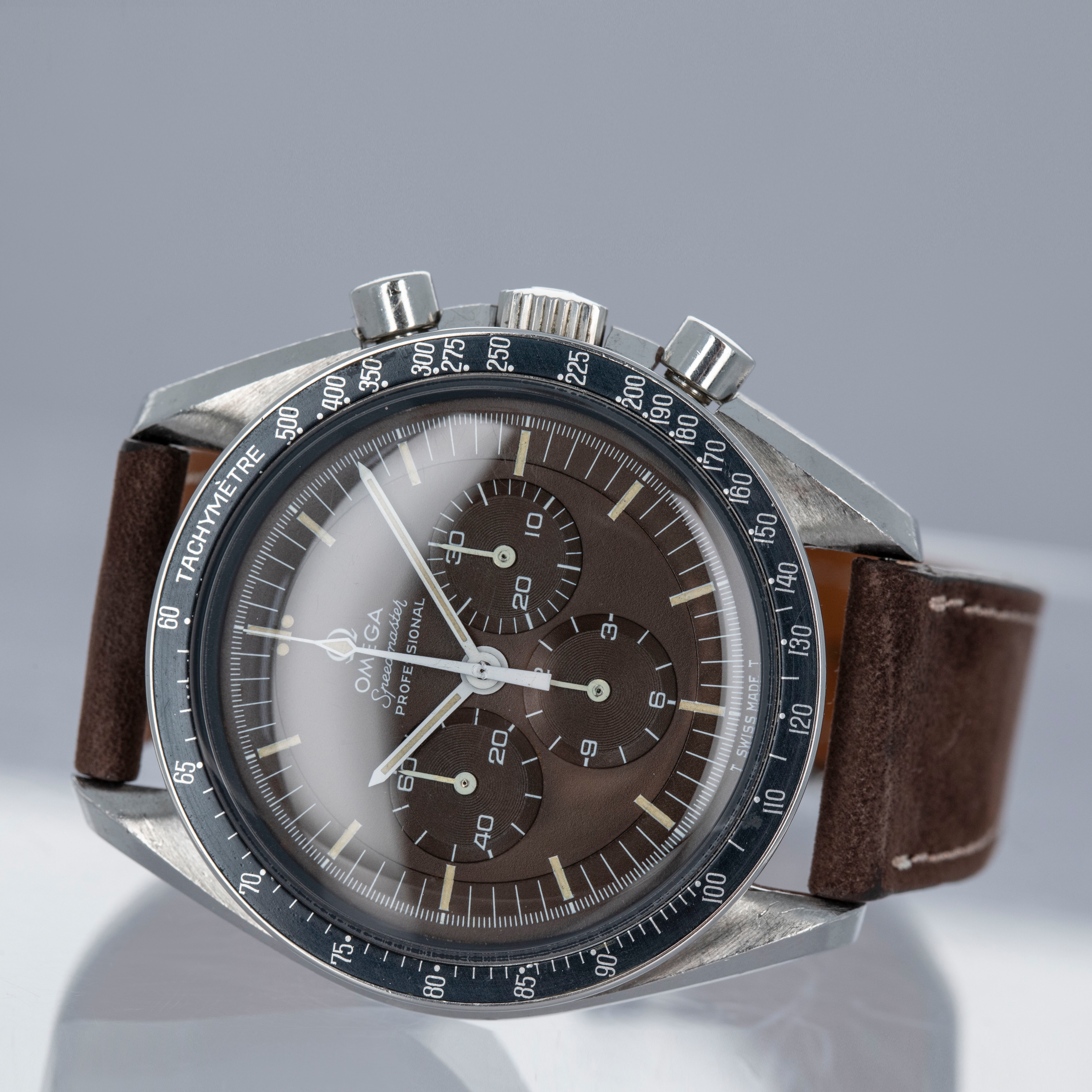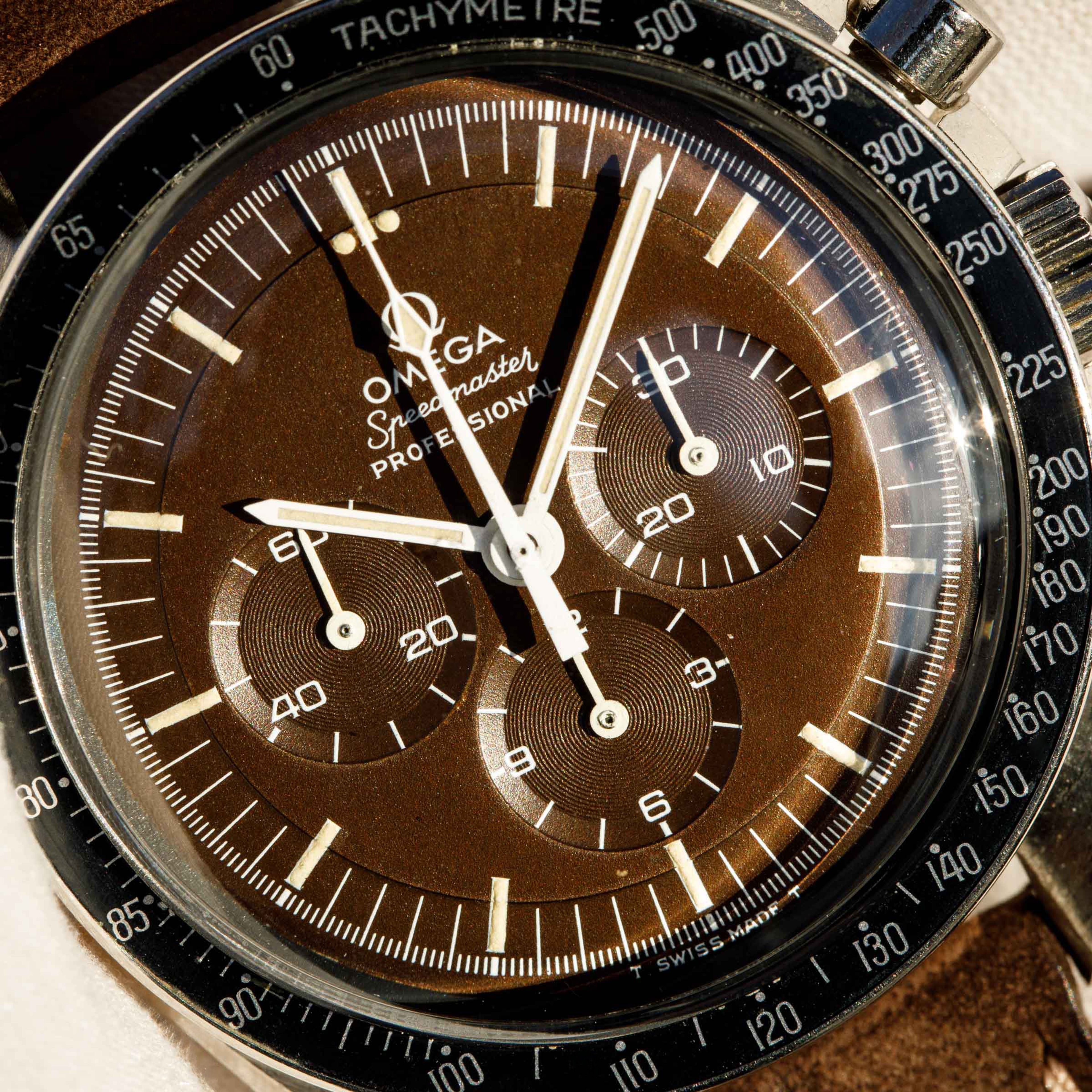 A rare watch in its own right, this pre-Moon Speedy boasts a stunning chocolate-brown tropical dial that sets it off as a wonderfully special piece of Omega history.