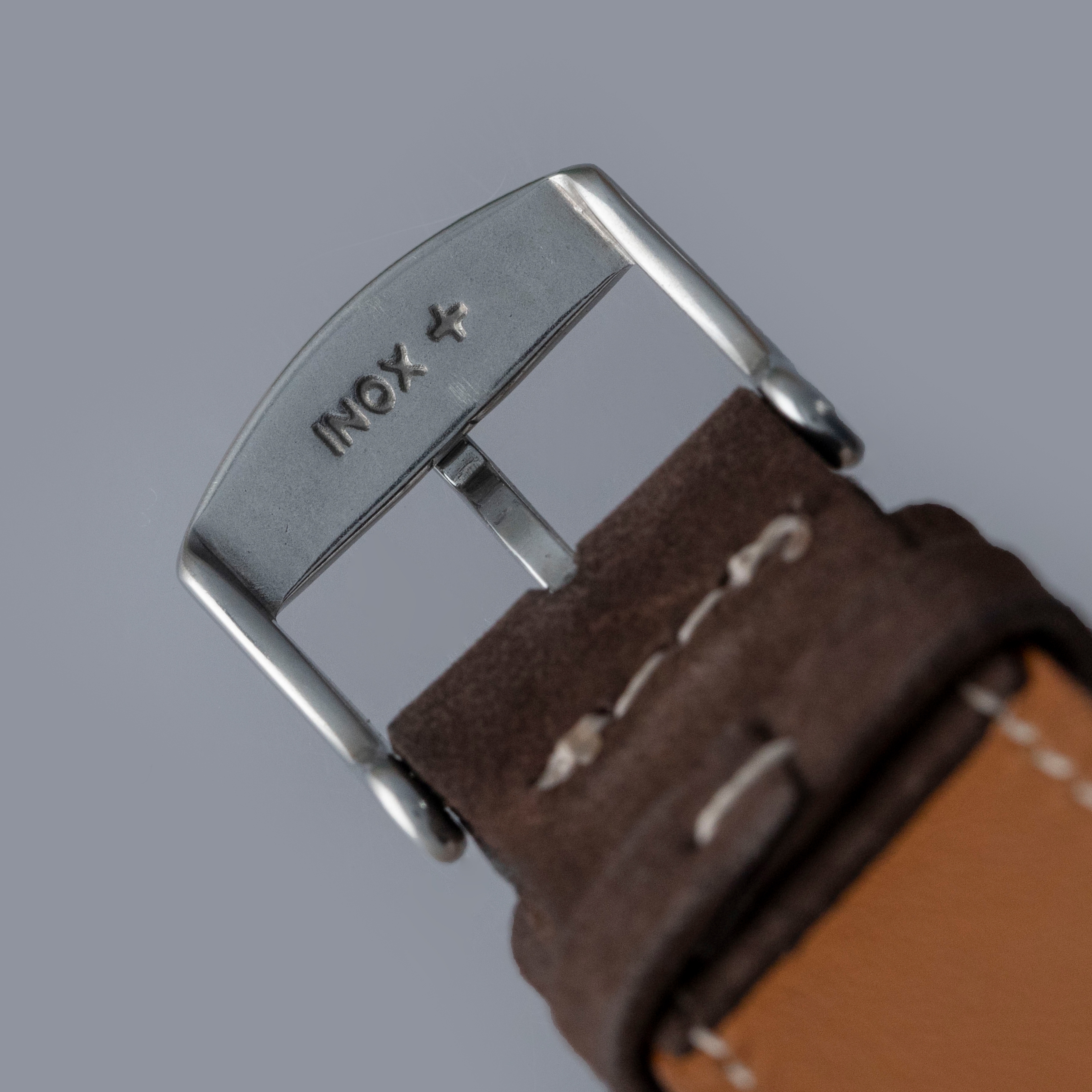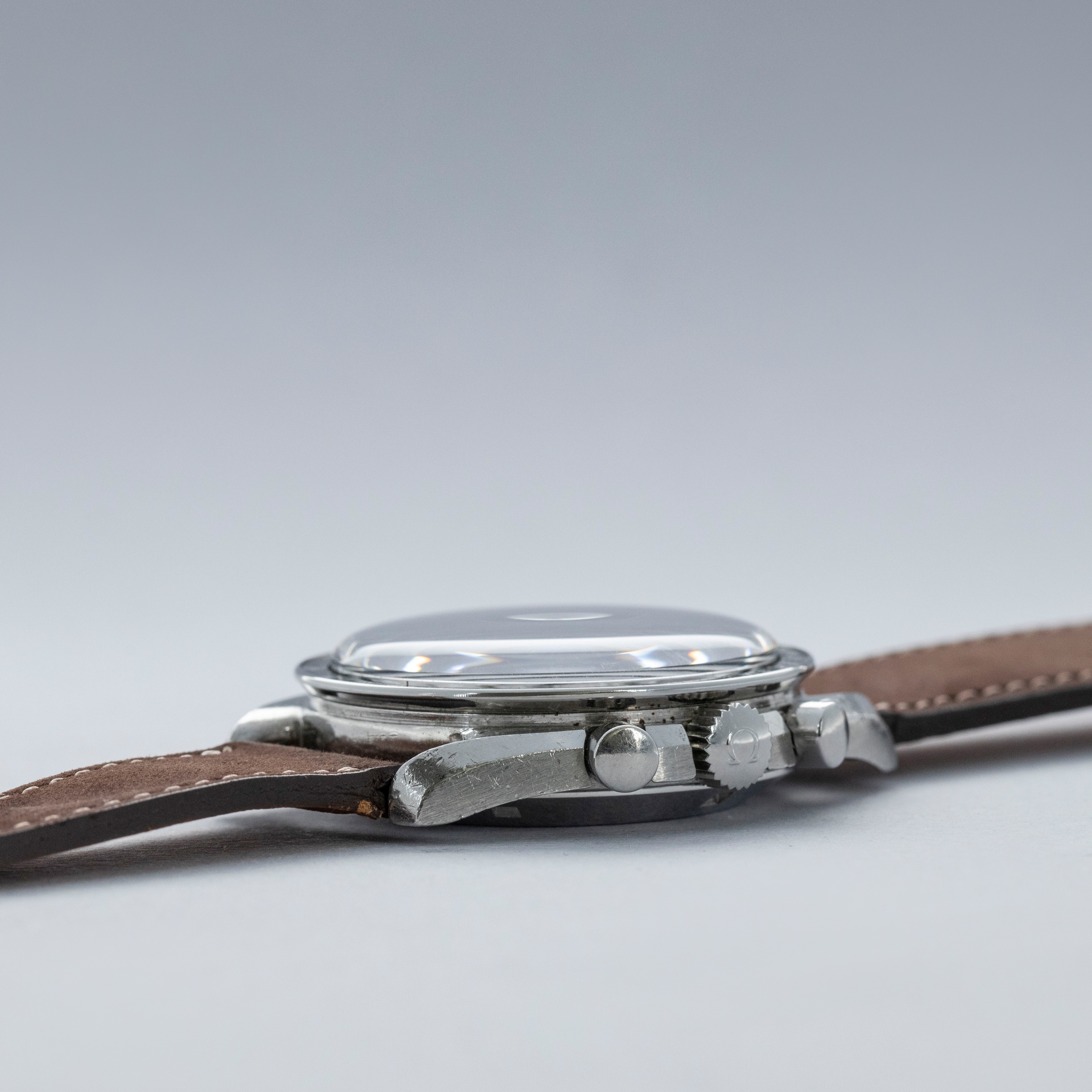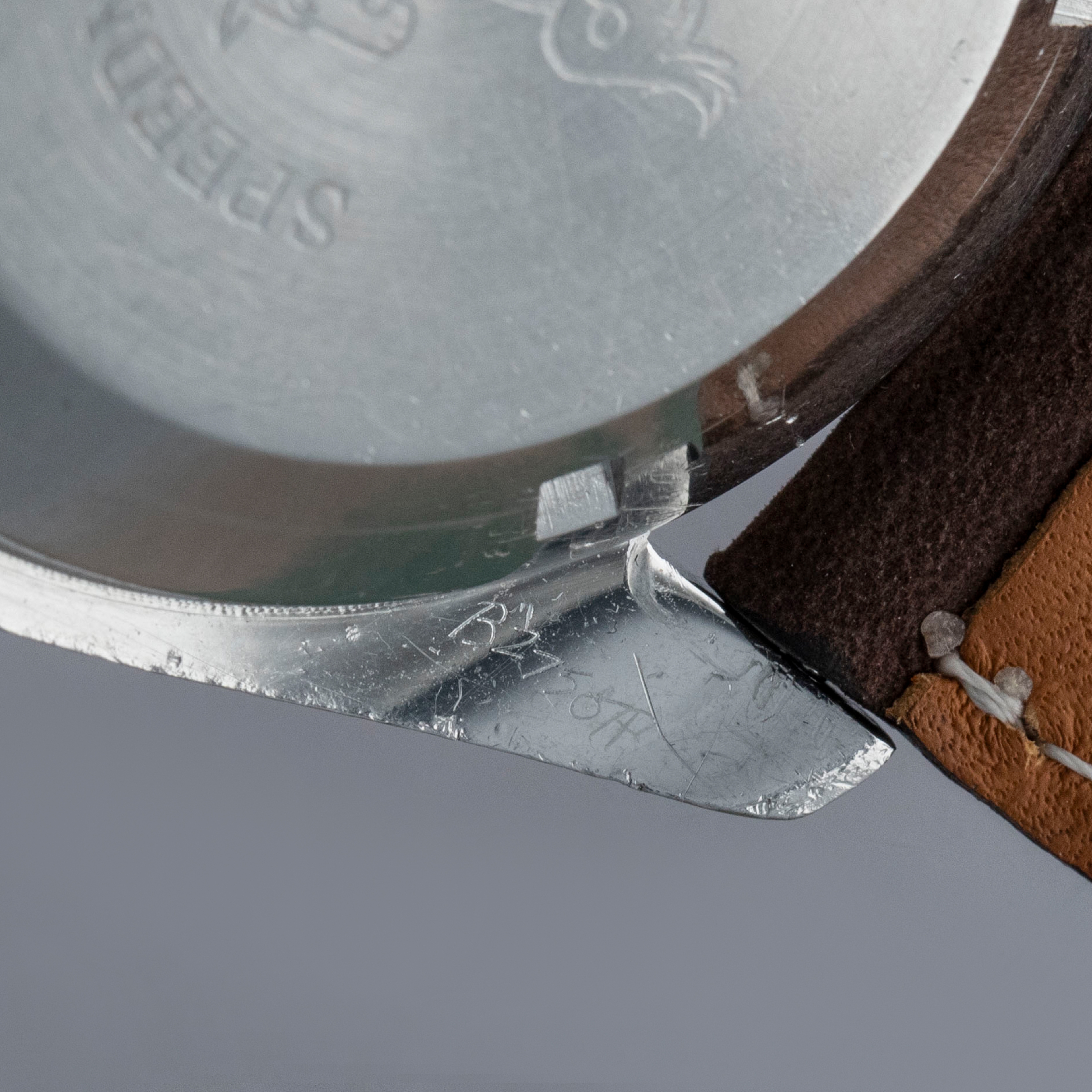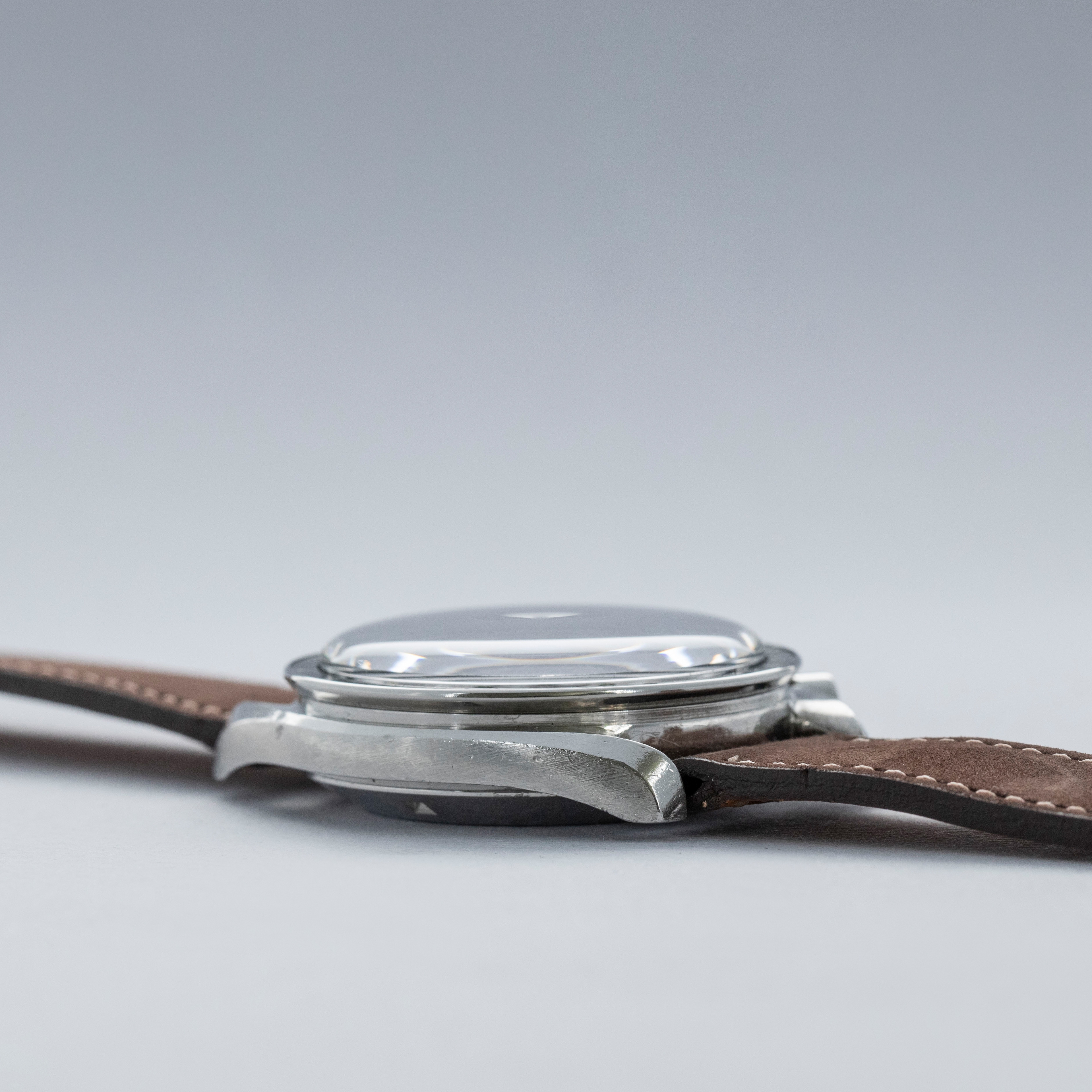 Watch is in overall excellent condition. The steel case shows surface scratches and small nicks, while the case back displays scratches and retains a largely well-defined engraving. The bezel insert remains very clean, with only a couple of tiny marks. The dial has developed a pleasing tropical brown hue, particularly evident in direct light, while the white hands remain excellent. It is fitted with a brown leather strap and a steel pin buckle.
