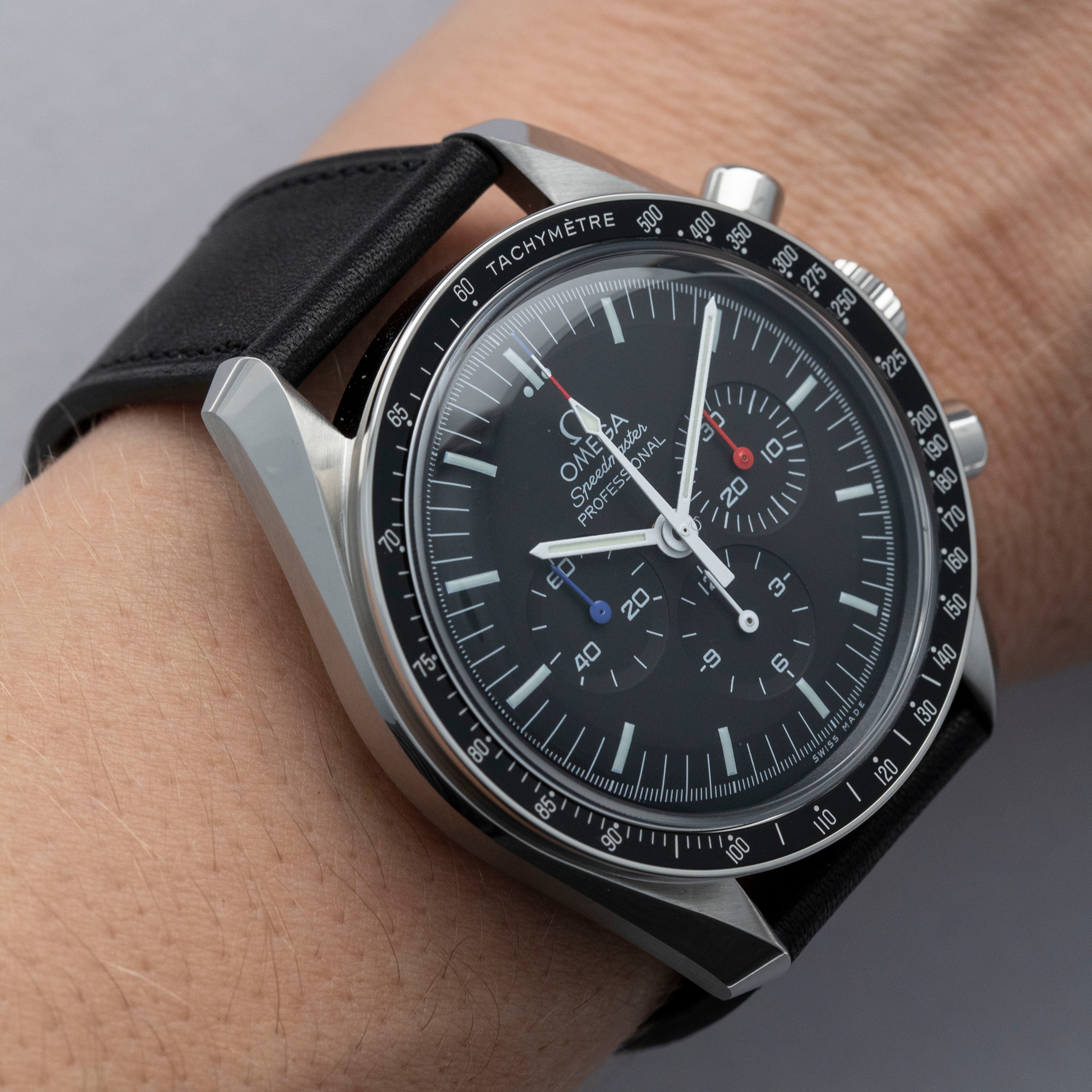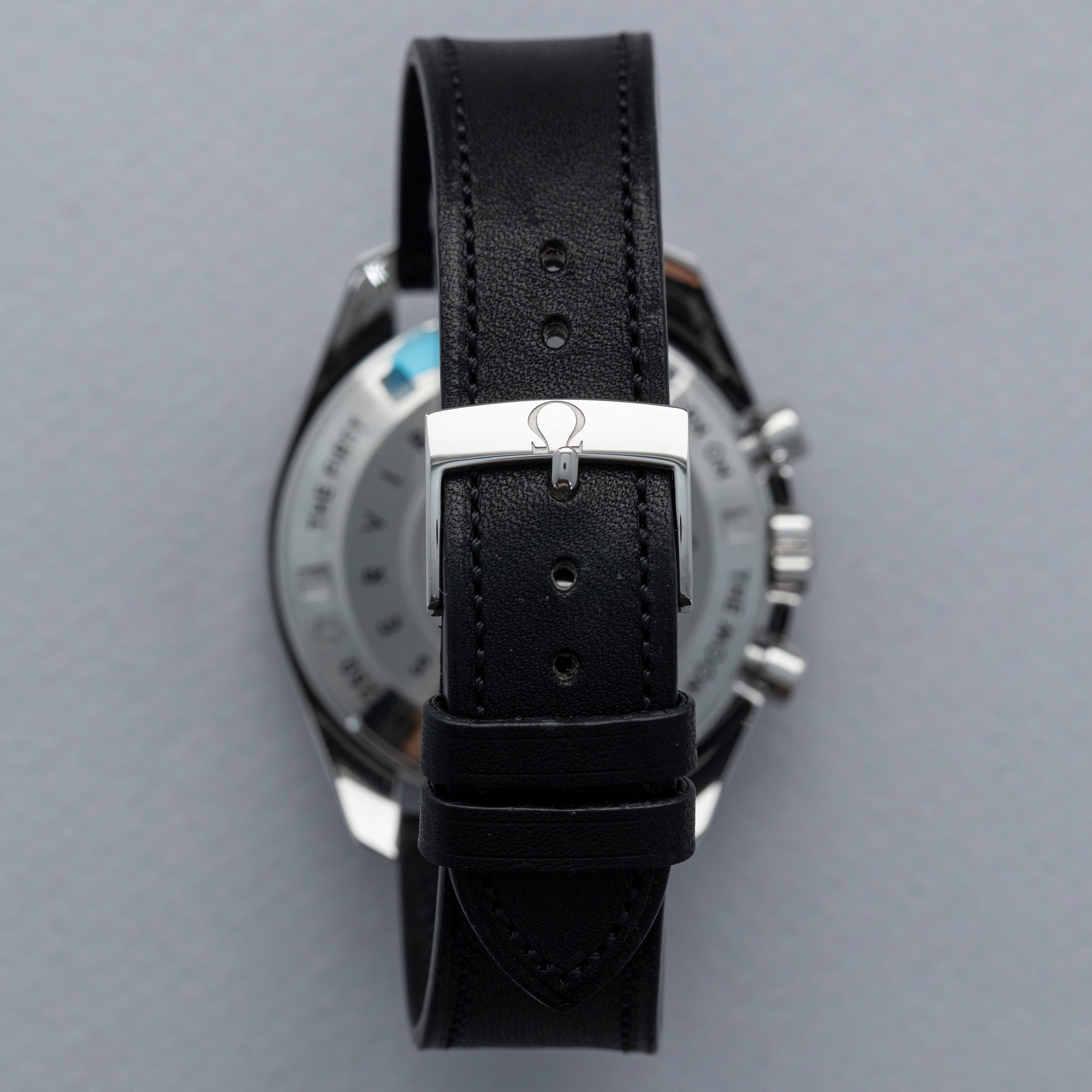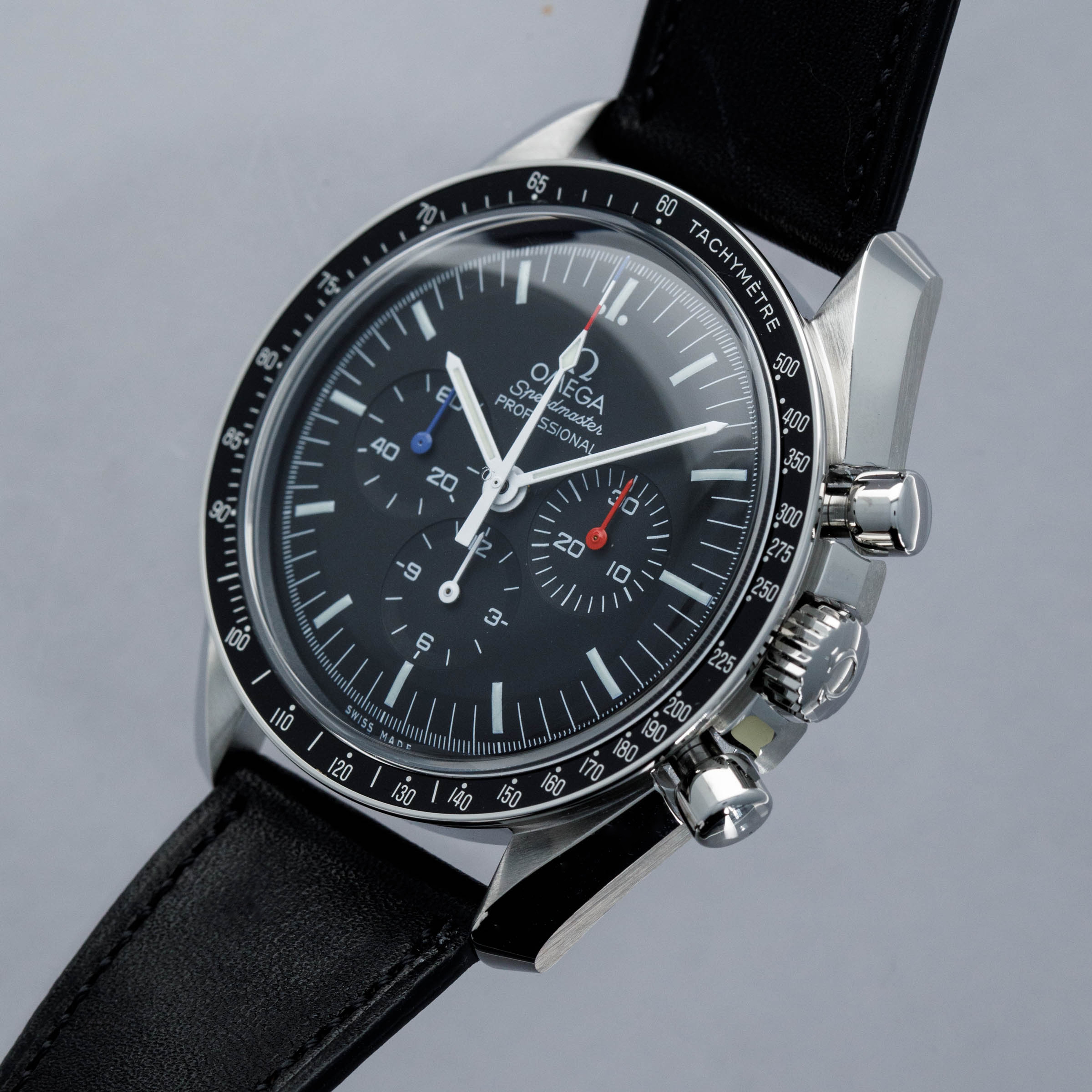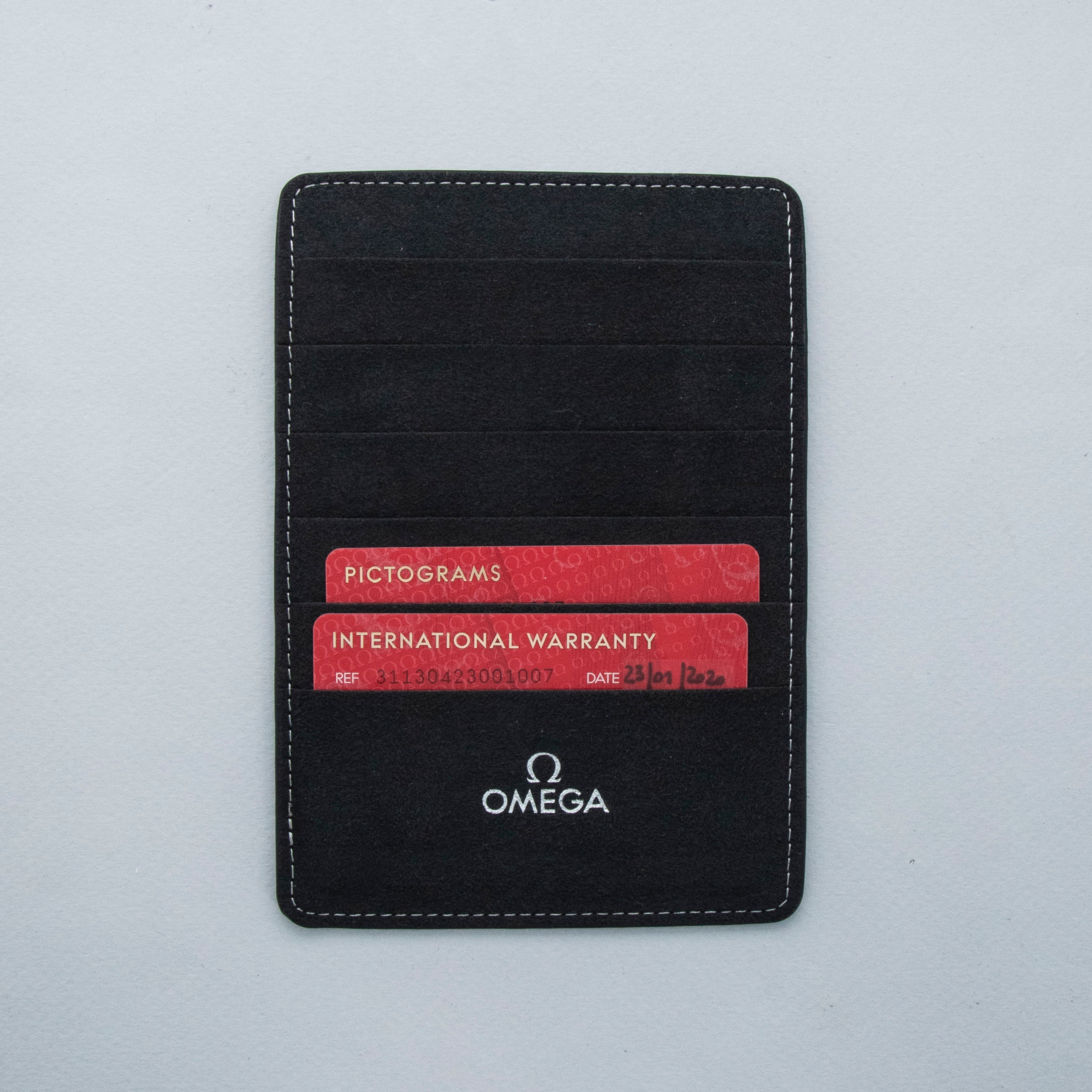The watch is in new condition. It comes as a full set, including an unworn full-link bracelet, two spare straps, an Omega loupe, an additional special RAID case back, and all guarantees and paperwork.