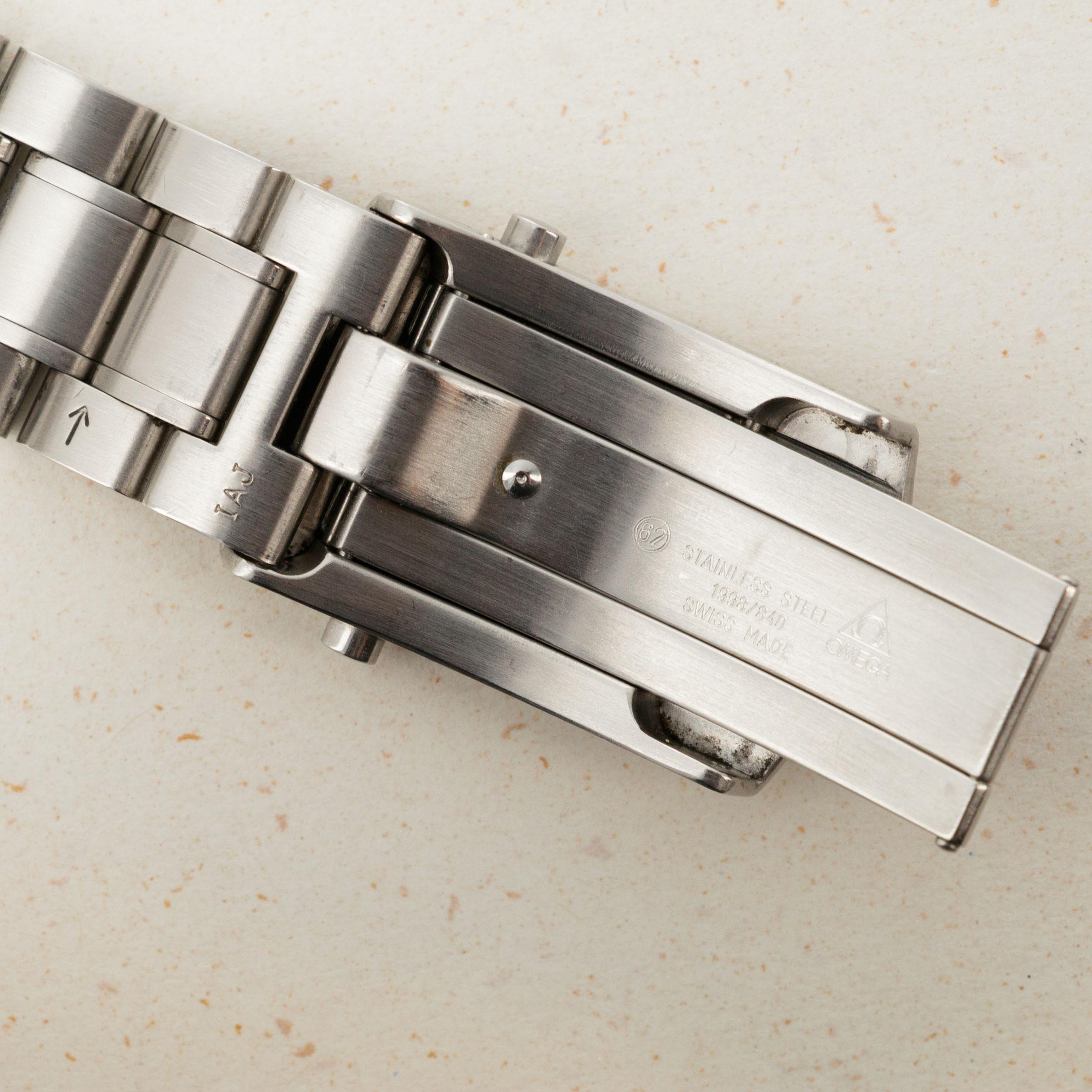 Watch is in excellent overall condition. There are some scratches visible primarily on the polished areas of the case, ie the chamfers. The crystal has a few scratches as seen in the images. The bracelet has 16 links, 6 of which are removable. There is little stretch.
