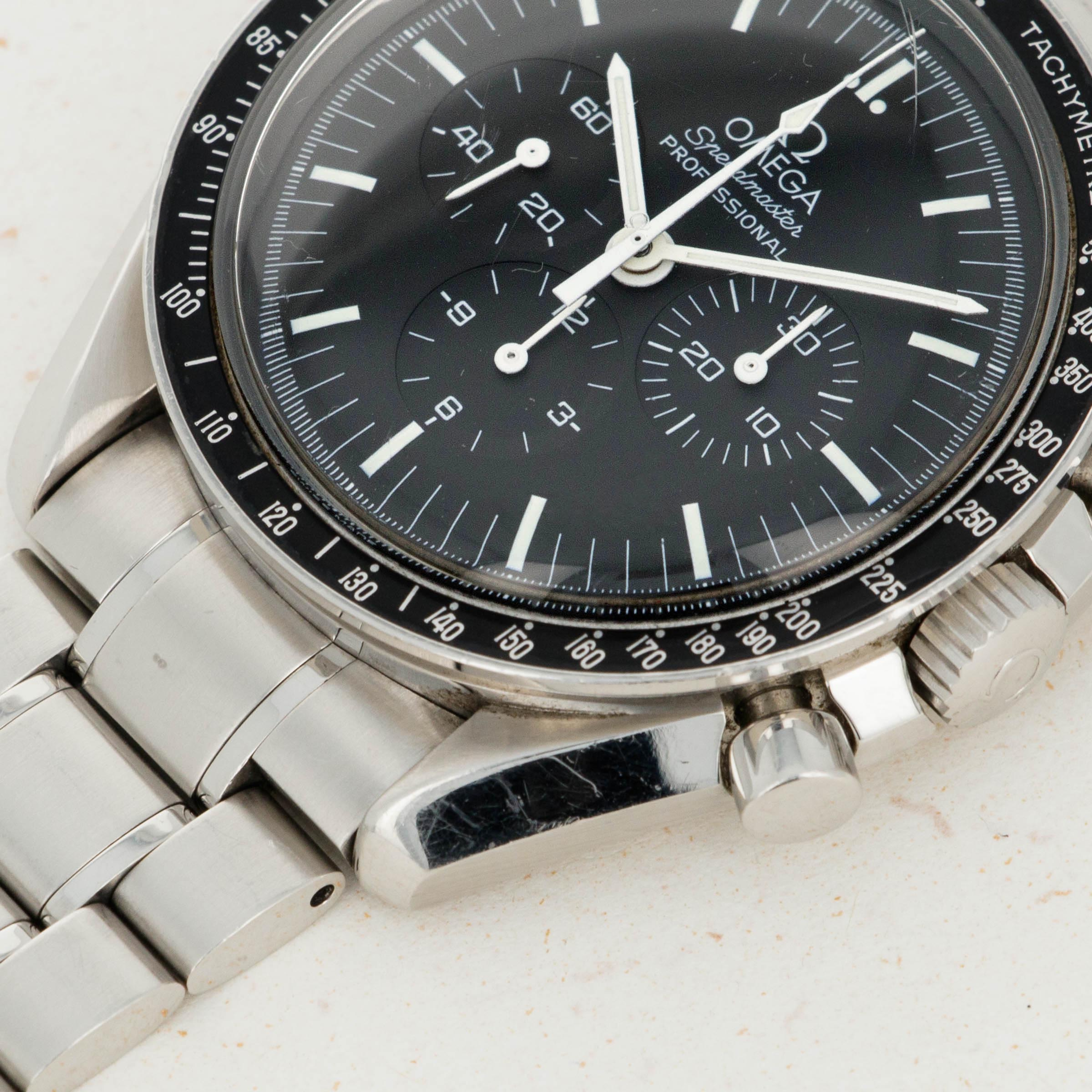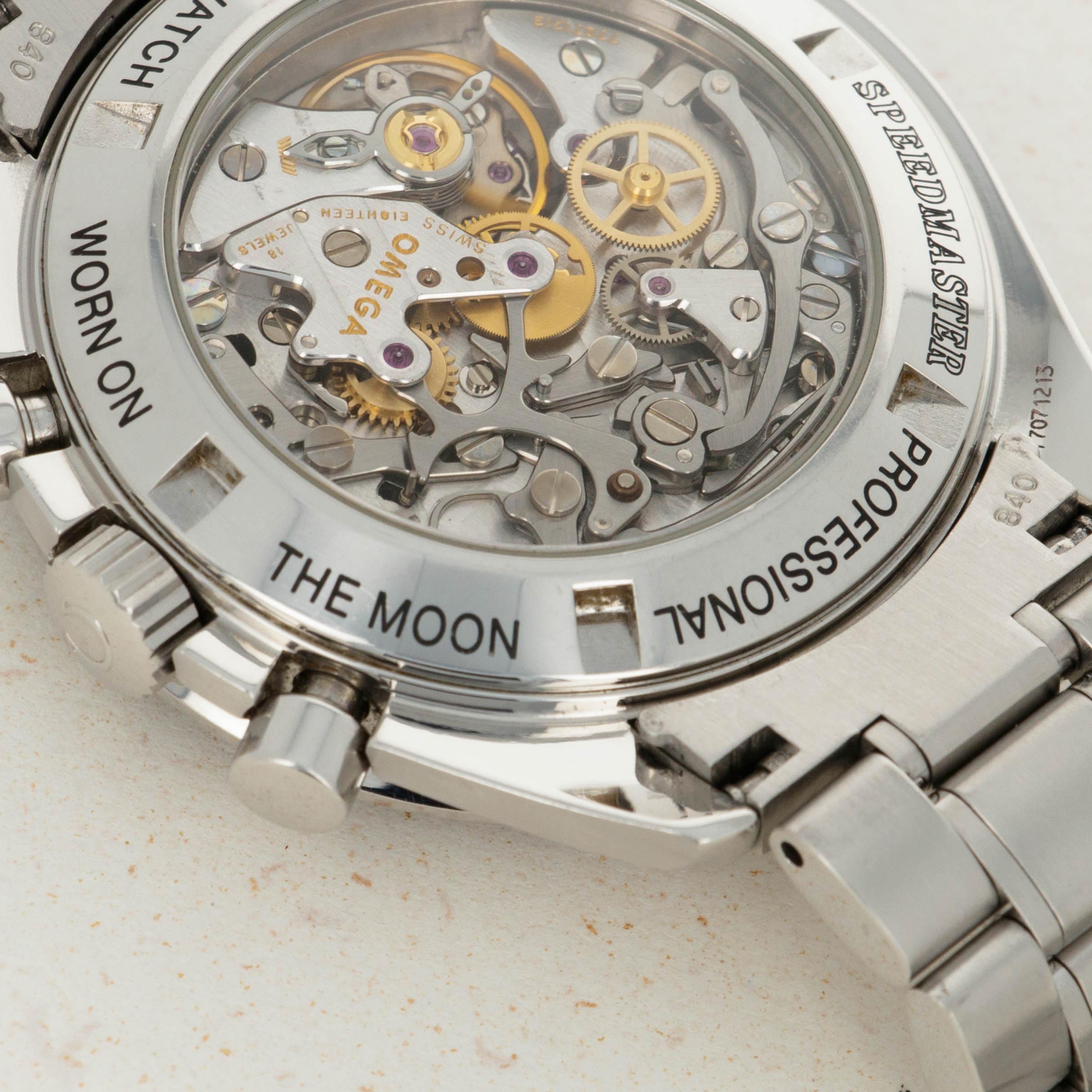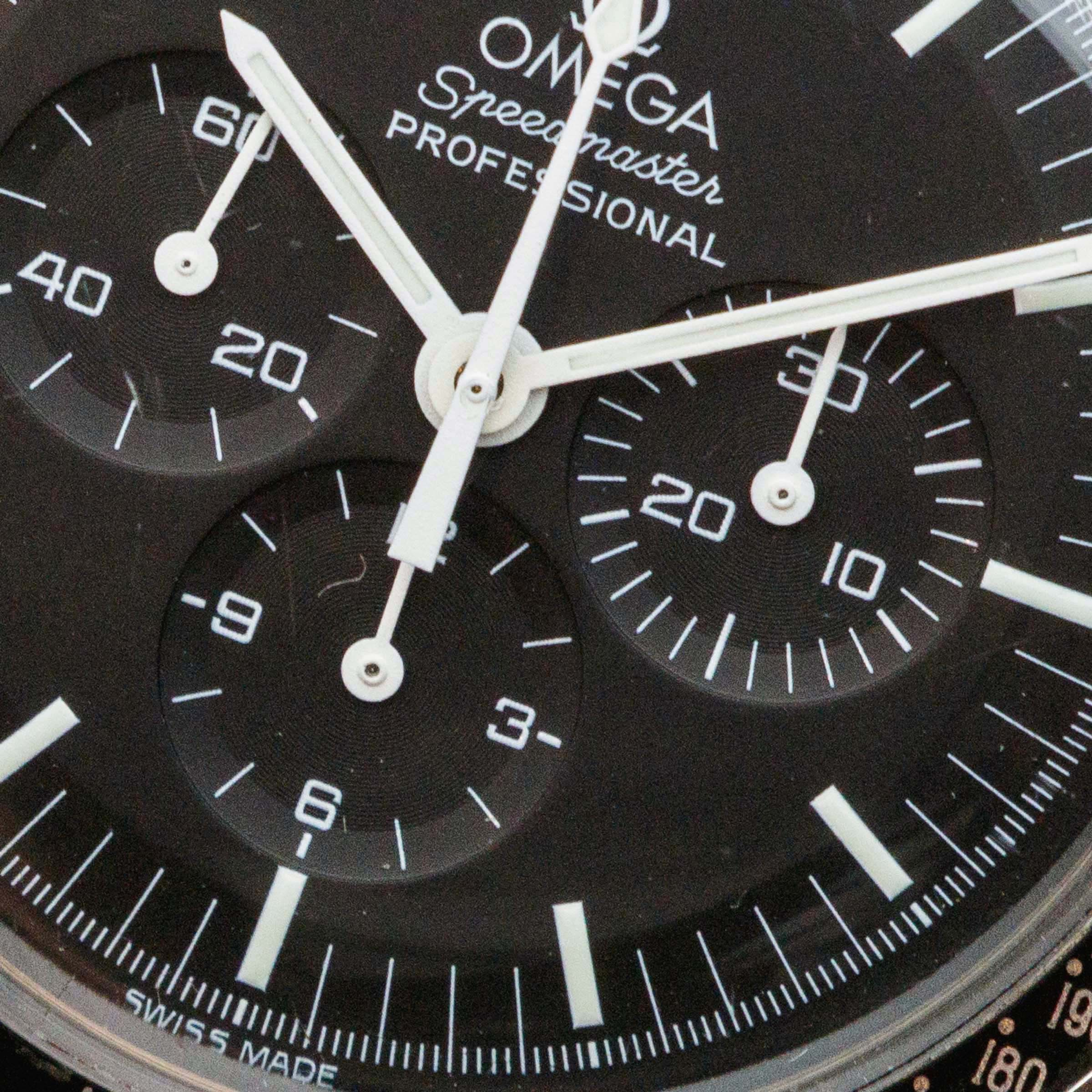 Released in 1957 and based on their earlier chronographs from the 1920s and '30s, the Omega Speedmaster is one of the most iconic chronographs ever. Named after the purpose of the tachymeter along its bezel, the Speedmaster was designed for race car drivers and pilots to time events and make rapid calculations. While these adrenaline-fueled activities might not be for the faint-hearted, they weren't what made the Speedmaster so iconic - that was its use in space and on the Moon. Following a gruelling series of tests with several competing brands, the Speedmaster debuted in space as a piece of NASA standard-issue equipment during the Gemini program of 1965. Today the Speedmaster has many forms, but the Moonwatch is by far the most iconic, with its design standing as the prototypical look of the Speedmaster. Of course, like many other areas of collecting, there are many idiosyncrasies within watch collecting, namely the desirability of visually similar traits, a perfect example of one being the Speedmaster’s hesalite crystal. More authentic to the original Moonwatches that the Apollo astronauts wore, the hesalite crystal versions of the Speedmaster carry that heritage rich look and feel, but with their solid casebacks they refrain the owner from viewing their movement, until the ref. 3572.50 that we have here. Launched in the 1990s, the ref. 3572.50 merged the Moonwatch’s signature hesalite crystal with a sapphire crystal exhibition caseback that provides the best of both worlds for the Speedmaster’s fans, with an unencumbered view of the Speedmaster’s manual-wind cal. 1863 movement, and the vintage look and feel that collector’s love through the hesalite crystal sitting atop its black dial.