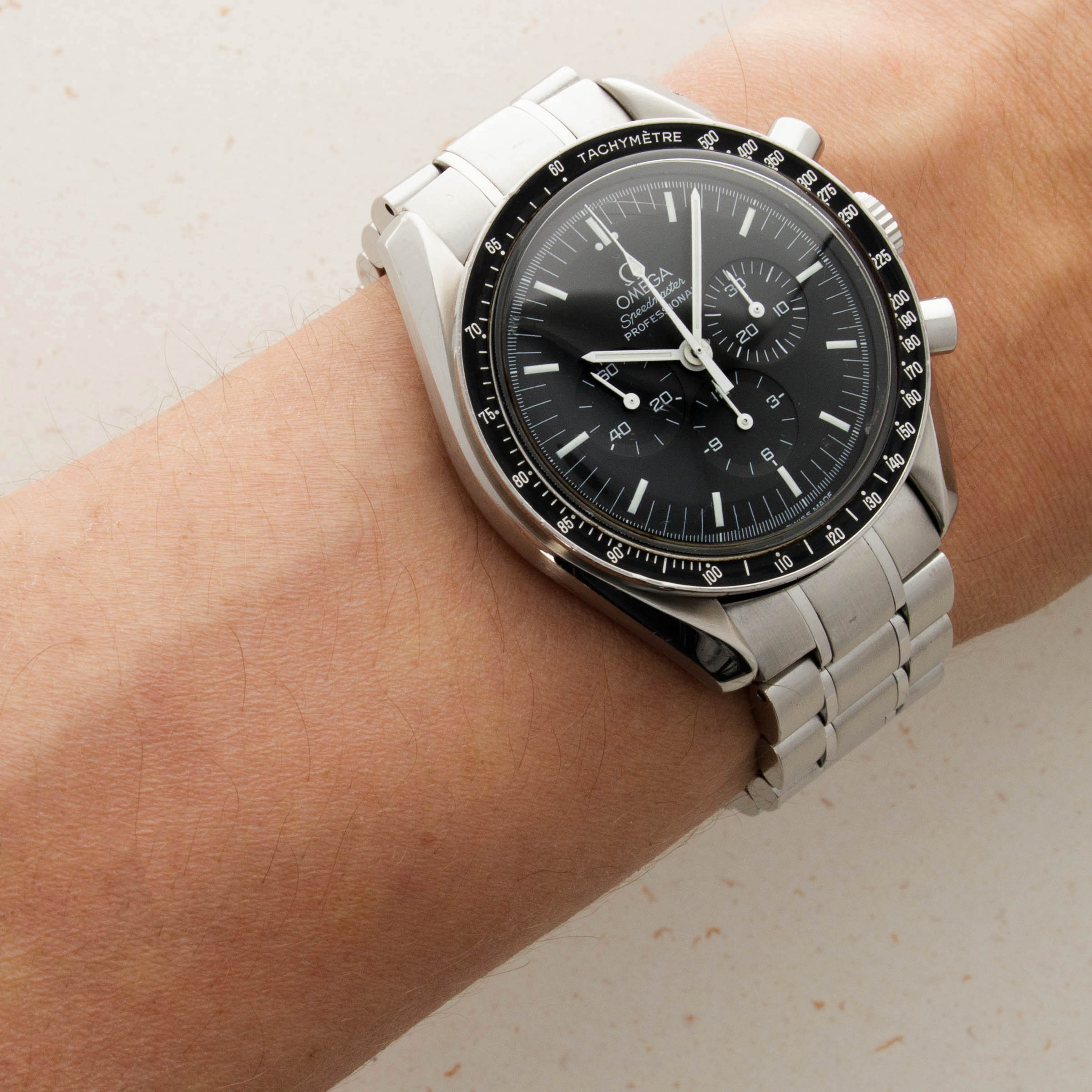 Boasting its 42mm case, its famed lyre lugs, its charming hesalite crystal, and black dial and bezel combo, the Speedmaster is a watch every enthusiast is familiar with.