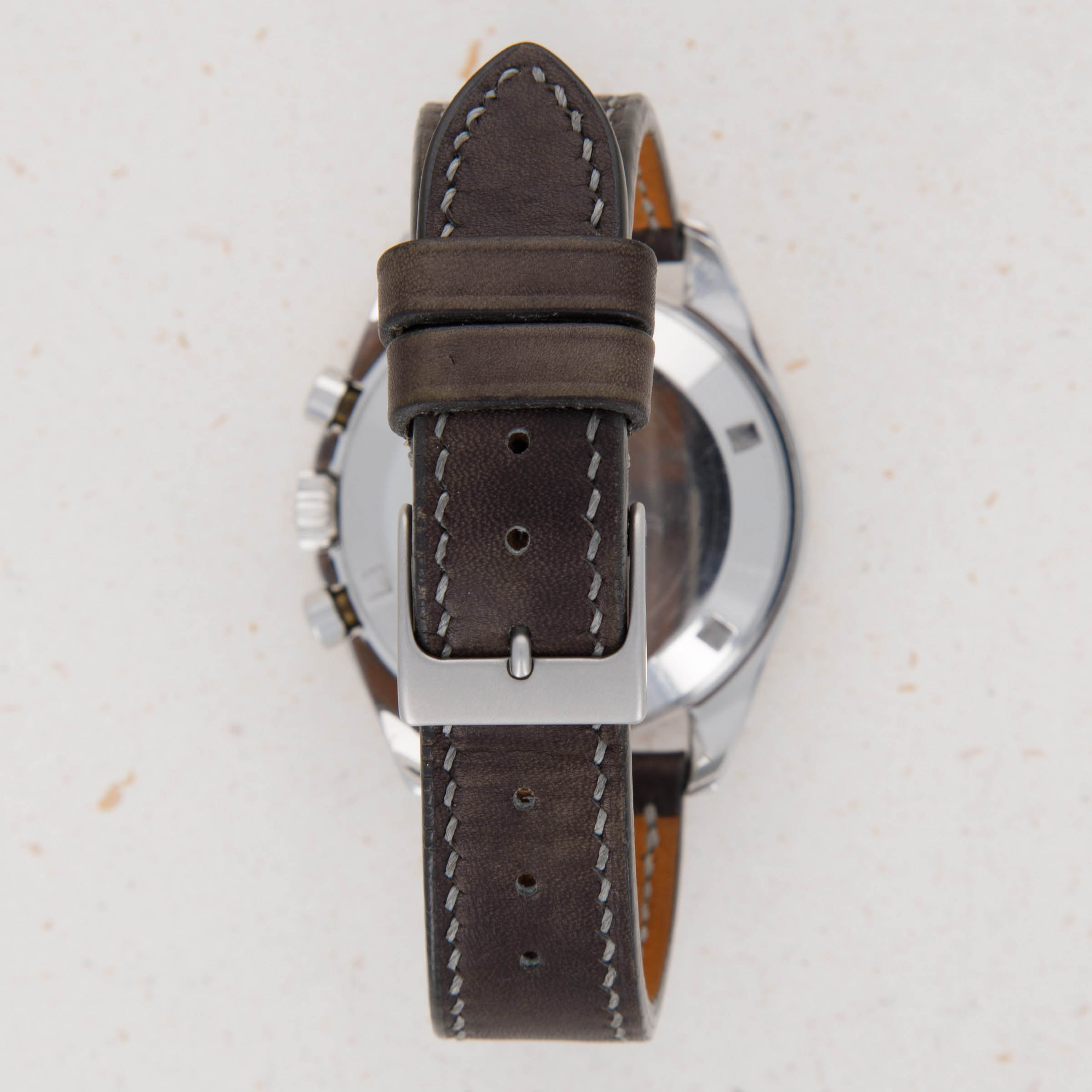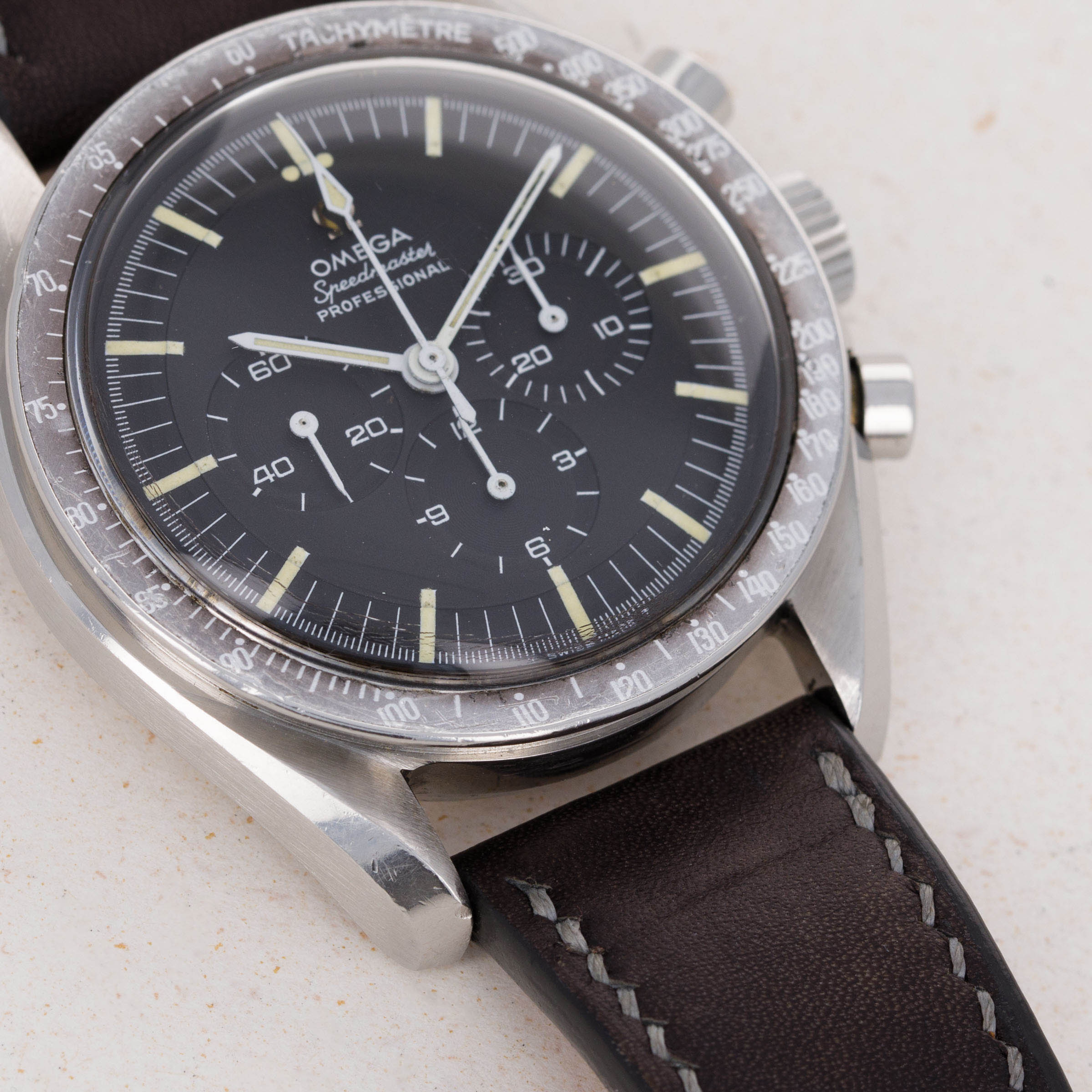 Famed as perhaps one of watchmaking's most universally well-known watches, the Omega Speedmaster became the first timepiece ever to be worn on the Moon following Omega's successful bid for the Speedmaster to become NASA's choice timepiece for their standard astronaut kit. After its successful inclusion in the 1965 Gemini program, the Speedmaster also adorned the wrists of the astronauts during the Apollo moon landing missions, and so, in 1969, following Buzz Aldrin's historic steps on the Moon (Neil Armstrong left his watch on the lunar module) it became the Moonwatch that we all know and love. However, the Speedmaster’s heritage began in 1957 as a terrestrial racing watch, with the ref. 105.012 that we have here, debuting in 1964. This exact variant, however, the ref. 105.012-66 was launched in 1966 and debuted as the first ”Professional” version of the Speedmaster, with the new moniker included on the Speedy’s dial for the very first time. Featuring a new larger 42mm case with twisted “lyre lugs” and new crown guards. Powered by the legendary manual-wind cal. 321, the “Pre-Moon” ref. 105.012-66 was worn by early astronauts following NASA’s acceptance of the Speedy as their space watch and is the only confirmed Speedmaster reference confirmed to land on the Moon, a claim to fame that has earned the Speedy its place within the watchmaking hall of fame.