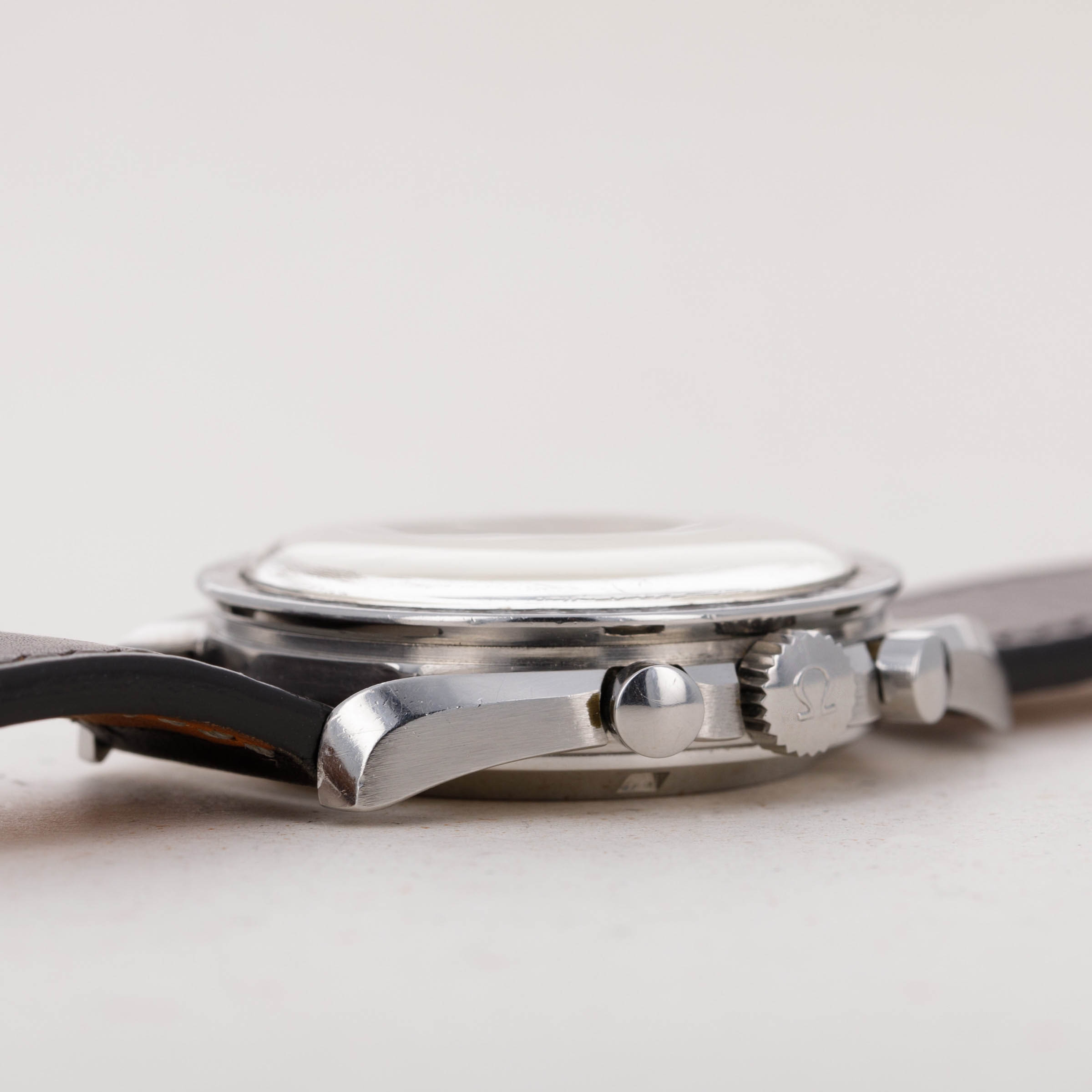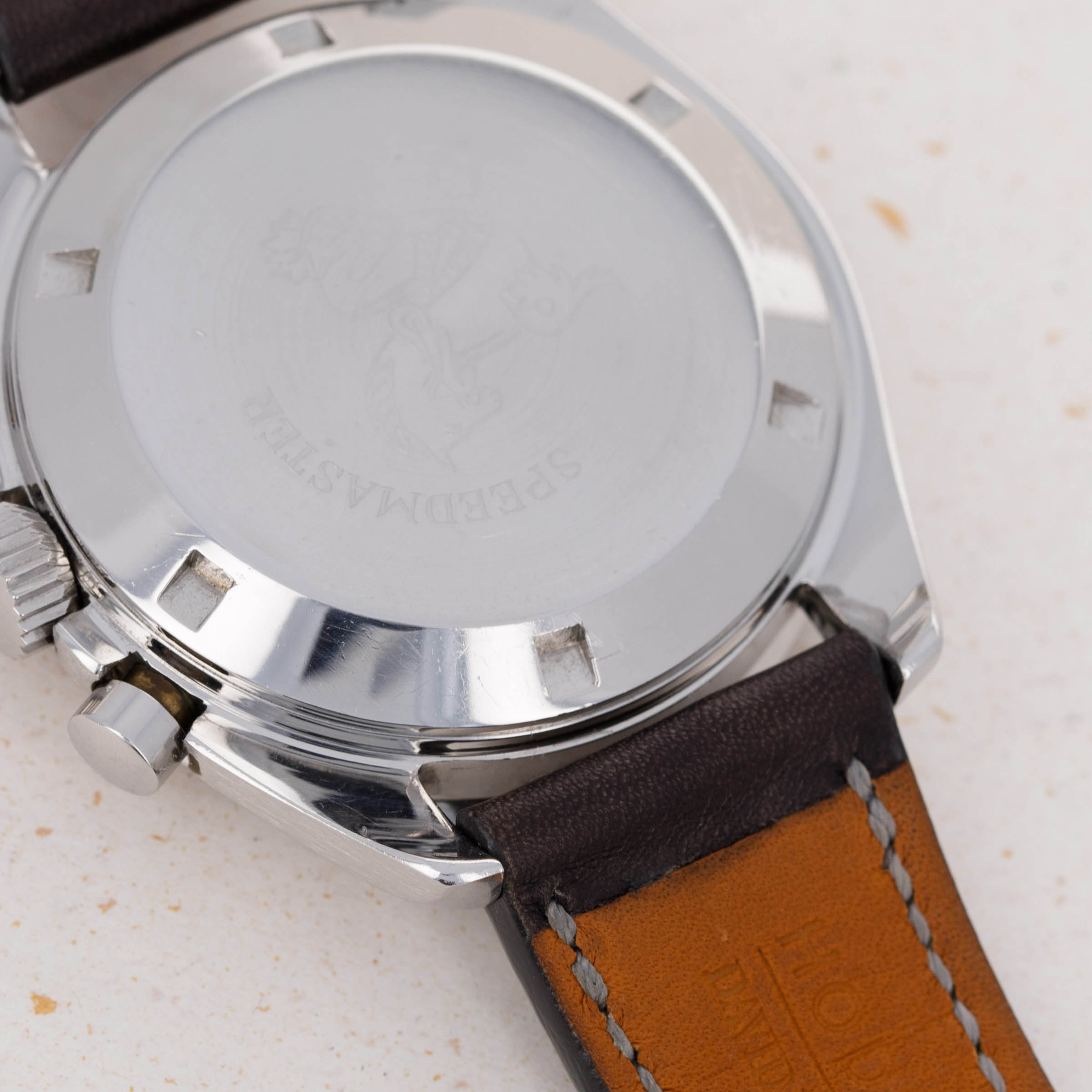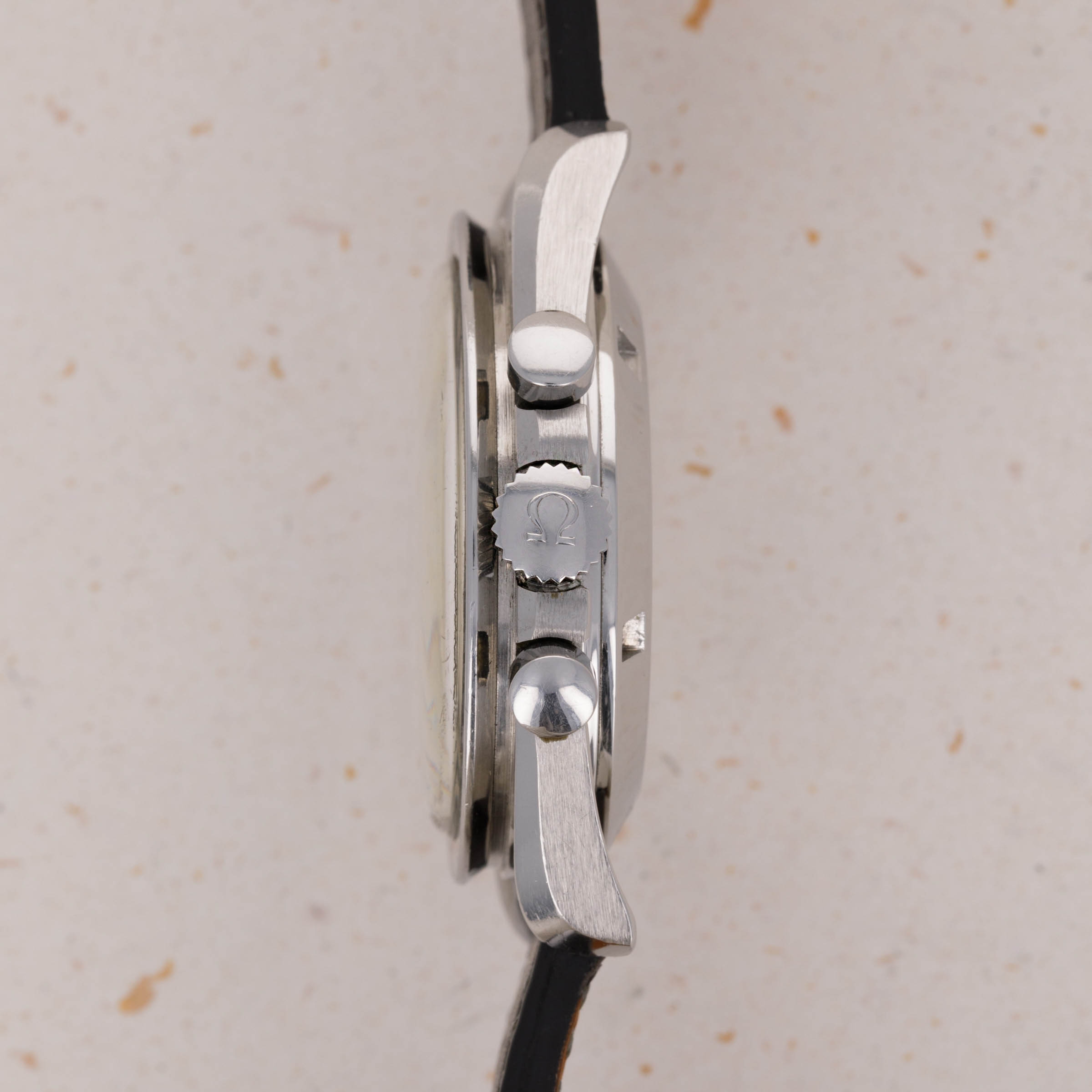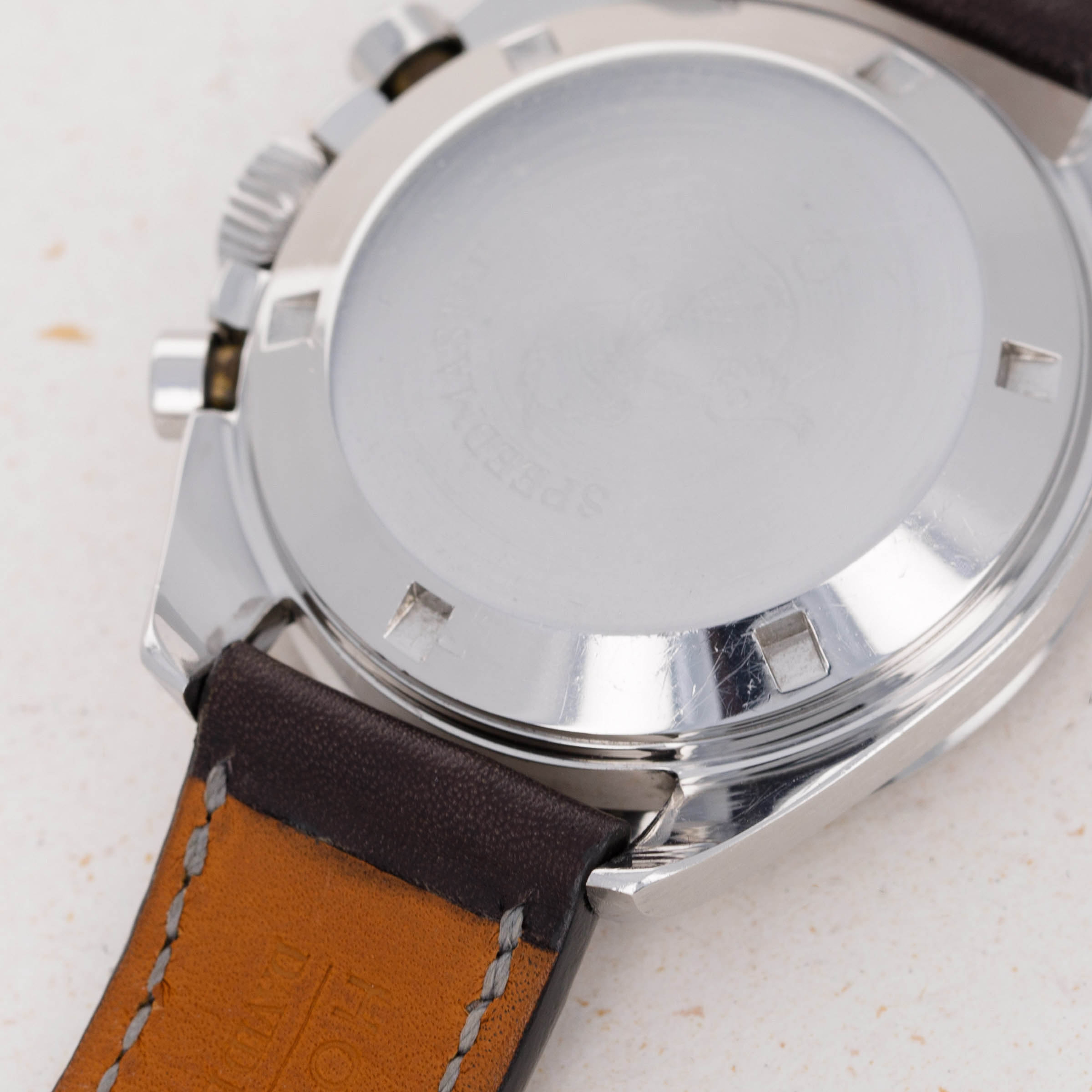 Upgraded from the CK2998's 39.5mm diameter, the ref. 105.012-66's 42mm case was a behemoth for the 1960s. Additionally, the ref. 105.012-66 was the first asymmetrical Speedmaster variant with its new crown guards and twisted lyre lugs adding further robustness to its construction.