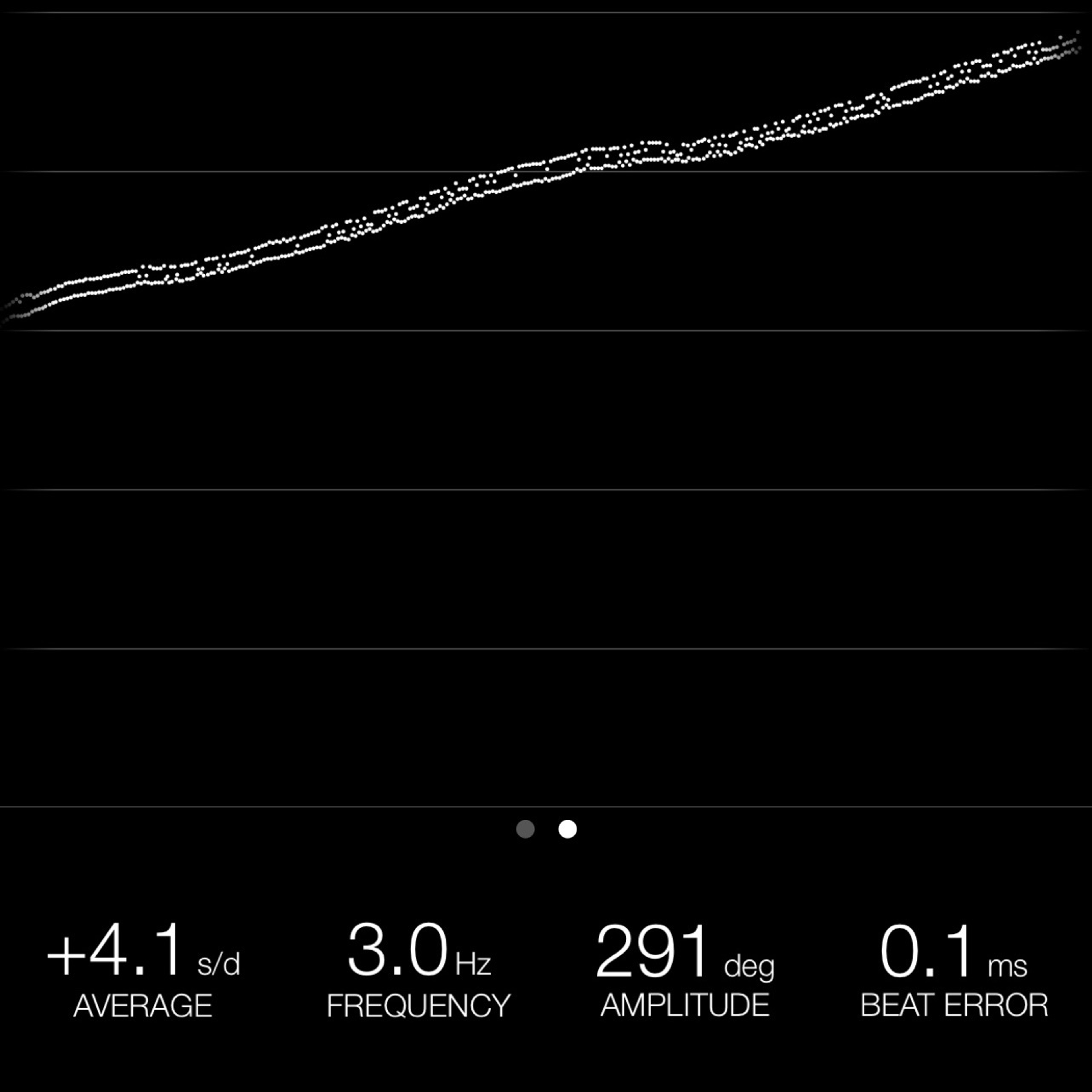 This reading was taken (crown down) with a ONEOF Accuracy Boutique Edition timing machine at time of cataloging. It is provided as a courtesy only, and shall not be construed as a warranty or guarantee of any kind. Please refer to our terms and conditions of sale for more information.