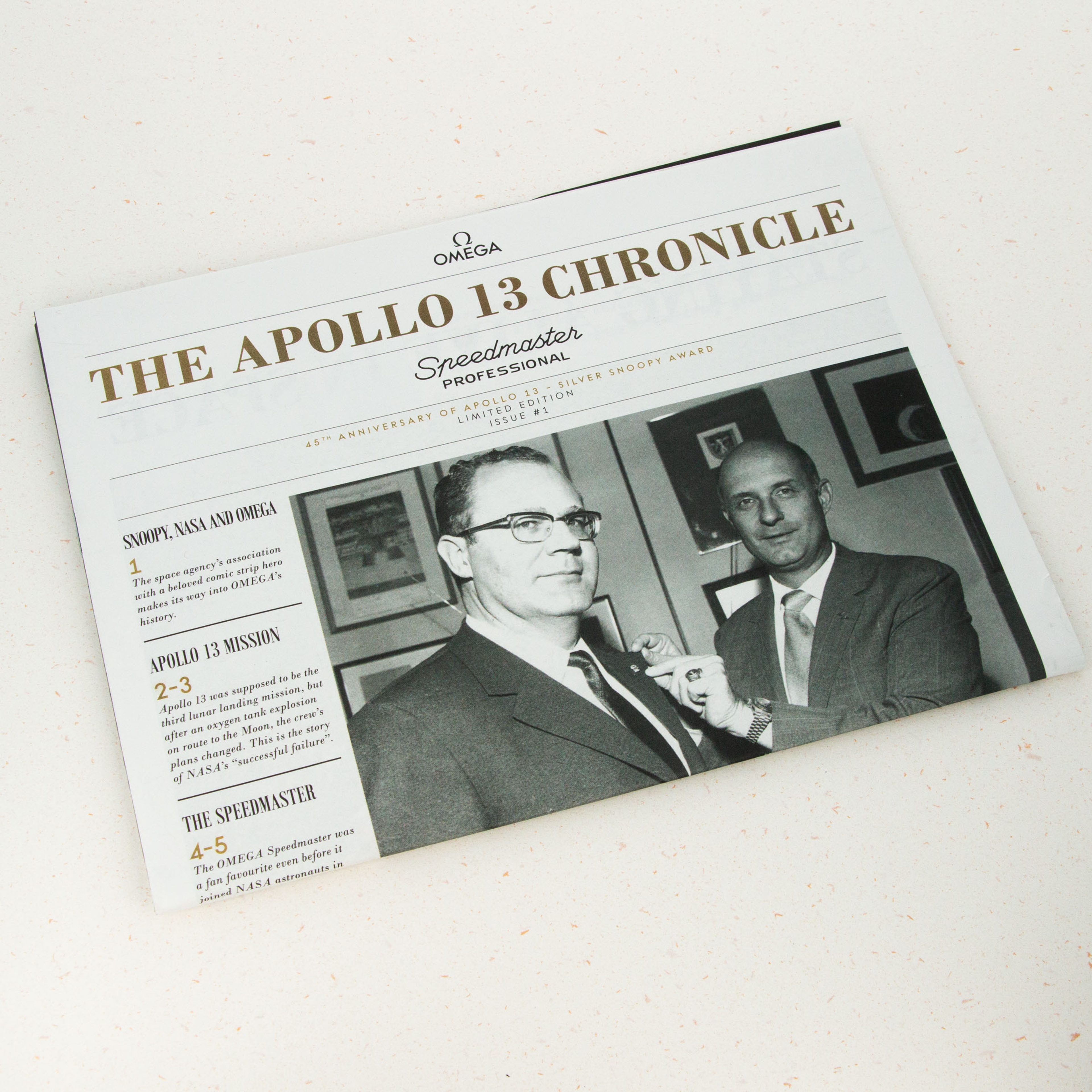In 1970, upon their successful return to Earth, Omega presented the astronauts aboard Apollo 13 with the Silver Snoopy Awards. On the 45th anniversary of that groundbreaking journey, Omega introduced a Limited Edition series of only 1,970 pieces. Immediately sold out, this whimsical piece instantaneously became one of the most coveted modern Speedmasters ever released.
