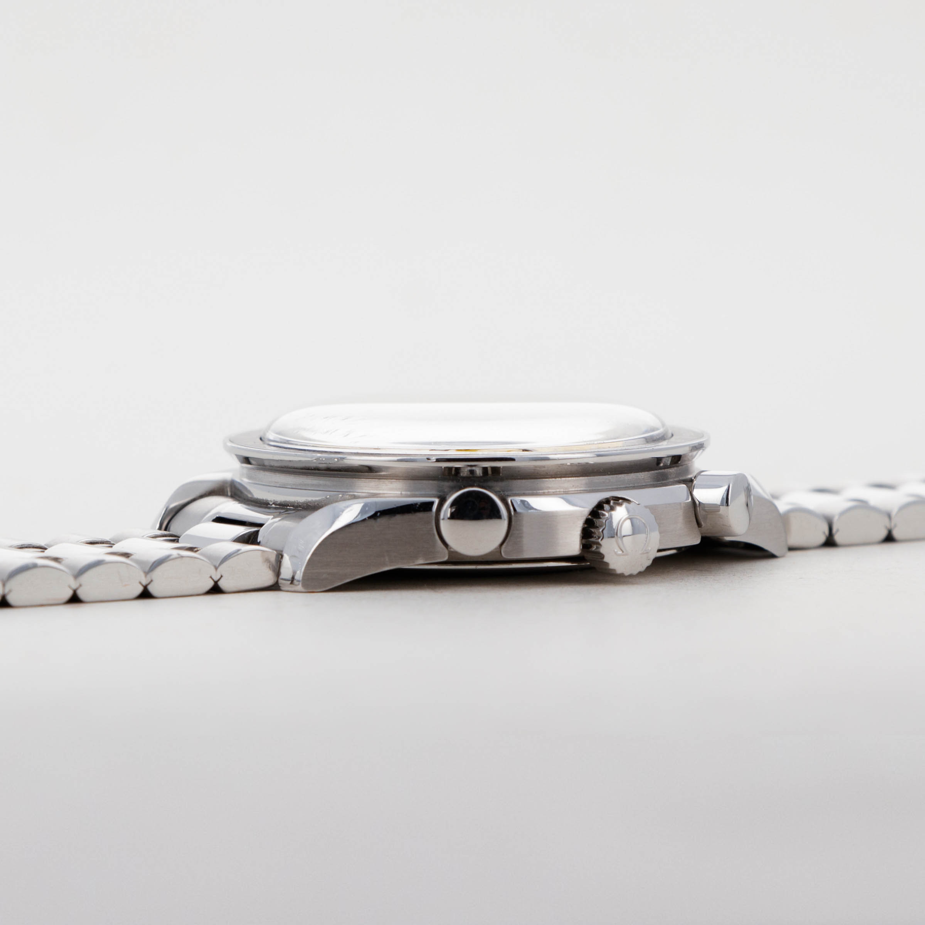Watch is in overall excellent condition. There is minor surface wear commensurate with use. Crystal has surface scratches as shown in the images. There are a total of 18 links on the bracelet, 1 of which is removable. There are also 6 additional links on the side. There is littel stretch in the band.