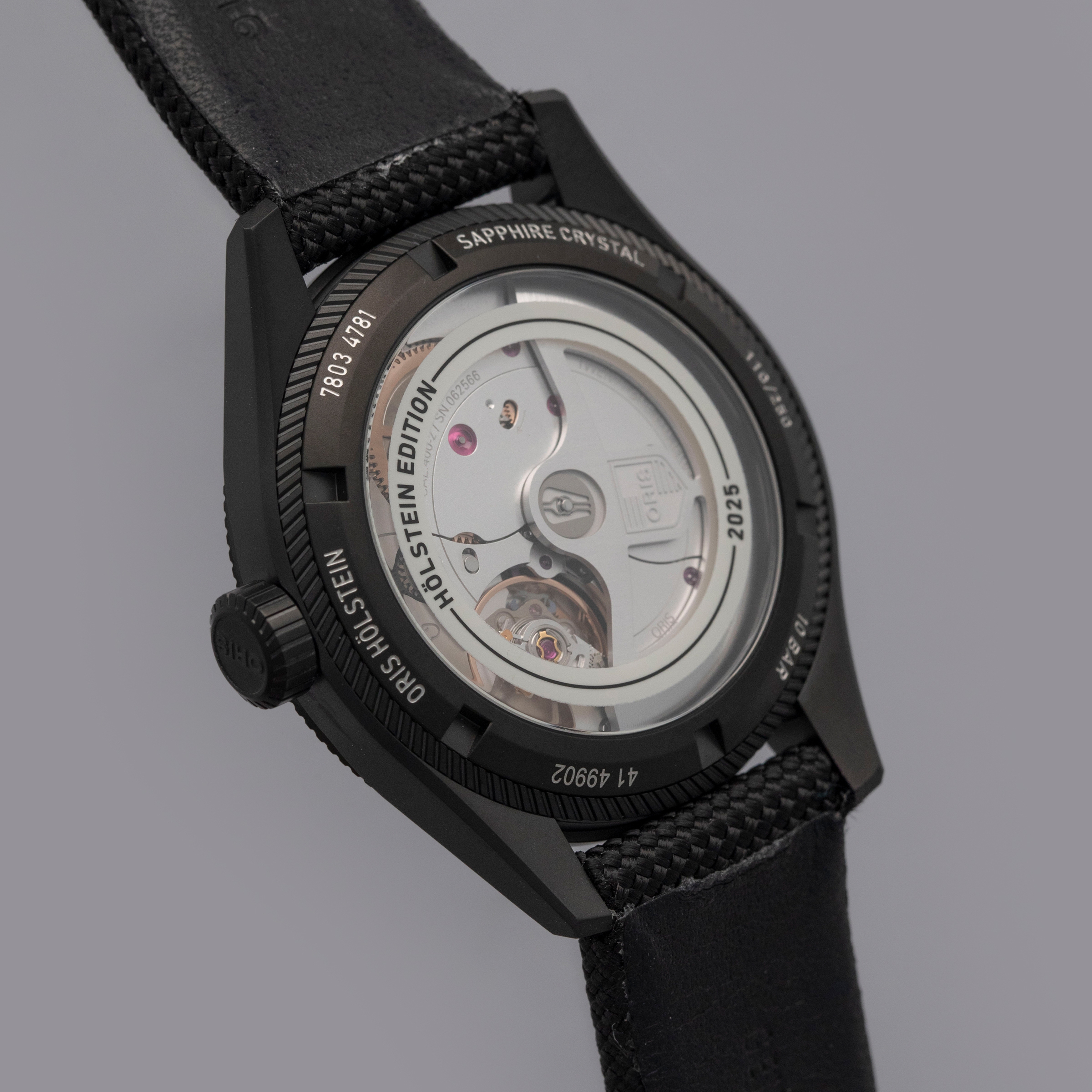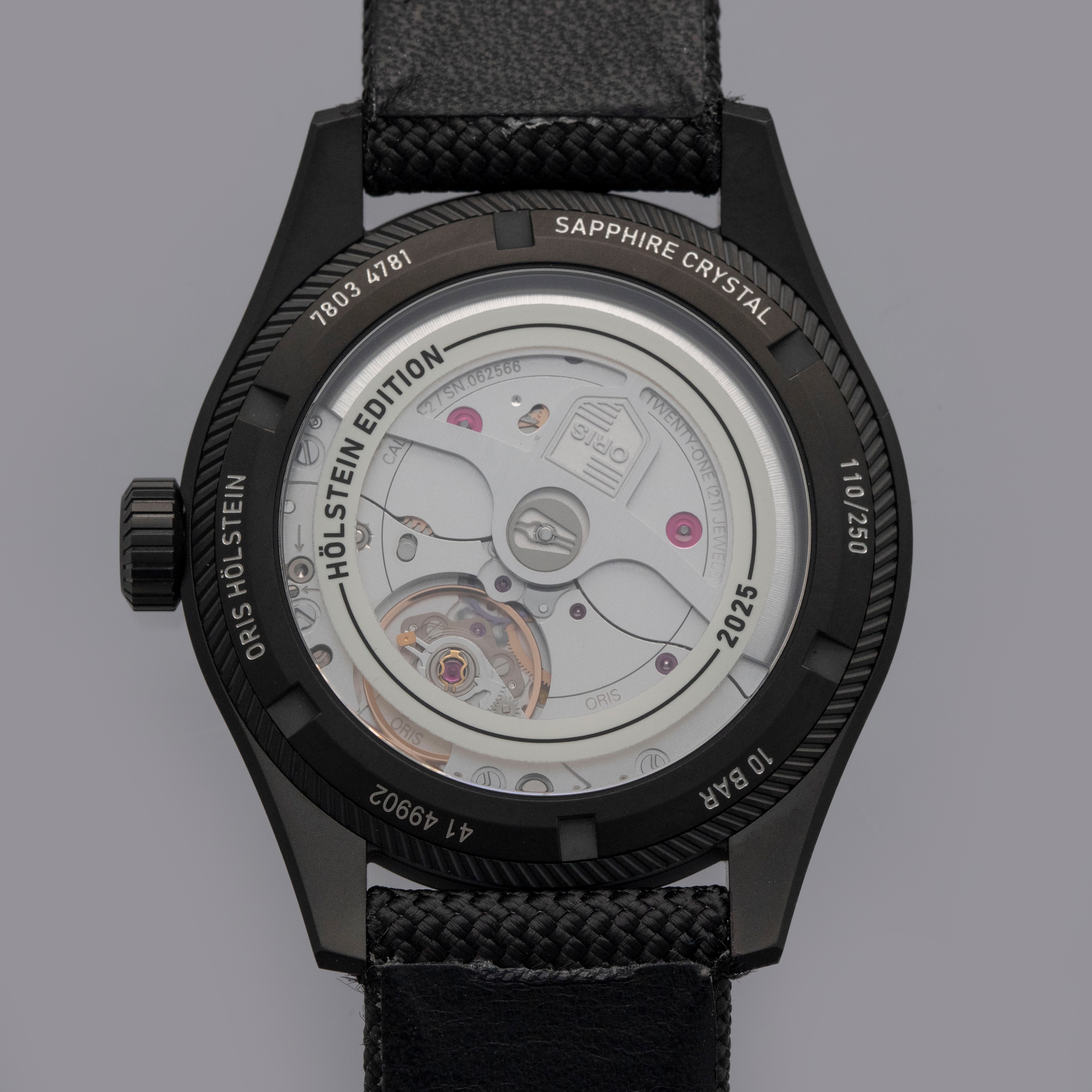 Launched on June 1st 2025 to celebrate Oris’ 121th birthday (a tradition of theirs), the ProPilot Holstein 2025 that we have here celebrates the brand’s heritage with one of their most popular models, the ProPilot. Limited to just 250 pieces, this PVD-coated stainless steel timepiece combines various facets of the ProPilot’s design, like its uniquely knurled bezel and angular lug design, with a distinctly modern twist that results in the perfect timepiece to celebrate the watchmaker’s impressive history. Boasting a seemingly understated white dial with applied Arabic numerals in black, to match its black hands, this timepiece’s party trick is the fact that the entire dial is coated in lume, with a dark patch at 3 o’clock left to leave behind the silhouette of the iconic Oris Bear. Individually-numbered on its sapphire crystal caseback that reveals its automatic cal. 400ND movement, this timepiece is a wonderful reminder of Oris’ modern technical skills while also highting their heritage as one of Switzerland’s oldest still-independent watchmakers.