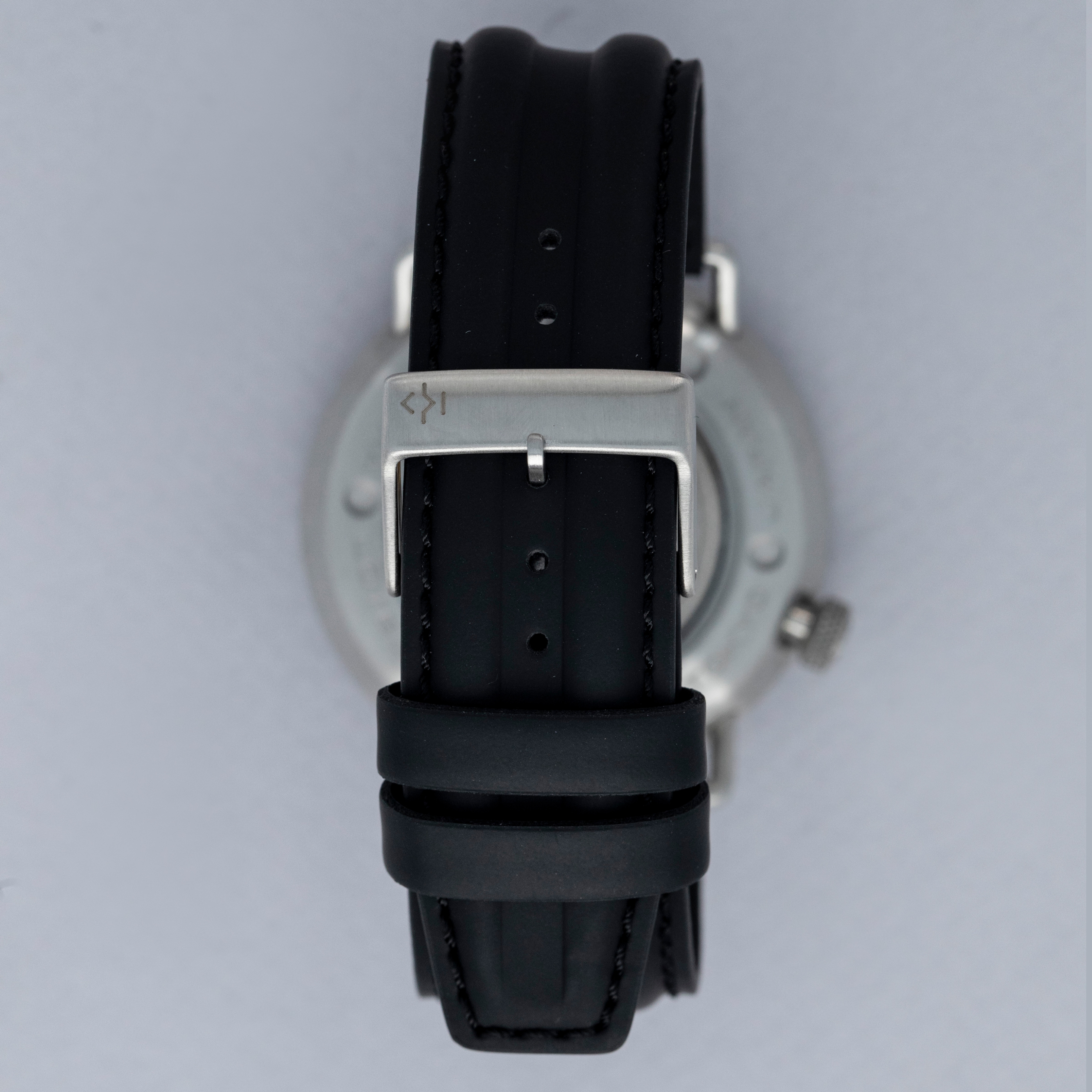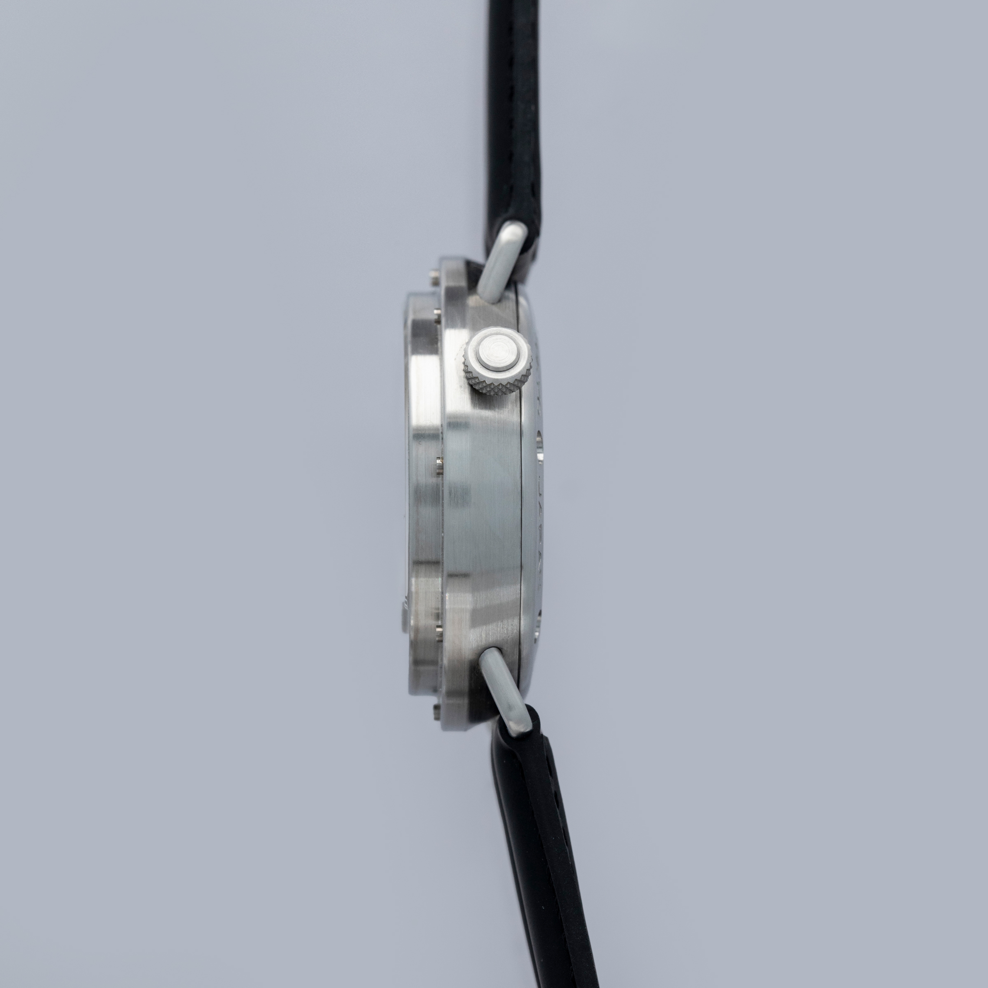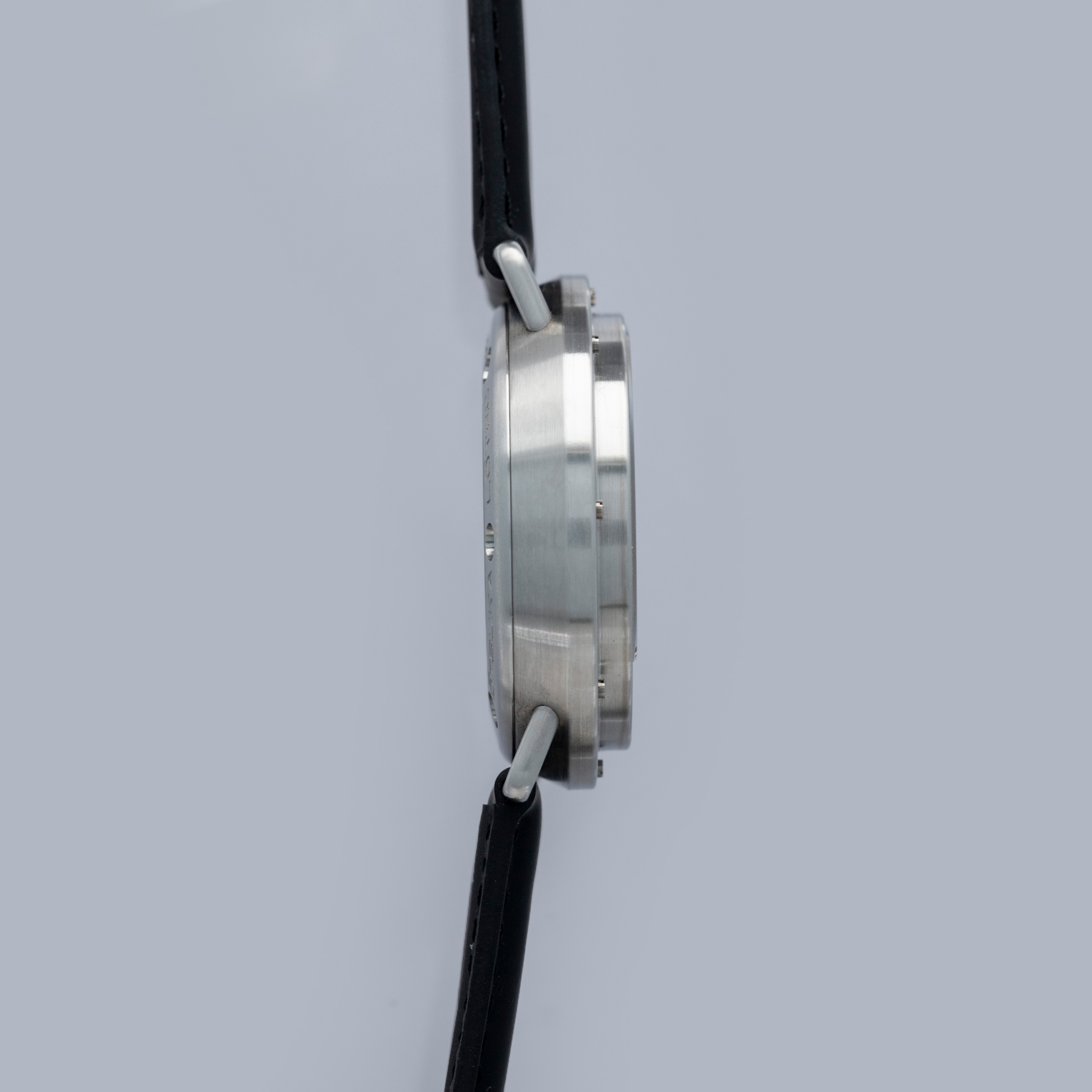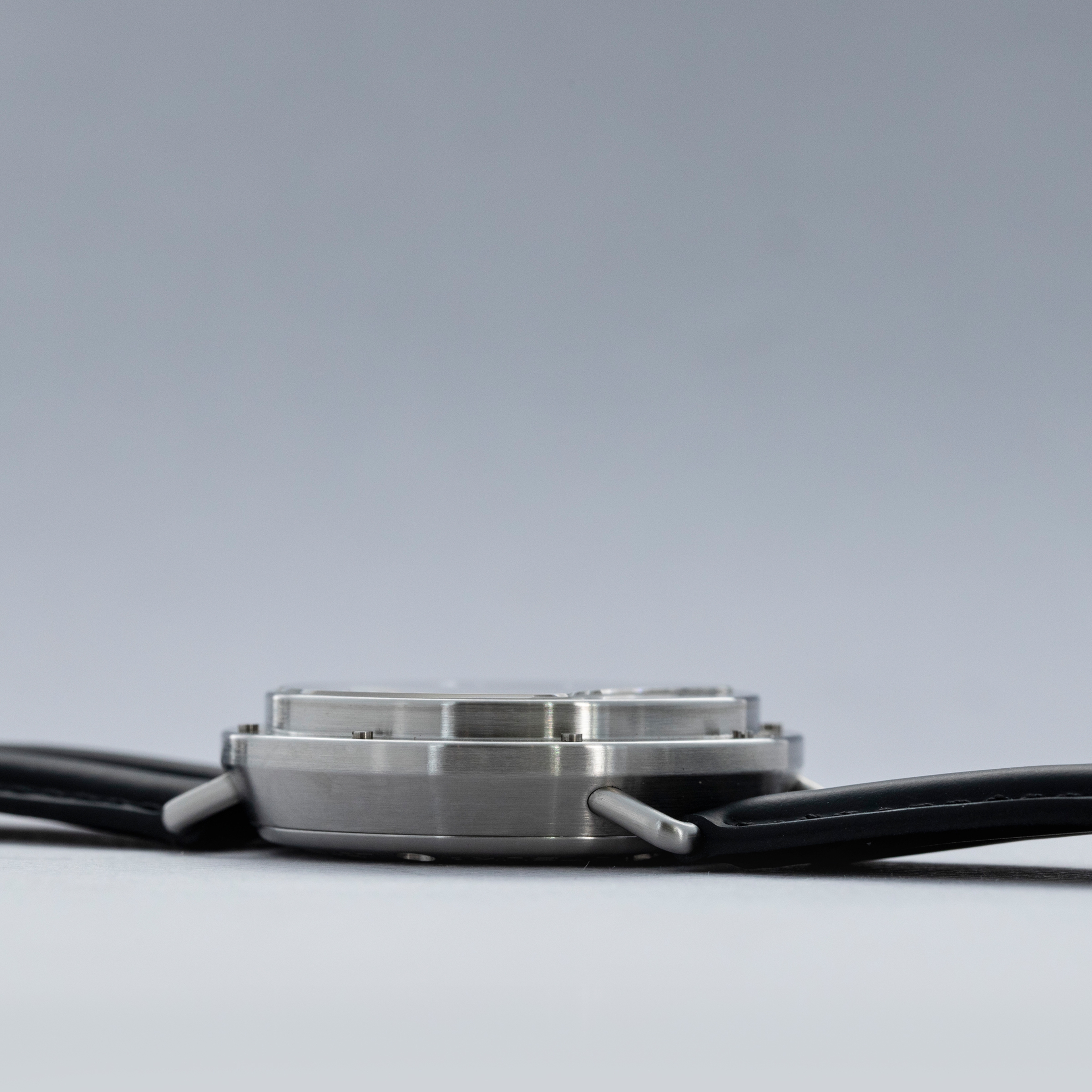 Decidedly unique and industrial, the No. 6's 42.6mm case features all brushed surfaces and exposed screws atop its bezel and on its dial that reveal Otsuka Lotec's function over form design thesis.