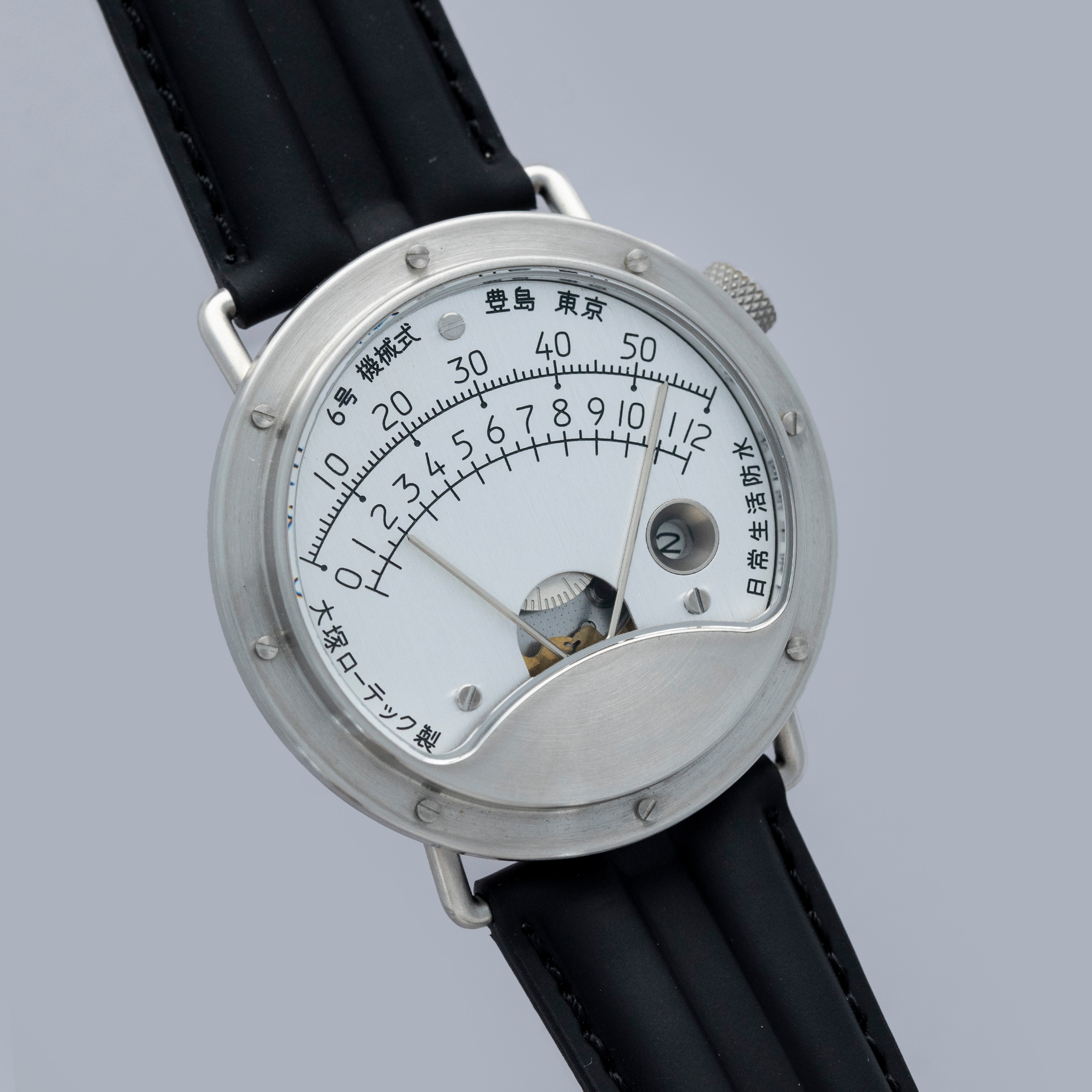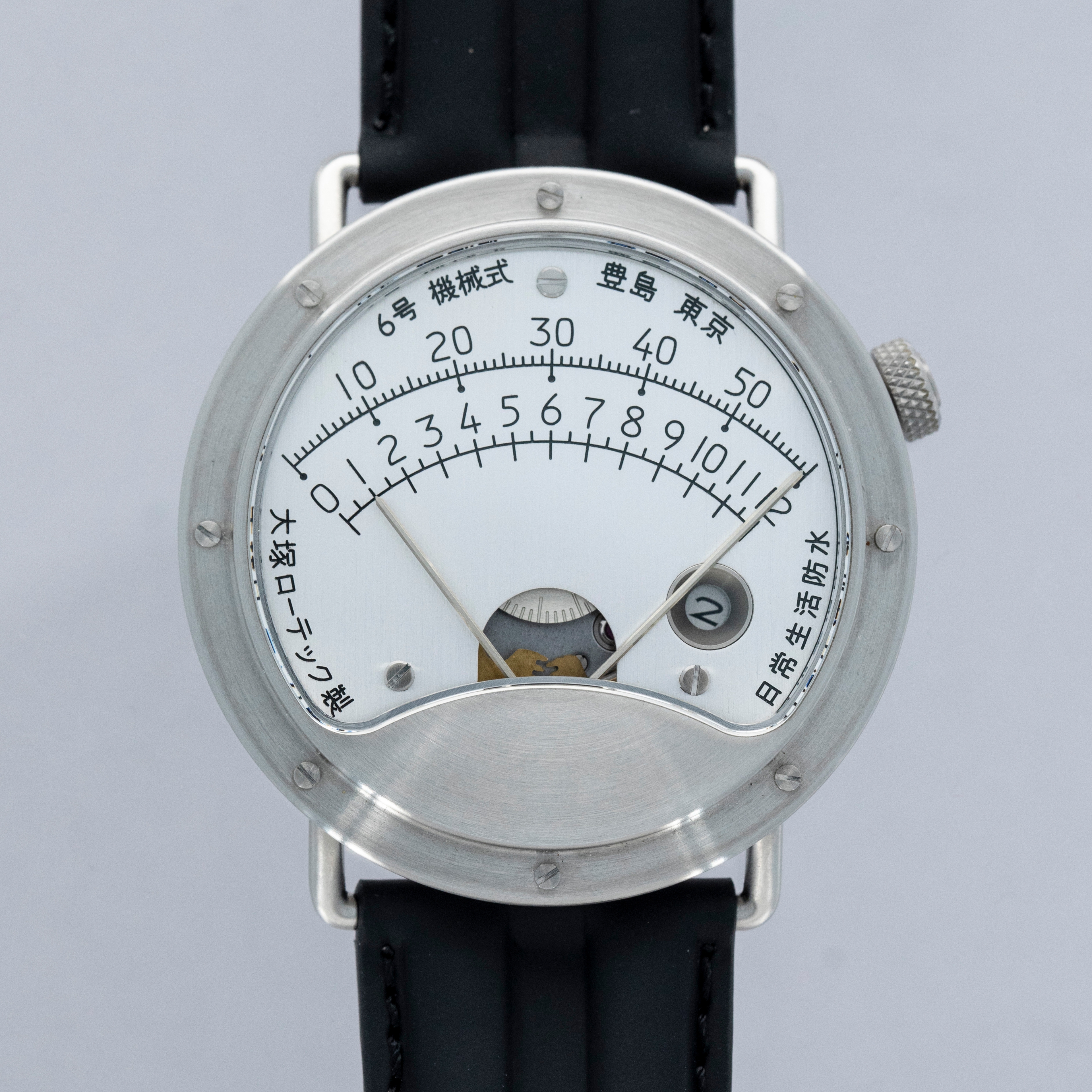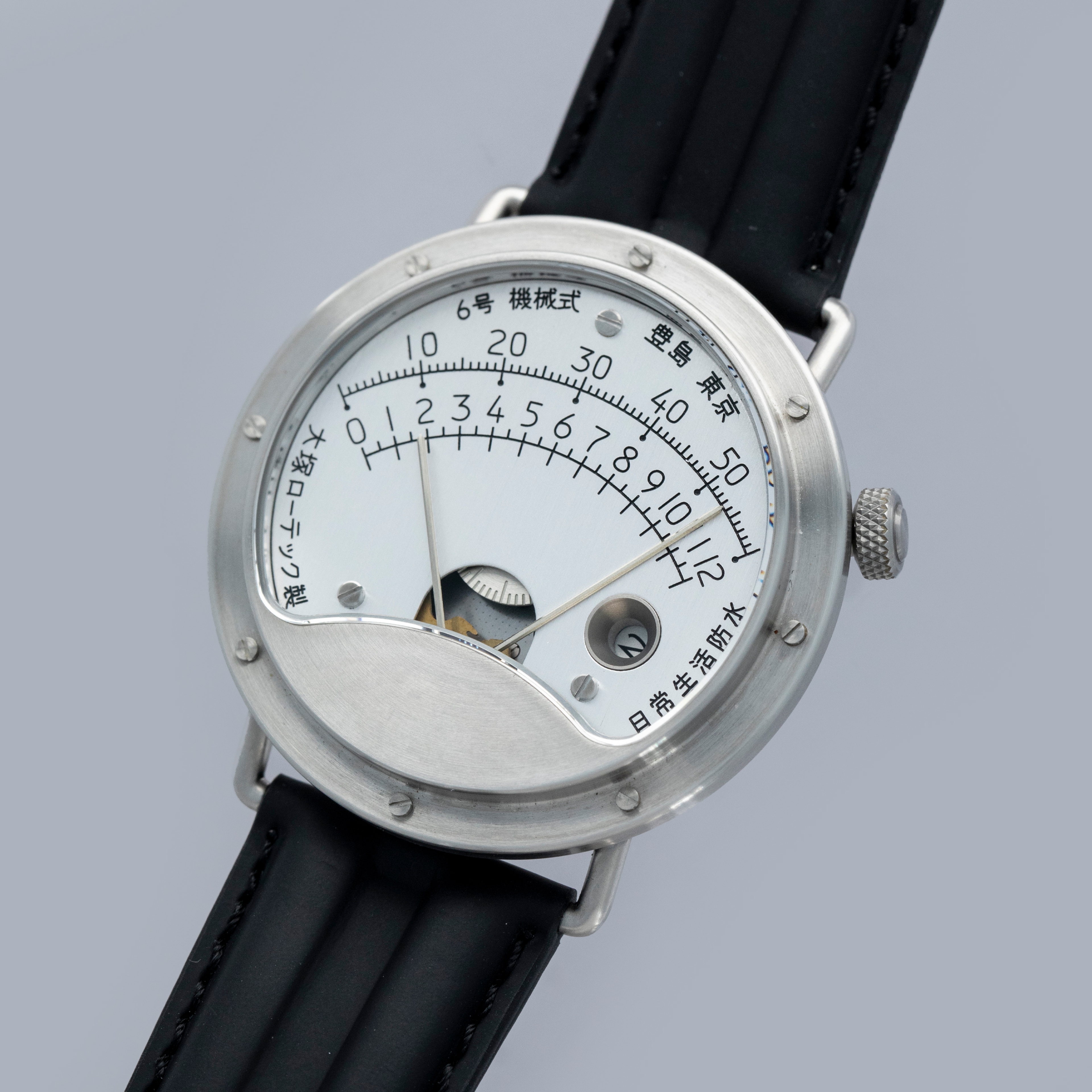 Originally moving into watchmaking in 2008 after studying automotive design, Jiro Katayama, a Tokyo-based watchmaker and designer, draws his inspiration from the realm of industrial world where his career originally started. Incorporating automotive design details and an industrialized steampunk aesthetic, Katayama’s timepieces, offered in limited runs only in Japan through his brand Otsuka Lotec, are some of the most visually distinctive and unique watches within the modern realm of indie watchmaking. Winning the recent Challenge Watch Prize in 2024’s GPHG awards, the No. 6 has quickly become Otsuka Lotec’s most revered watch. Boasting a brushed stainless steel design with exposed screws, a stepped bezel, wire lugs, and a large monochromatic retrograde time display, the resulting timepiece is reminiscent of the pressure gauge on a car or a hygrometer.