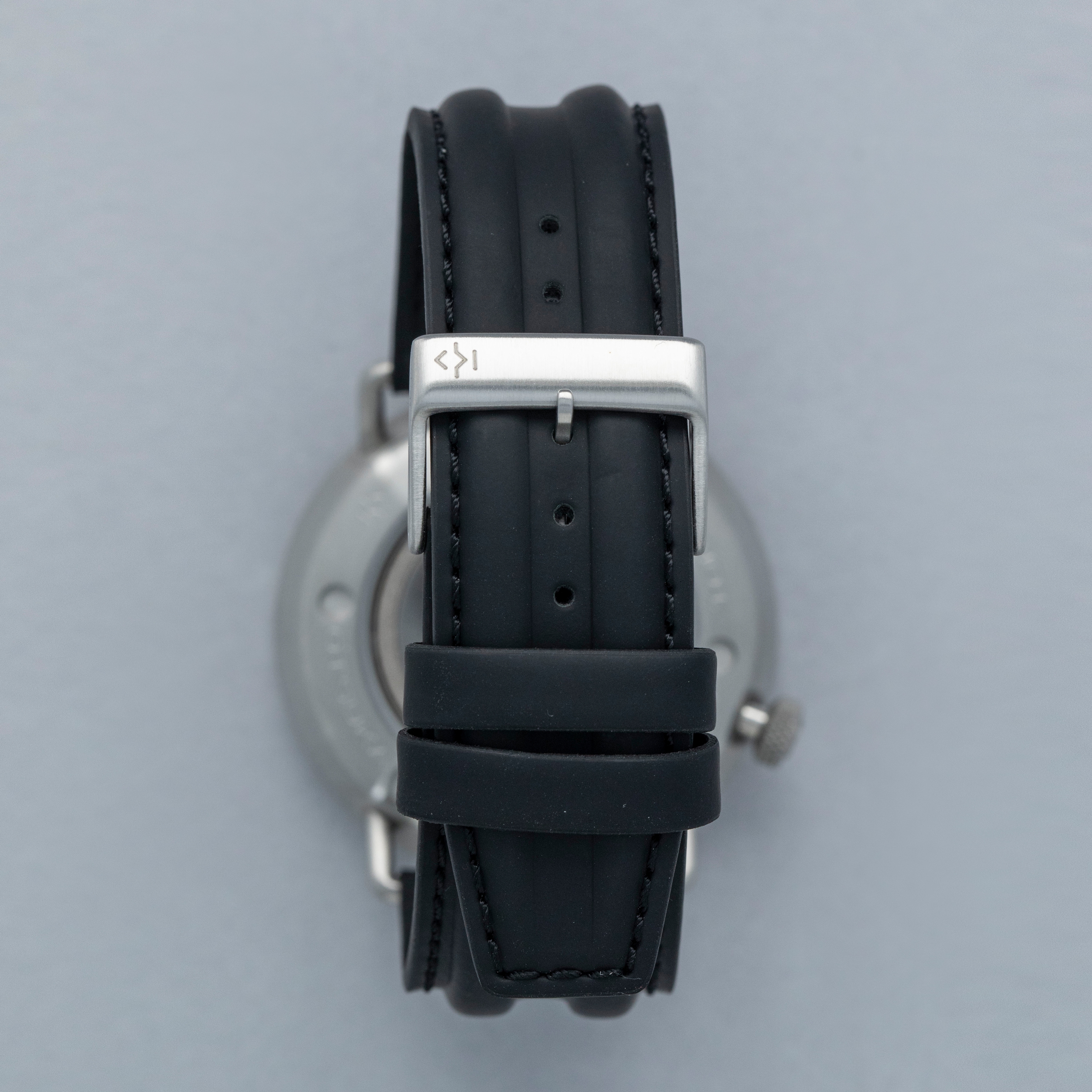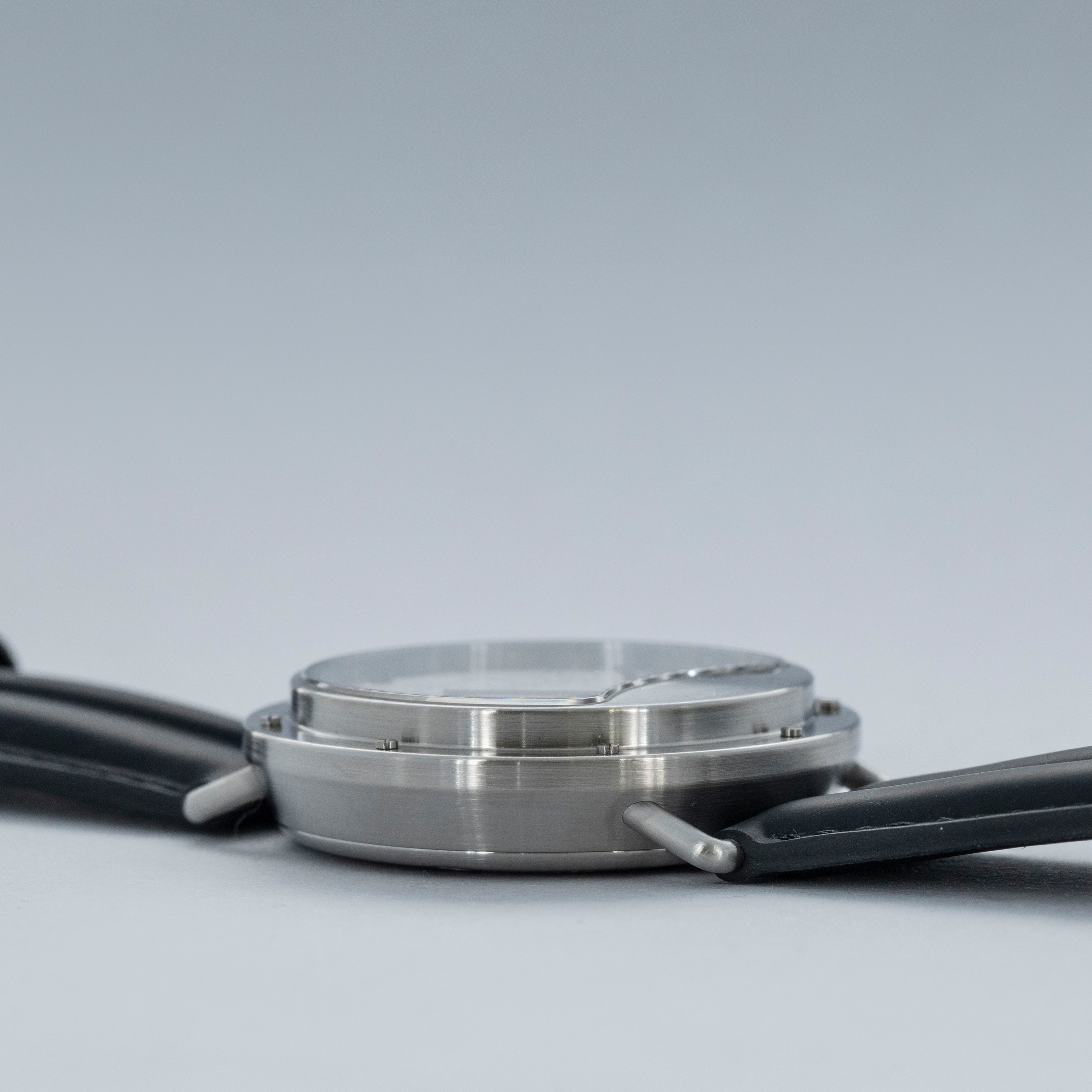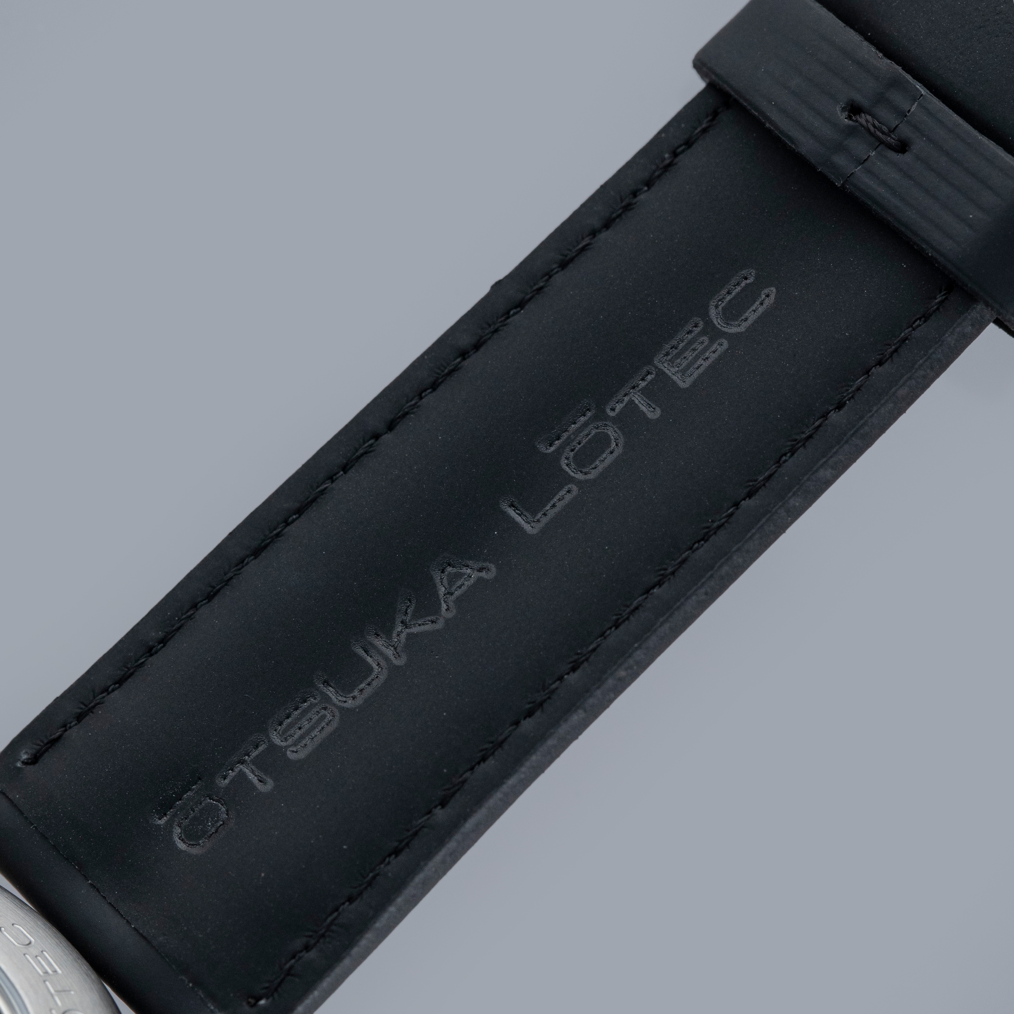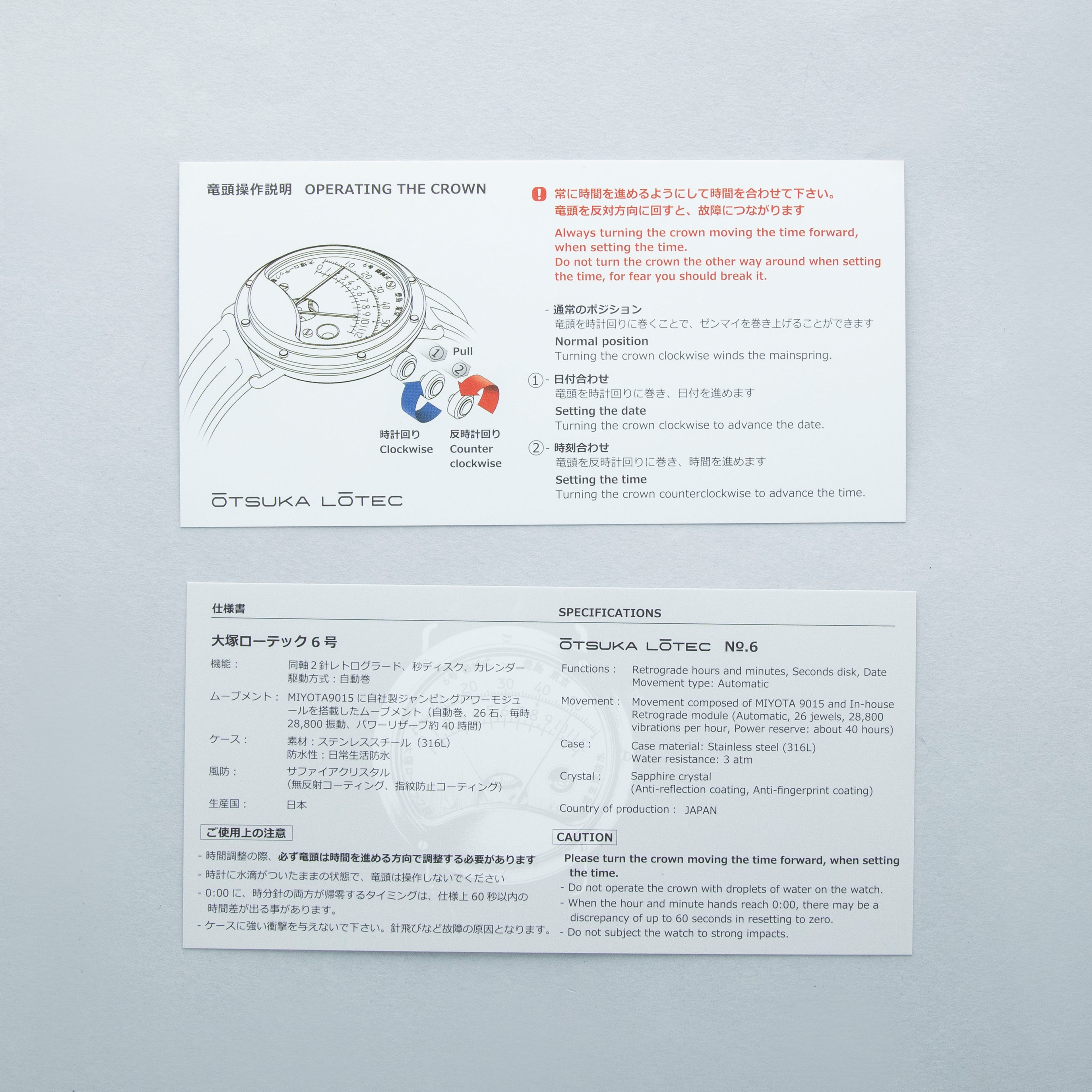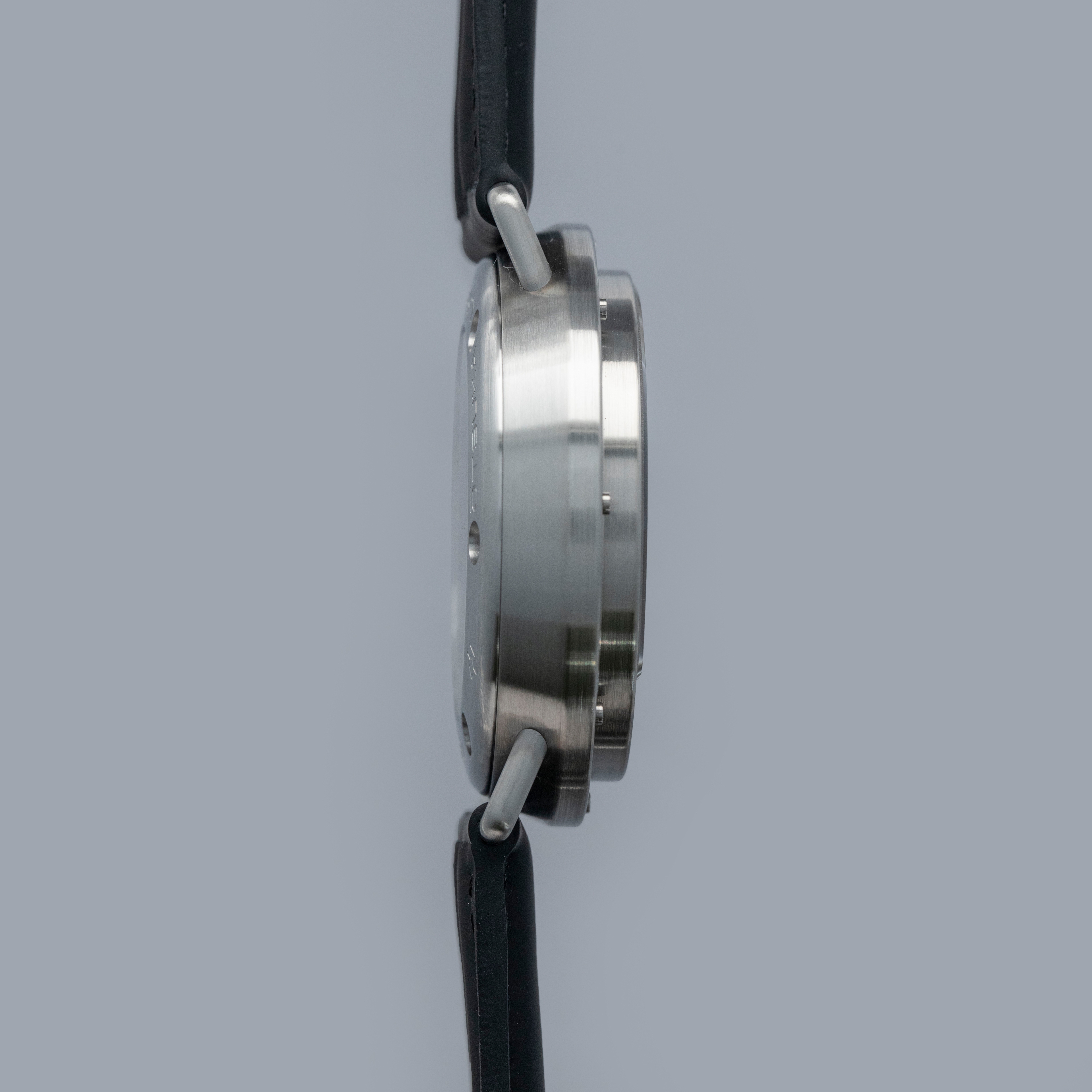 Decidedly unique and industrial, the No. 6's 42.6mm case features all brushed surfaces and exposed screws atop its bezel and on its dial that reveal Otsuka Lotec's function over form design thesis.
