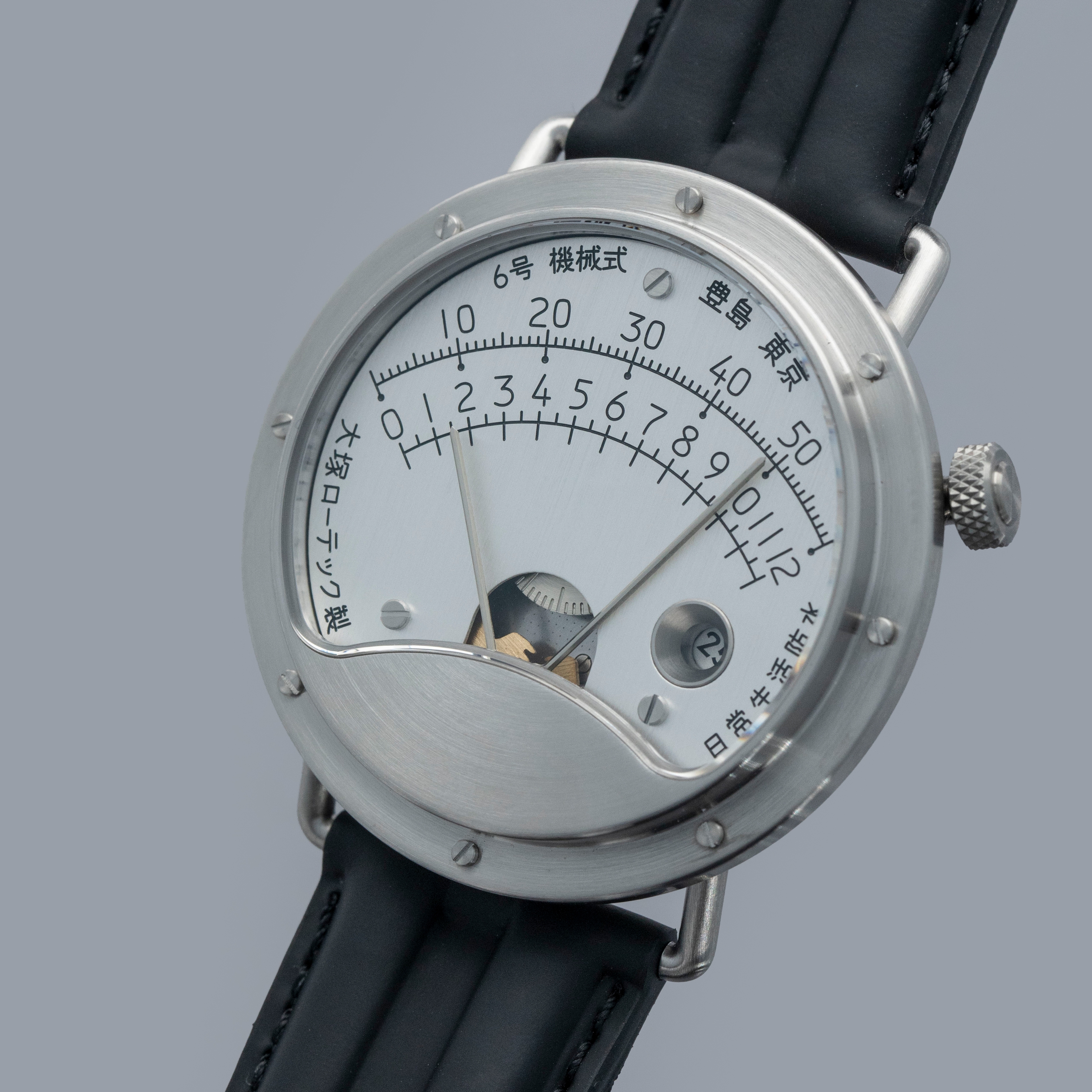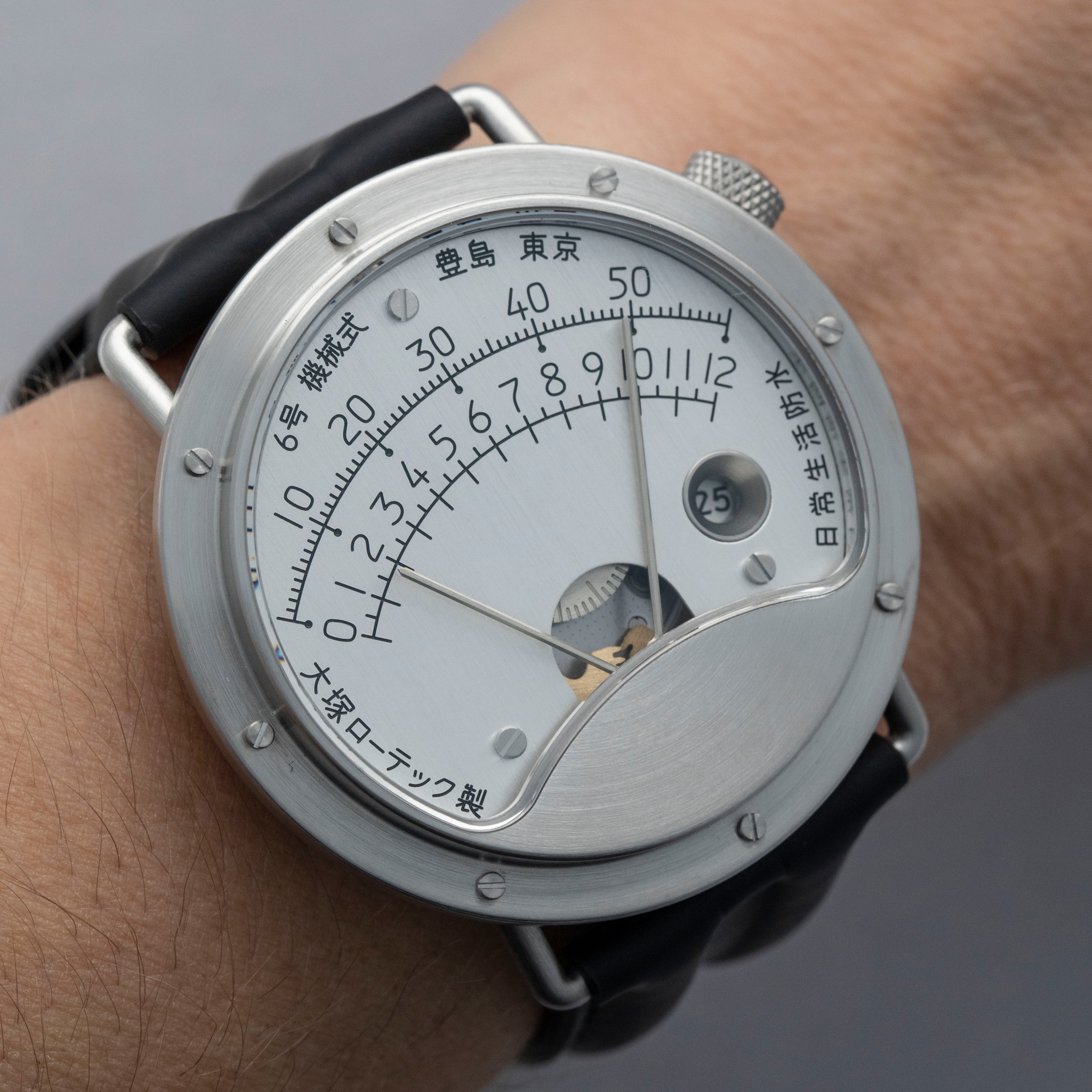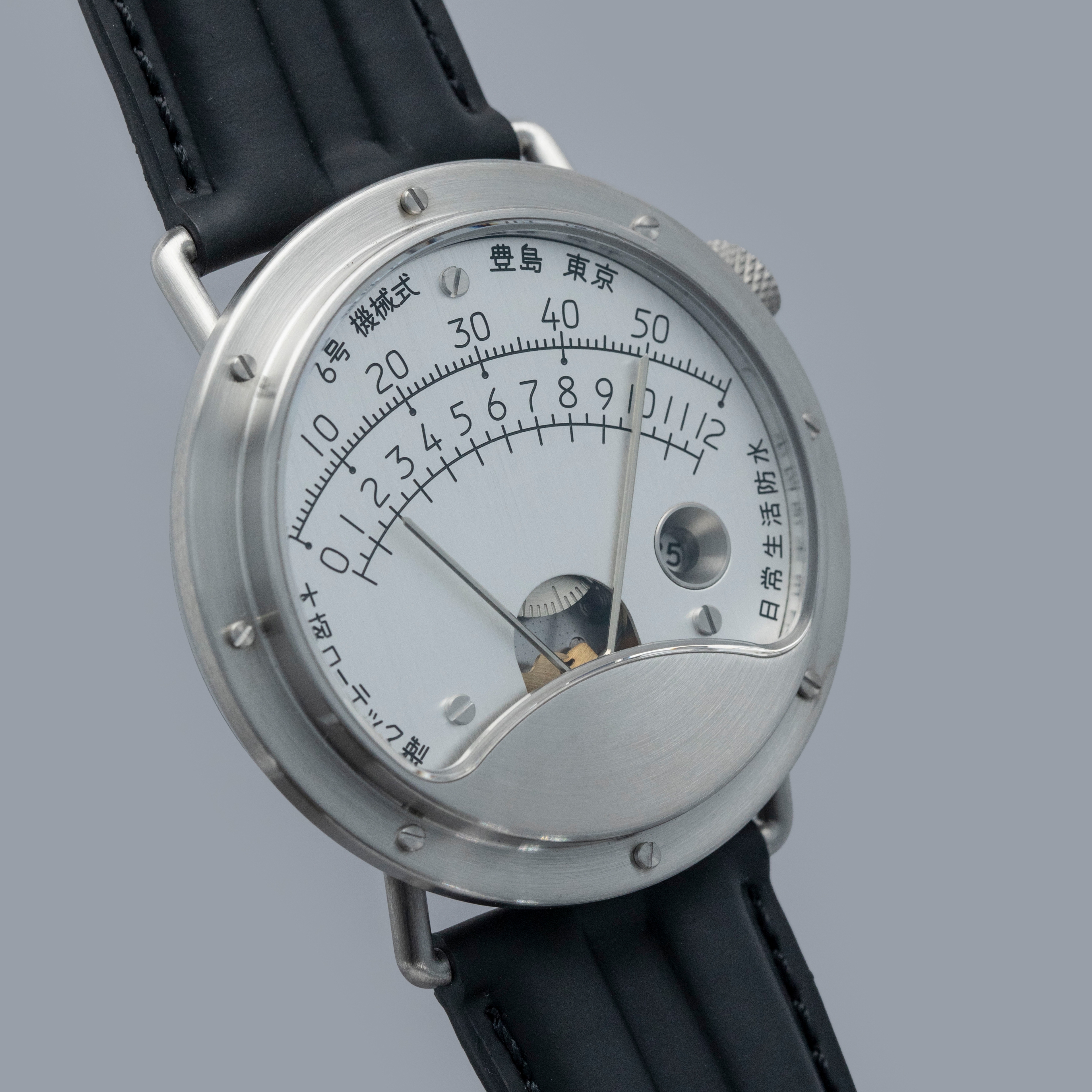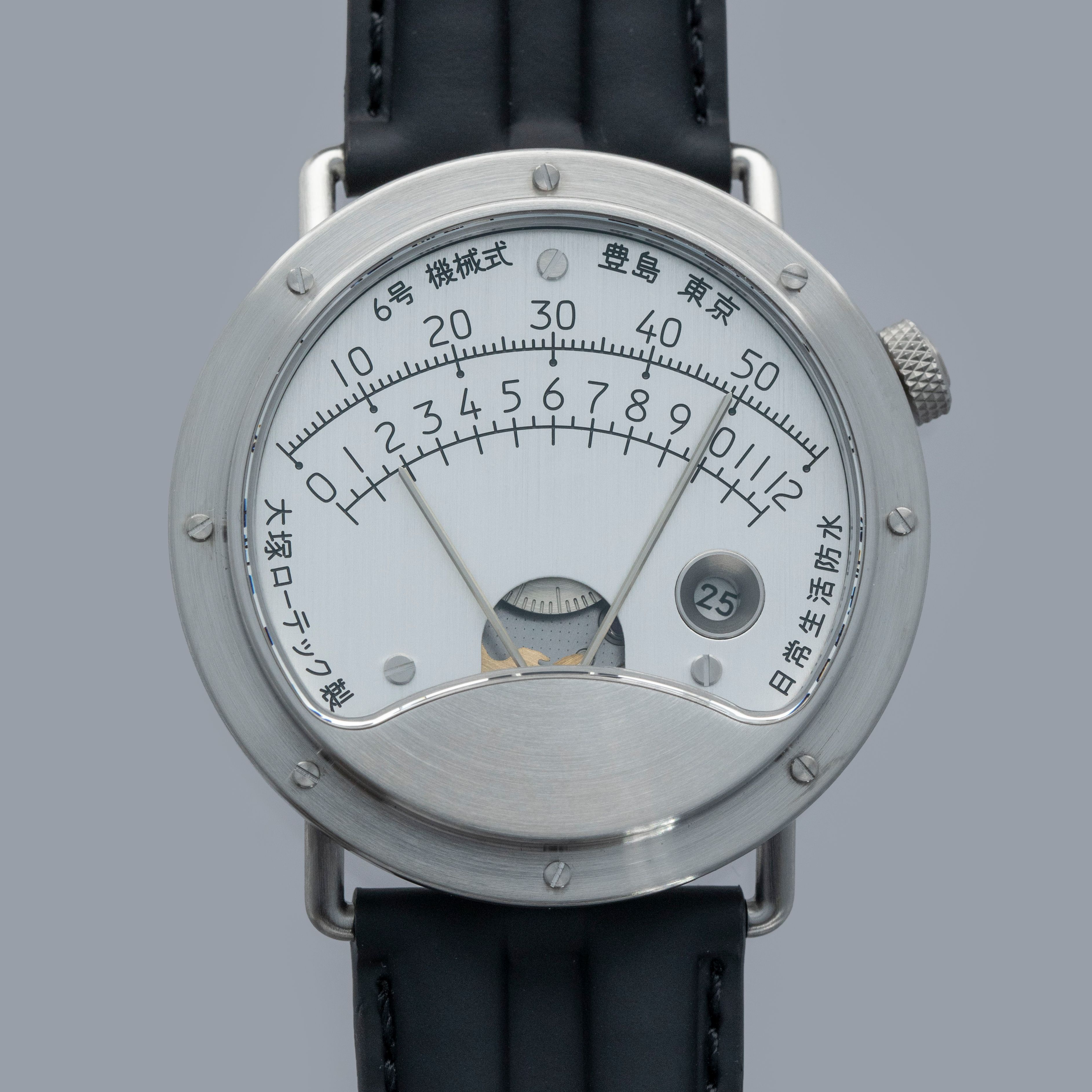Originally moving into watchmaking in 2008 after studying automotive design, Jiro Katayama, a Tokyo-based watchmaker and designer, draws his inspiration from the realm of industrial world where his career originally started. Incorporating automotive design details and an industrialized steampunk aesthetic, Katayama’s timepieces, offered in limited runs only in Japan through his brand Otsuka Lotec, are some of the most visually distinctive and unique watches within the modern realm of indie watchmaking. Winning the recent Challenge Watch Prize in 2024’s GPHG awards, the No. 6 has quickly become Otsuka Lotec’s most revered watch. Boasting a brushed stainless steel design with exposed screws, a stepped bezel, wire lugs, and a large monochromatic retrograde time display, the resulting timepiece is reminiscent of the pressure gauge on a car or a hygrometer.