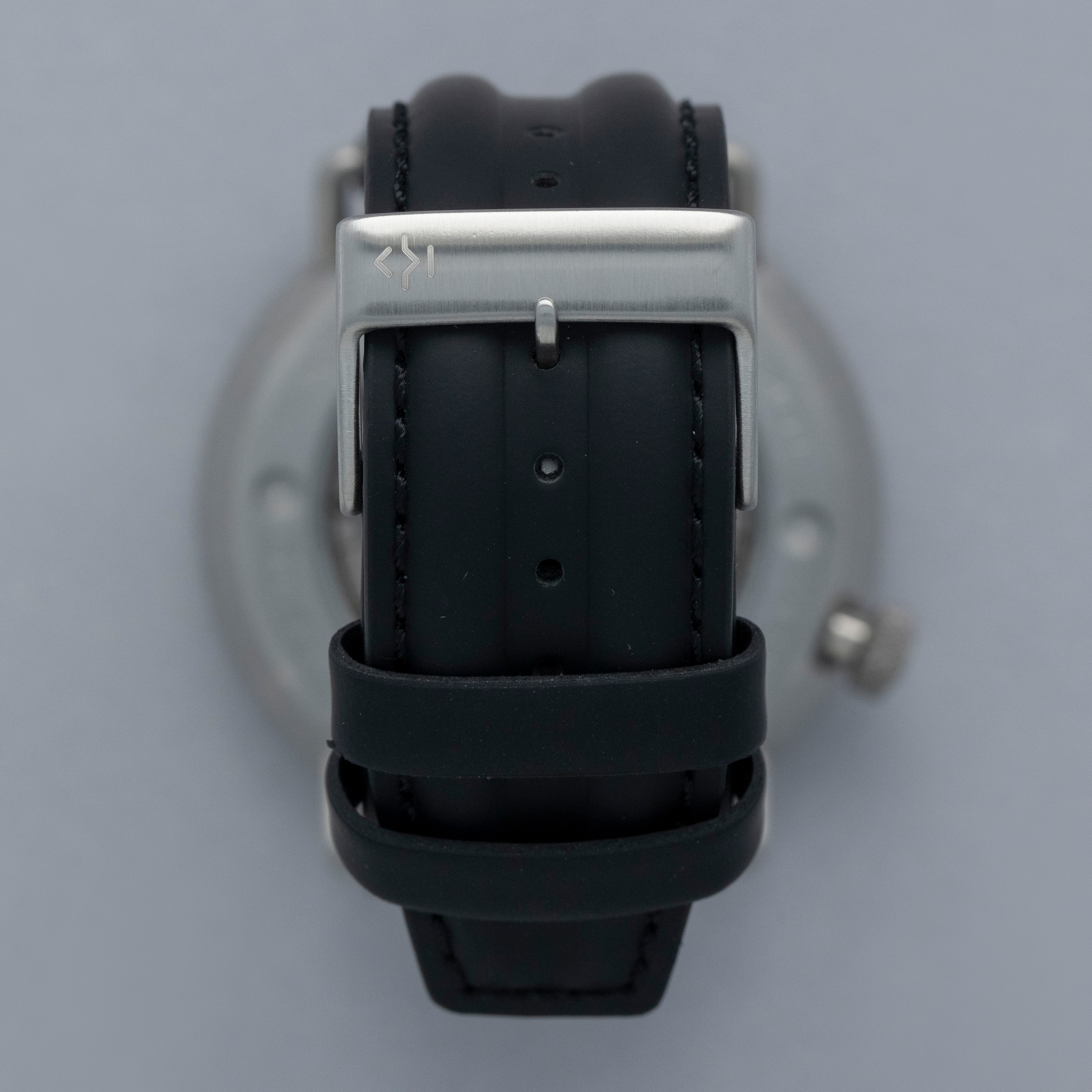 Designed to emulate the gauges that adorn the dashboards of cars and industrial equipment, the No. 6's monochromatic silver dial features a retrograde minute and hour hand along with exposed screws that further feed into its steampunk aesthetic.