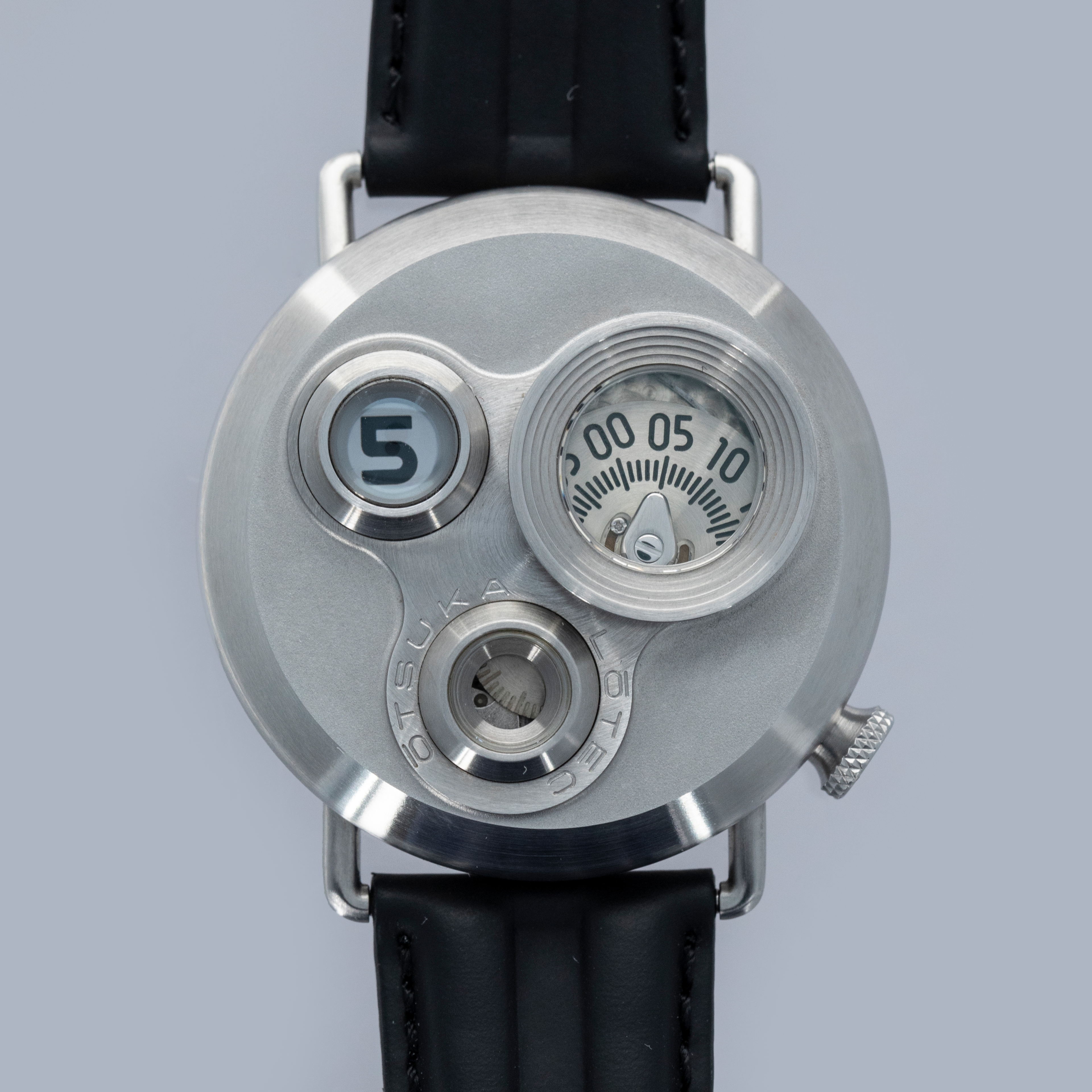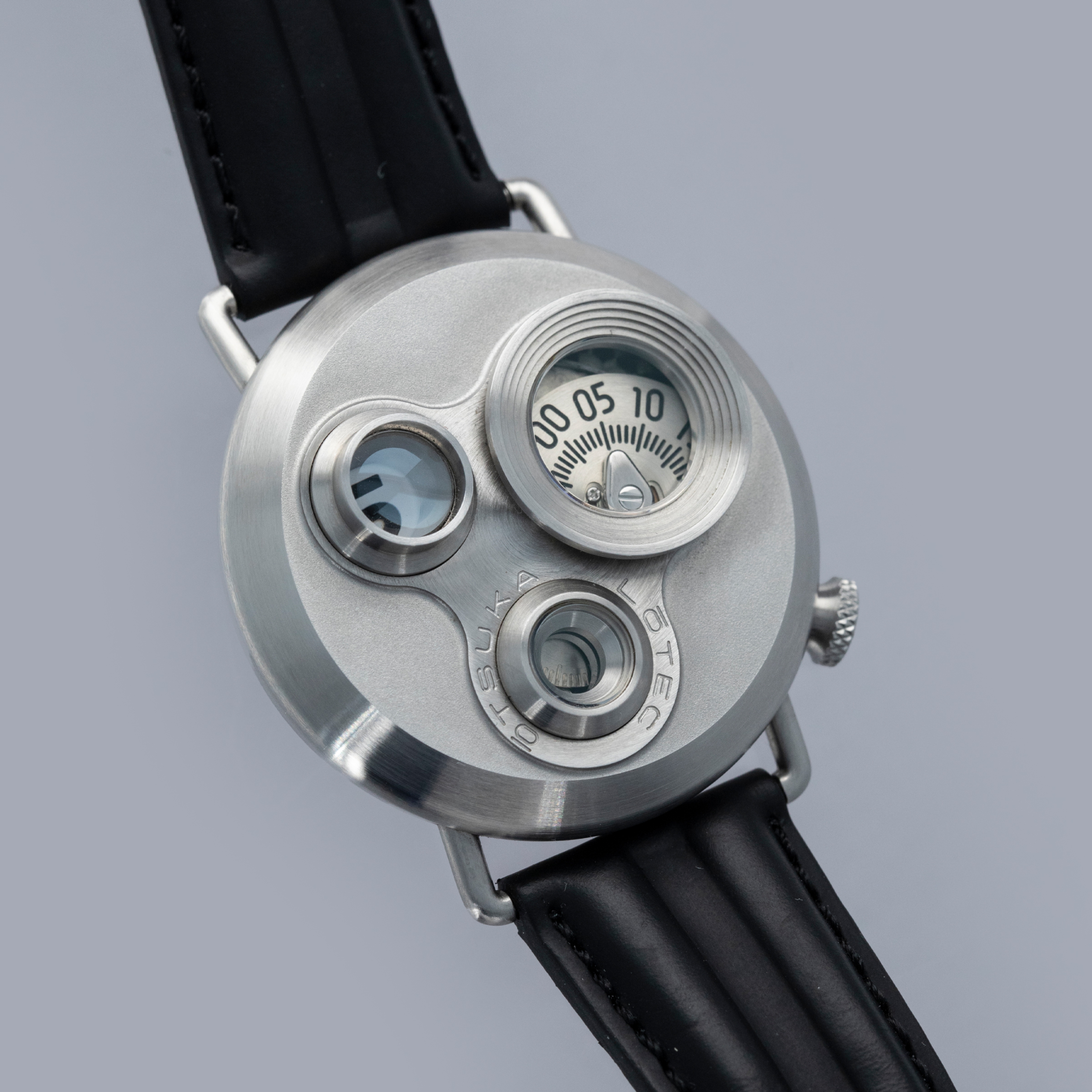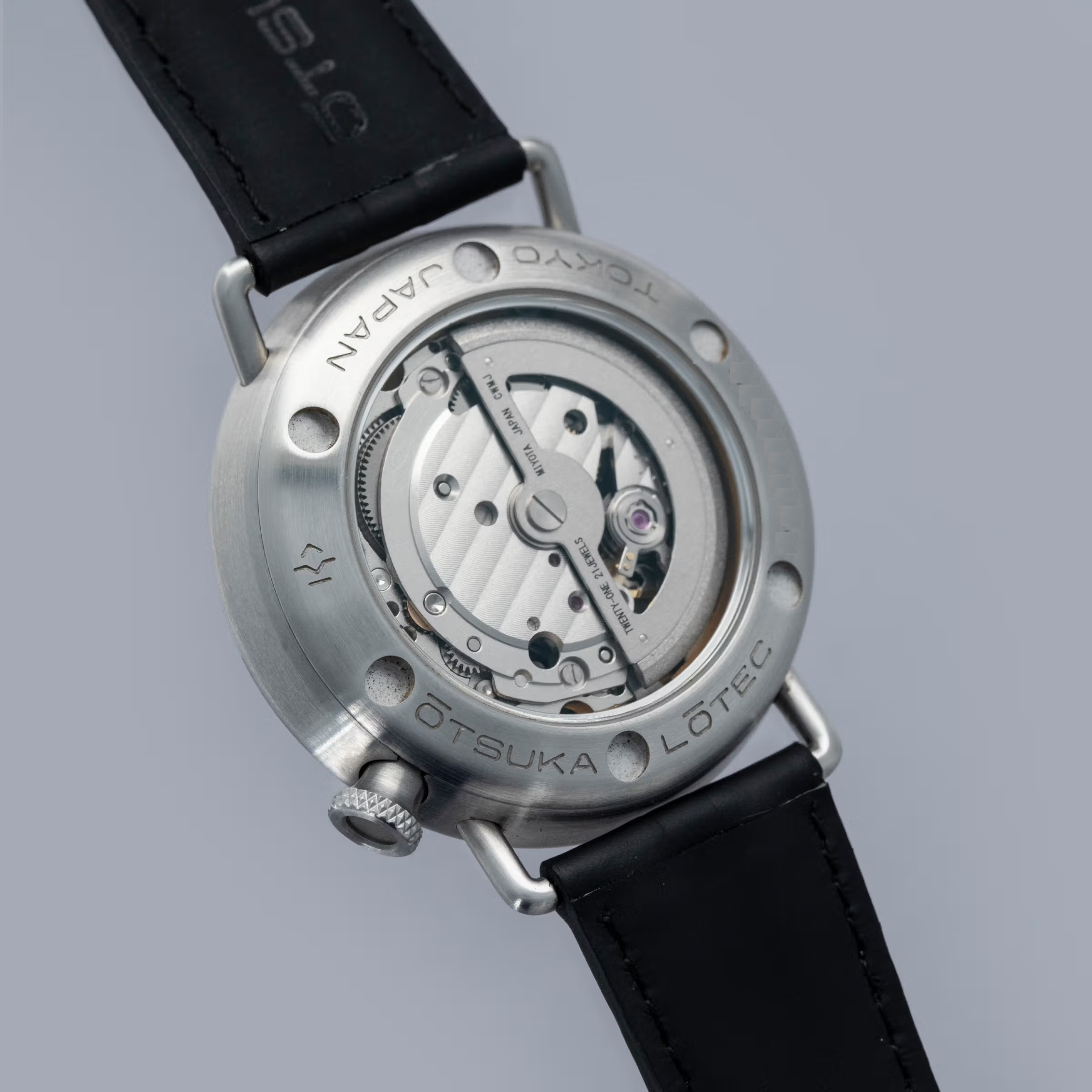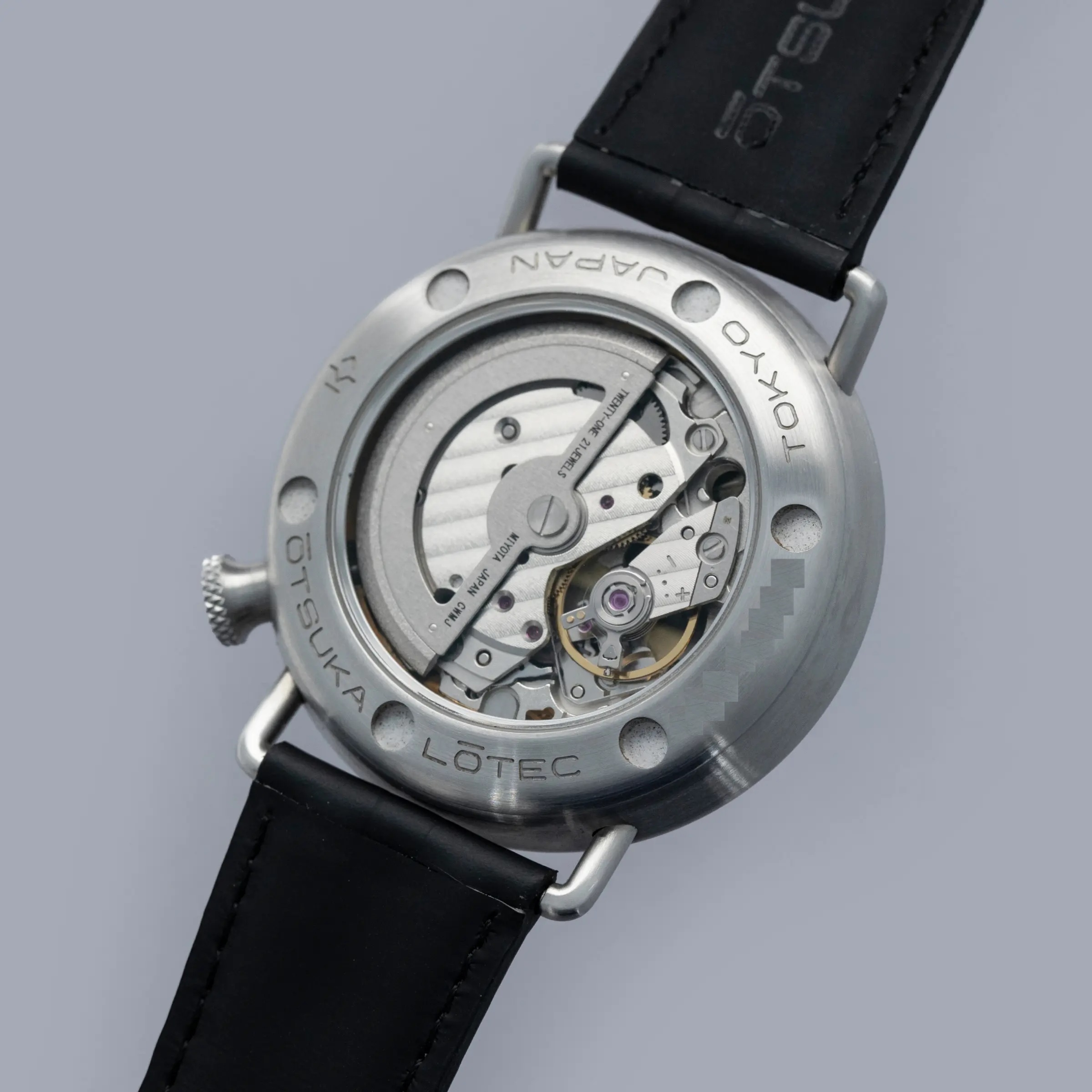 Decidedly unique and industrial, the No. 7.5's 40mm case features all brushed surfaces atop its case and bezel that reveal Otsuka Lotec's function over form design thesis.