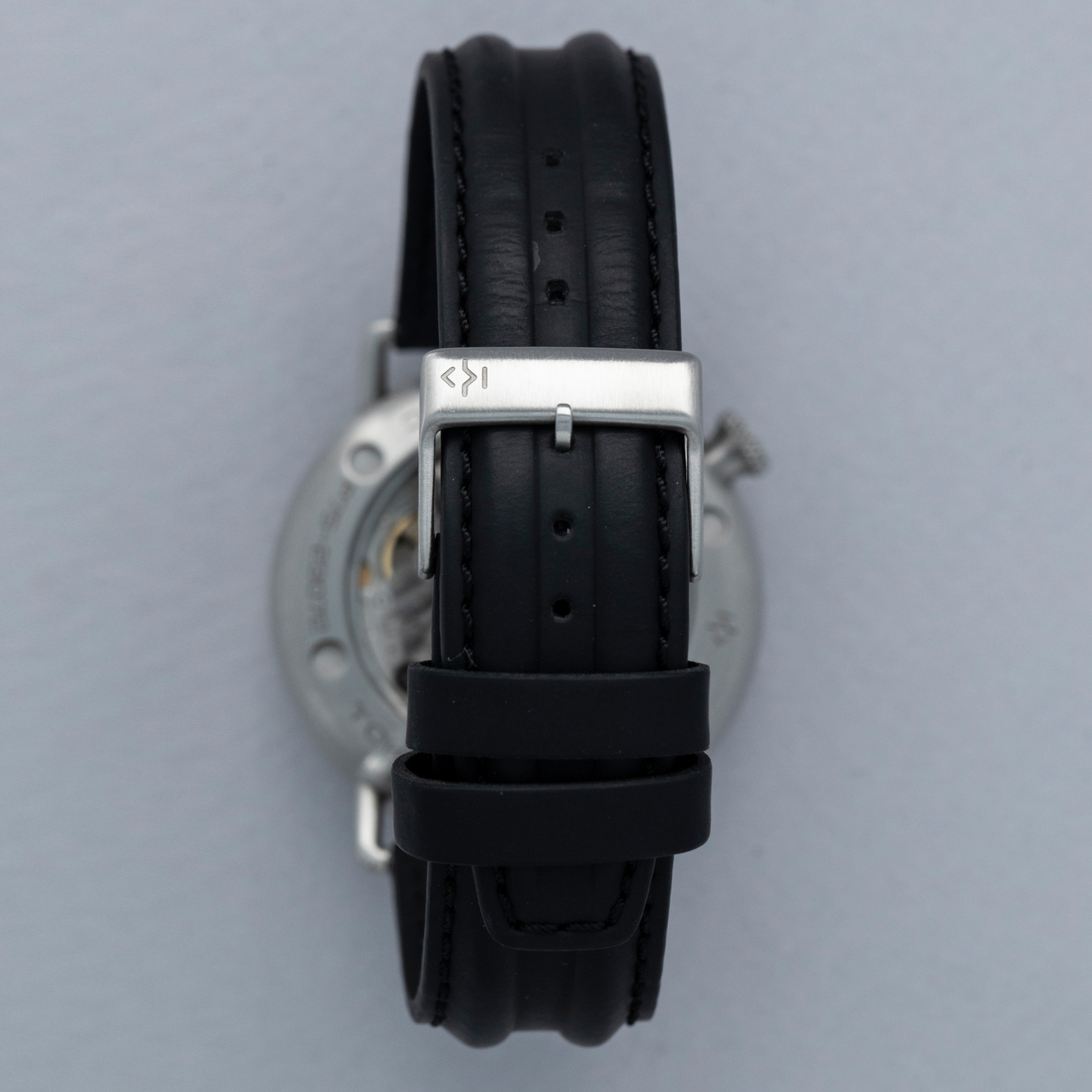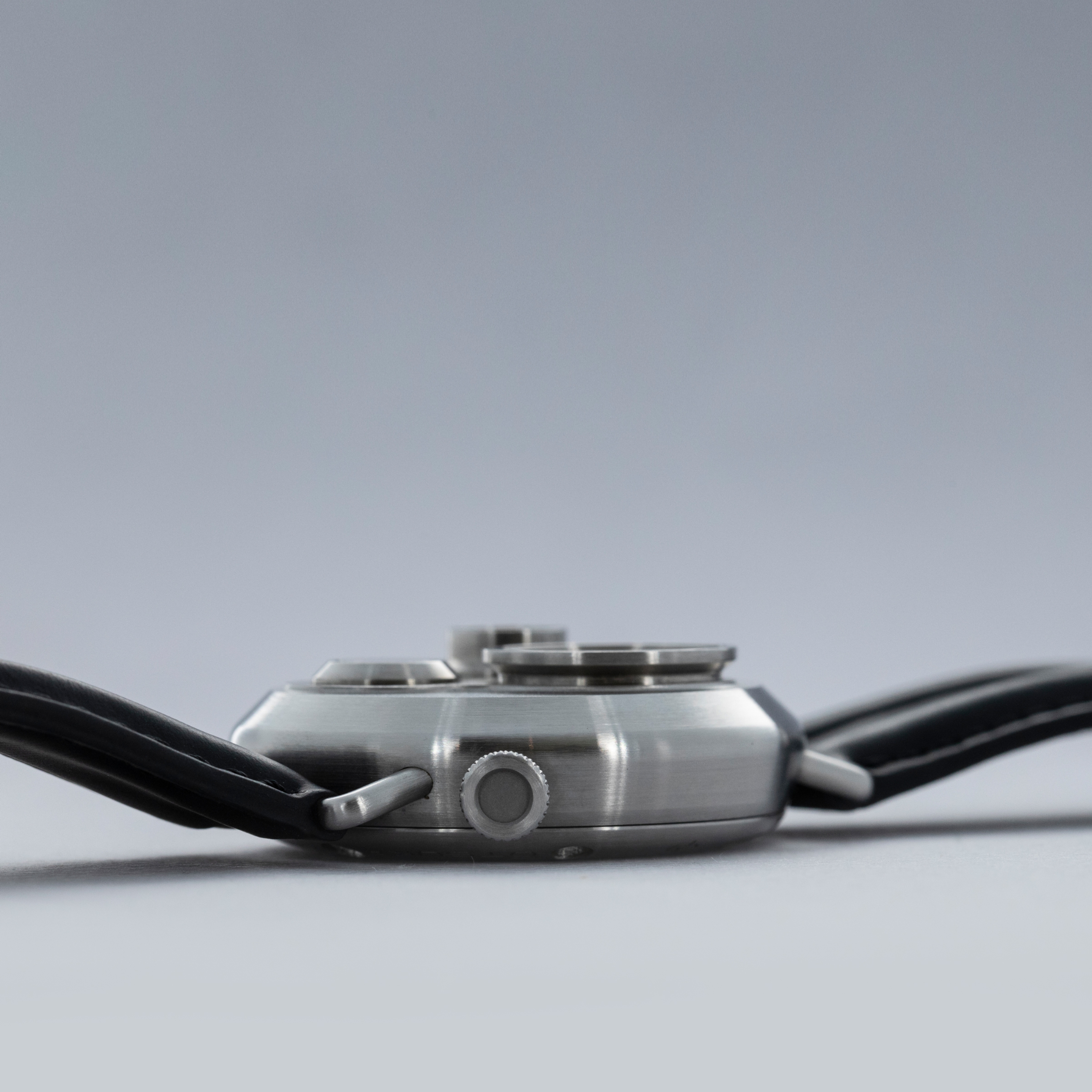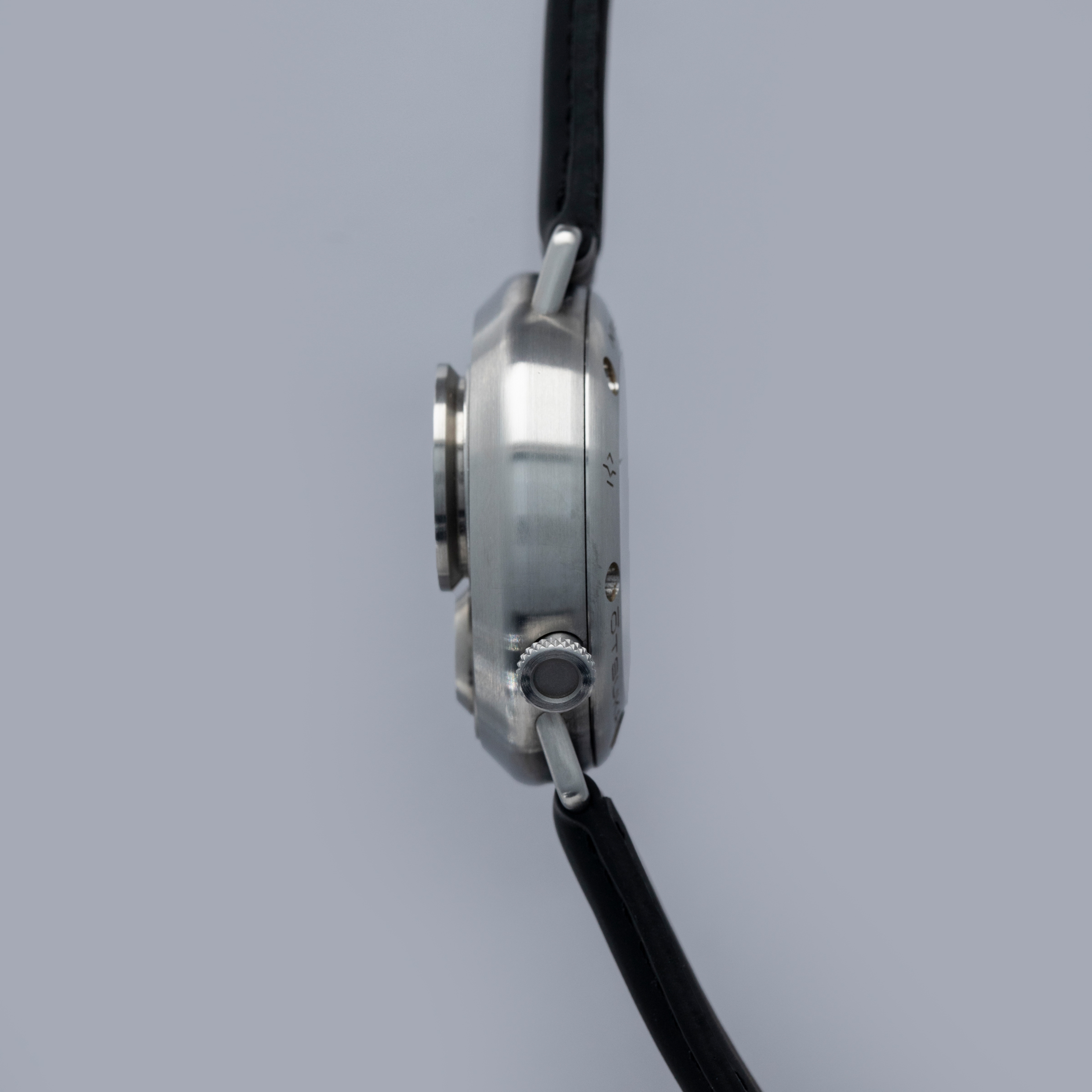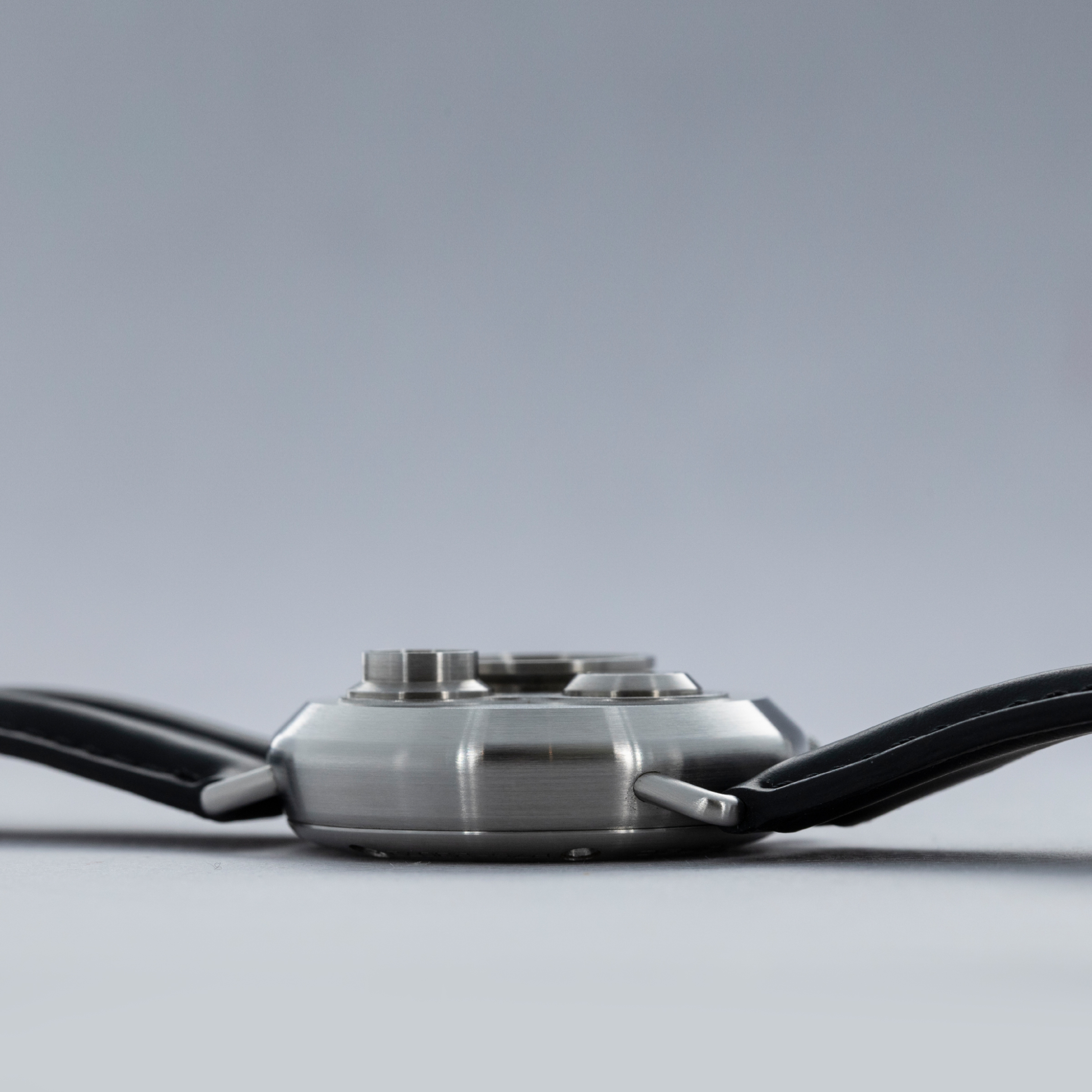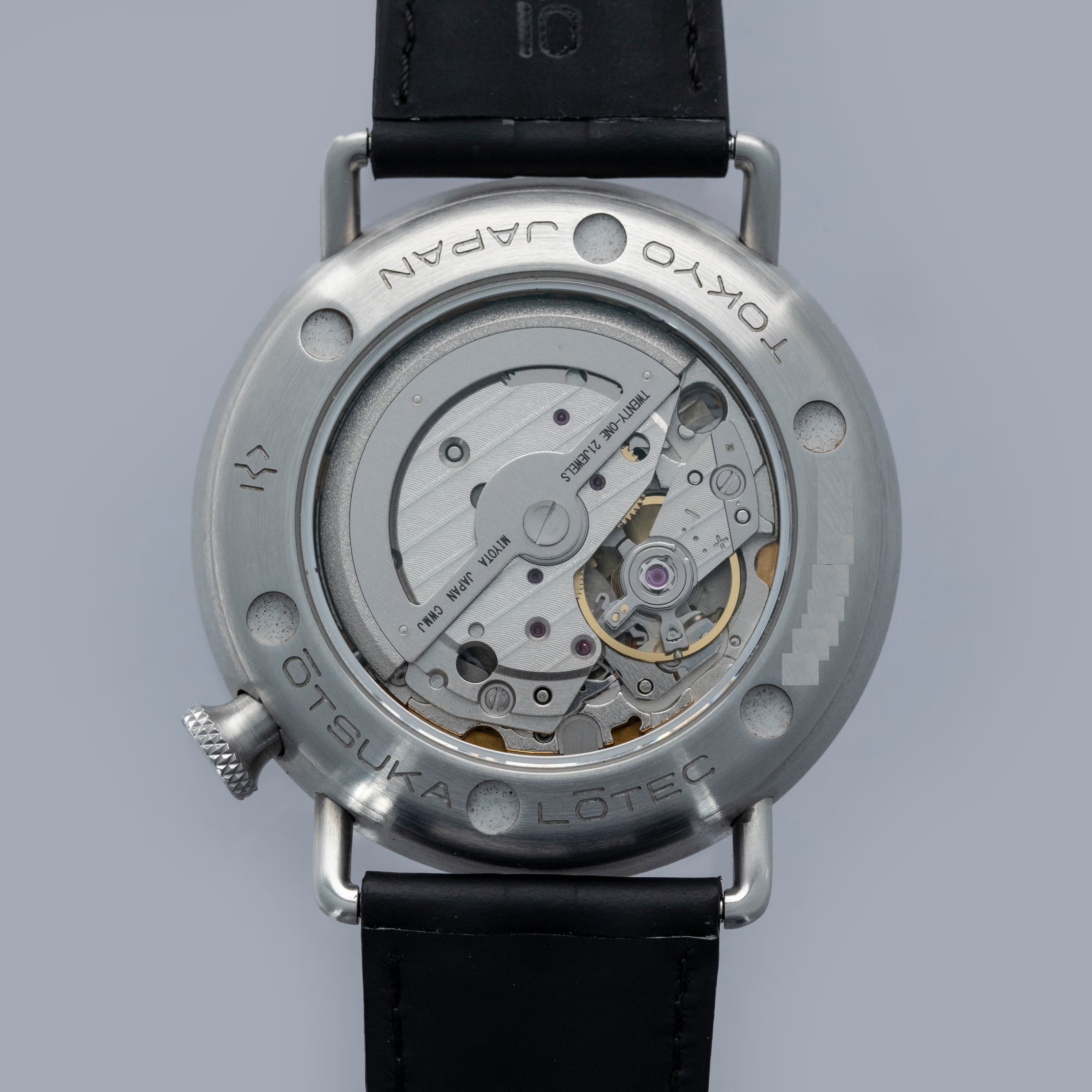Decidedly unique and industrial, the No. 7.5's 40mm case features all brushed surfaces atop its case and bezel that reveal Otsuka Lotec's function over form design thesis.