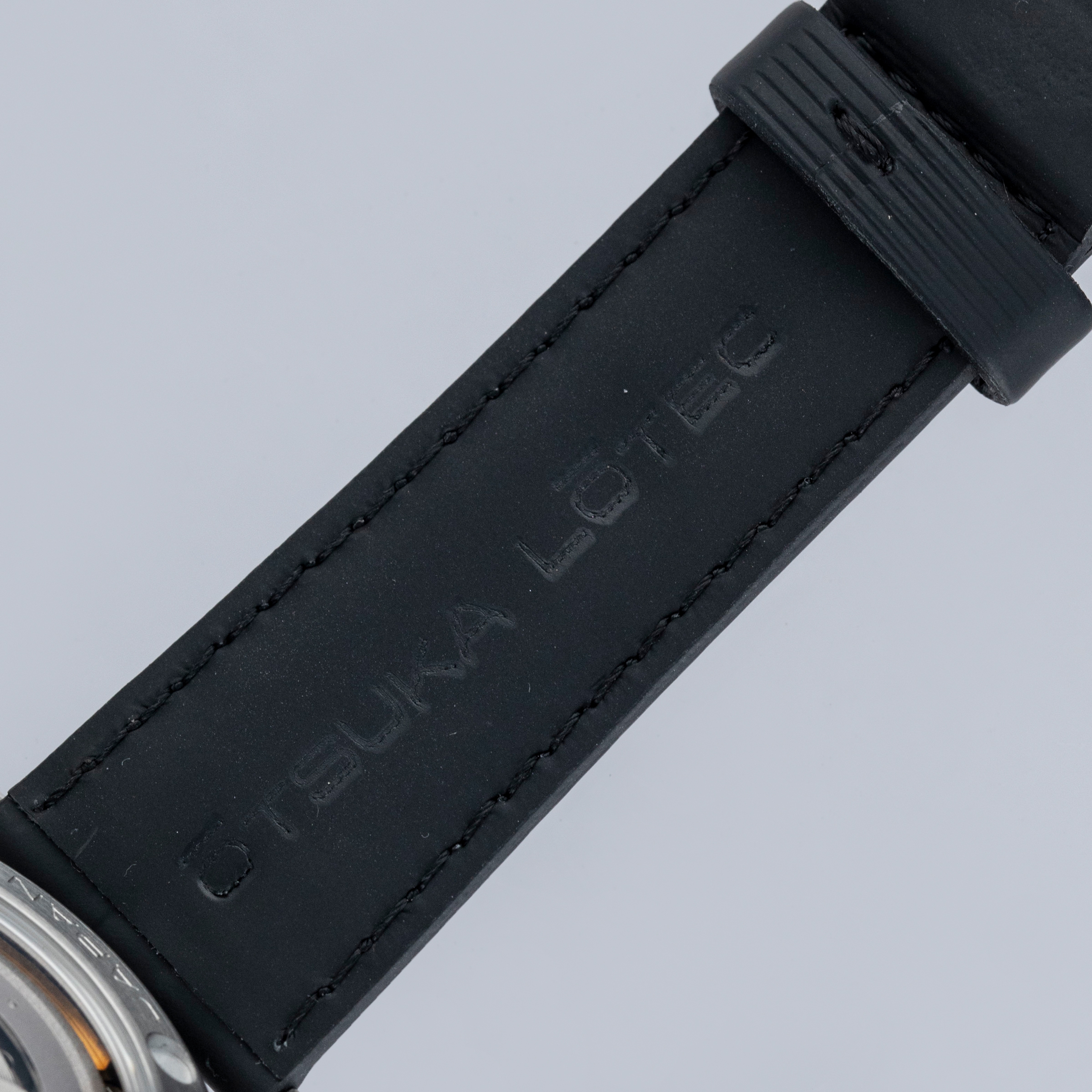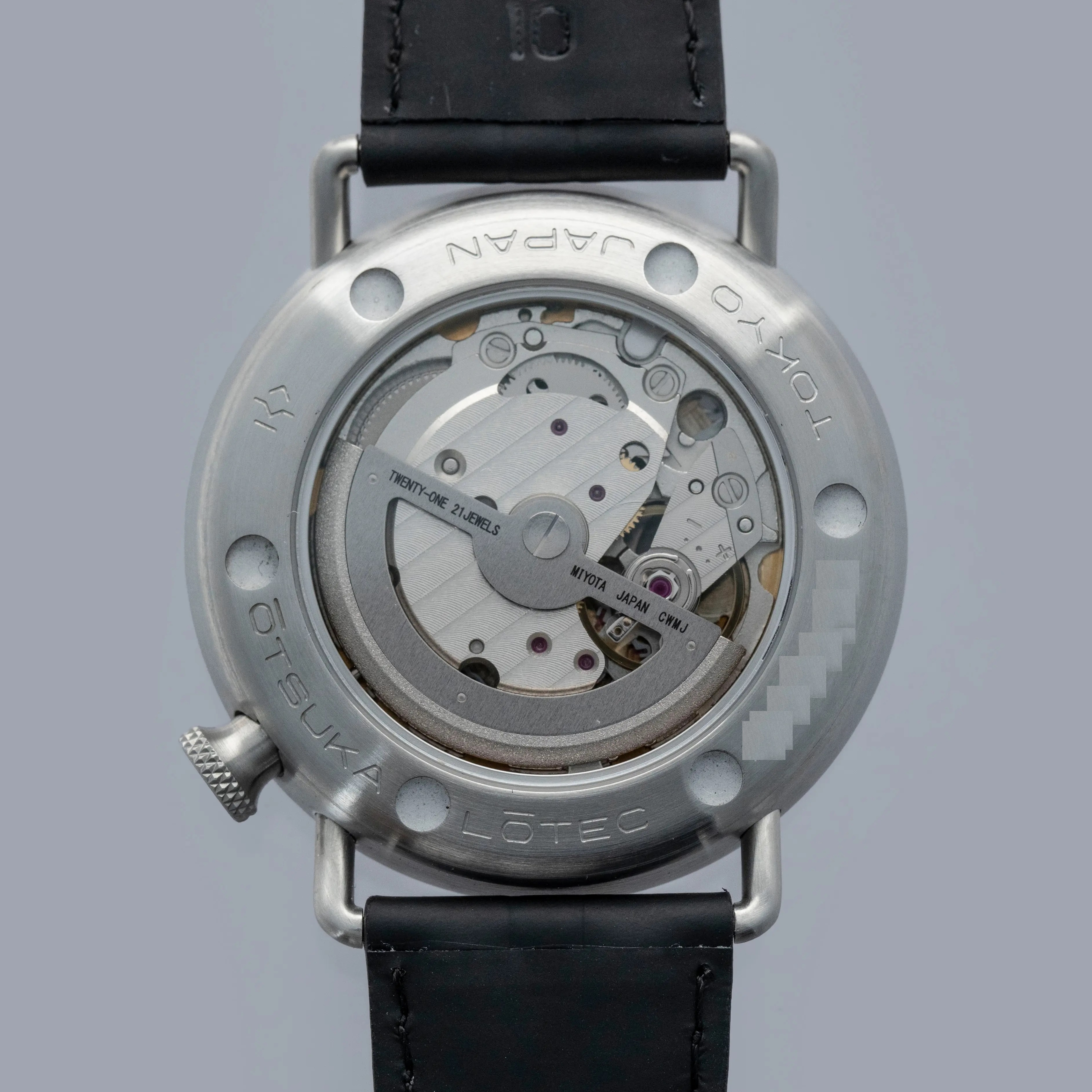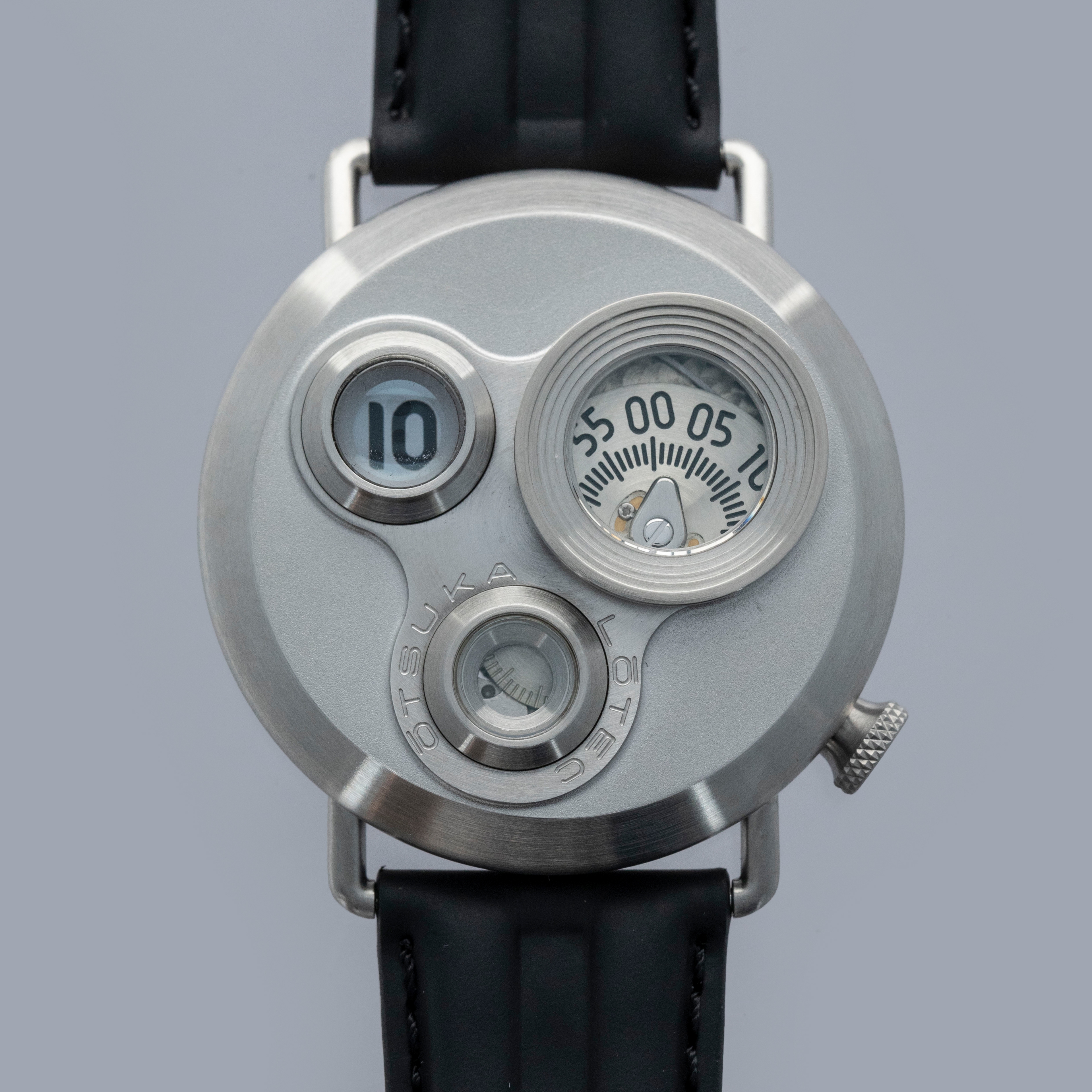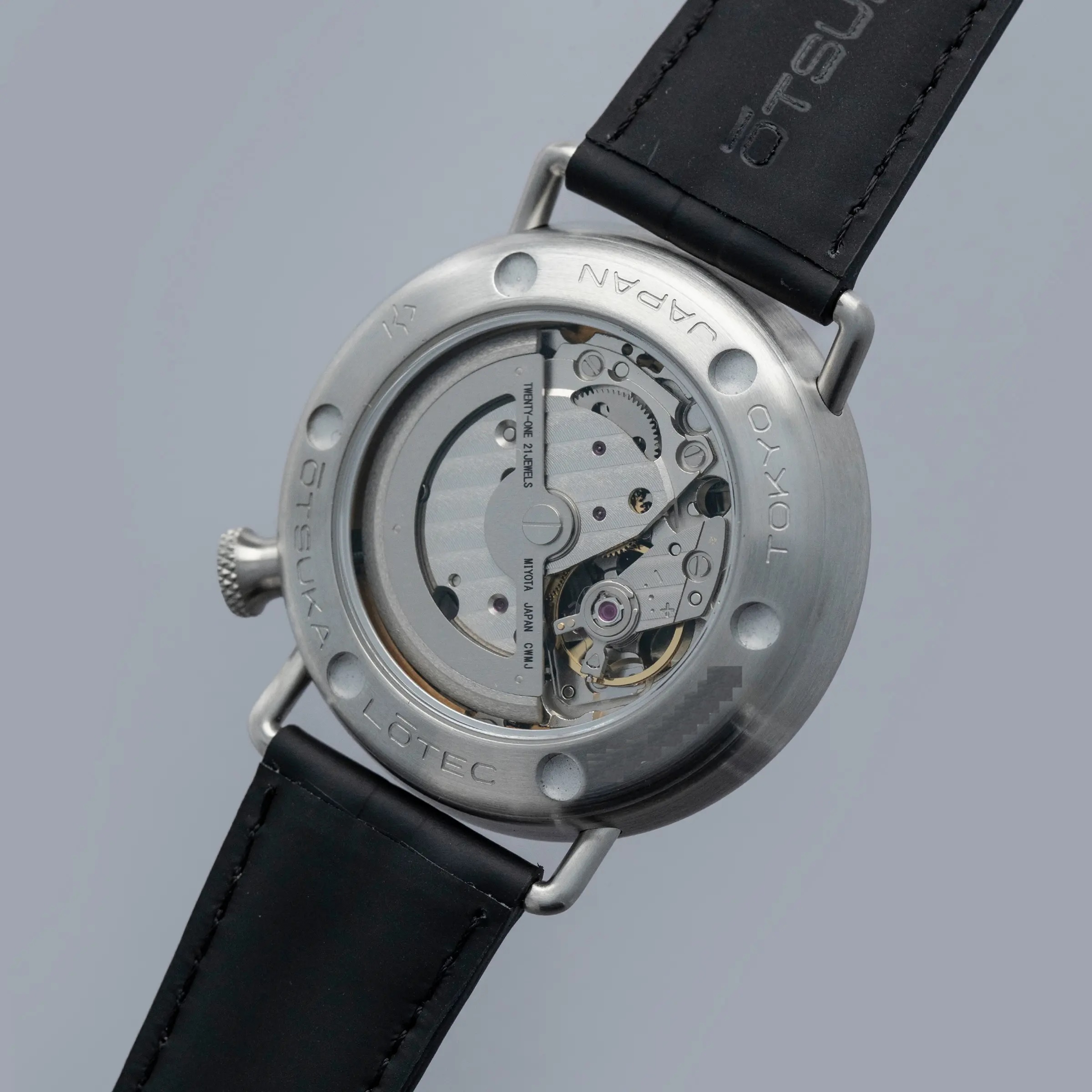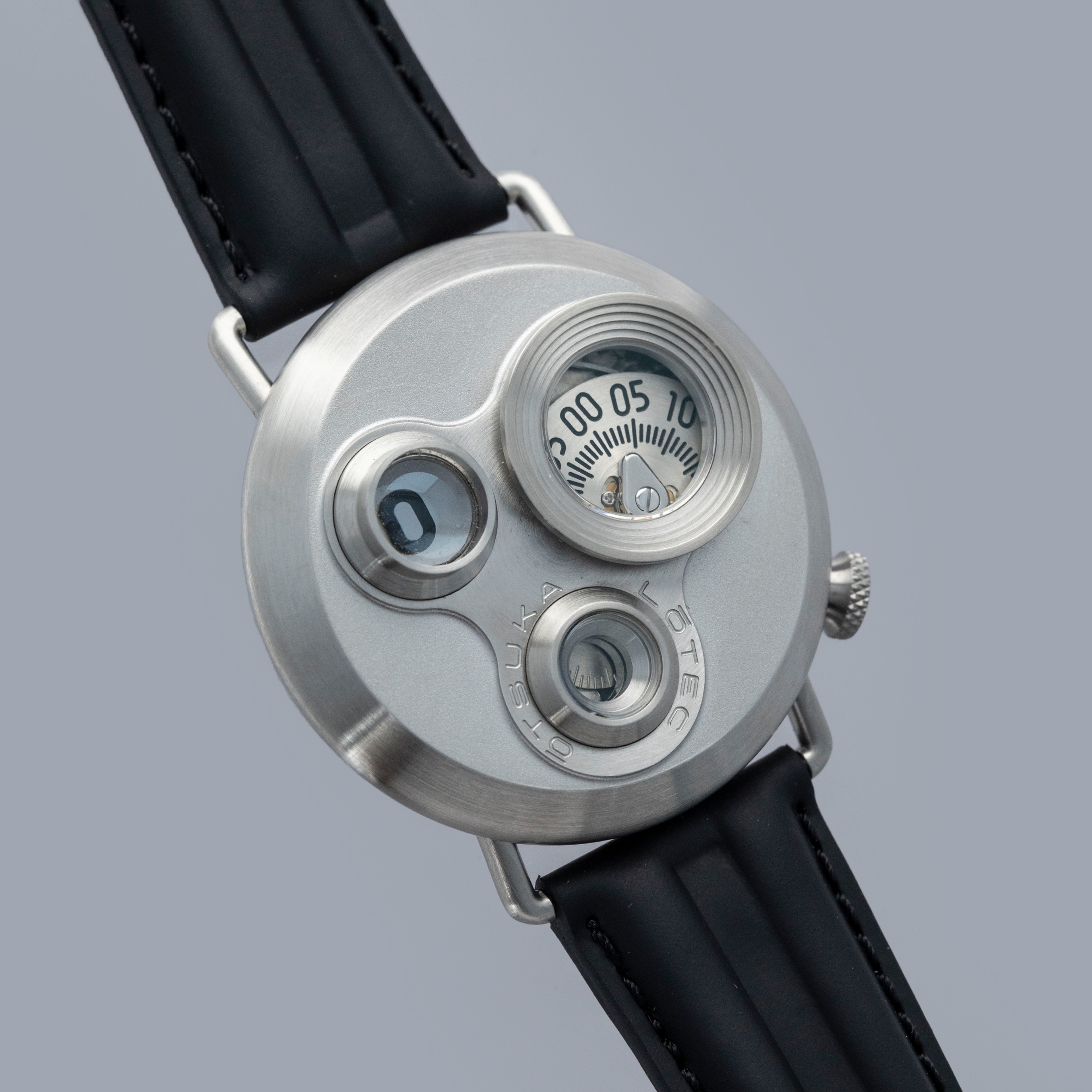 Decidedly unique and industrial, the No. 7.5's 40mm case features all brushed surfaces atop its case and bezel that reveal Otsuka Lotec's function over form design thesis.
