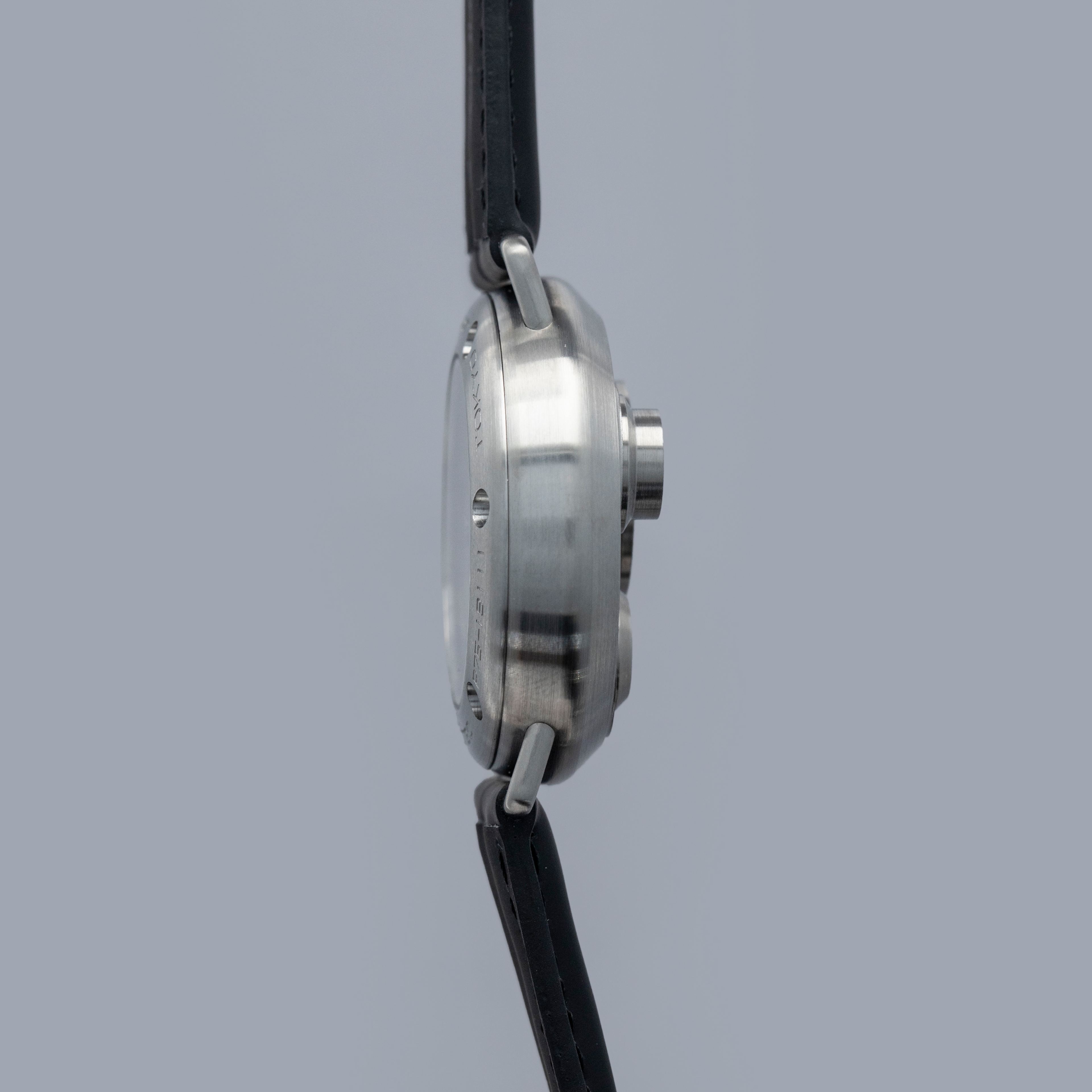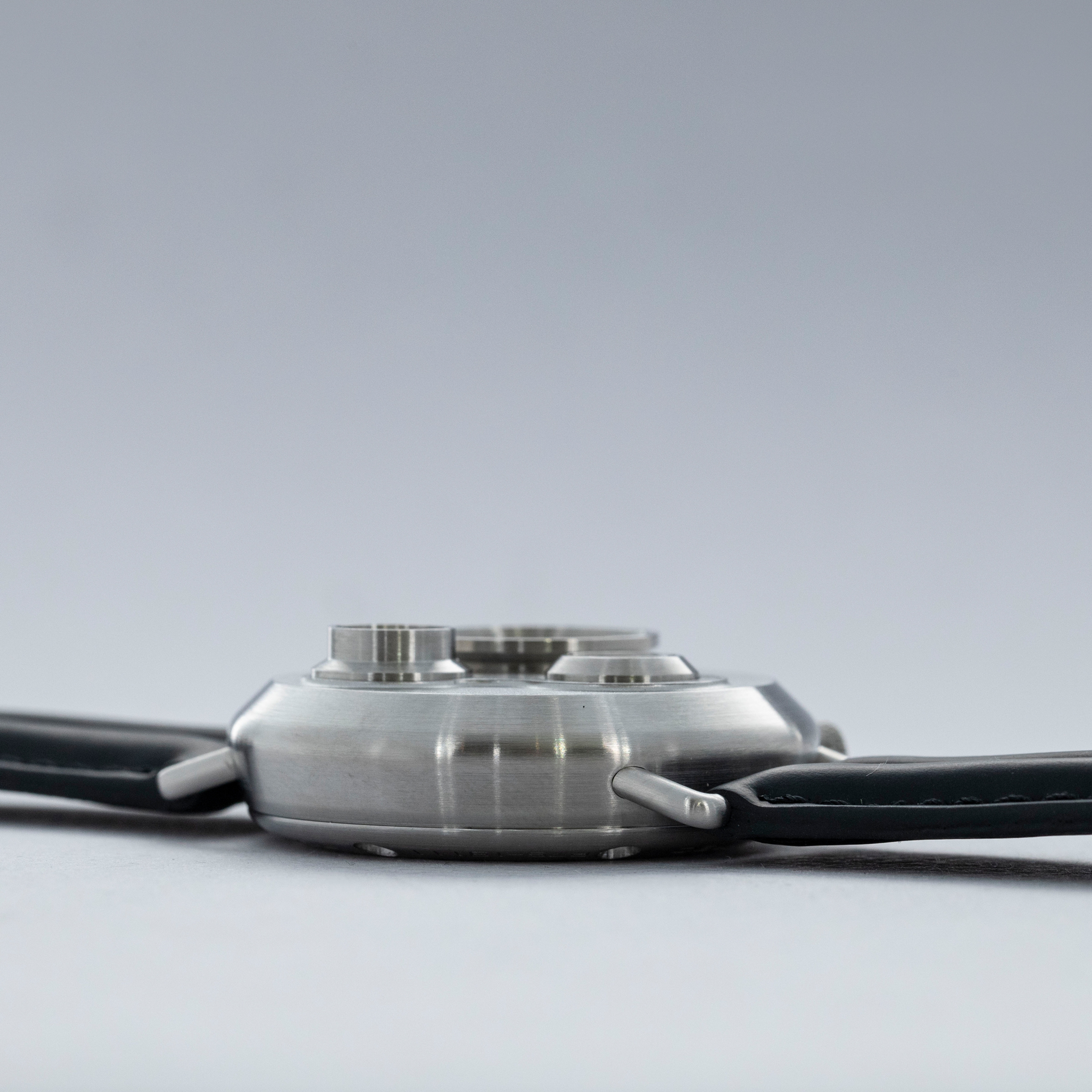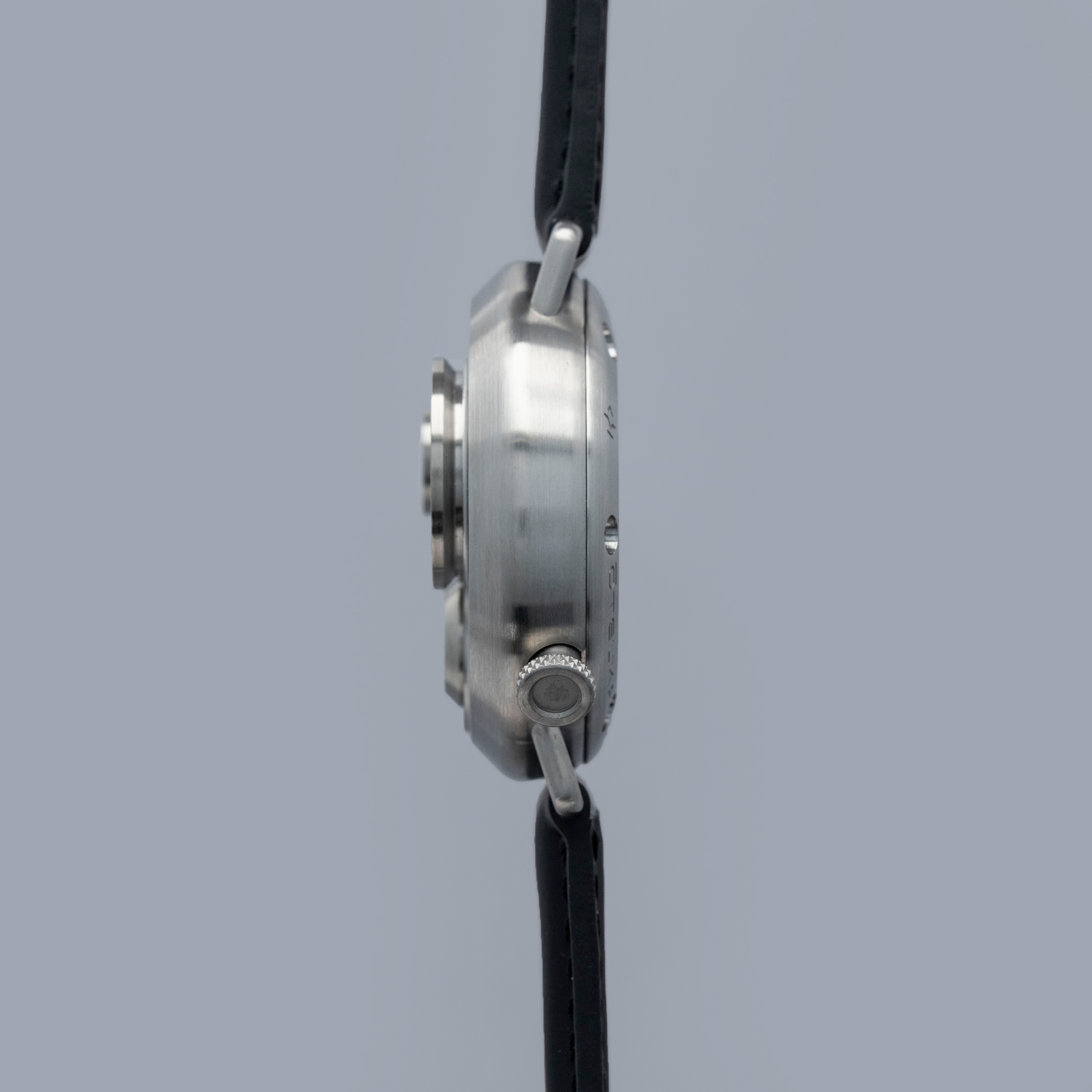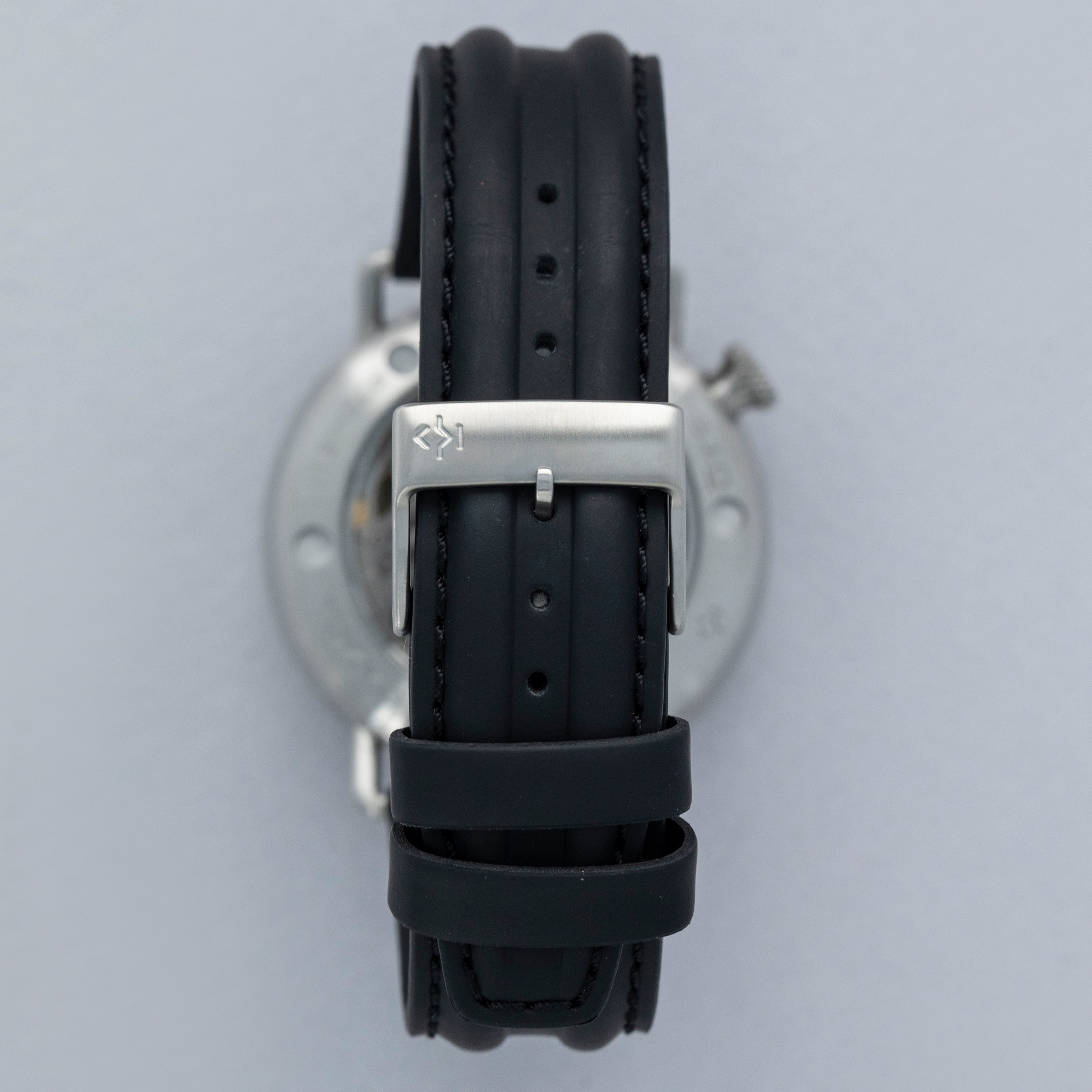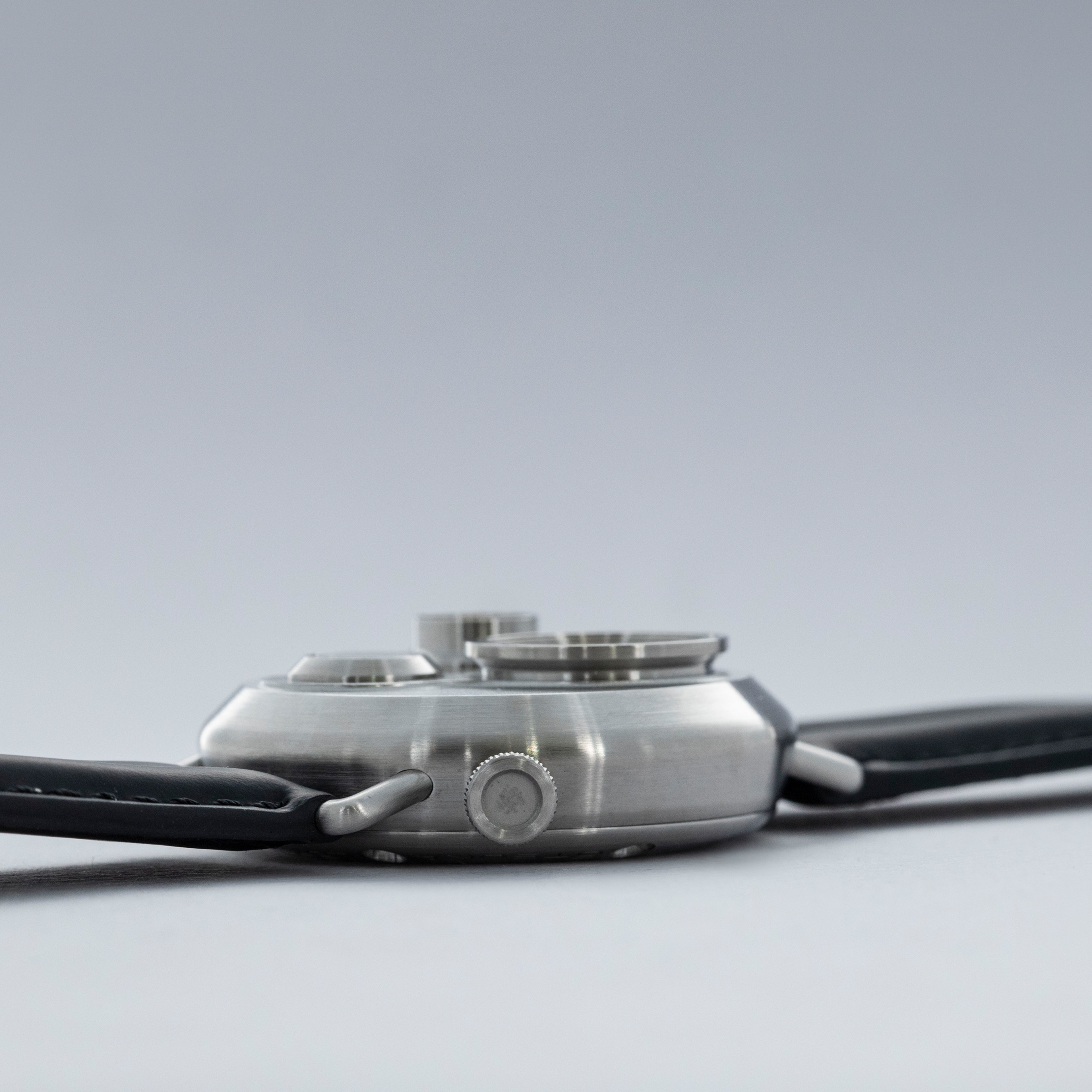 Decidedly unique and industrial, the No. 7.5's 40mm case features all brushed surfaces atop its case and bezel that reveal Otsuka Lotec's function over form design thesis.