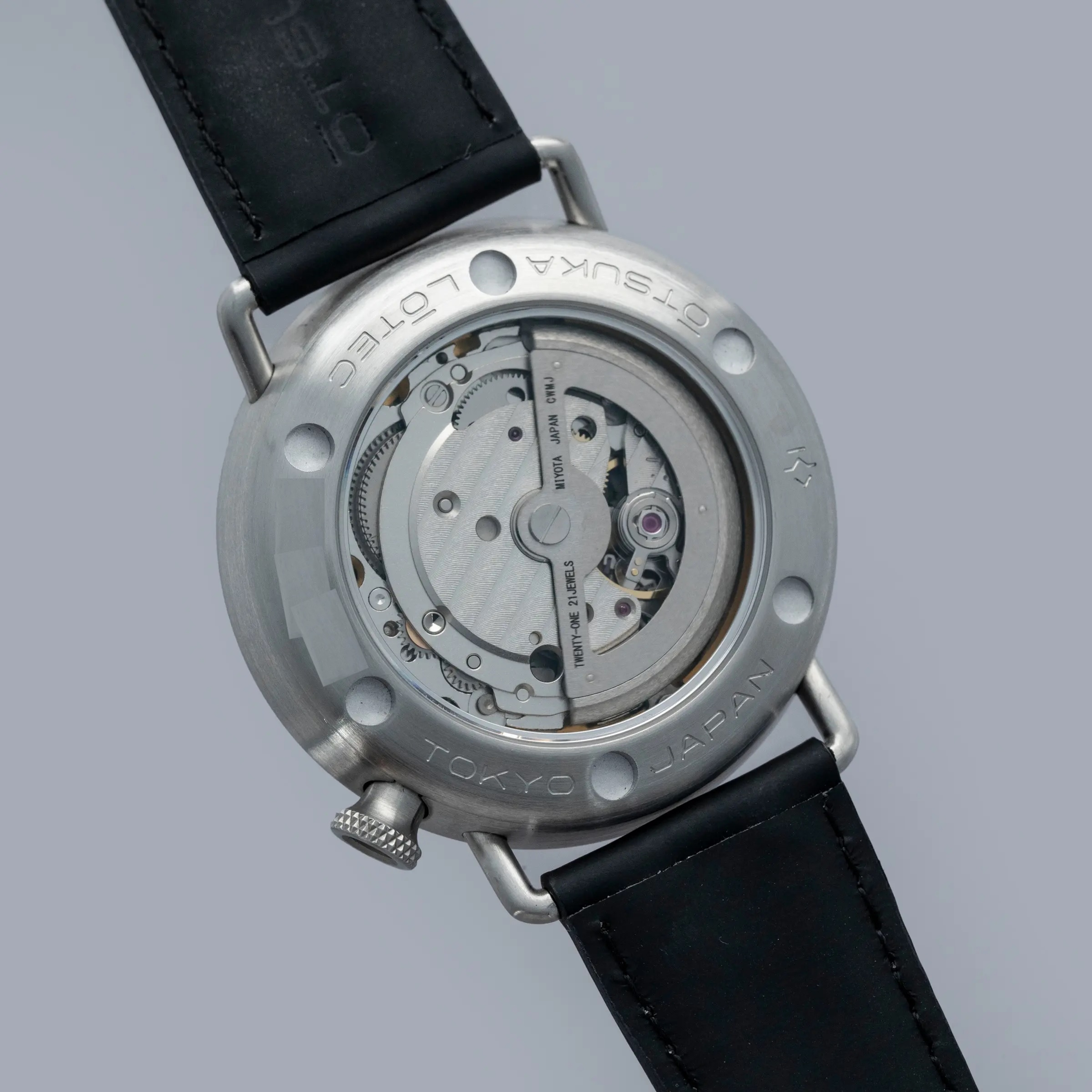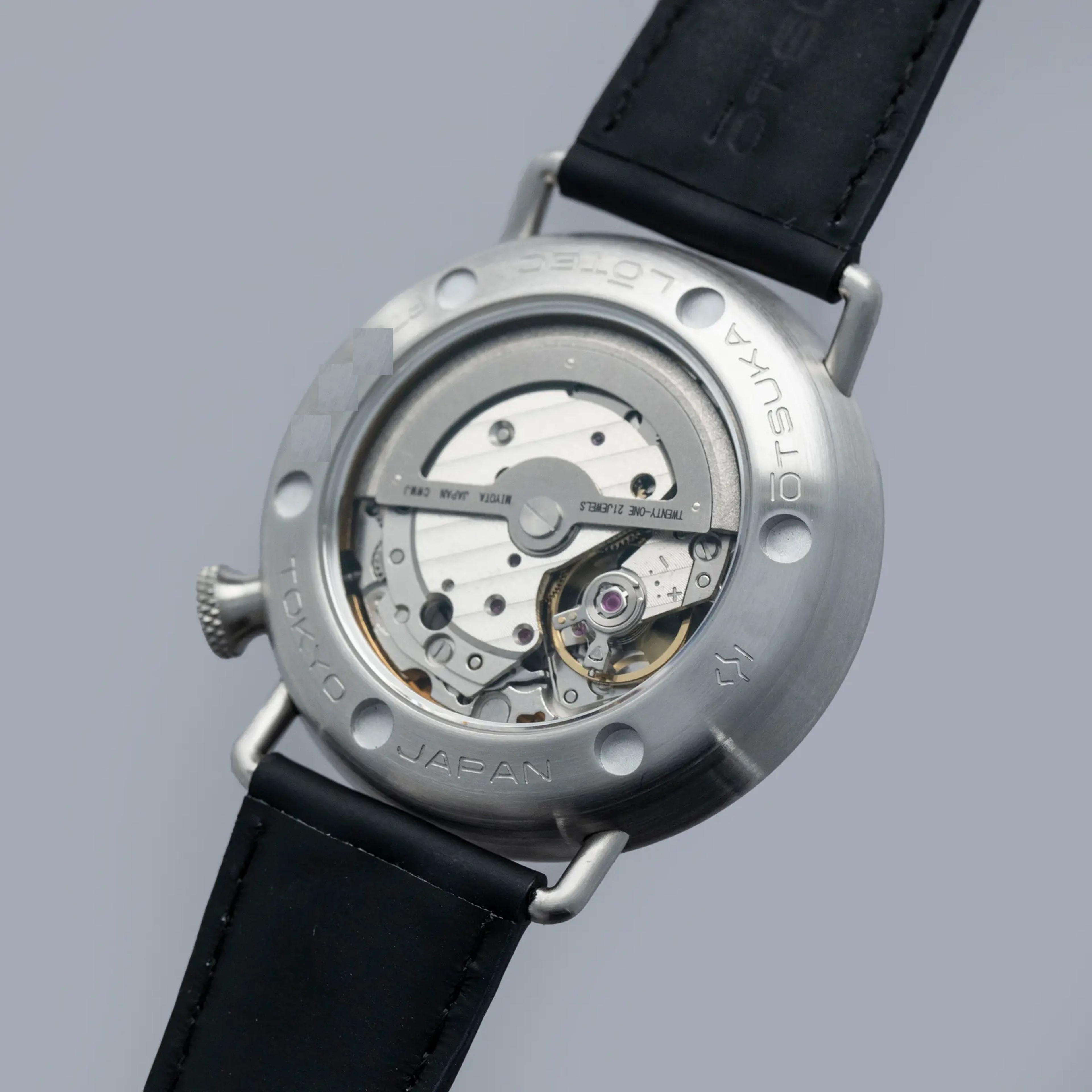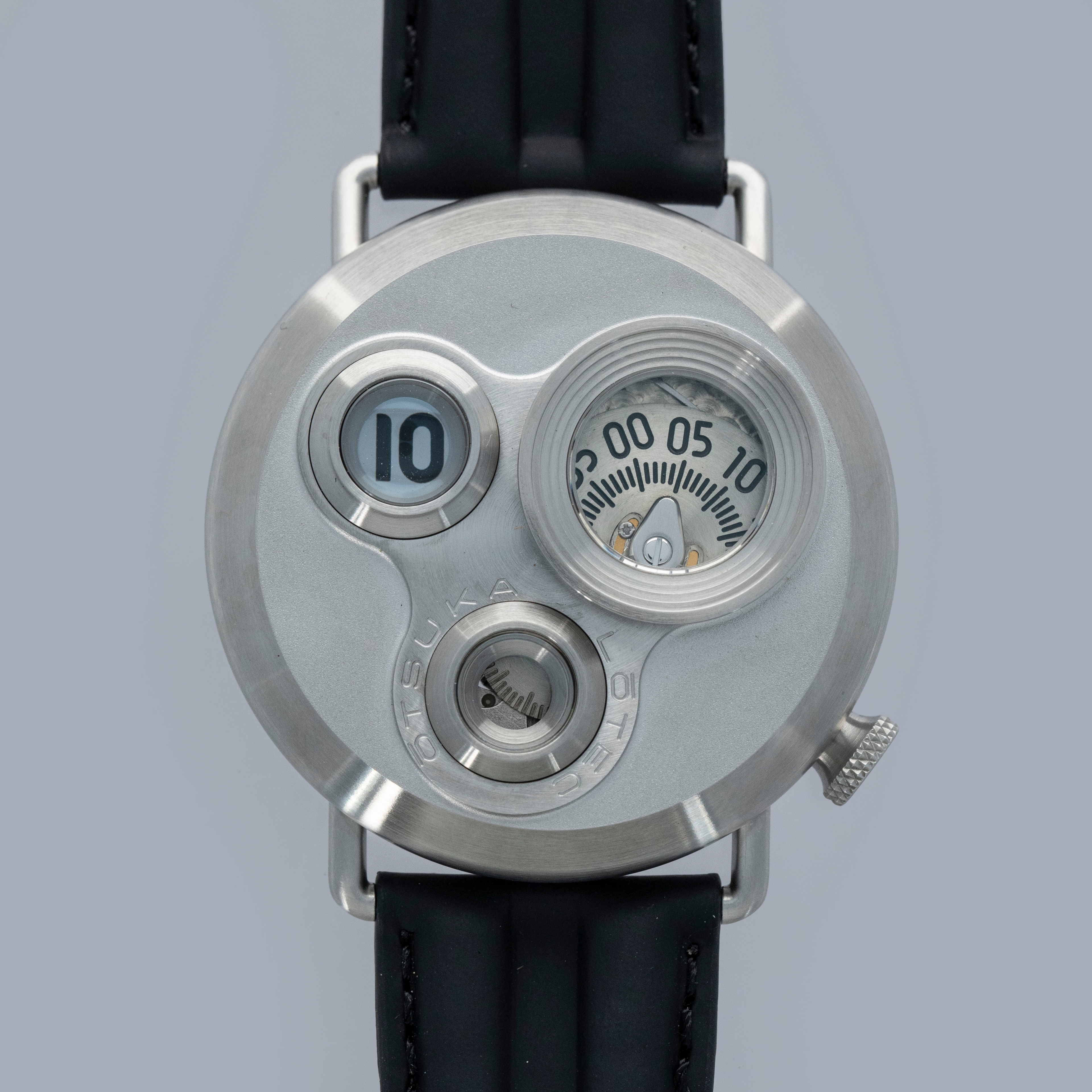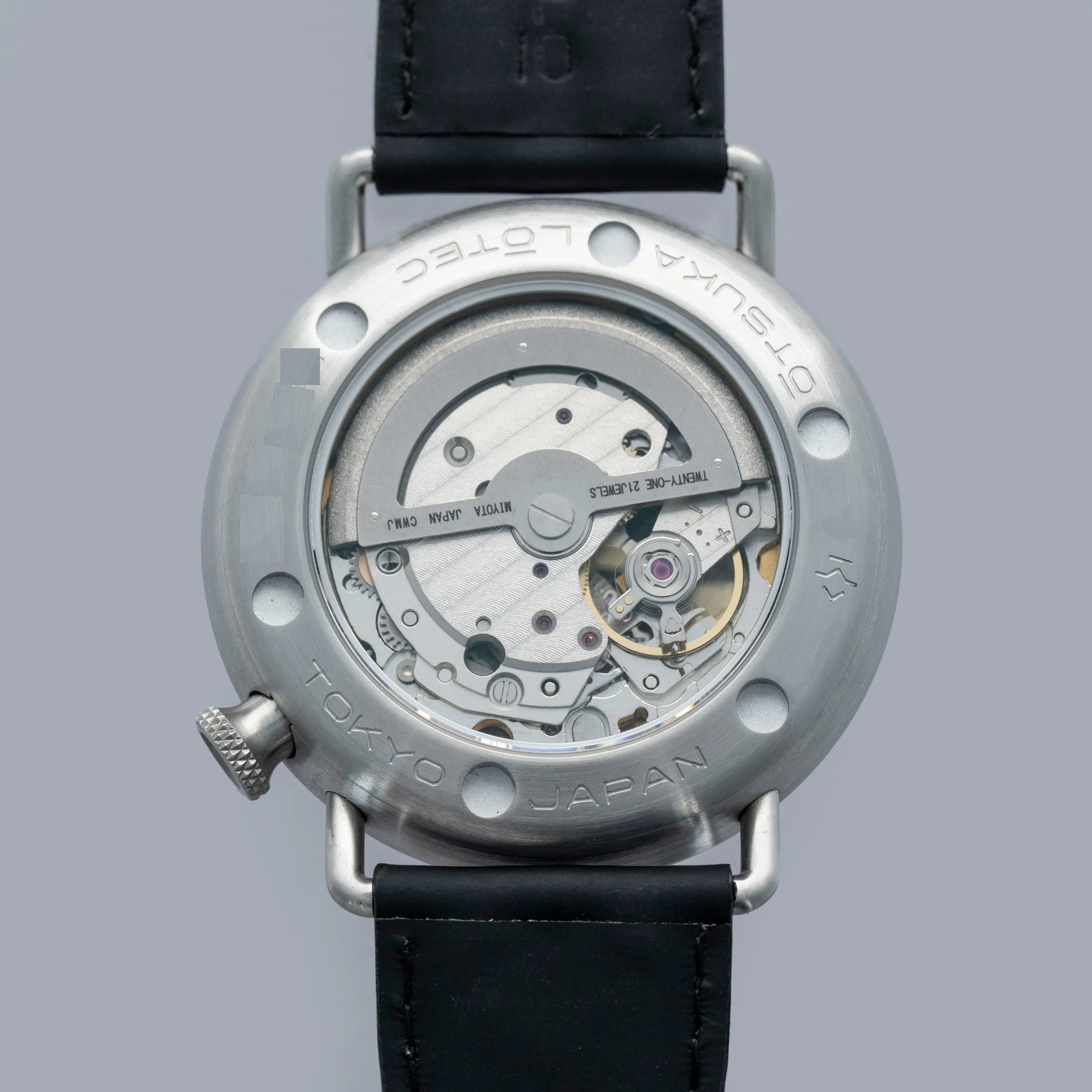 Decidedly unique and industrial, the No. 7.5's 40mm case features all brushed surfaces atop its case and bezel that reveal Otsuka Lotec's function over form design thesis.