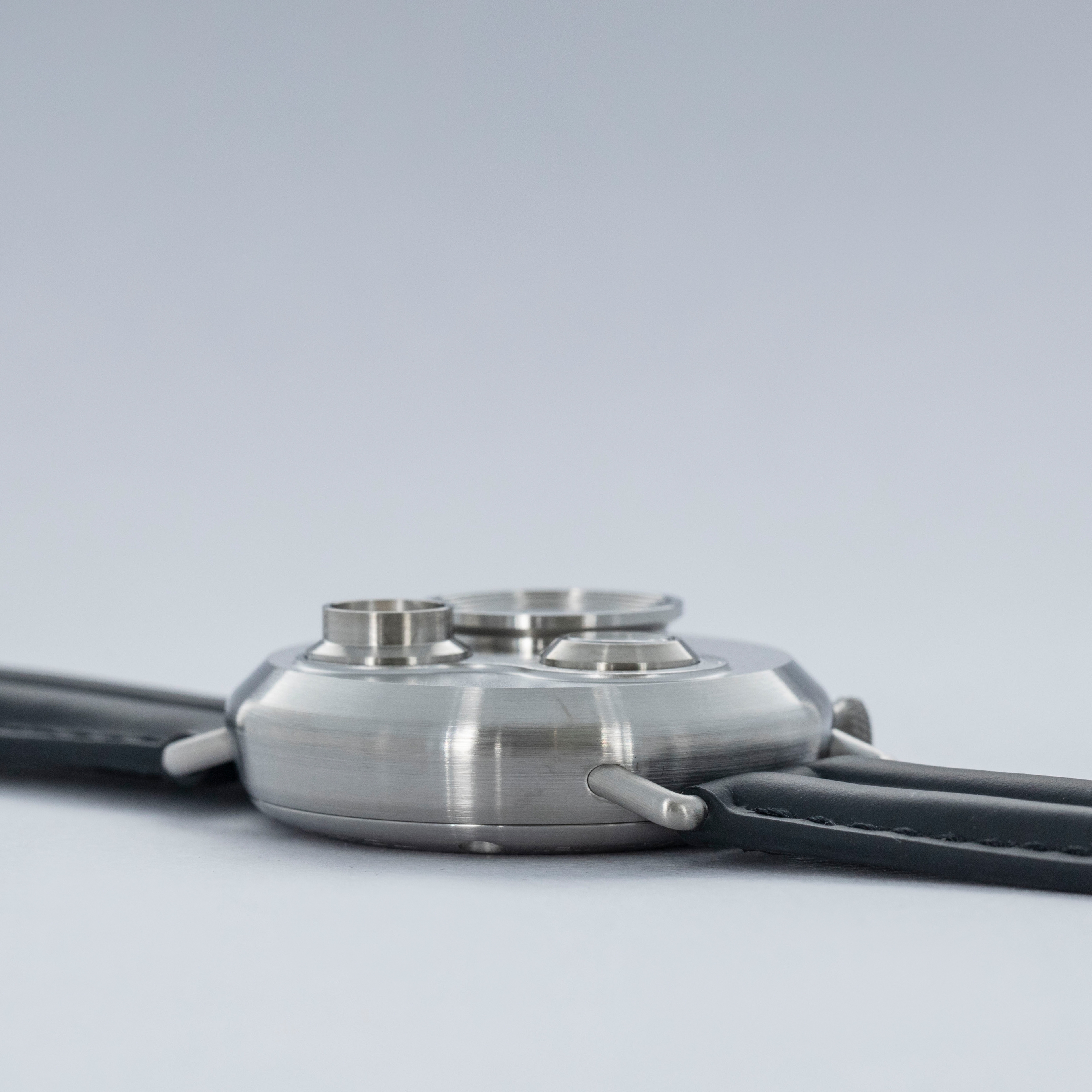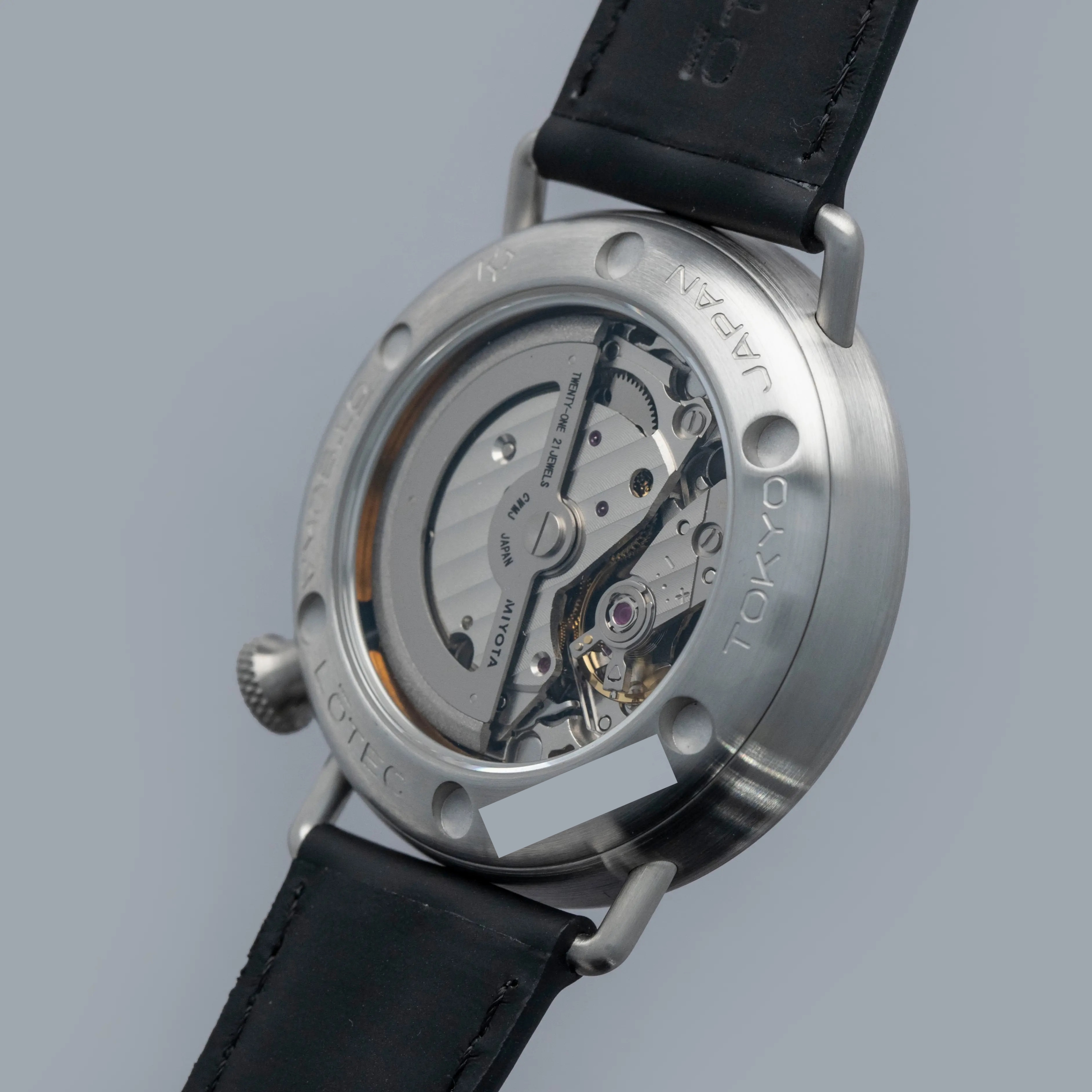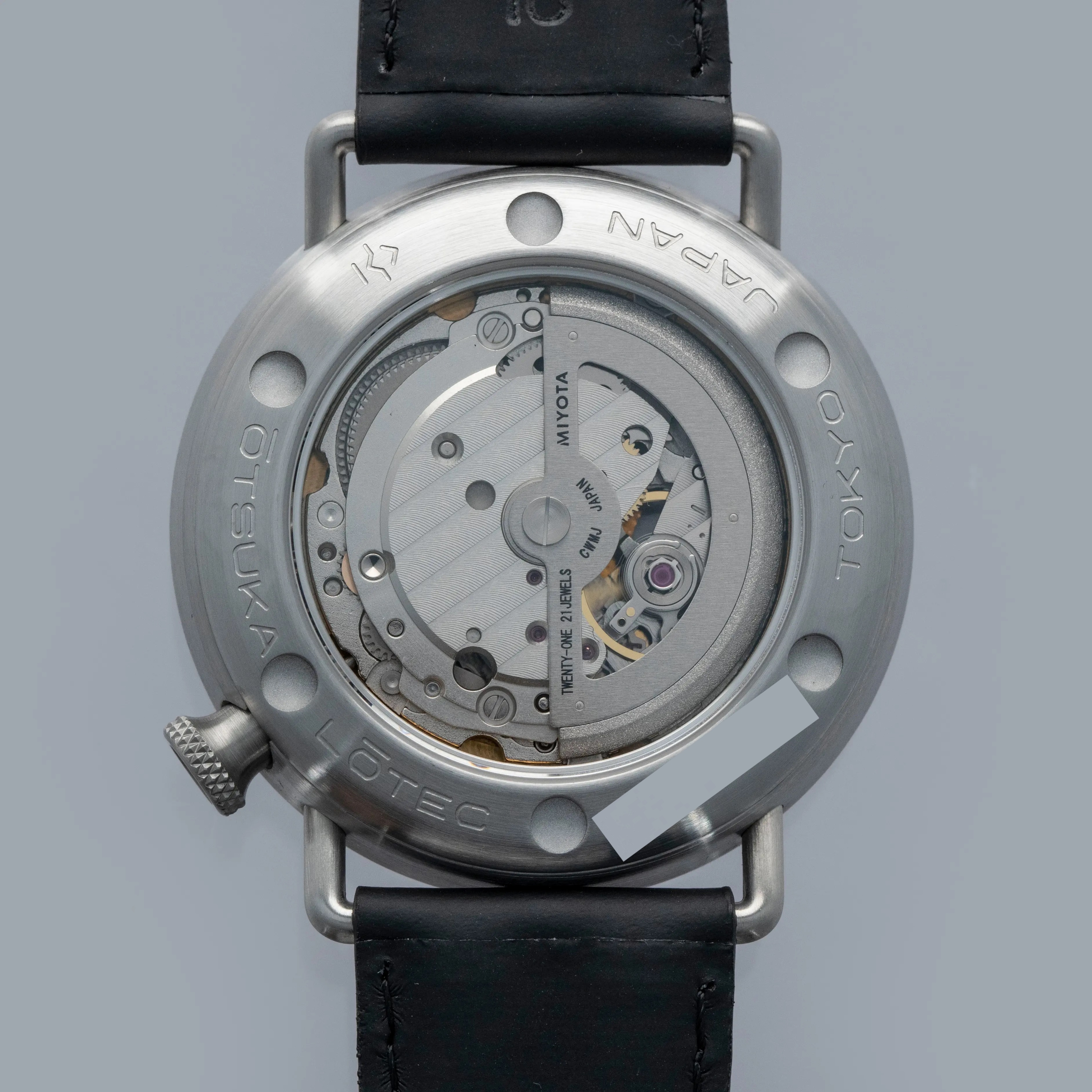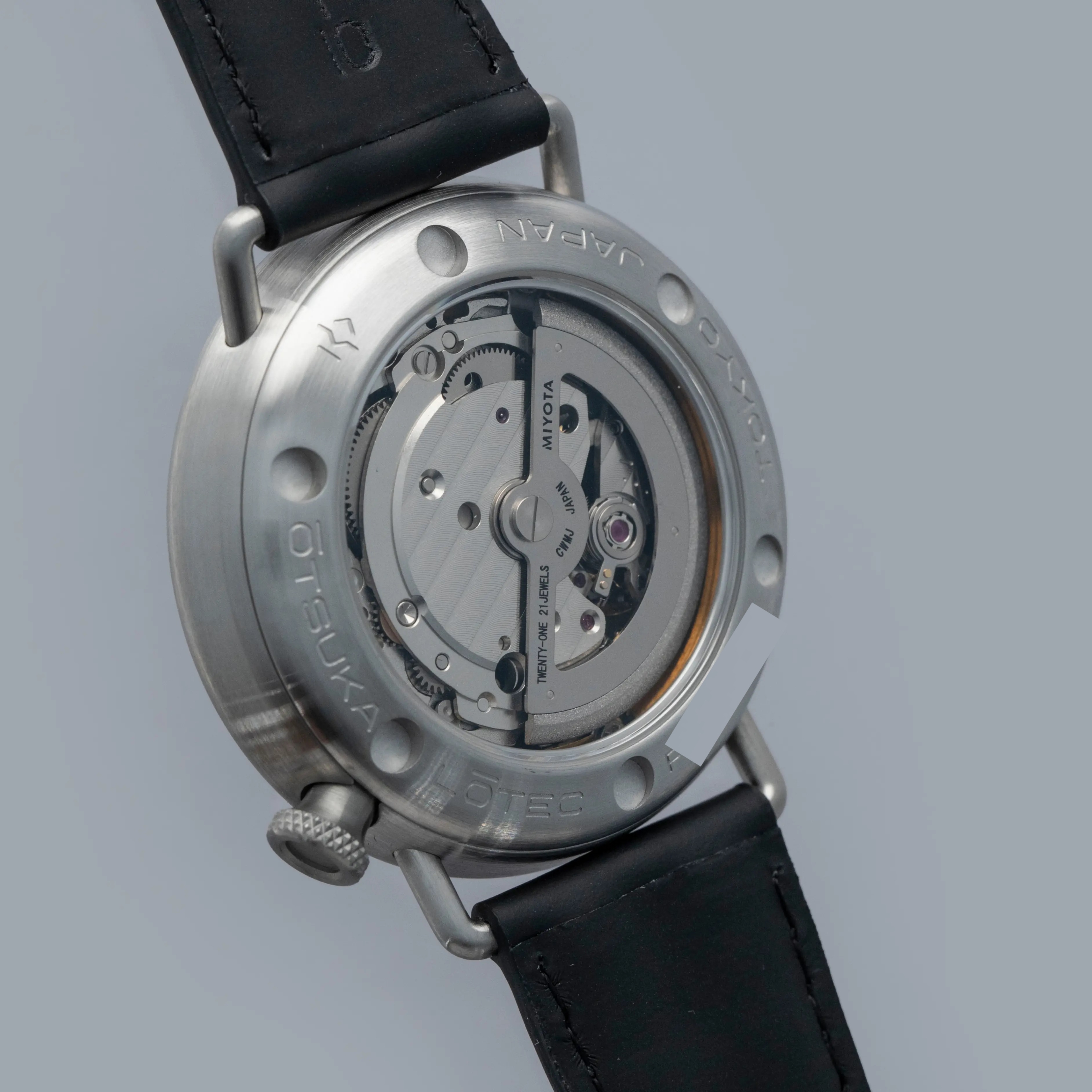 Decidedly unique and industrial, the No. 7.5's 40mm case features all brushed surfaces atop its case and bezel that reveal Otsuka Lotec's function over form design thesis.