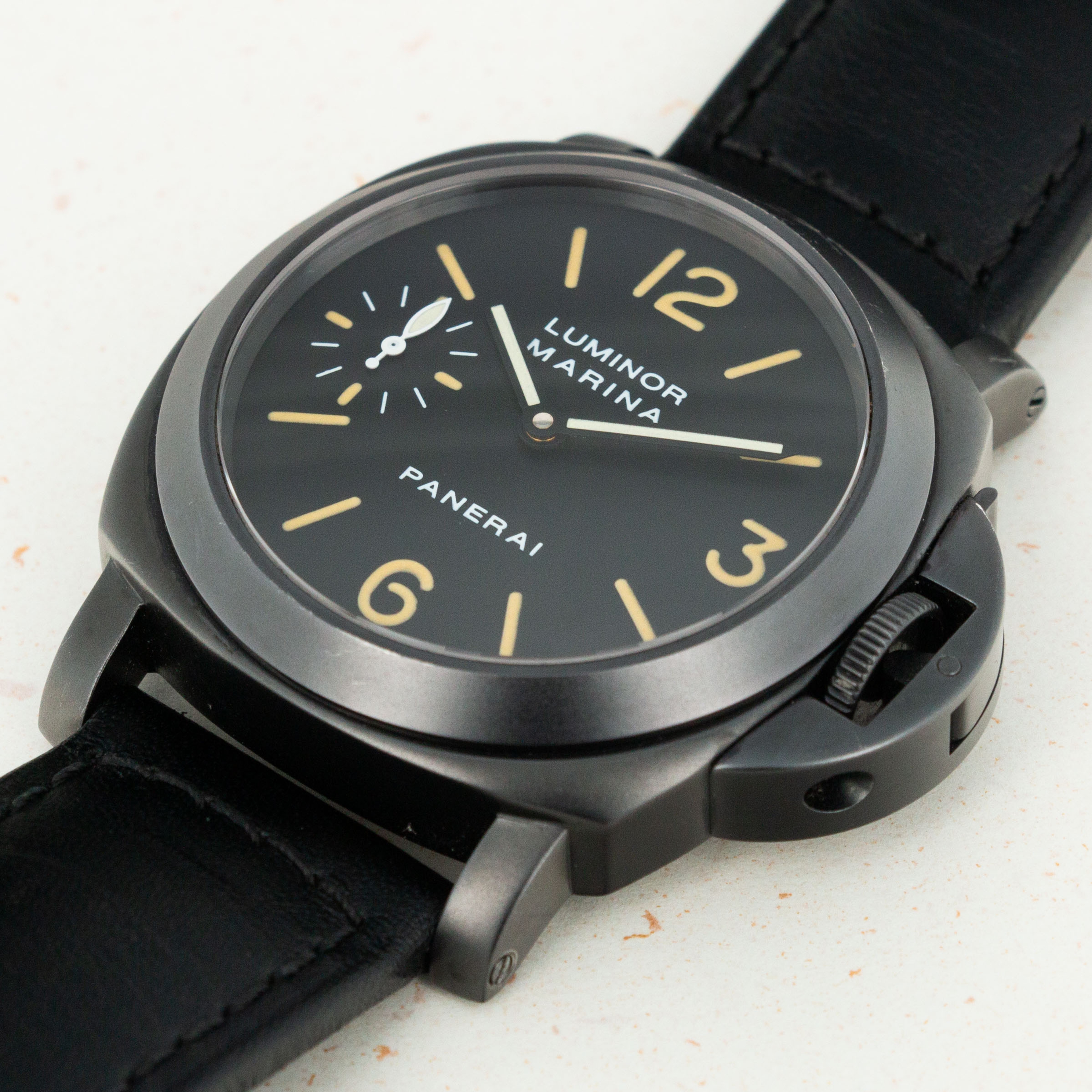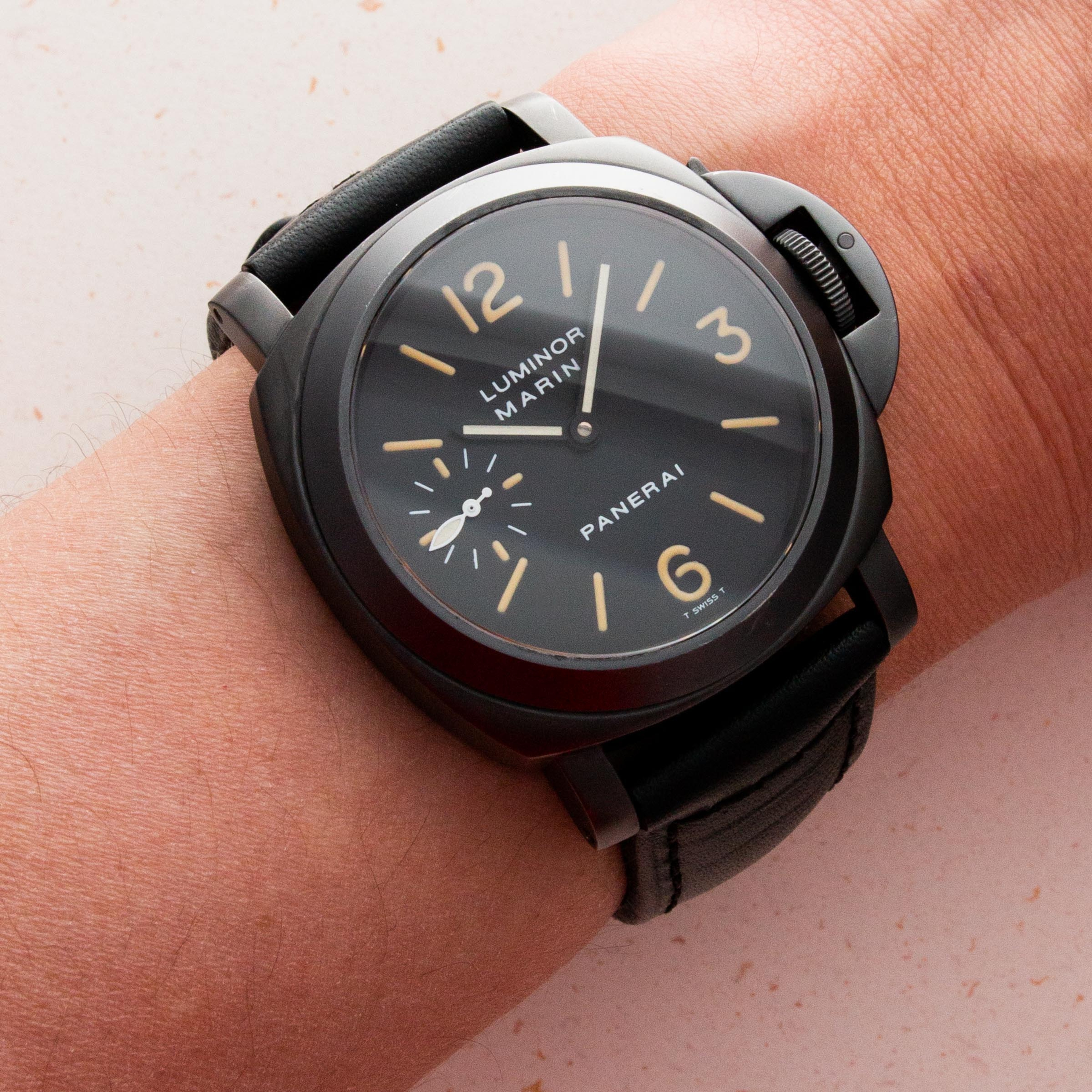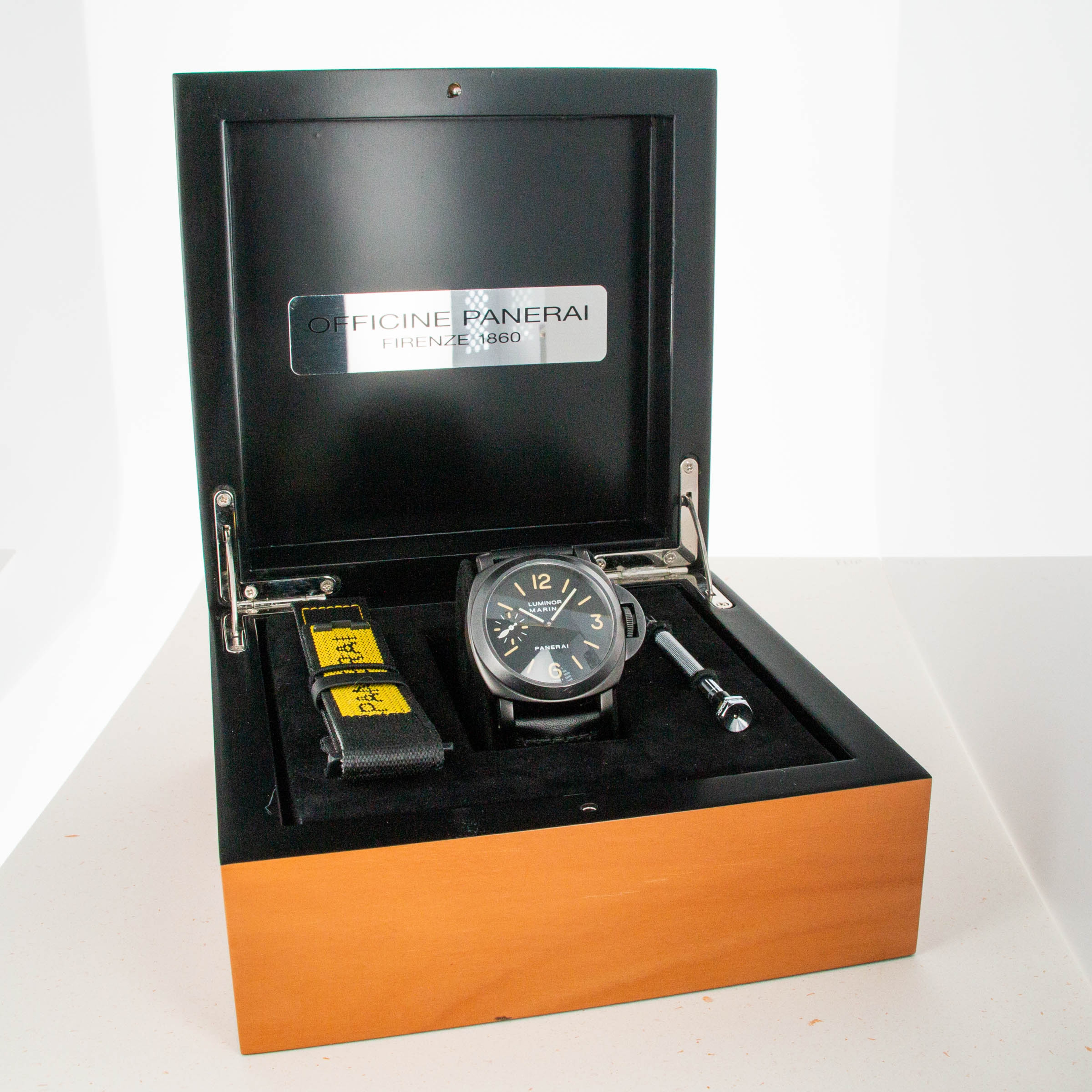 Collecting is all about the details, right? True Paneristis' will appreciate all the little details of this full set example. Original tritium dial and hands, the 2-screw buckle, early (not pictured) thin one-piece outer black box, and an unused coramid second strap- its all there. We all know the early Panerais' are the best ones, especially the PVD models. Highly coveted since new, this one in its seldom seen completeness, is a true anomaly.