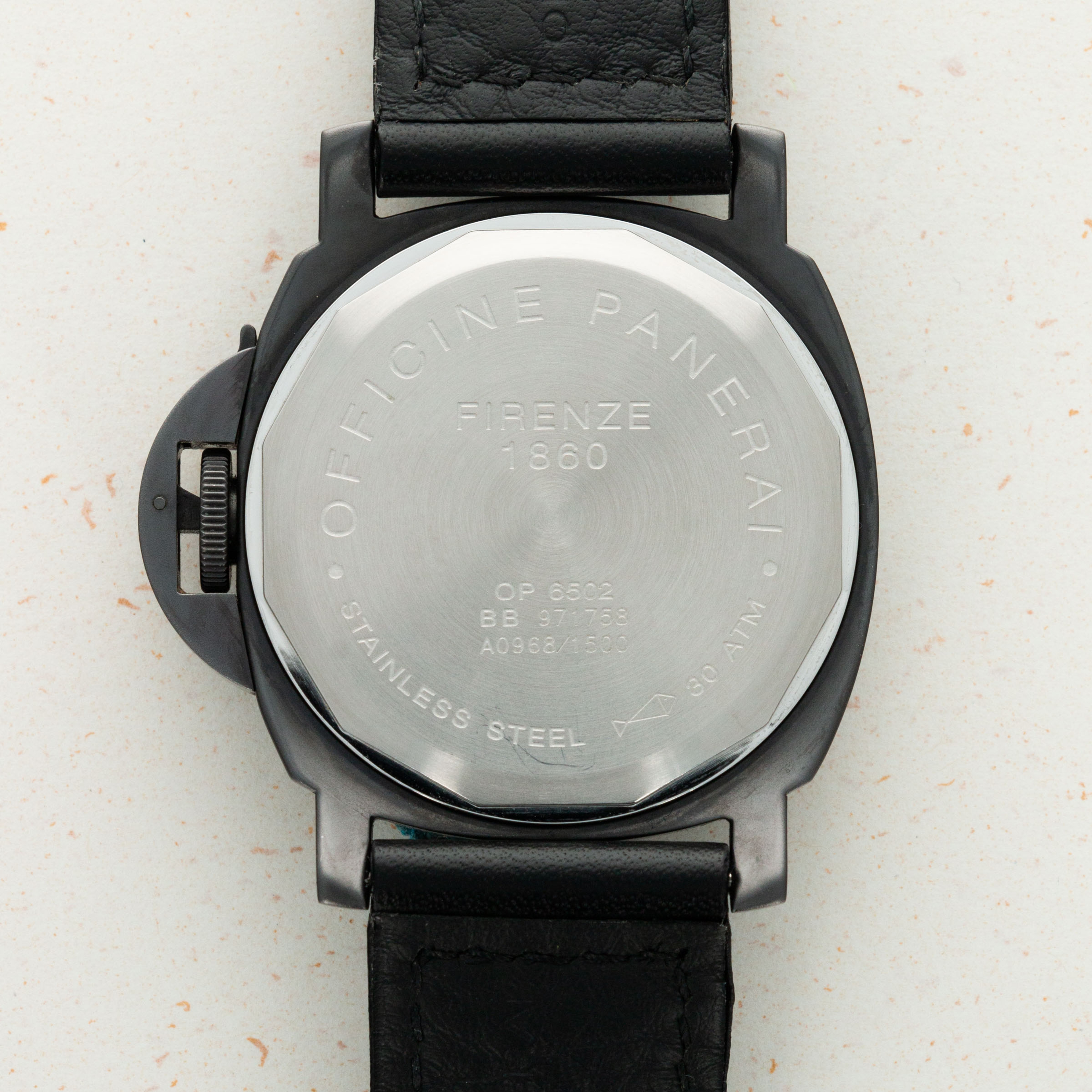 This particular A-Series PAM 004 bears the case number A0968/1500. 1500 pieces encompass all 6502 cases, indicating the total amount of production across 3 different models (PAM 1, 3 and 4). Collectors believe that the earlier A series modes fitted with tritium dials are the most collectible Panerais' of the Richemont era.