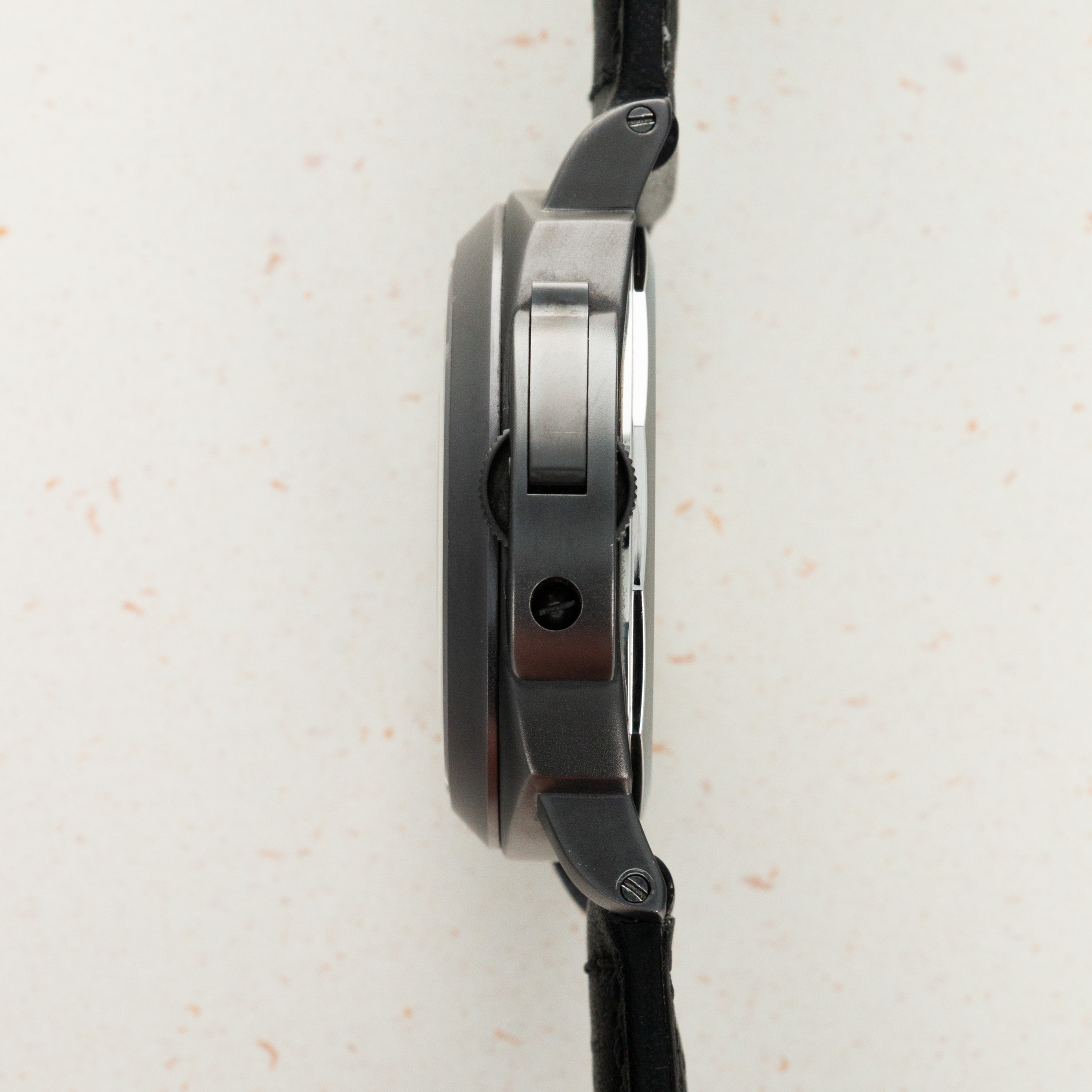 Released as one of the earliest Vendome-era Panerai models, the PAM004 is an iconic piece of Panerai history, with Paneristi clamoring over it thanks to its standout black PVD-coated case. Within the model's timeline, there lies several series that indicate different years of production, such as the original A-Series from 1998, which we have here. Desirable for its legacy as the original, it is also sought-after due to its stunning tritium dial. Tritium, a radioactive substance that Luminova soon replaced during the production of the B-Series variants, is famed for its signature yellow patina. This aesthetic is impossible to replicate and exists as a hallmark of the A-series PAM004 and a handful of early B-series models, that were produced before Luminova made its way into the B-Series.