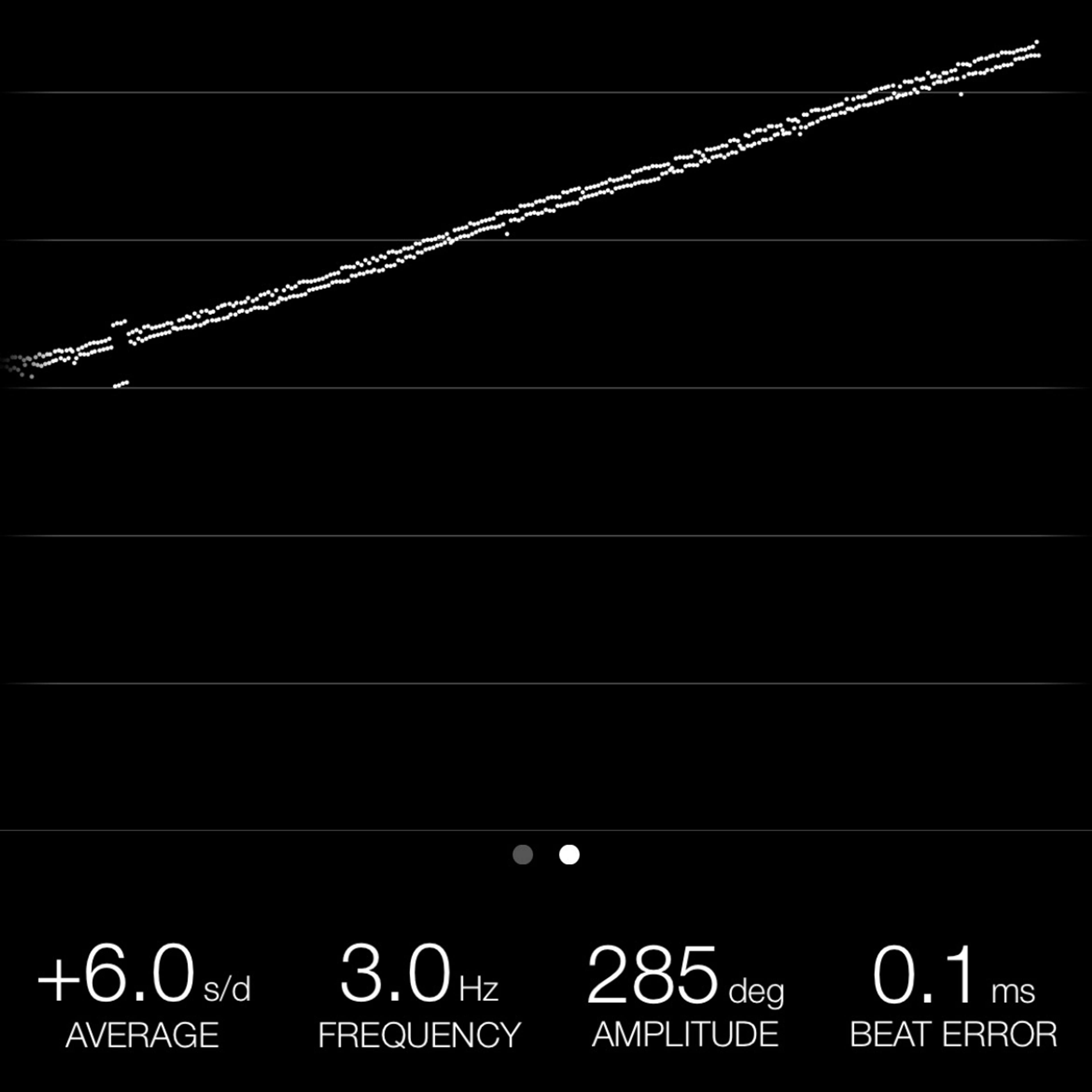This reading was taken (crown down) with a ONEOF Accuracy Boutique Edition timing machine at time of cataloging. It is provided as a courtesy only, and shall not be construed as a warranty or guarantee of any kind. Please refer to our terms and conditions of sale for more information.