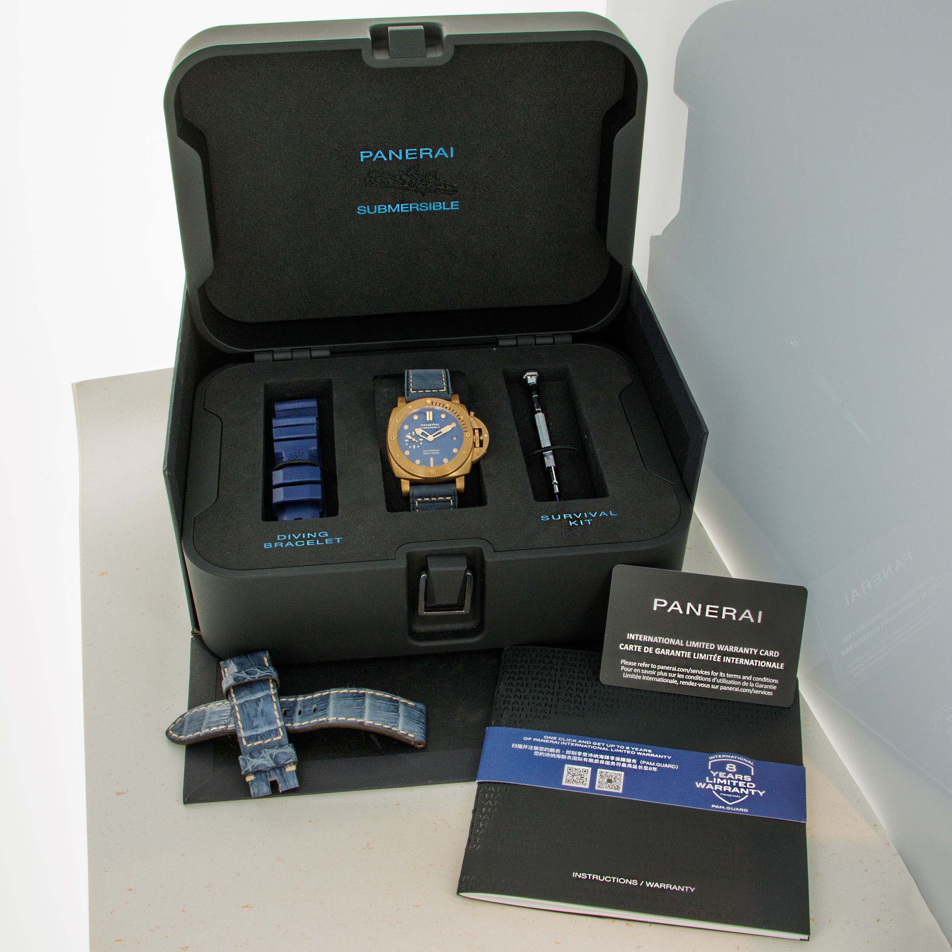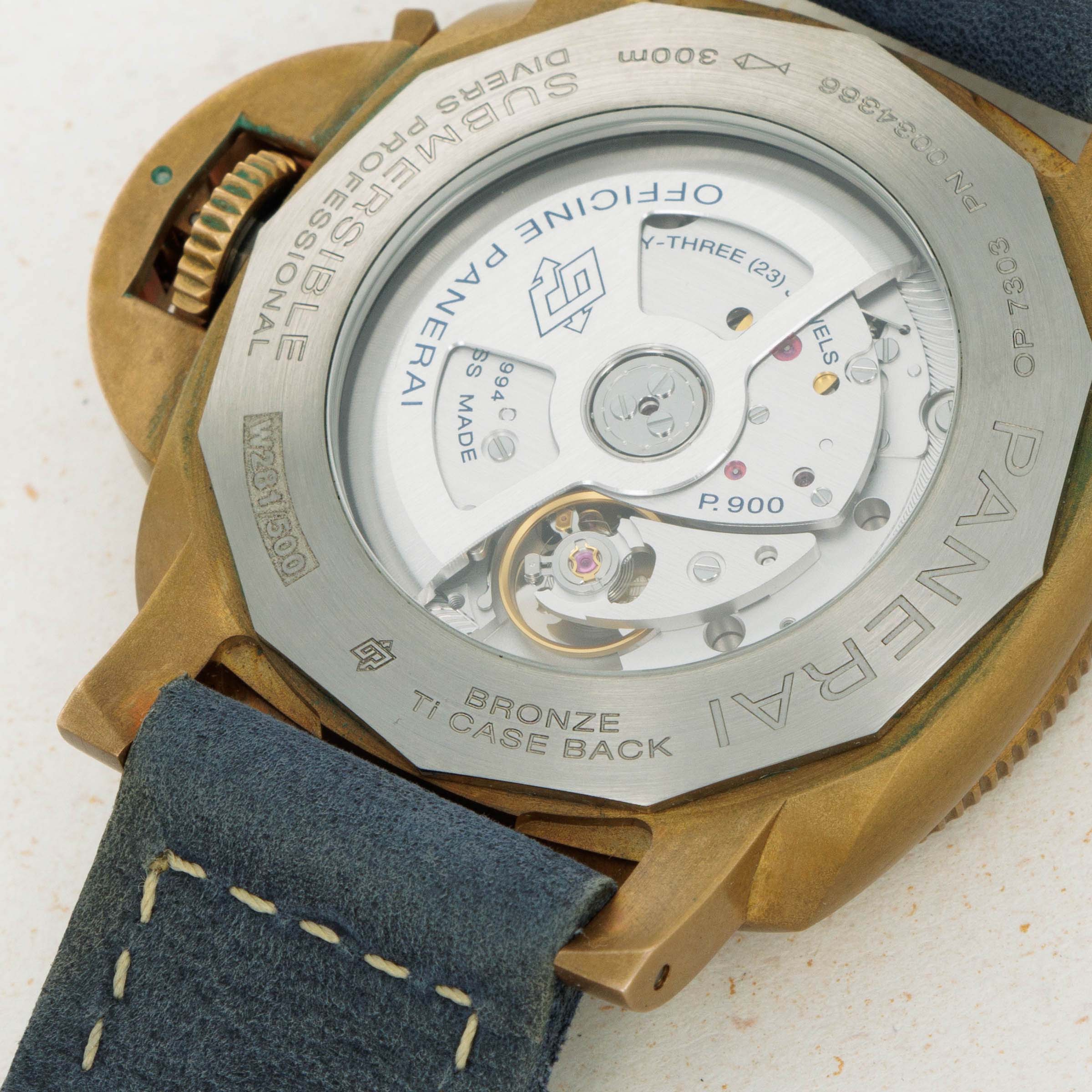 Launched in 2021, the Panerai Submersible Bronzo Blu Abisso PAM1074 followed in the footsteps of Panerai’s industry-leading expansion into the world of bronze timepieces that began in 2011. Famed for their historic dive watches, Panerai’s expansion into bronze made sense given the metal’s use in some earlier Panerai prototype dive watches. Recognized as the brand that kickstarted the watch market’s current love of bronze, Panerai are known for their particularly high quality corrosion-resistant bronze alloy made from a blend of copper and tin. Measuring a rather svelte 42mm in diameter (at least by Panerai’s standards) the PAM1074 will fit comfortably on the wrist of most Paneristi. A conscious decision by Panerai, the Submersible Bronzo Blu Abisso is offered as a smaller watch to expand Panerai’s offerings to collectors that want to wear their iconic designs in a more palatable package than the hulking cases they have become synonymous with. Featuring its eponymous bronze construction, the Submersible Bronzo Blu Abisso’s Panerai aesthetic is entirely unmistakable as its crown guard and hour markers make it clear who designed this stunning timepiece. Powered by Panerai’s terrific cal. P.900 automatic movement, which is on view behind a titanium sapphire crystal caseback (to prevent allergic reactions), the PAM1074 offers an impressive 3 days of power reserve, ensuring this timepiece is certainly capable of withstanding anything you may throw at it.