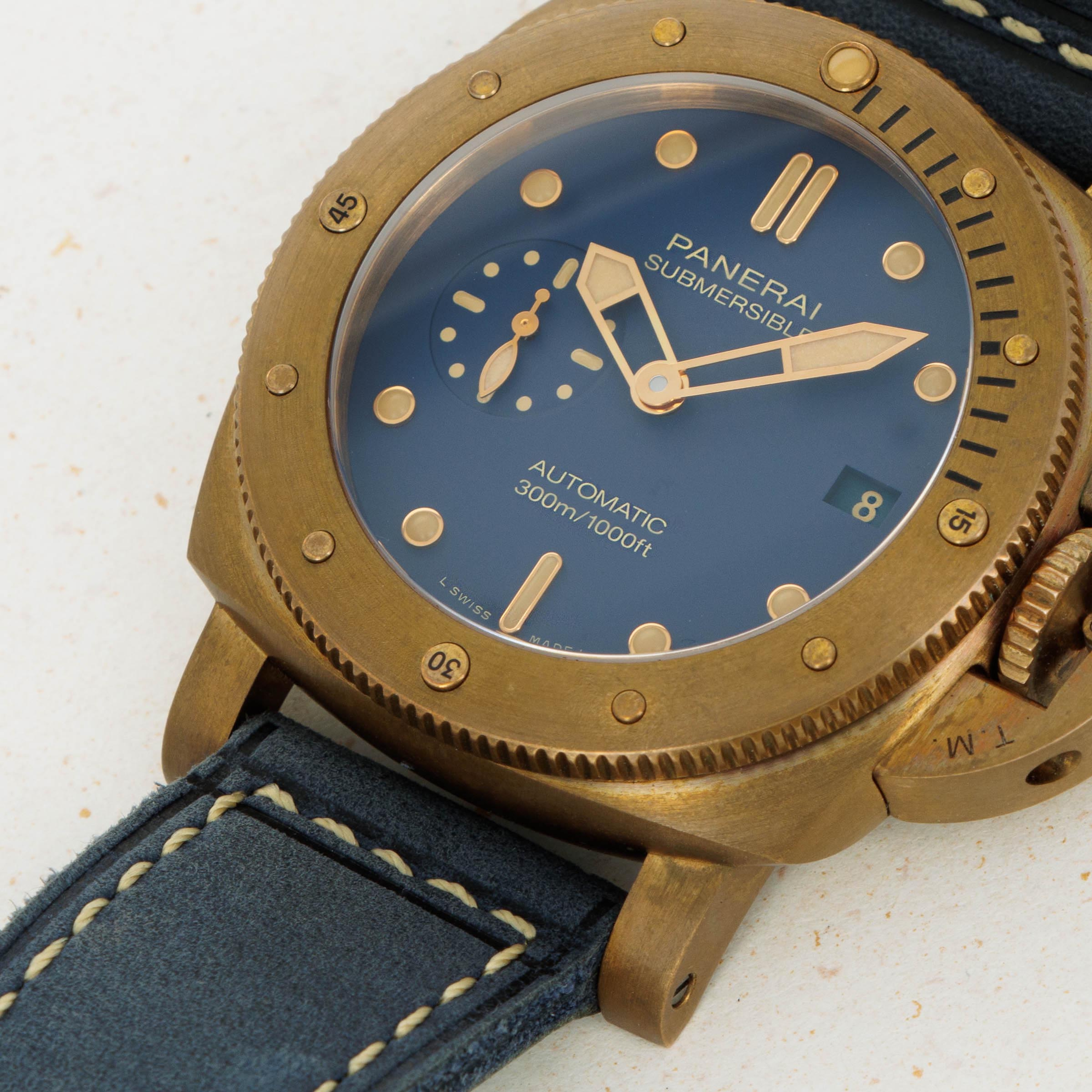 Offering Panerai's trend-setting usage of bronze in a 42mm package that many more collectors will be able to fully enjoy, the PAM1074 takes off where its 47mm sibling, the PAM671, left off - a beautiful reminder of Panerai's rich heritage as a dive watch manufacturer while also speaking to the brand's modern sensibilities.