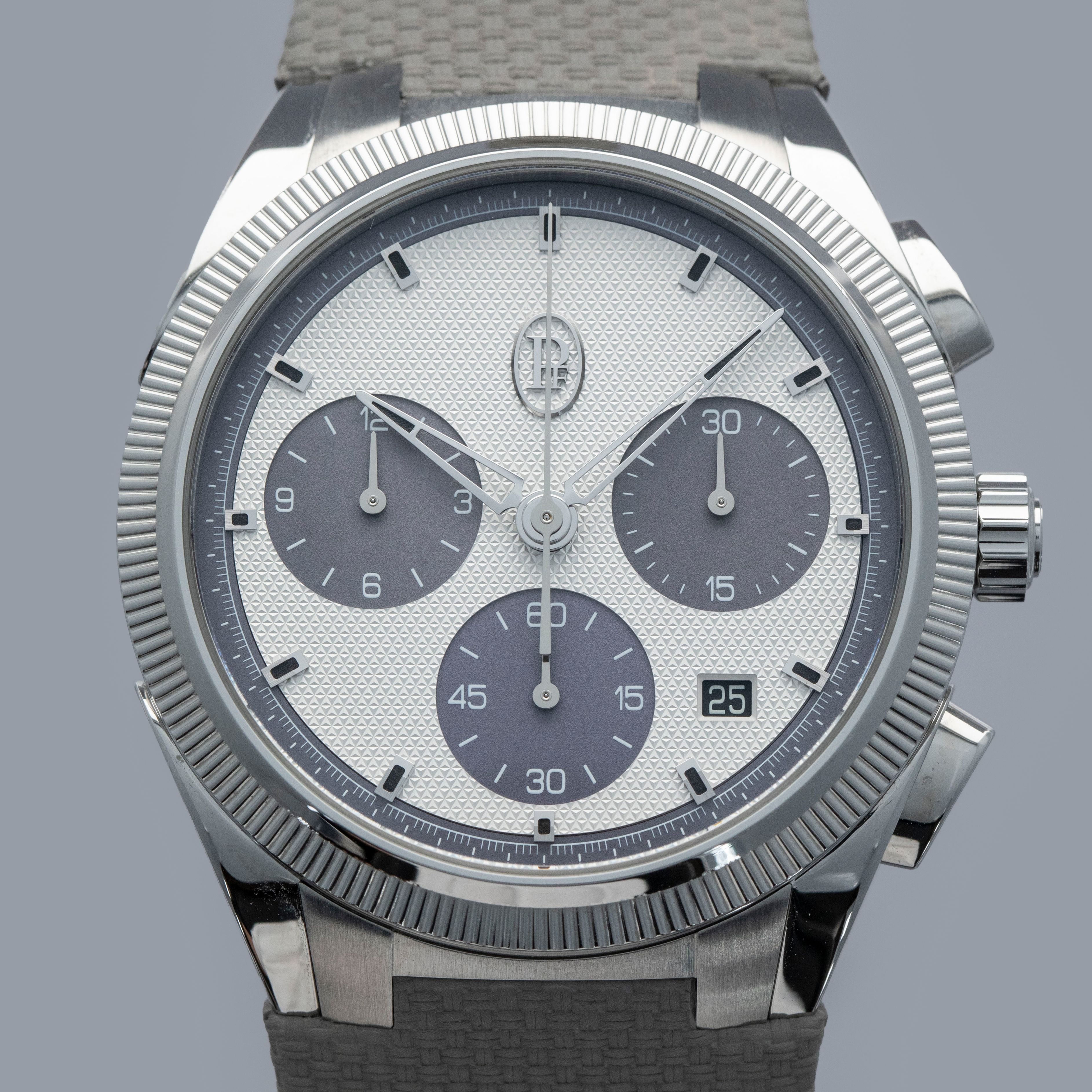 Founded in 1996 by Michel Parmigiani, thanks to the support of the Sandoz Family Foundation, Parmigiani Fleurier has quickly become one of the quiet giants of exquisite Swiss watchmaking. Thanks to their connection to the Sandoz family, Parmigiani Fleurier has been able to draw from technical resources that rival those of the biggest brands in the business. With access to Vaucher Manufacture, suppliers of movements to Richard Mille, Hermes, and other powerhouse brands, Parmigiani Fleurier certainly has the watchmaking heft behind them to perform just as well on the international stage as anyone else, even if their name isnt as recognisable as some others. Launched in 2024 as an extension of the Tonda collection, the model we have here is the Tonda PF Sport Chrono, an evolution of the Tonda GT Chronograph models launched in 2022. Made of stainless steel and offered on a textured rubber strap, the Tonda PF Sport Chrono retains the collection’s signature aesthetics all while bringing its own flavor to the model in the form of its sportier chronograph display, which comes in a stunning silver and London grey as on this variant. Decorated with a wonderful Grain d’Orge guilloché texture across its surface that adds a layer of visual intrigue to its display that is then contrasted by a recessed chapter ring and recessed subdials, all in London gray, the Tonda PF Sport Chrono’s dial boasts depth and fine finishing, just like its automatic cal. PF070 movement that is proudly displayed behind an exhibition caseback to ensure the Tonda PF Sport Chrono is a coalesced piece of horological luxury.