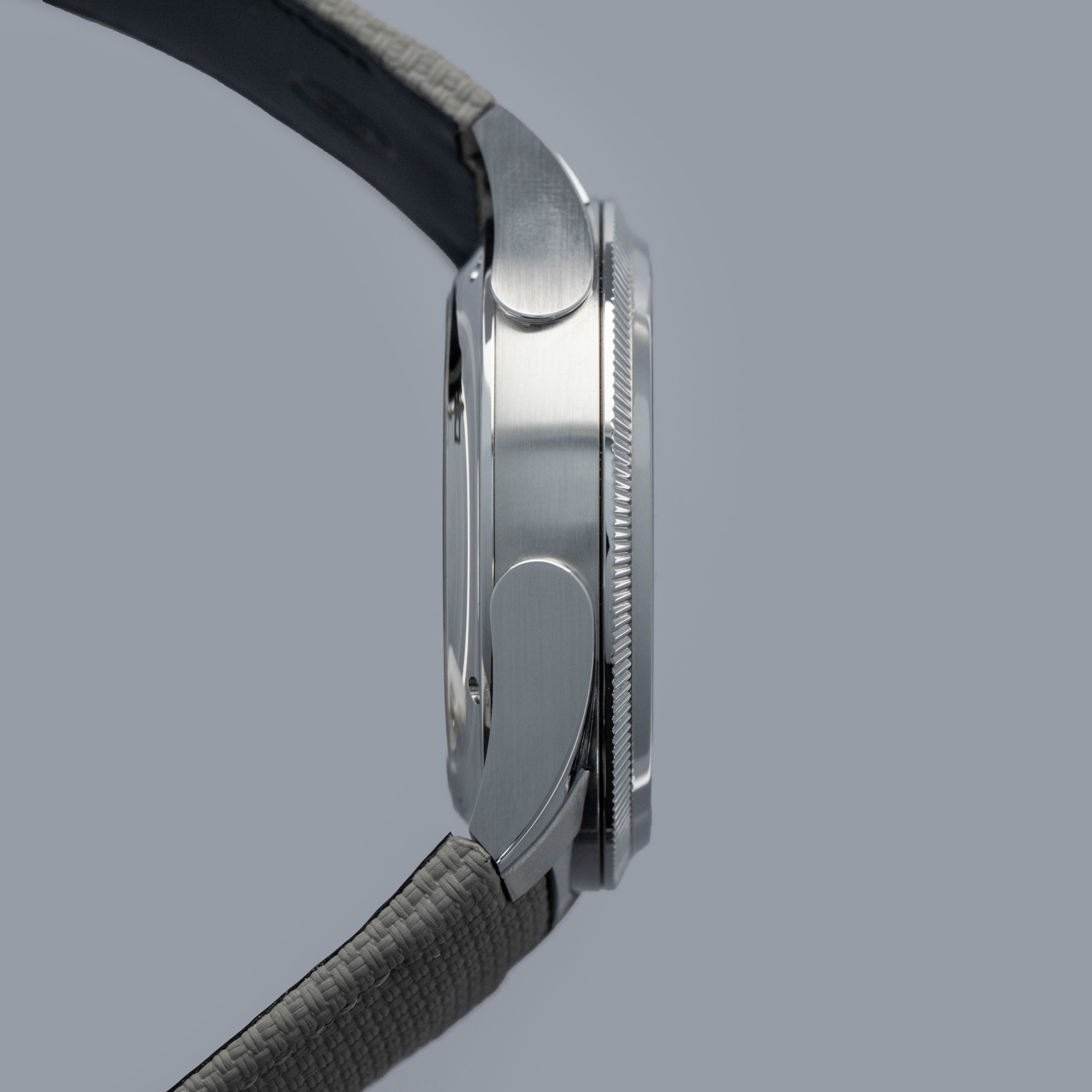 Made of stainless steel and boasting an integrated bracelet design, the Tonda wears extremely comfortably and with a wonderful sense of luxury with its carefully milled fluted bezel and elegantly acheived brushed and polished surfaces.