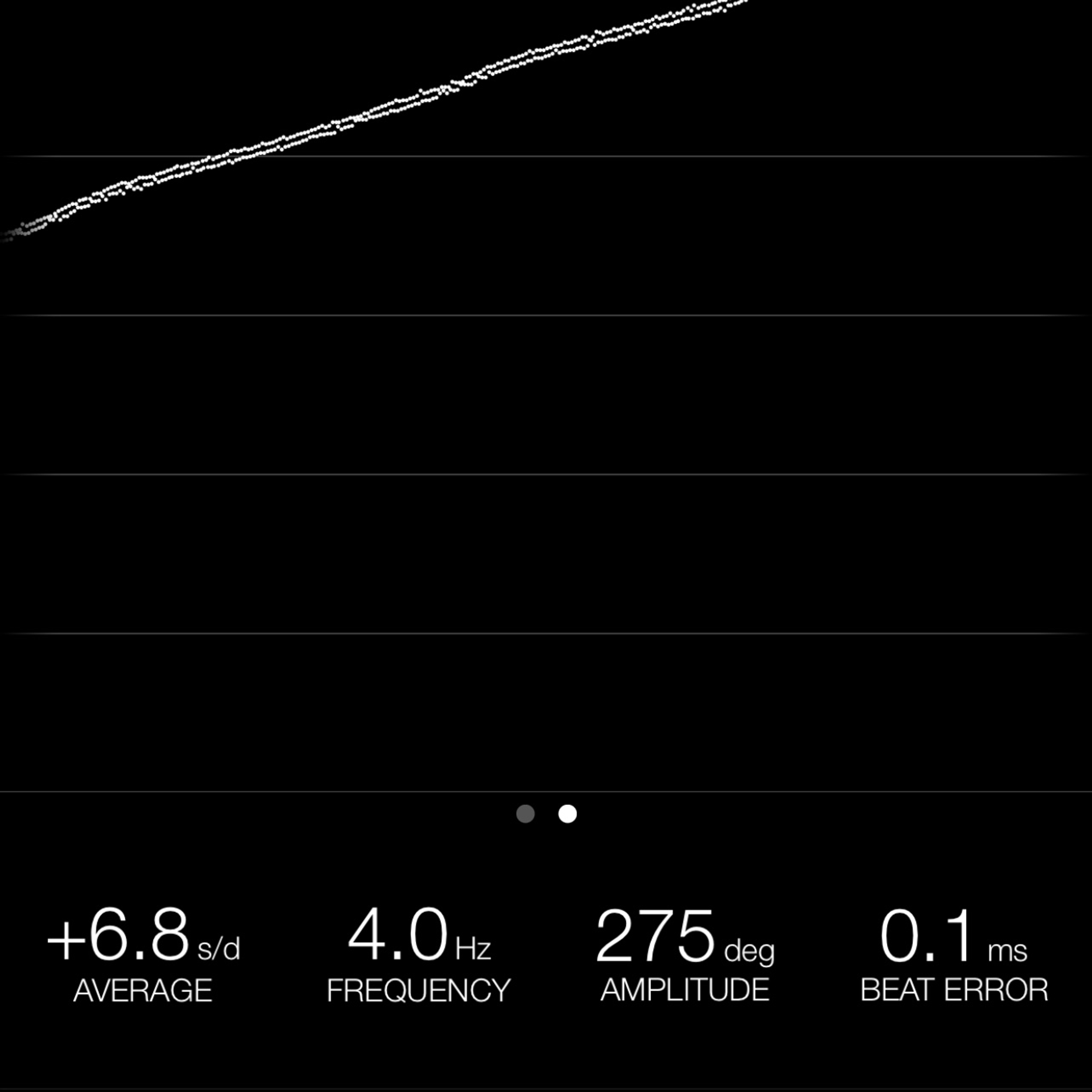 This reading was taken (crown down) with a ONEOF Accuracy Boutique Edition timing machine at time of cataloging. It is provided as a courtesy only, and shall not be construed as a warranty or guarantee of any kind. Please refer to our terms and conditions of sale for more information.