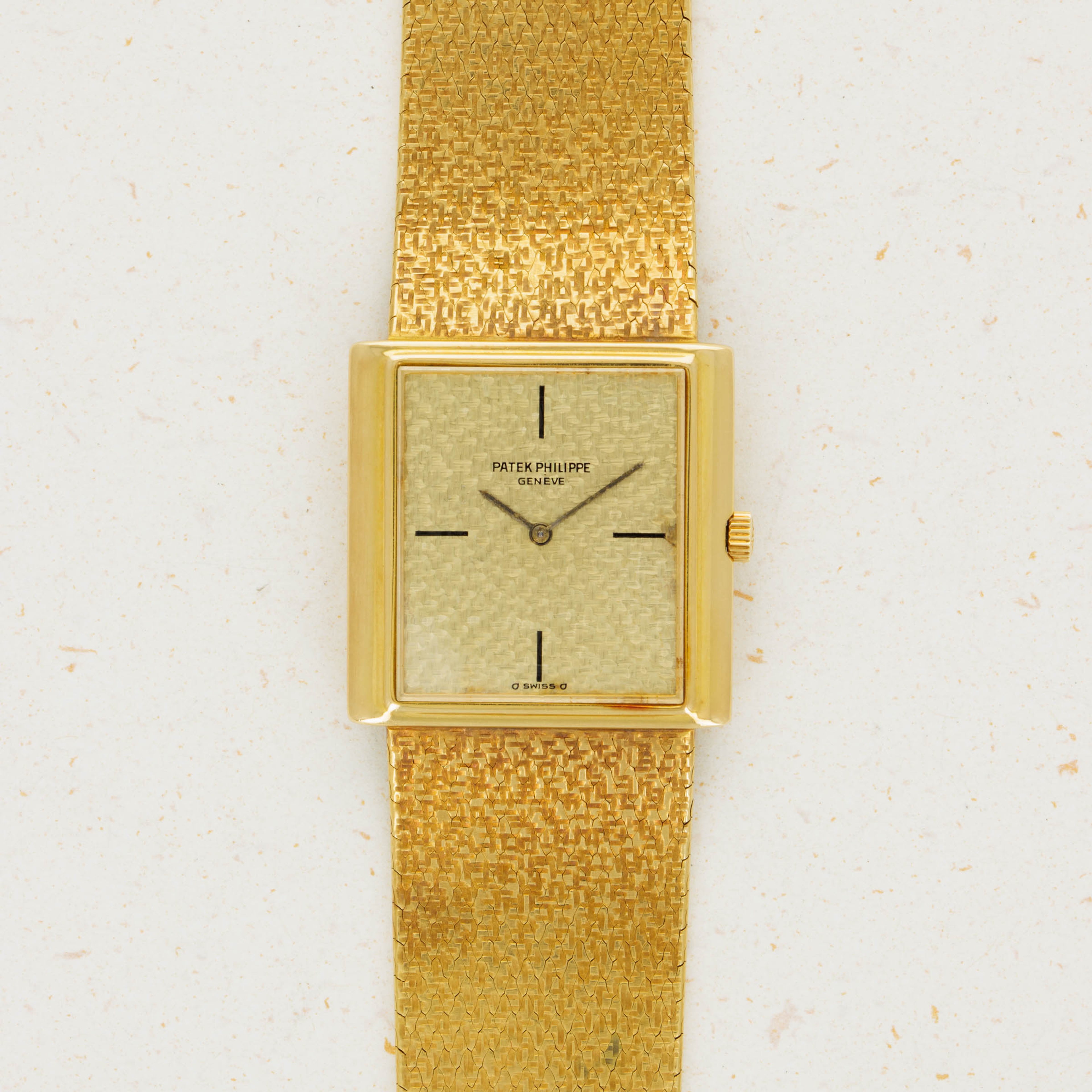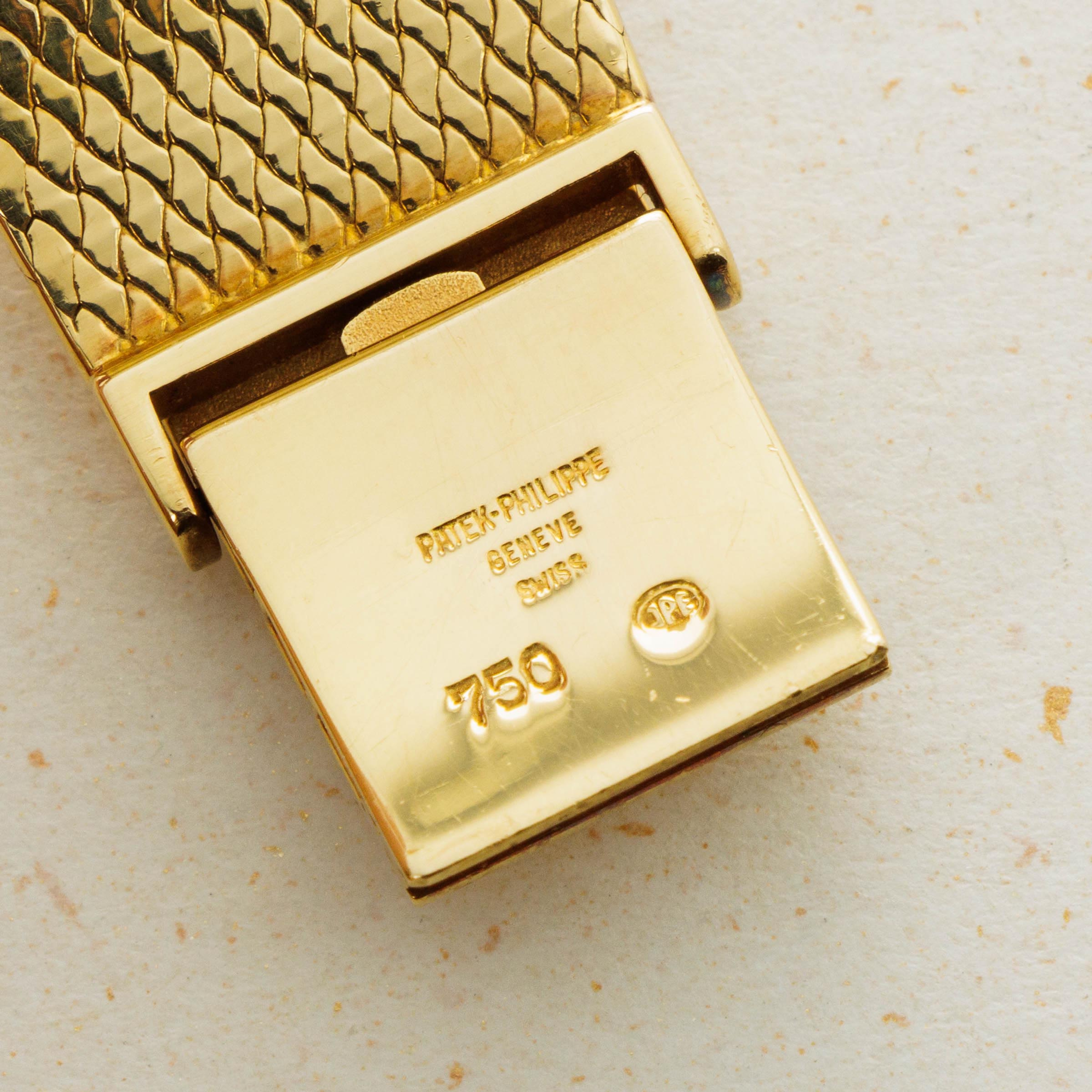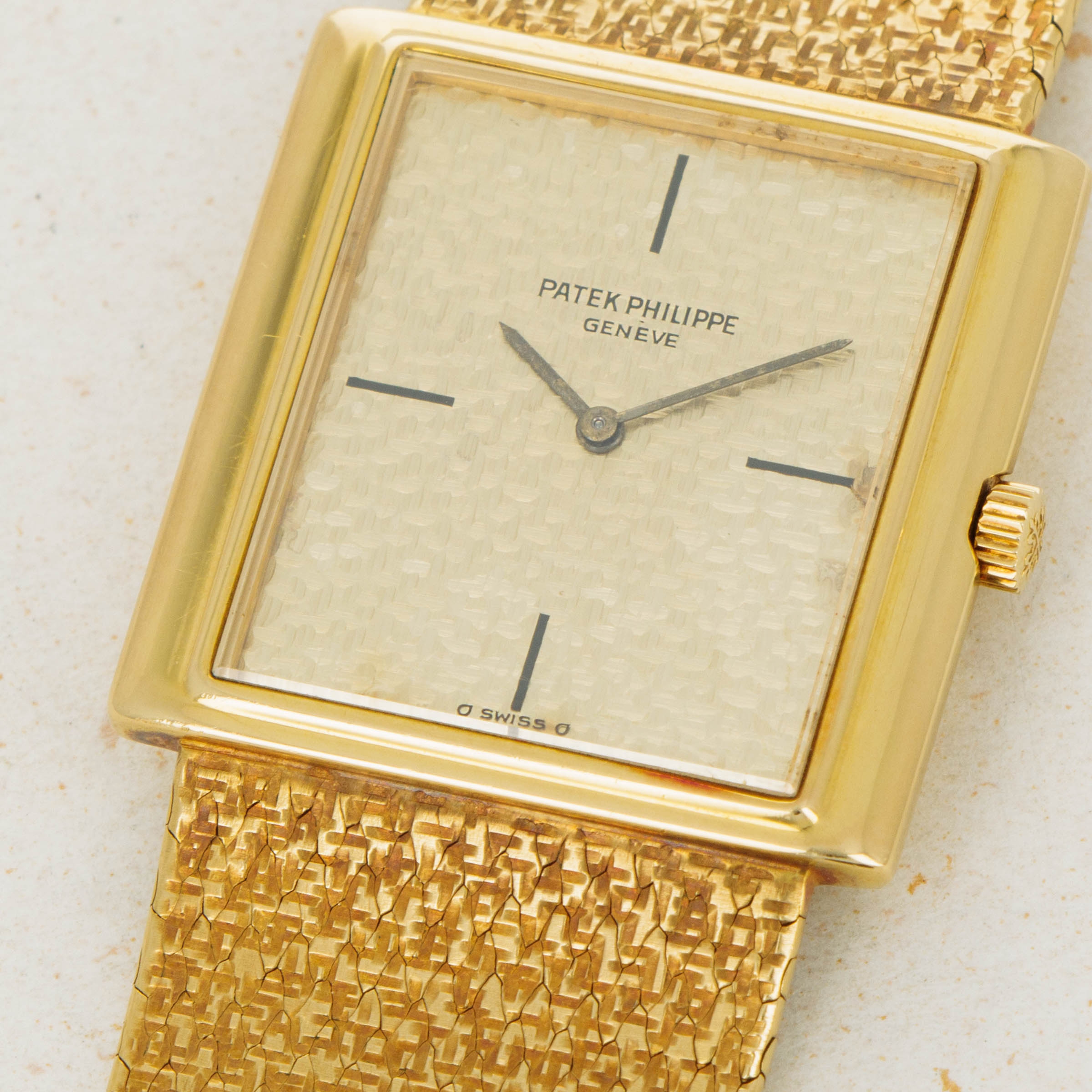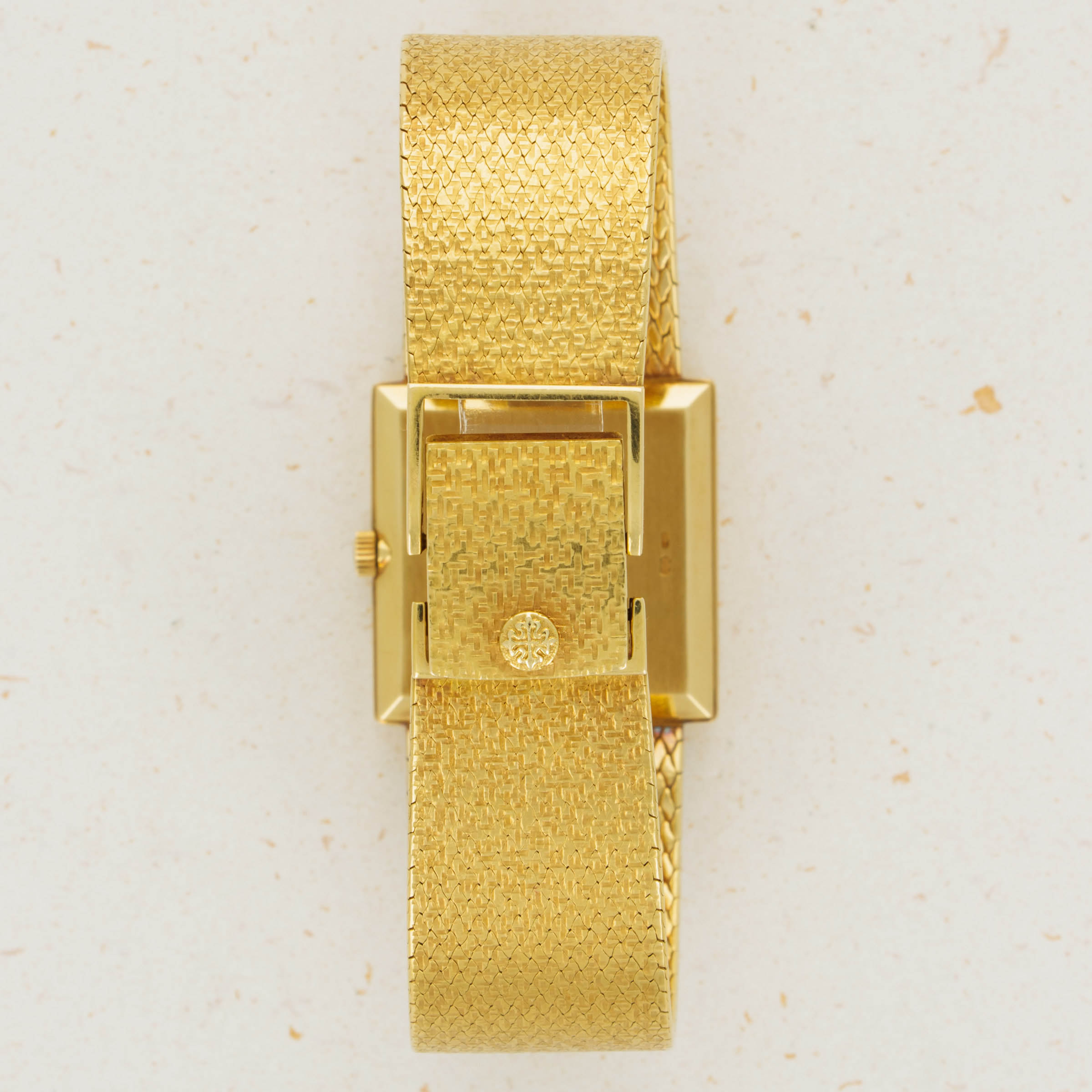 While it features pleasing proportions at 26mm x 26mm, the ref. 3671 wears a little larger than its measurements suggest thanks to its 18kt yellow gold mesh bracelet from famed Genevan bracelet atelier Jean-Pierre Ecoffey.