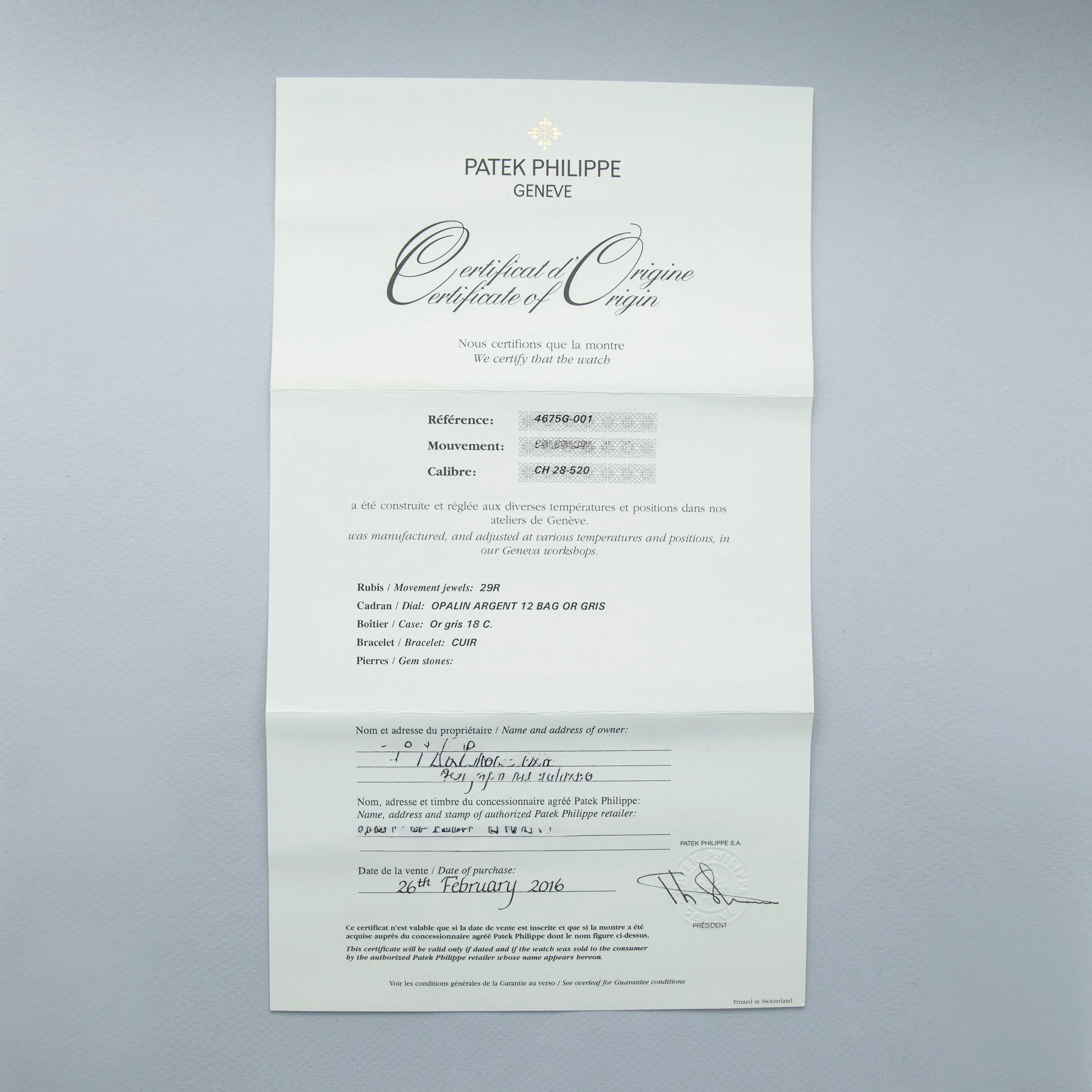 Released in 2014 to celebrate 175 years of Patek Philippe, the Multi-Scale Chronograph ref. 4675G is a uniquely designed timepiece that paradoxically breaks from tradition and convention while still referencing the importance that those two tenets have been for Patek Philippe over their 175+ year-long history. A chronograph timepiece with no subdials, the ref. 4675G features a multi-scale dial like those popularised by Patek Philippe in the mid-1900s. Used to measure pulse rate, distance, and speed, these were tool watches that acted as wrist-mounted calculators, much like modern smartwatches. But, of course, with its lack of subdials, the ref. 4675G could not measure singular events all too well. With its design rooted in the practical uses for these multi-scale timepieces in the mid-19th century, the ref. 4675G is a wonderful celebration of Patek's innovative heritage while reintroducing a design that is not often used in modern watchmaking anymore. With its entirely polished 37mm 18kt white gold case sporting ornate stepped lugs and housing a creamy white dial, the ref. 4675G is a tremendously luxurious timepiece with 12 baguette-cut diamonds spotting its dial in place of traditional hour markers. Furthermore, as a mark of its female design inspiration, the ref. 4675 features rather feminine inscriptions, unlike the bold inscriptions used on its male counterpart, the ref. 5975. A rare watch, just as much as it is a beautiful one, the ref. 4675G is one of just 150 examples that were produced for the anniversary celebration, with another 150 examples produced of the ref. 4675G’s pink gold sibling, the ref. 4675R.
